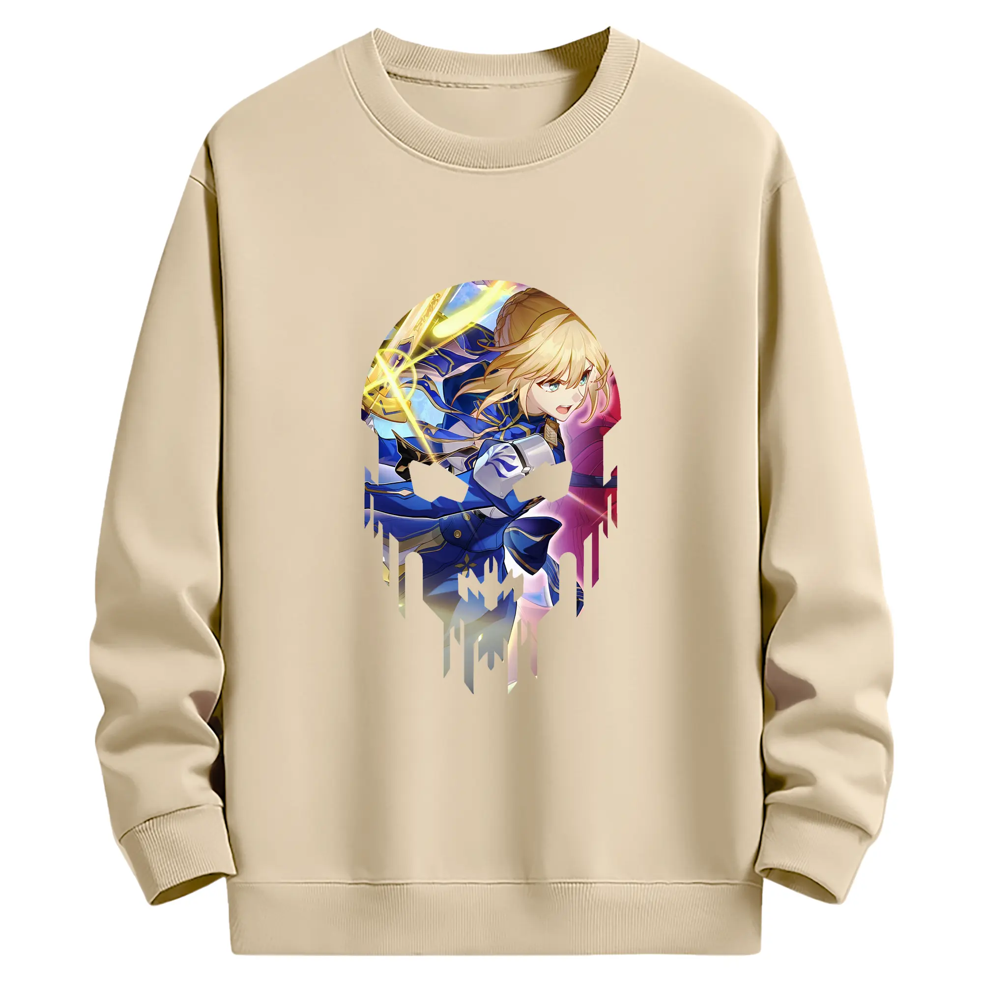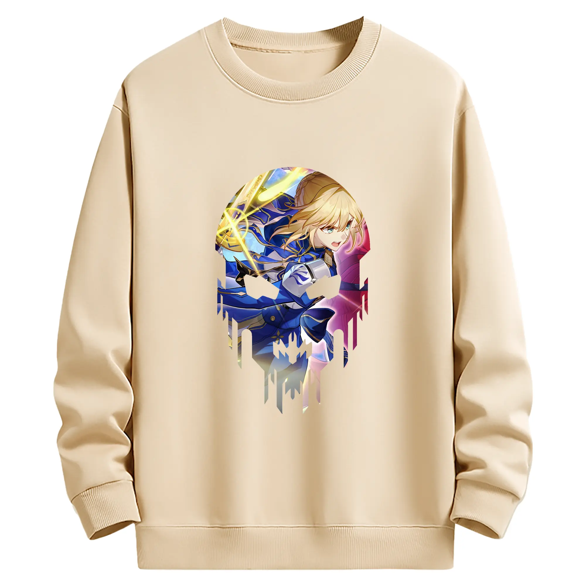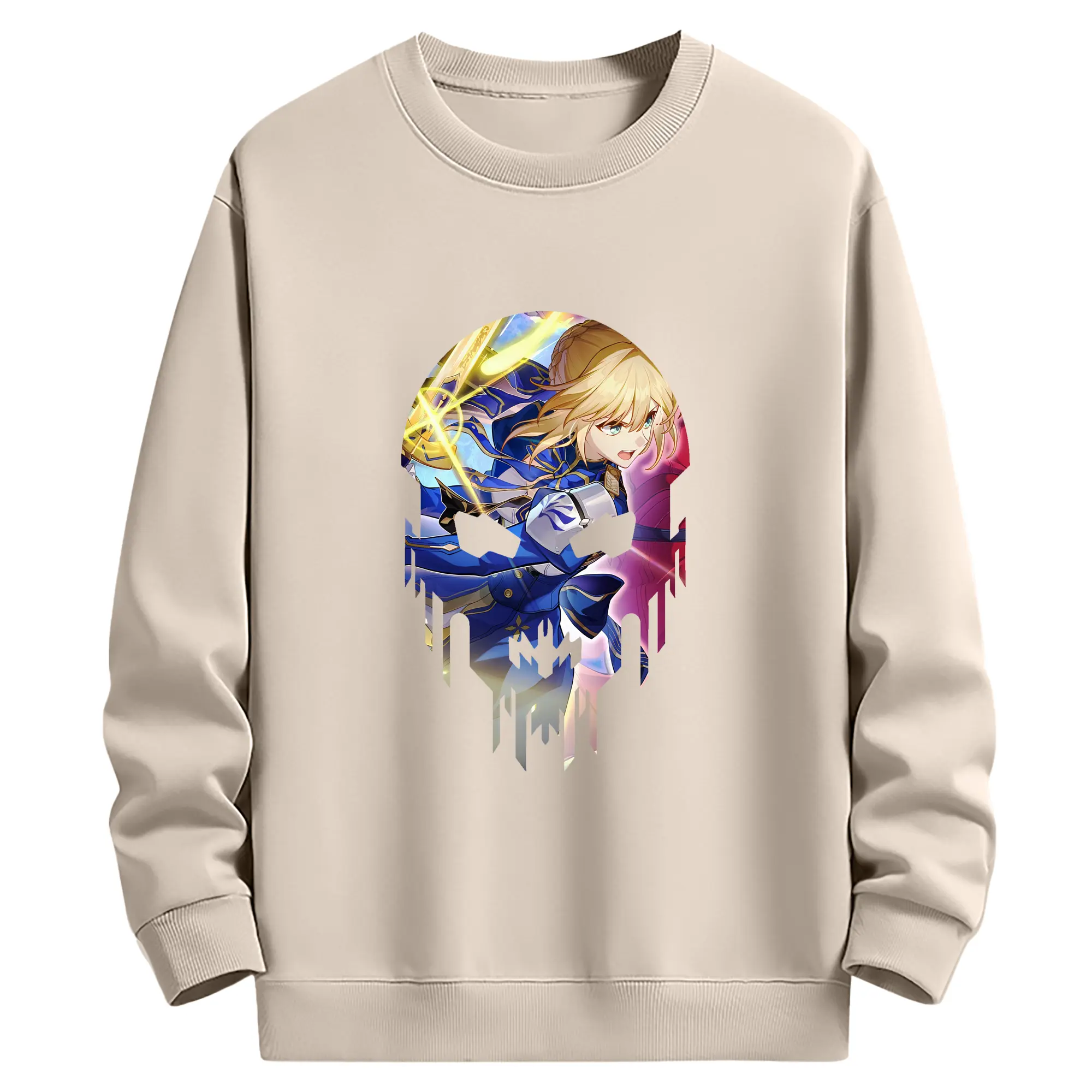 FGO グッズ,アルトリア - 薄手 クルーネック スウェット 裏毛260g · ポリエステル 春秋向け カジュアル 男女兼用 · トレーナー デイリー スポーツ 散歩に最適