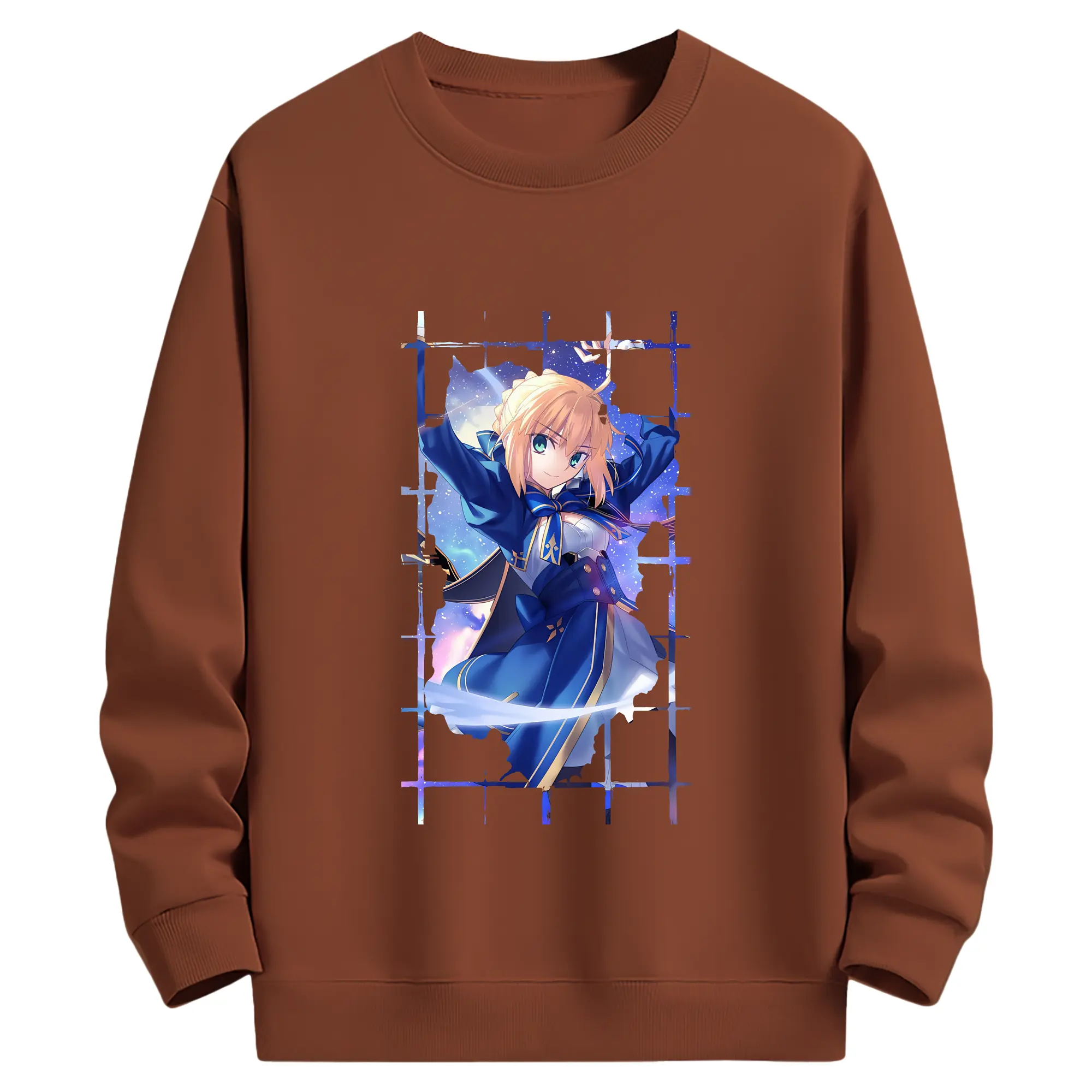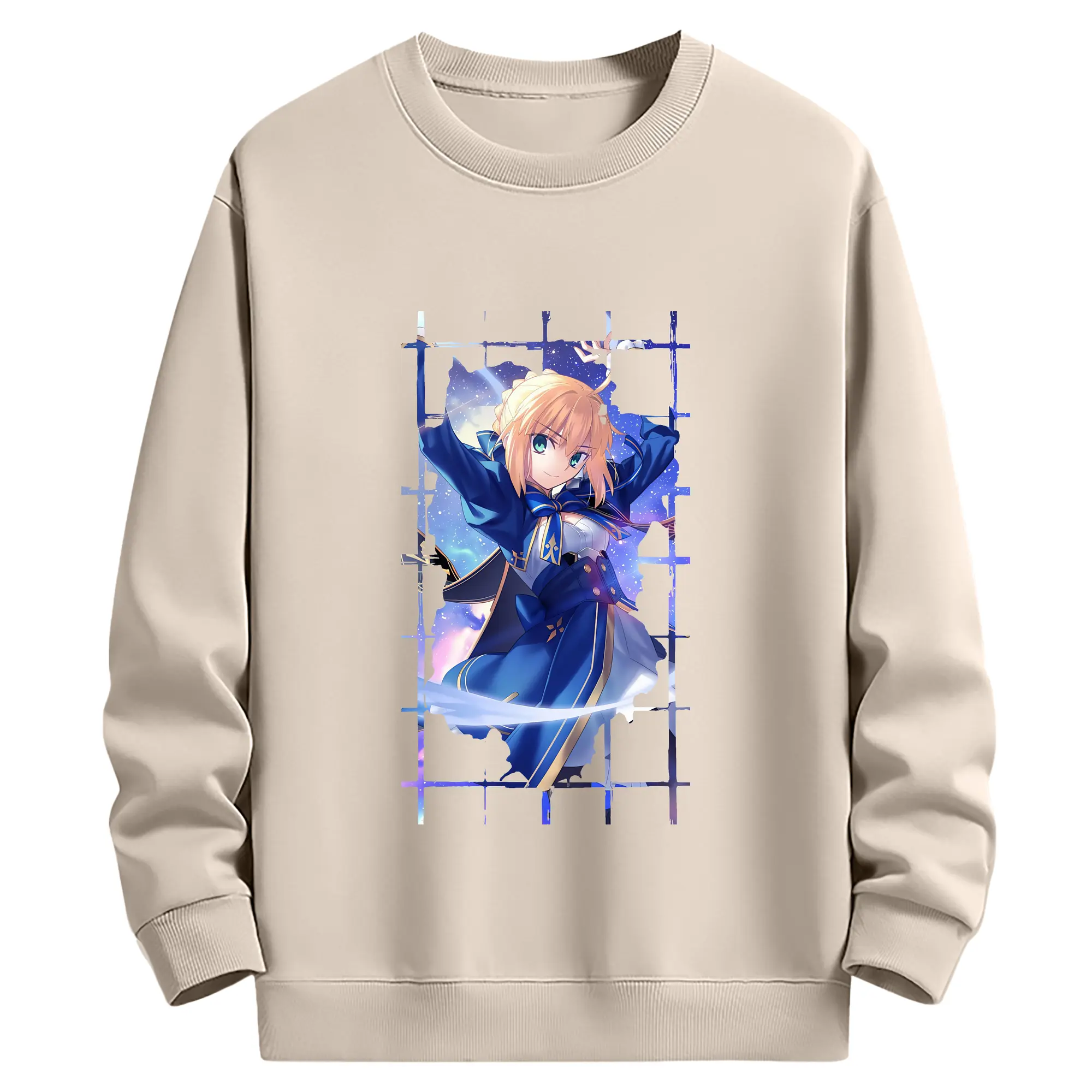 FGO グッズ,アルトリア - 薄手 クルーネック スウェット 裏毛260g · ポリエステル 春秋向け カジュアル 男女兼用 · トレーナー デイリー スポーツ 散歩に最適