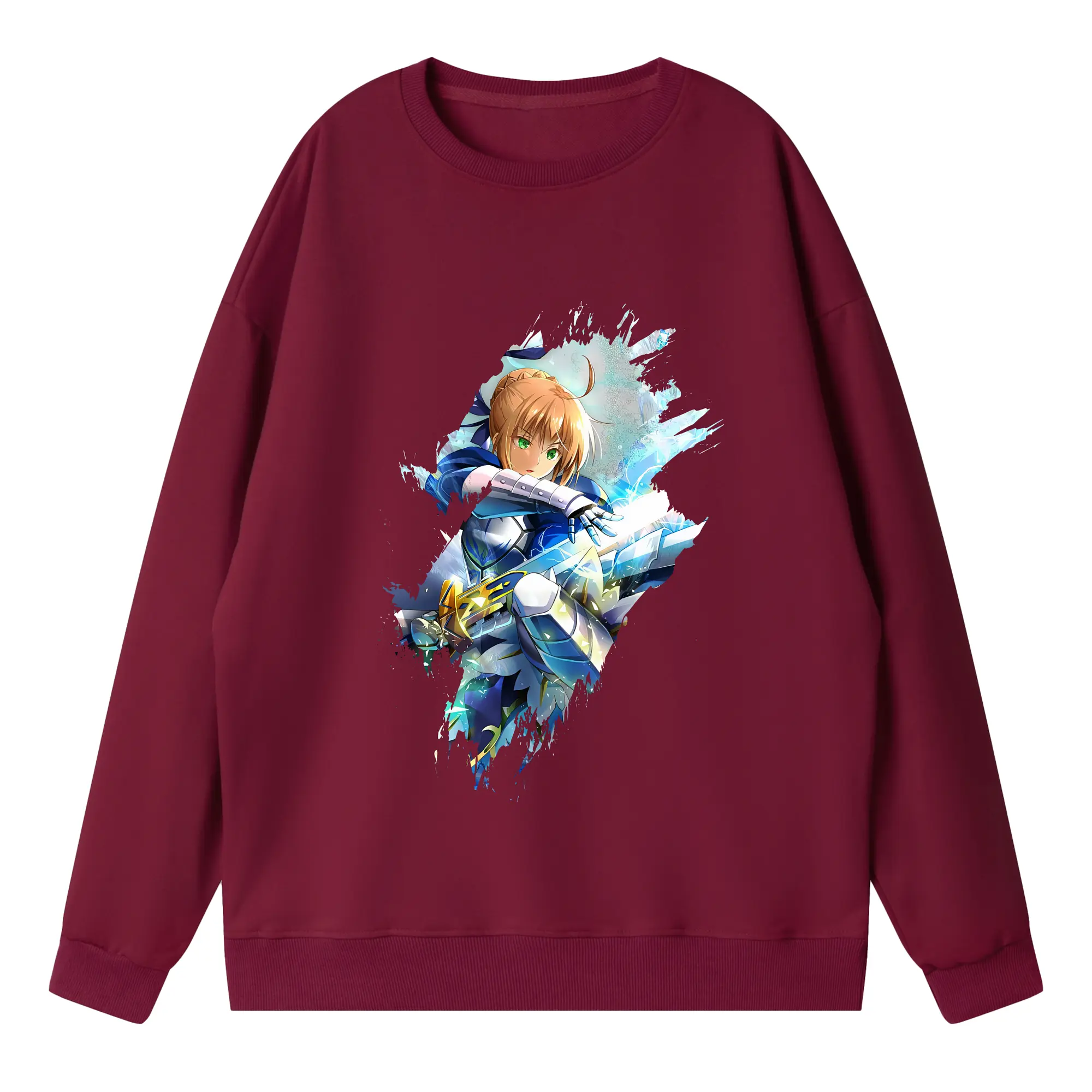 FGO グッズ,アルトリア - 高品質 クルーネック スウェット ・ コットン59% ポリエステル41% ・ ユニセックス 長袖 トレーナー ・ カジュアル デイリー スポーツ 散歩用