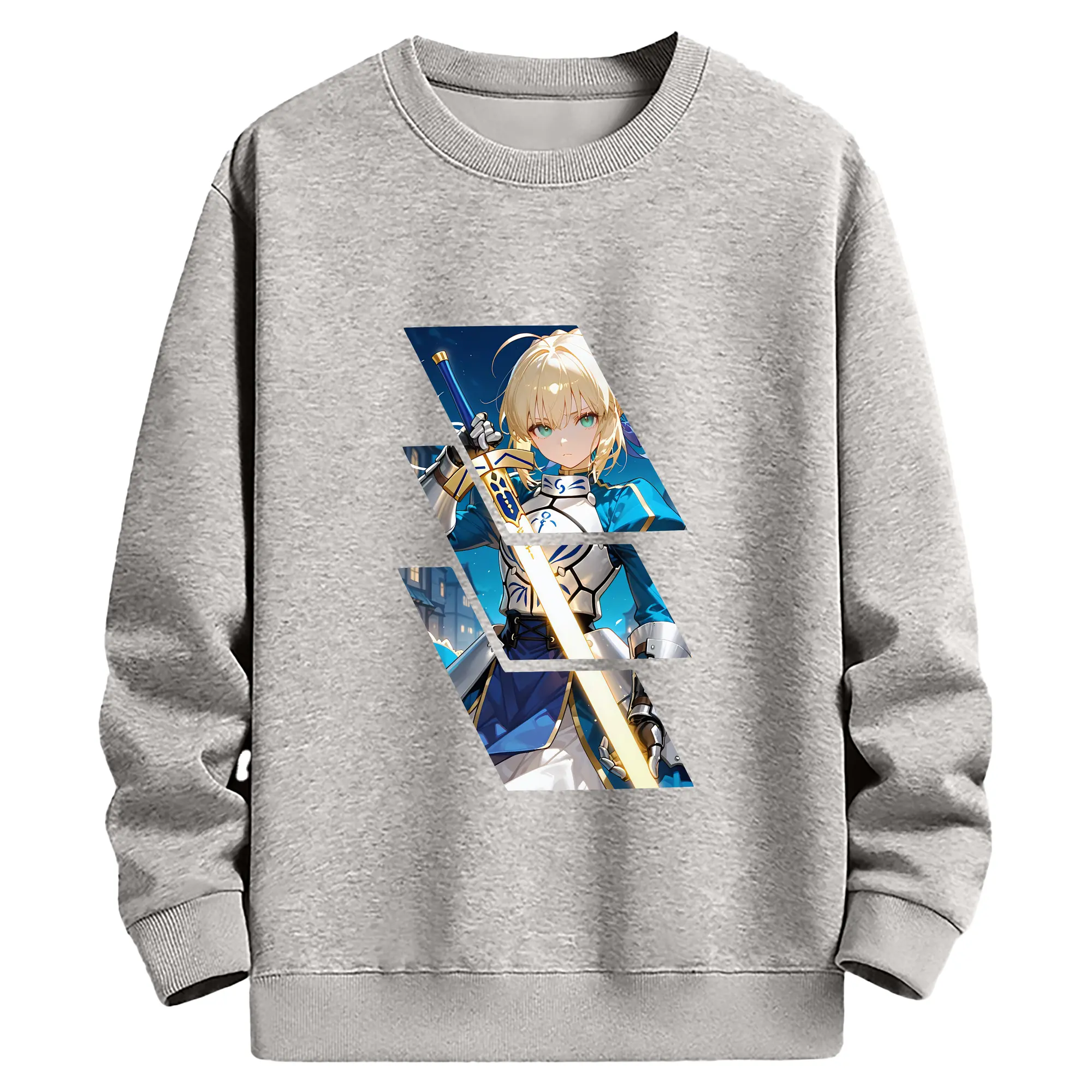 FGO グッズ,アルトリア - 薄手 クルーネック スウェット 裏毛260g · ポリエステル 春秋向け カジュアル 男女兼用 · トレーナー デイリー スポーツ 散歩に最適