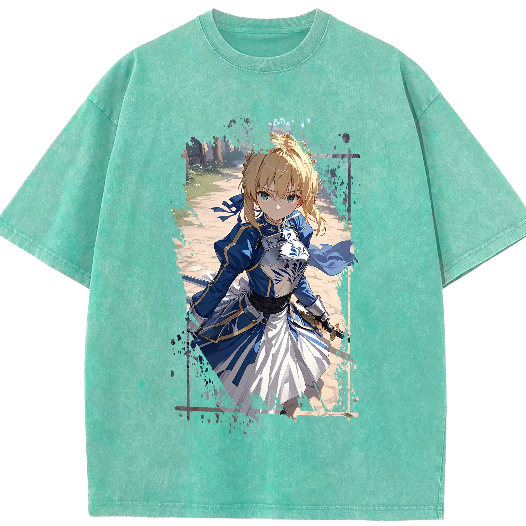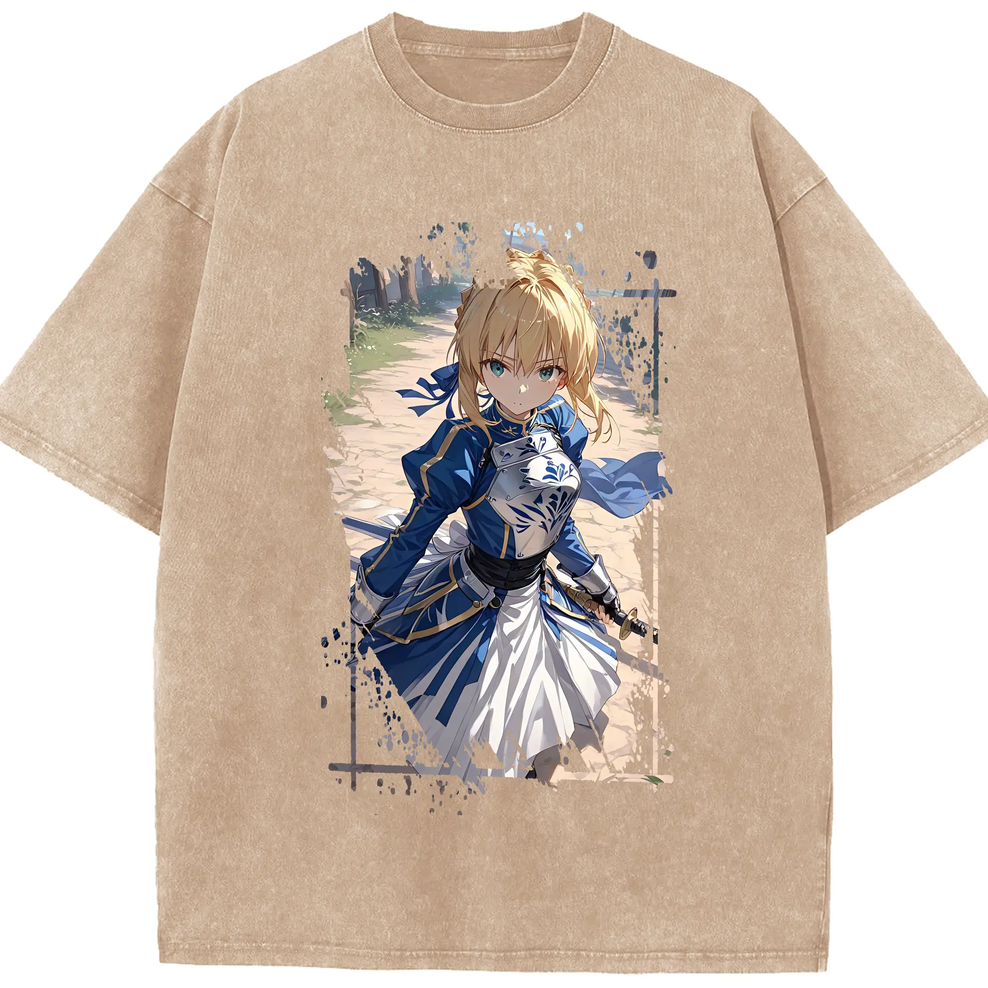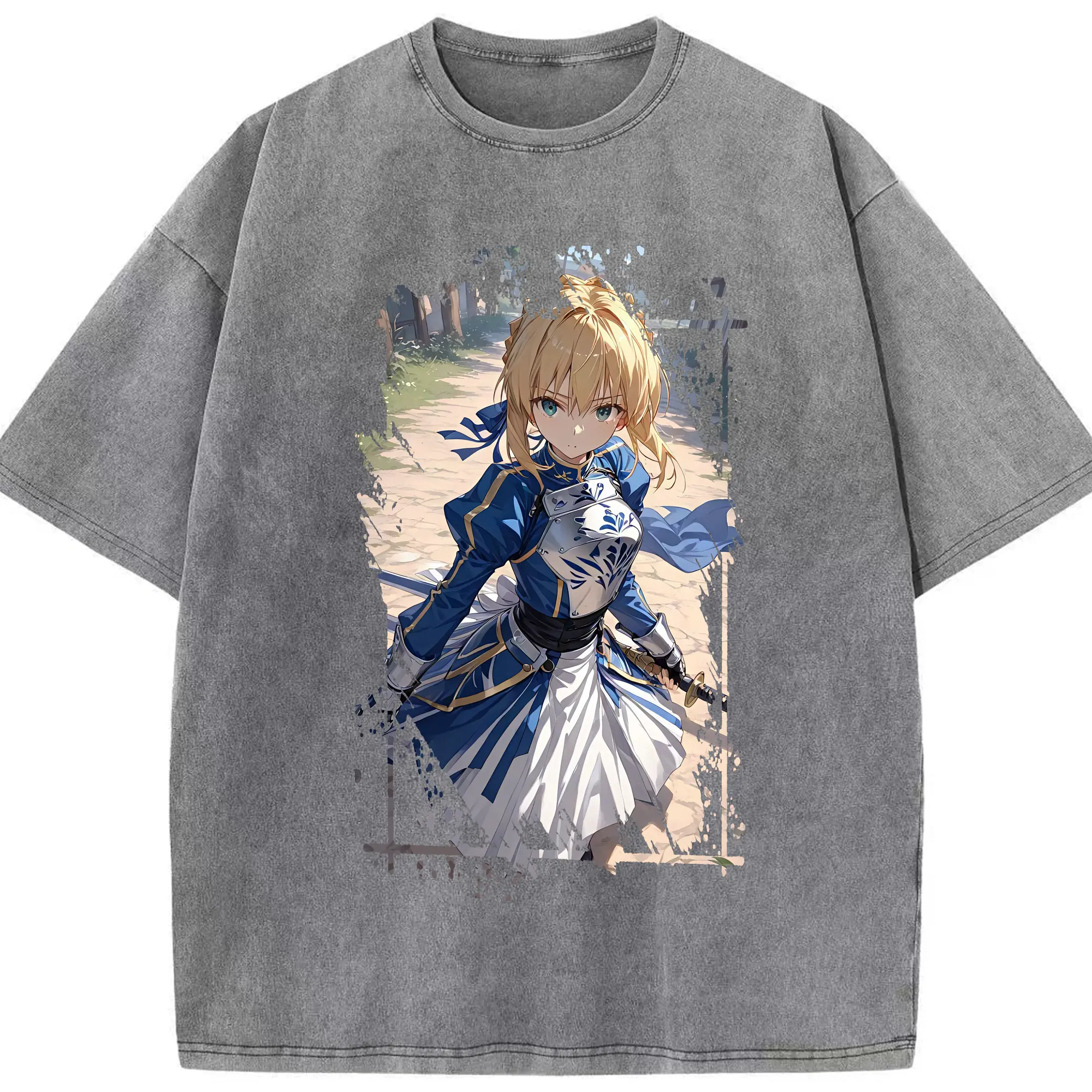 FGO グッズ,アルトリア - 綿100% ヴィンテージ風 半袖Tシャツ ・ 背面プリント ・ 柔らか肌触り ・ 通気性 快適 ・ スポーツ カジュアル 外出用