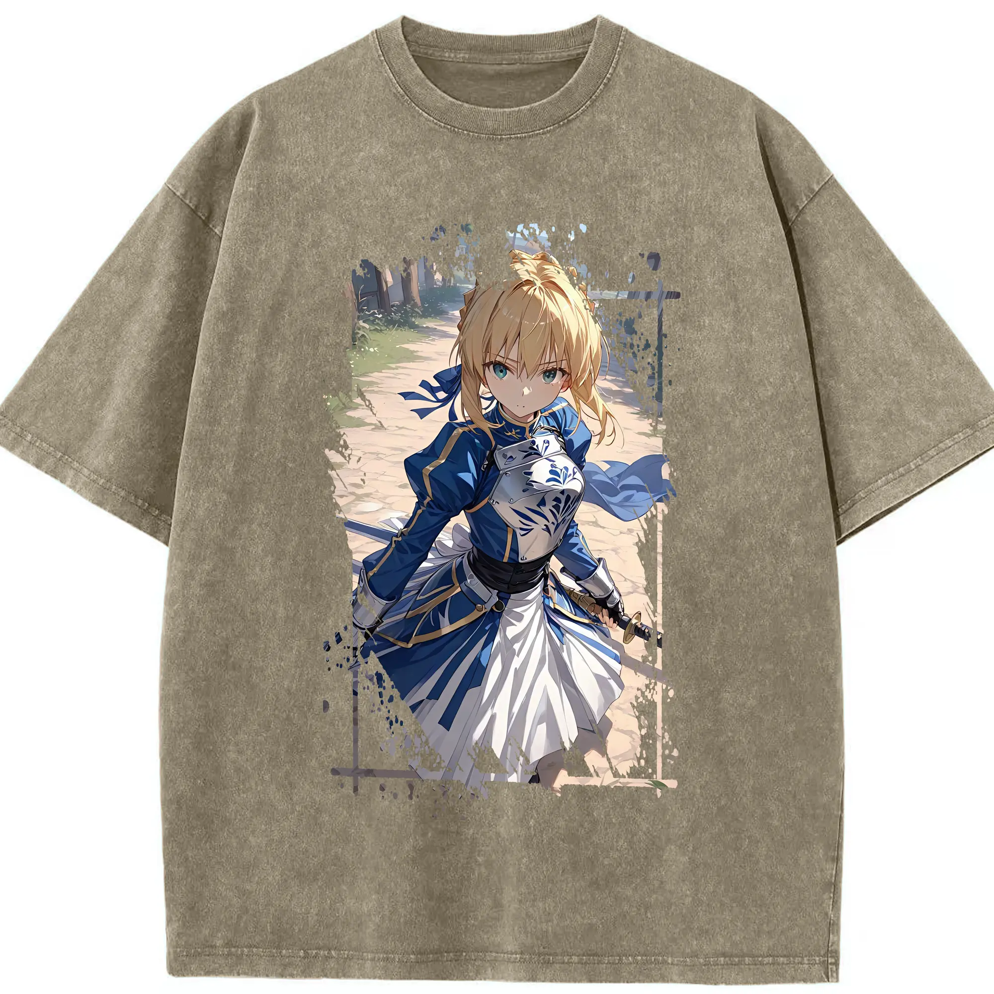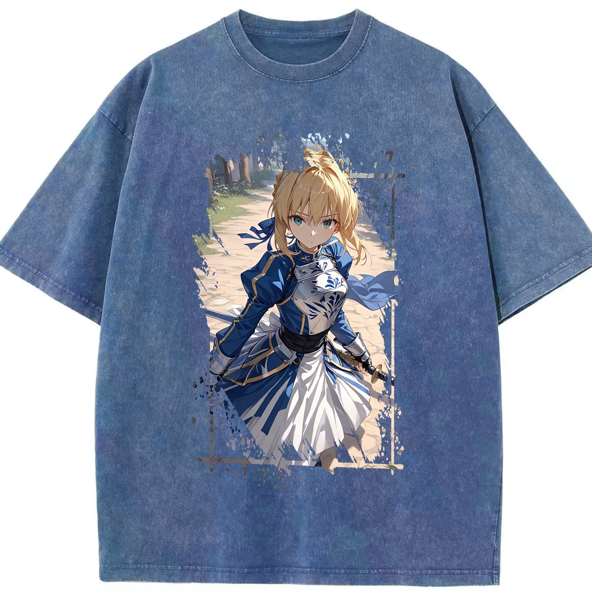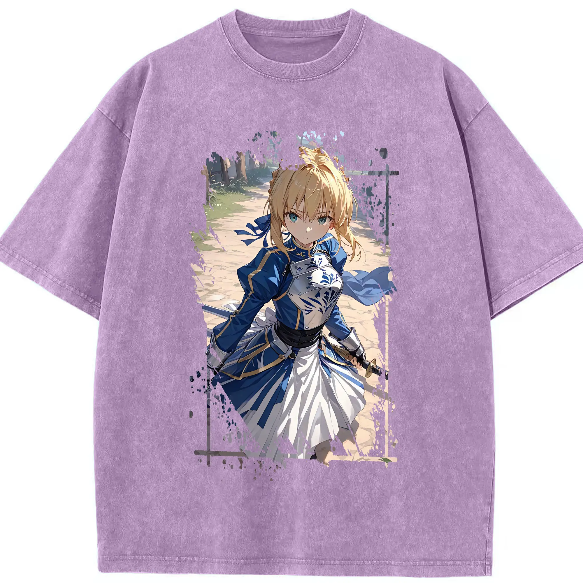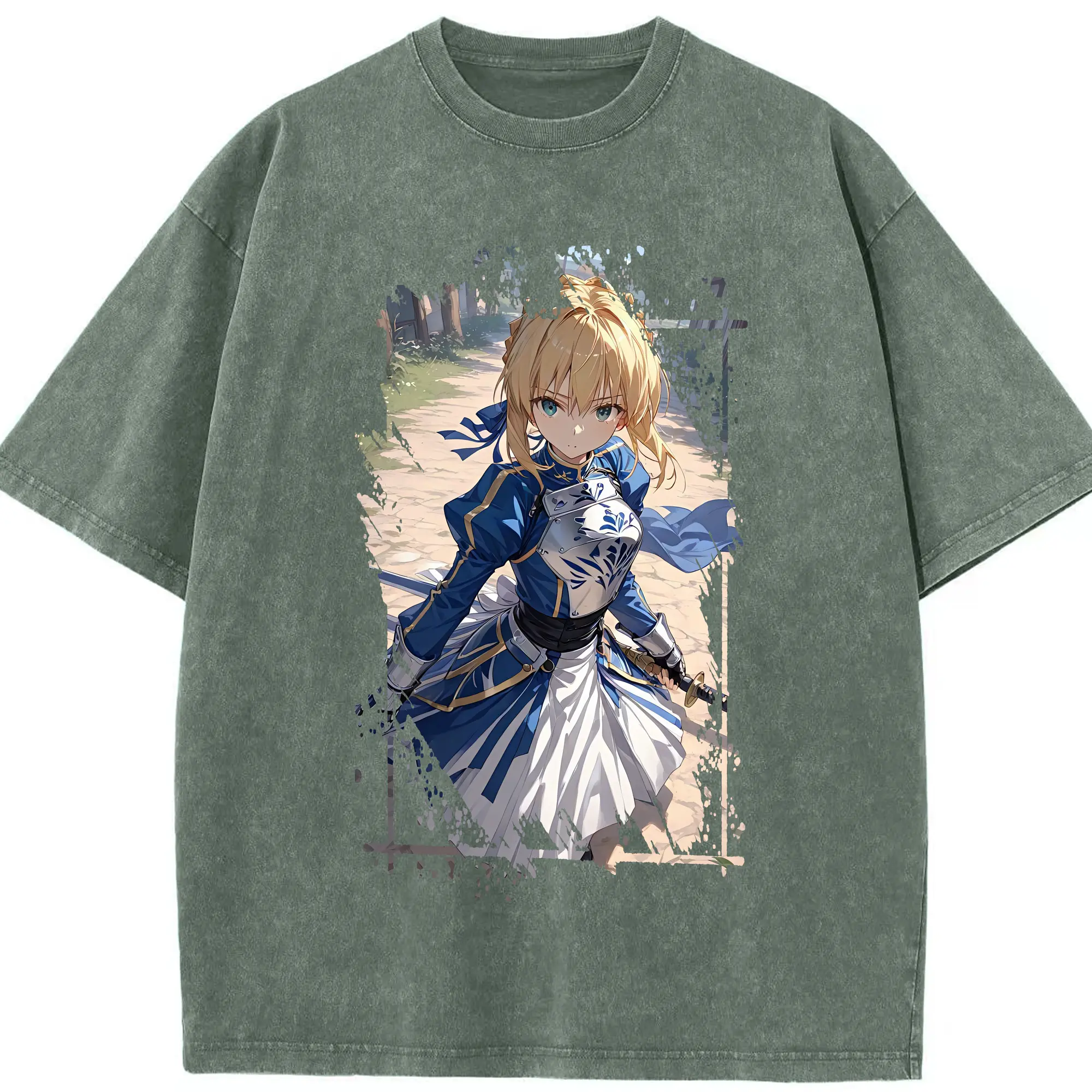 FGO グッズ,アルトリア - 綿100% ヴィンテージ風 半袖Tシャツ ・ 背面プリント ・ 柔らか肌触り ・ 通気性 快適 ・ スポーツ カジュアル 外出用