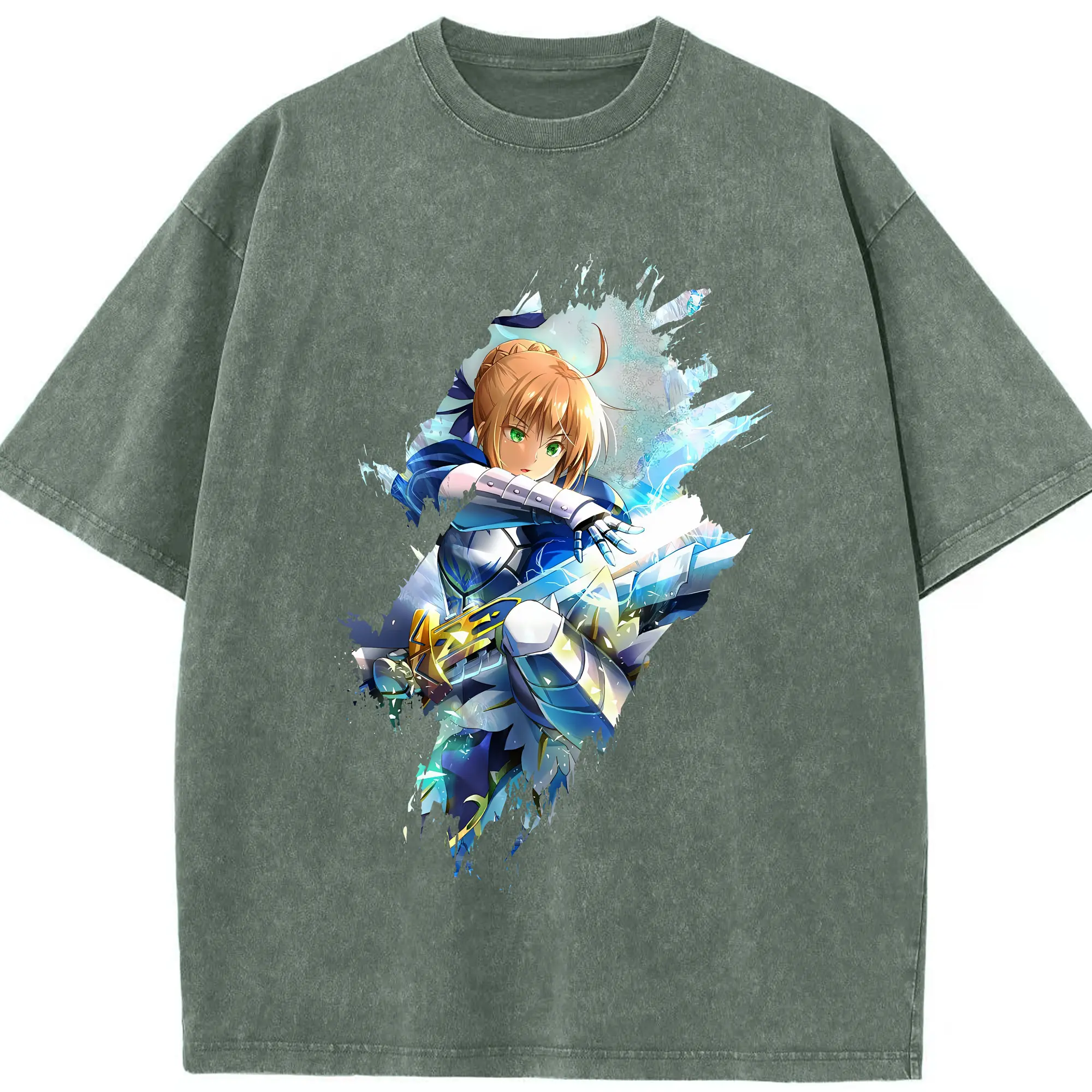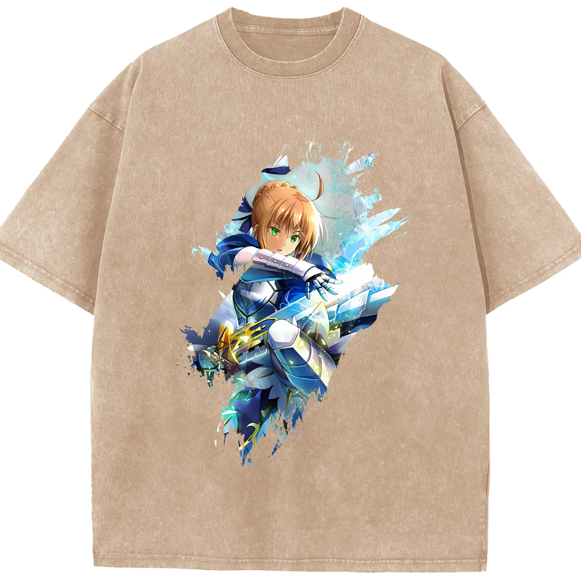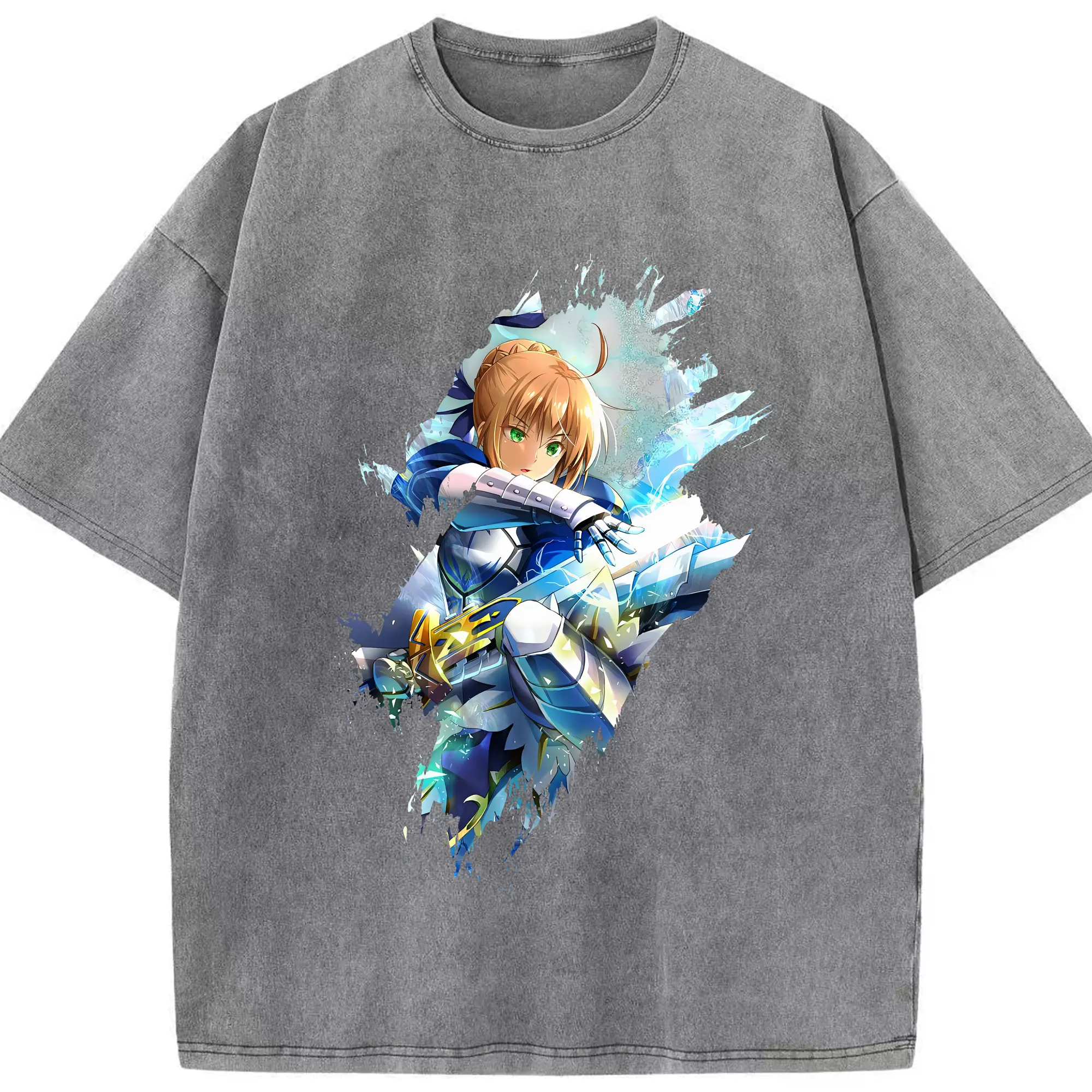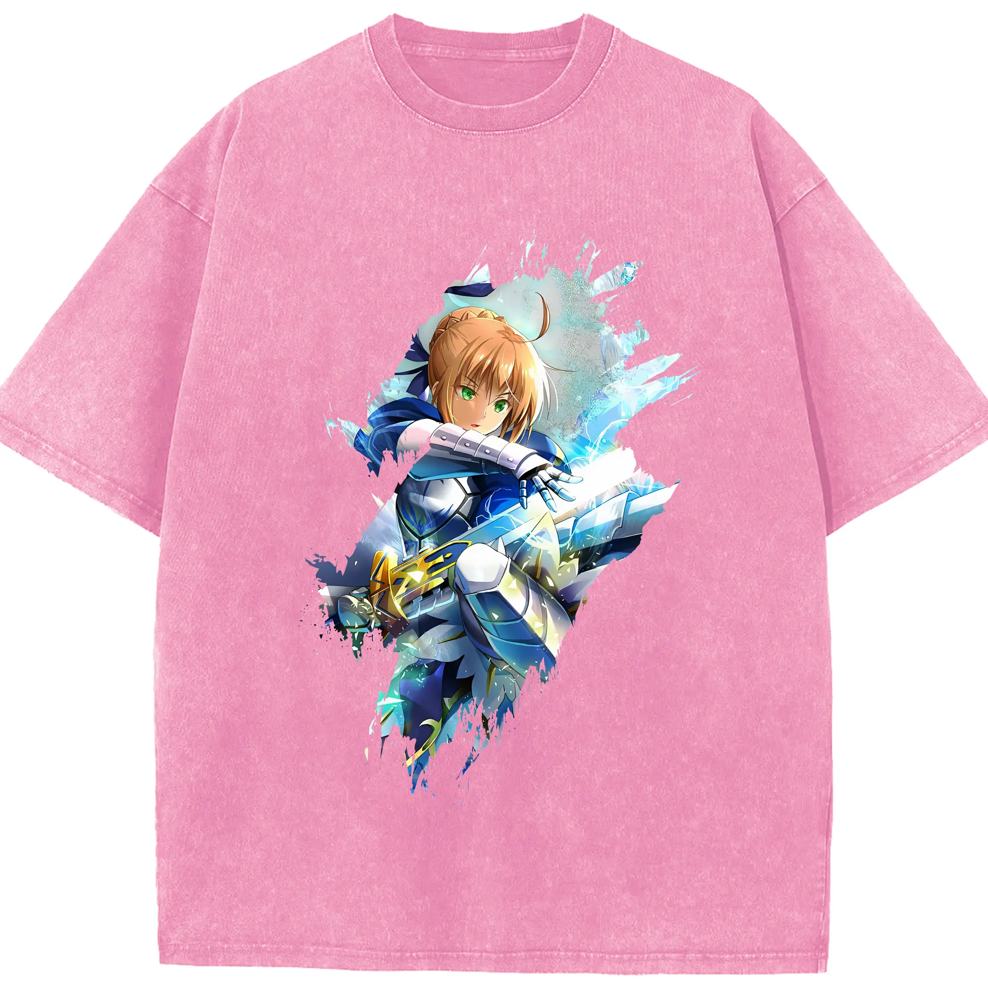 FGO グッズ,アルトリア - 綿100% ヴィンテージ風 半袖Tシャツ ・ 背面プリント ・ 柔らか肌触り ・ 通気性 快適 ・ スポーツ カジュアル 外出用