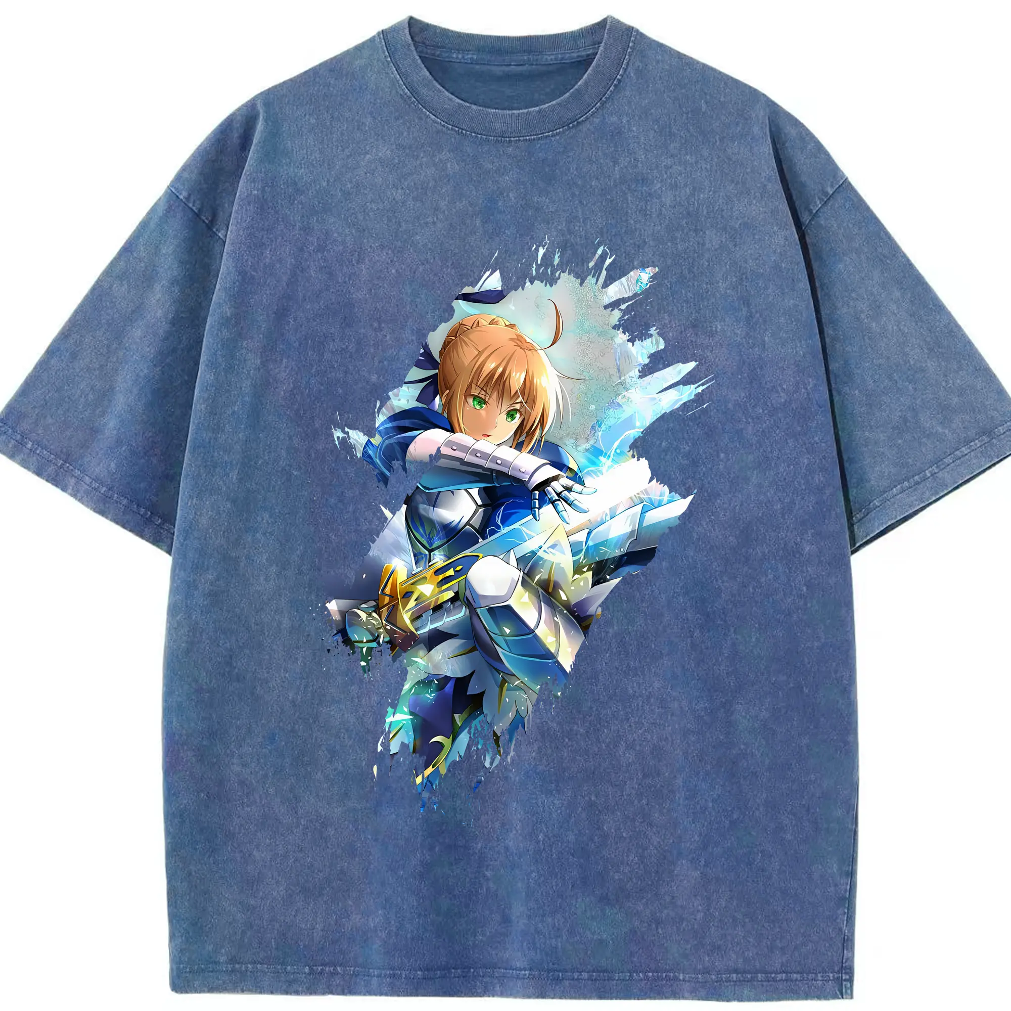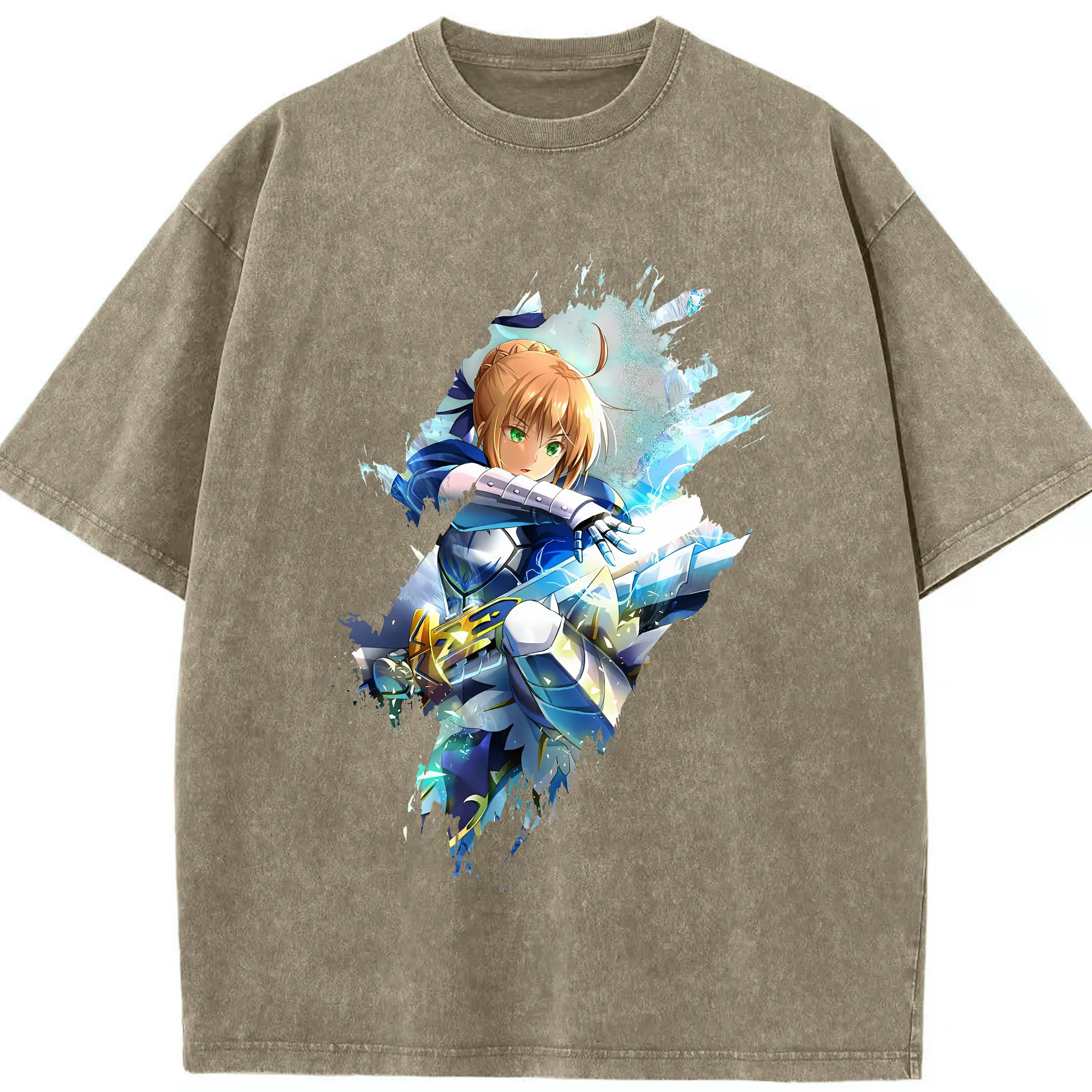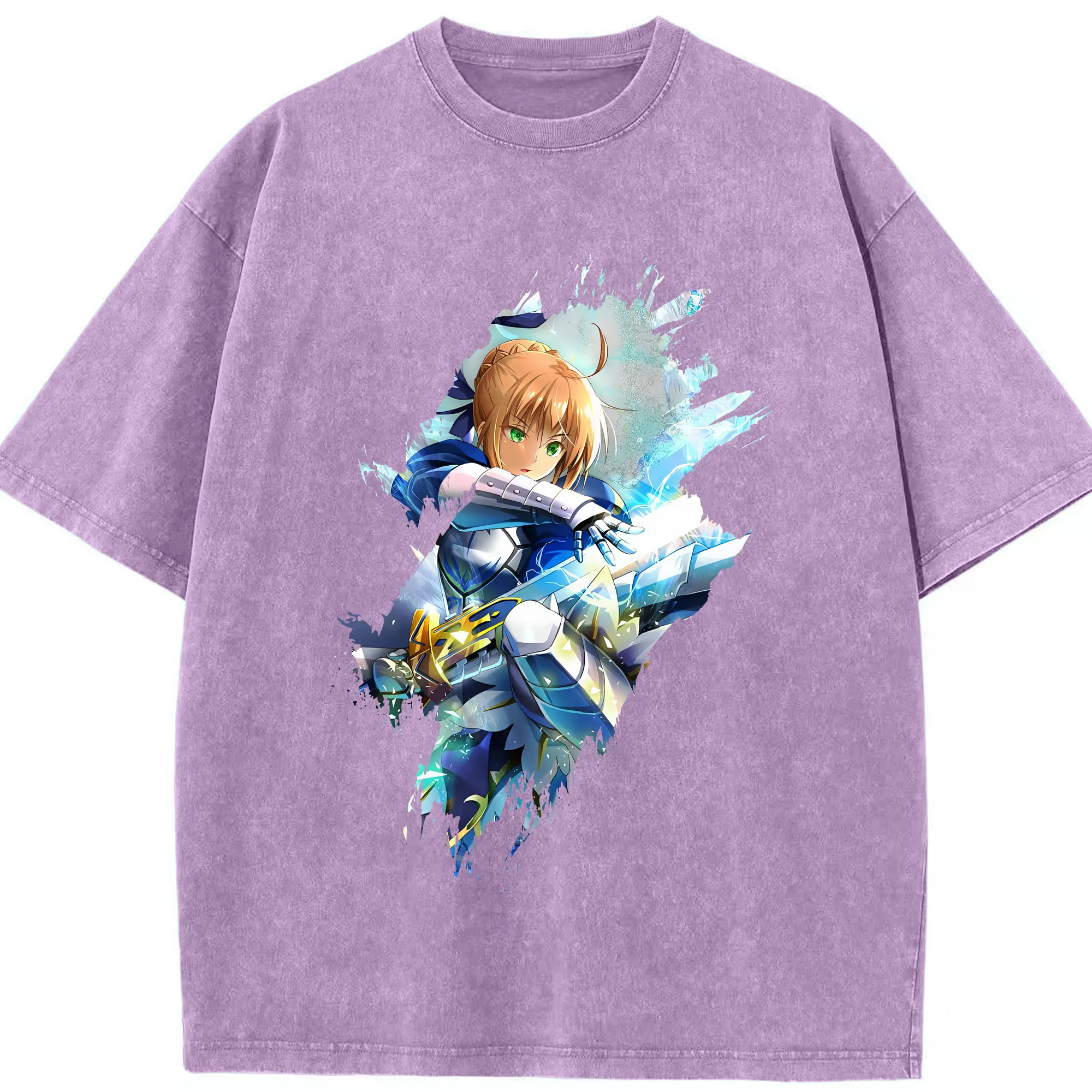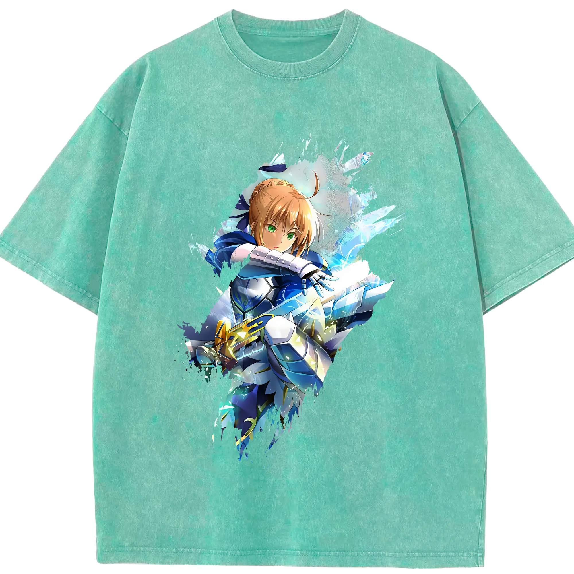 FGO グッズ,アルトリア - 綿100% ヴィンテージ風 半袖Tシャツ ・ 背面プリント ・ 柔らか肌触り ・ 通気性 快適 ・ スポーツ カジュアル 外出用