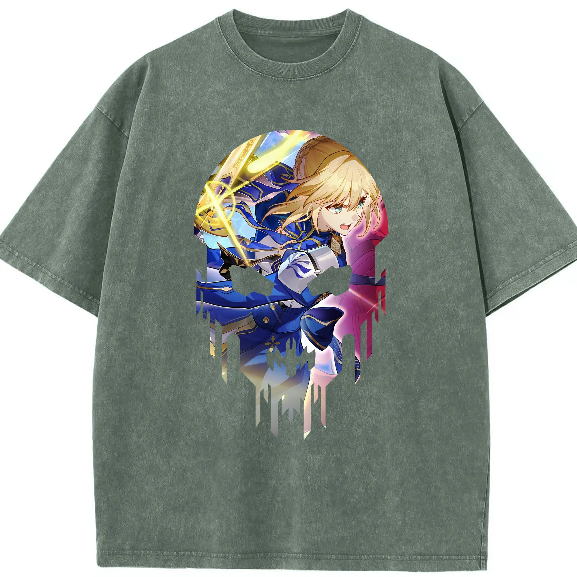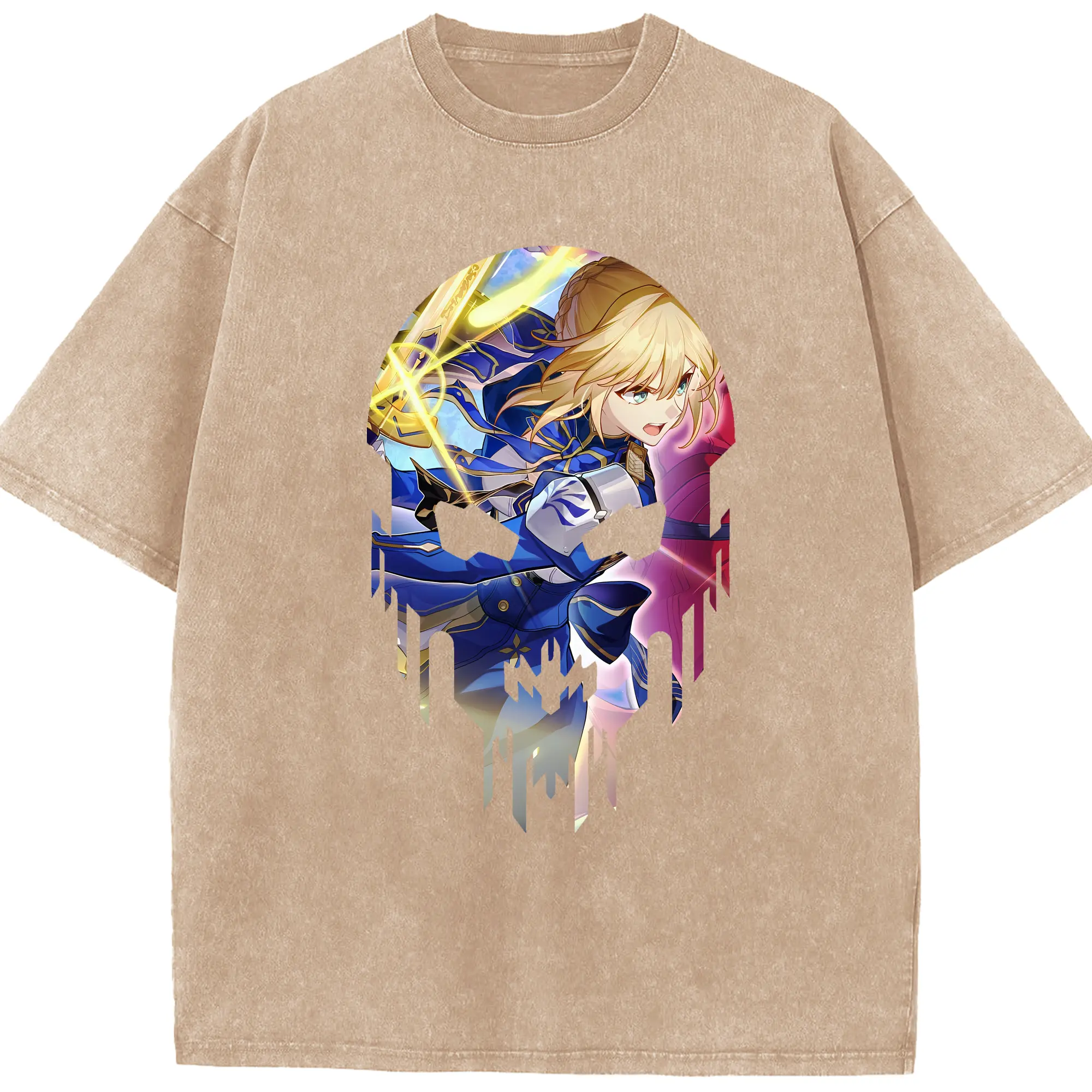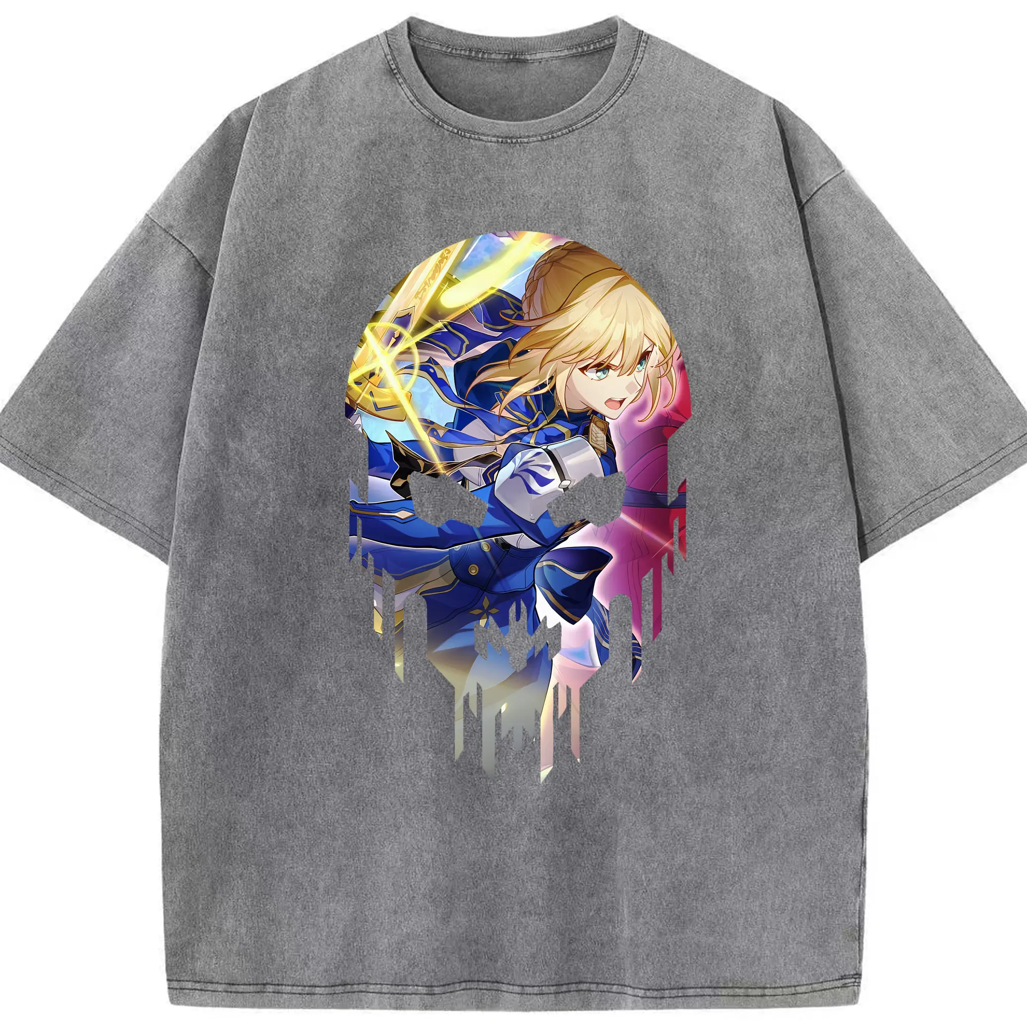 FGO グッズ,アルトリア - 綿100% ヴィンテージ風 半袖Tシャツ ・ 背面プリント ・ 柔らか肌触り ・ 通気性 快適 ・ スポーツ カジュアル 外出用