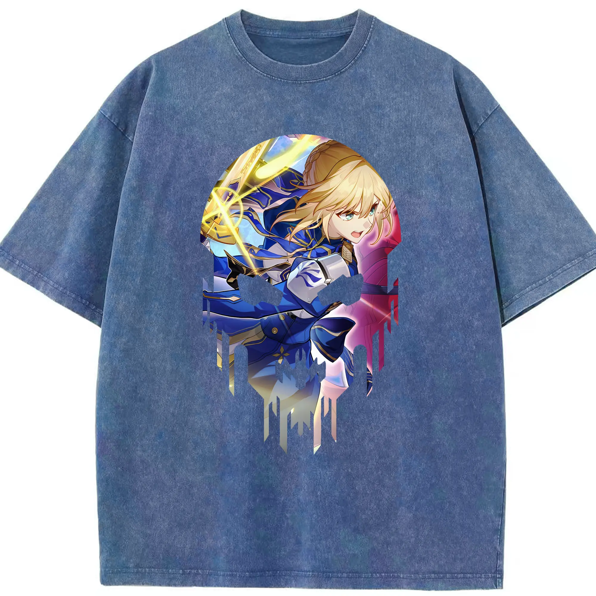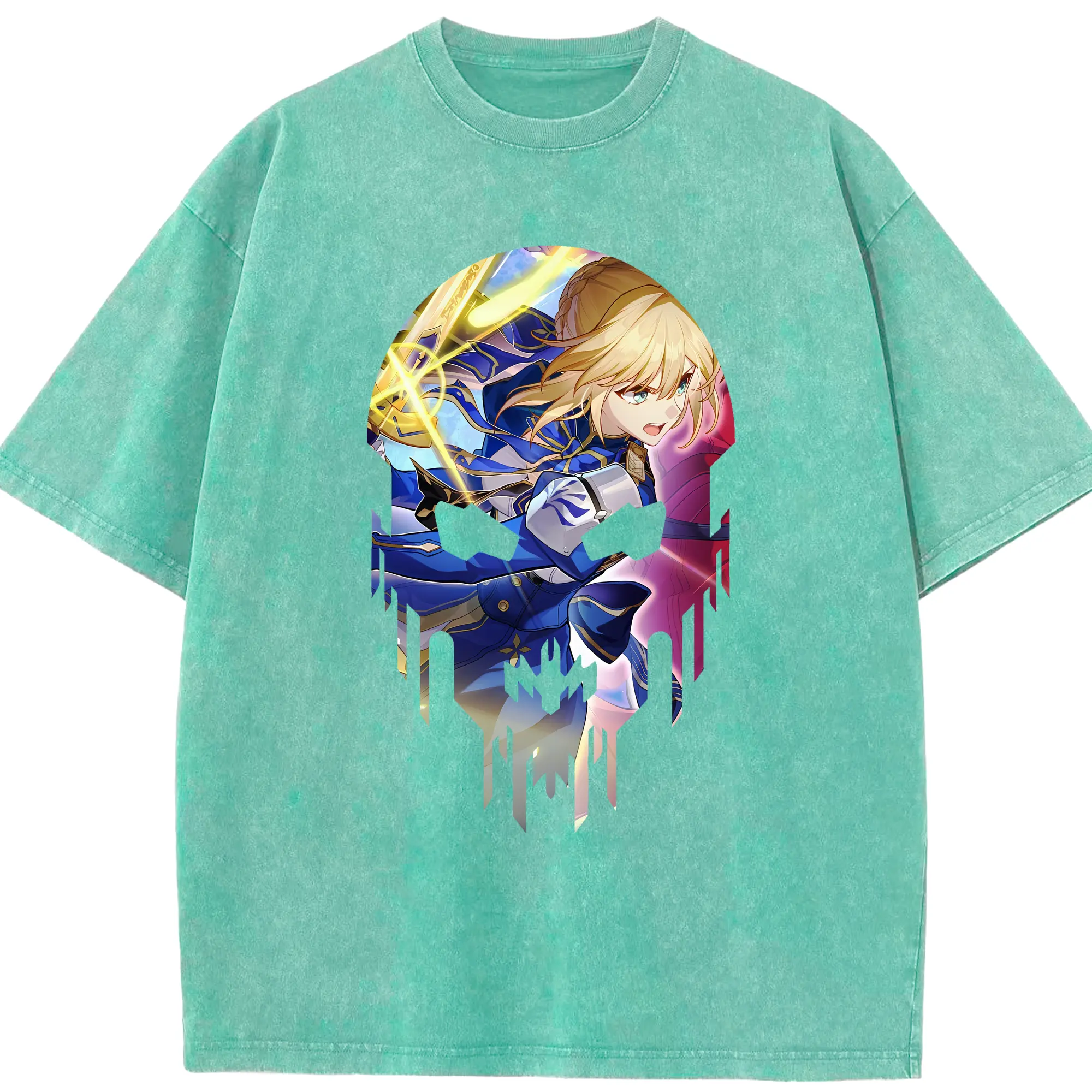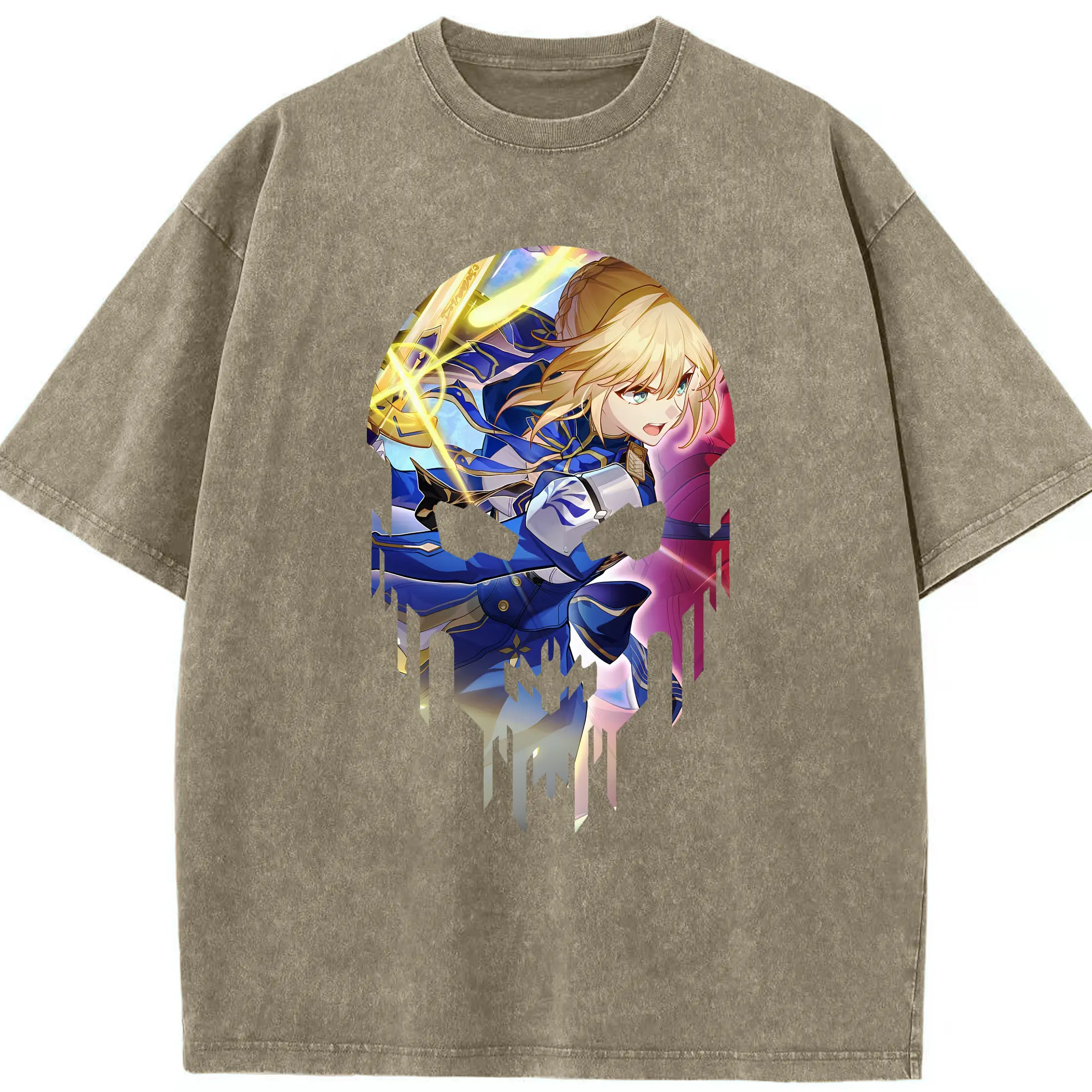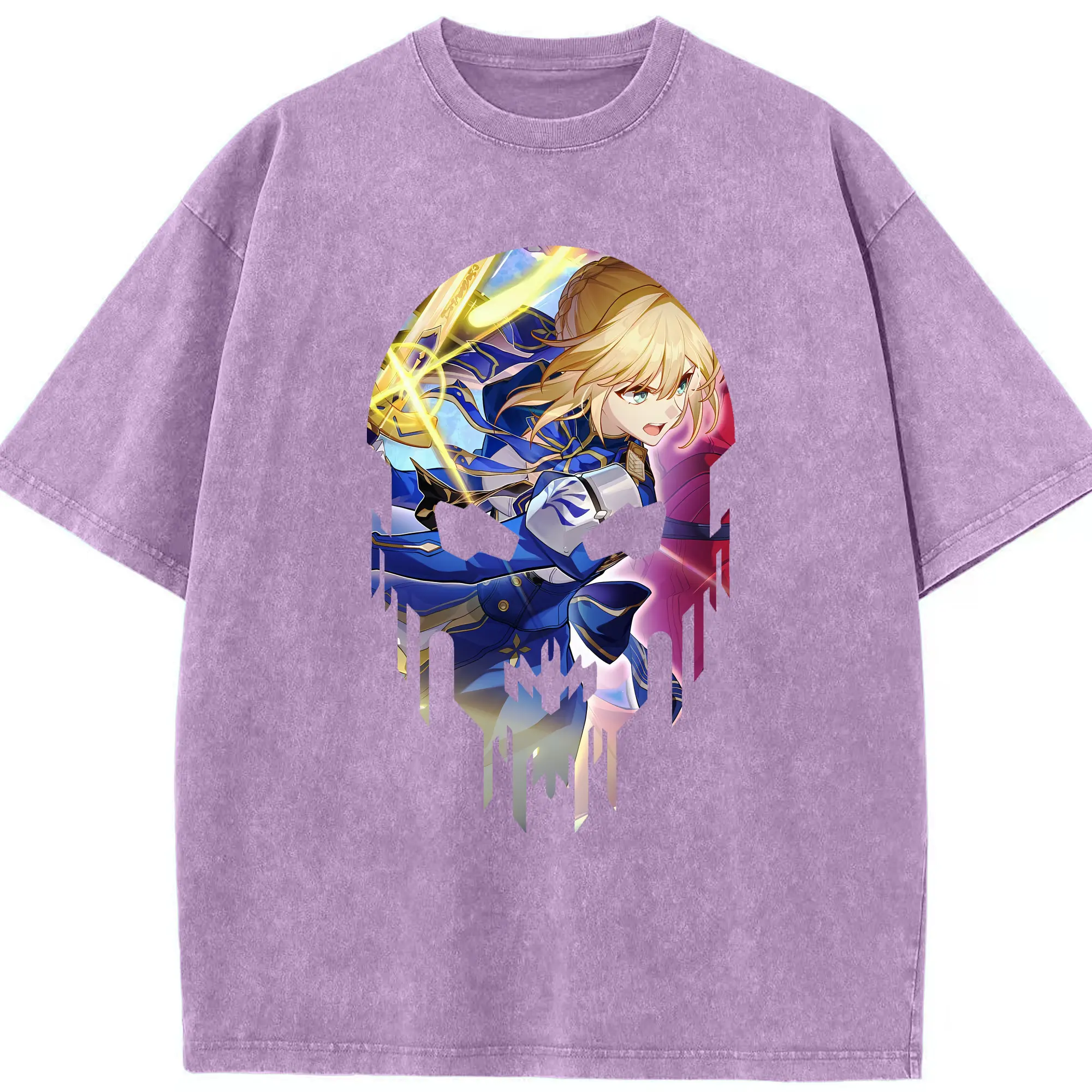 FGO グッズ,アルトリア - 綿100% ヴィンテージ風 半袖Tシャツ ・ 背面プリント ・ 柔らか肌触り ・ 通気性 快適 ・ スポーツ カジュアル 外出用