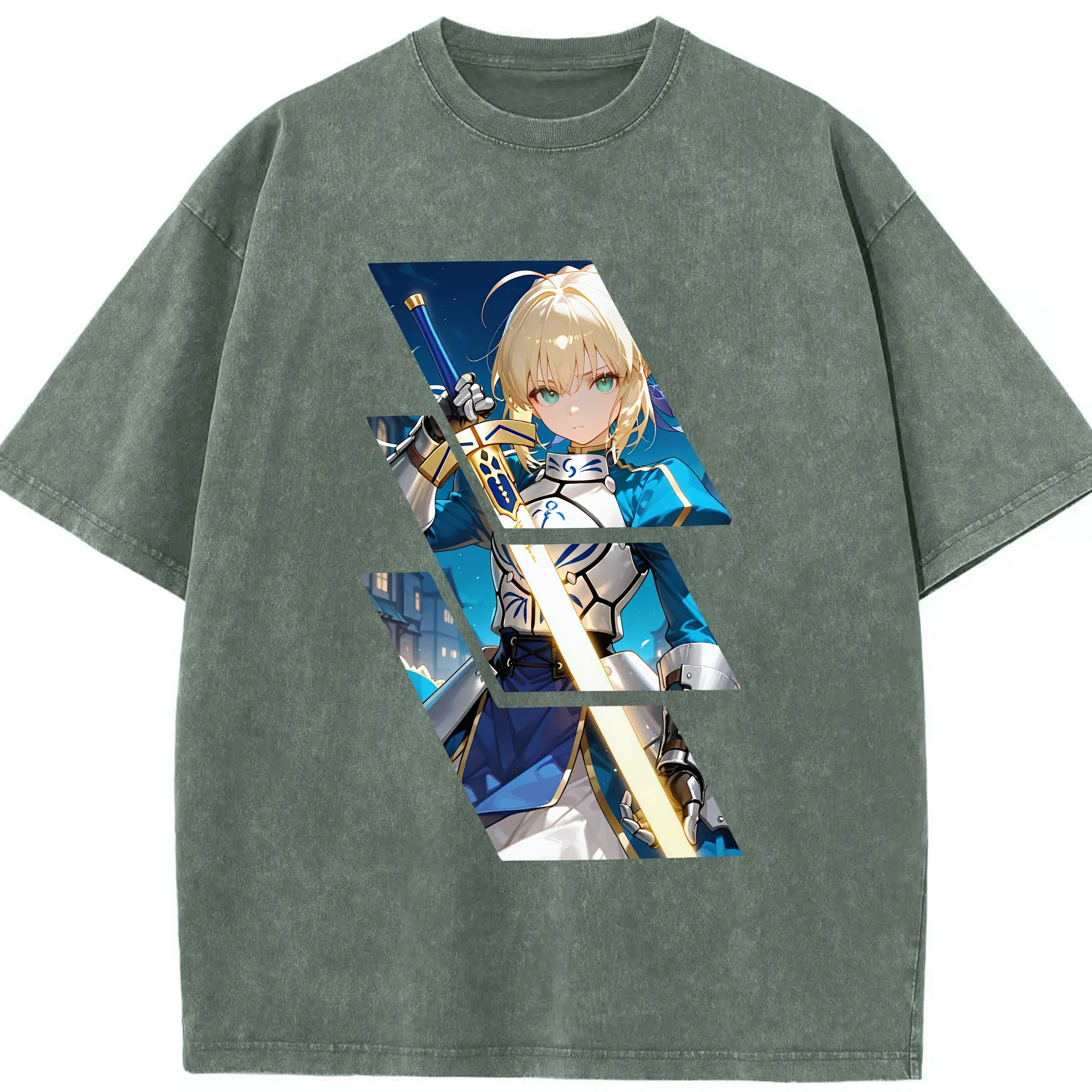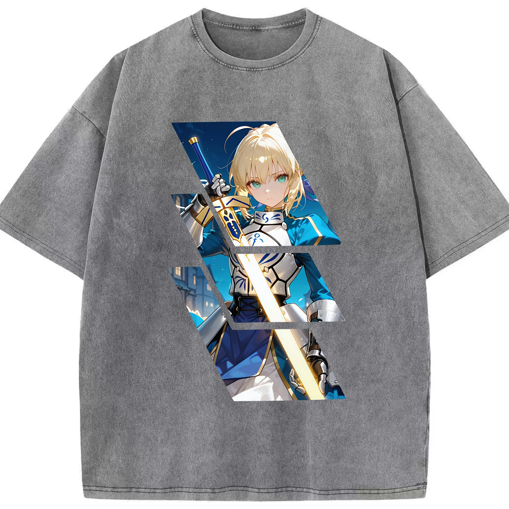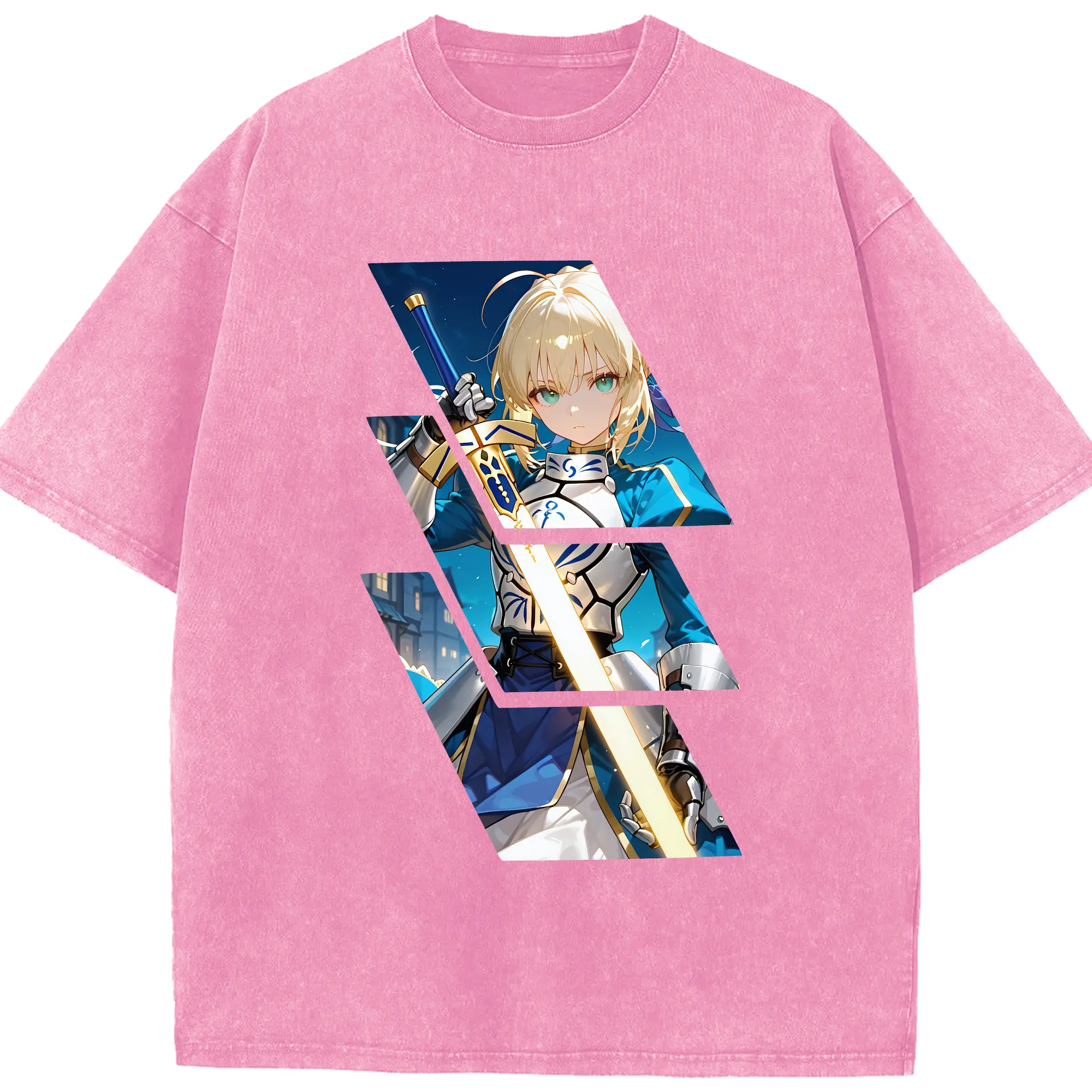 FGO グッズ,アルトリア - 綿100% ヴィンテージ風 半袖Tシャツ ・ 背面プリント ・ 柔らか肌触り ・ 通気性 快適 ・ スポーツ カジュアル 外出用