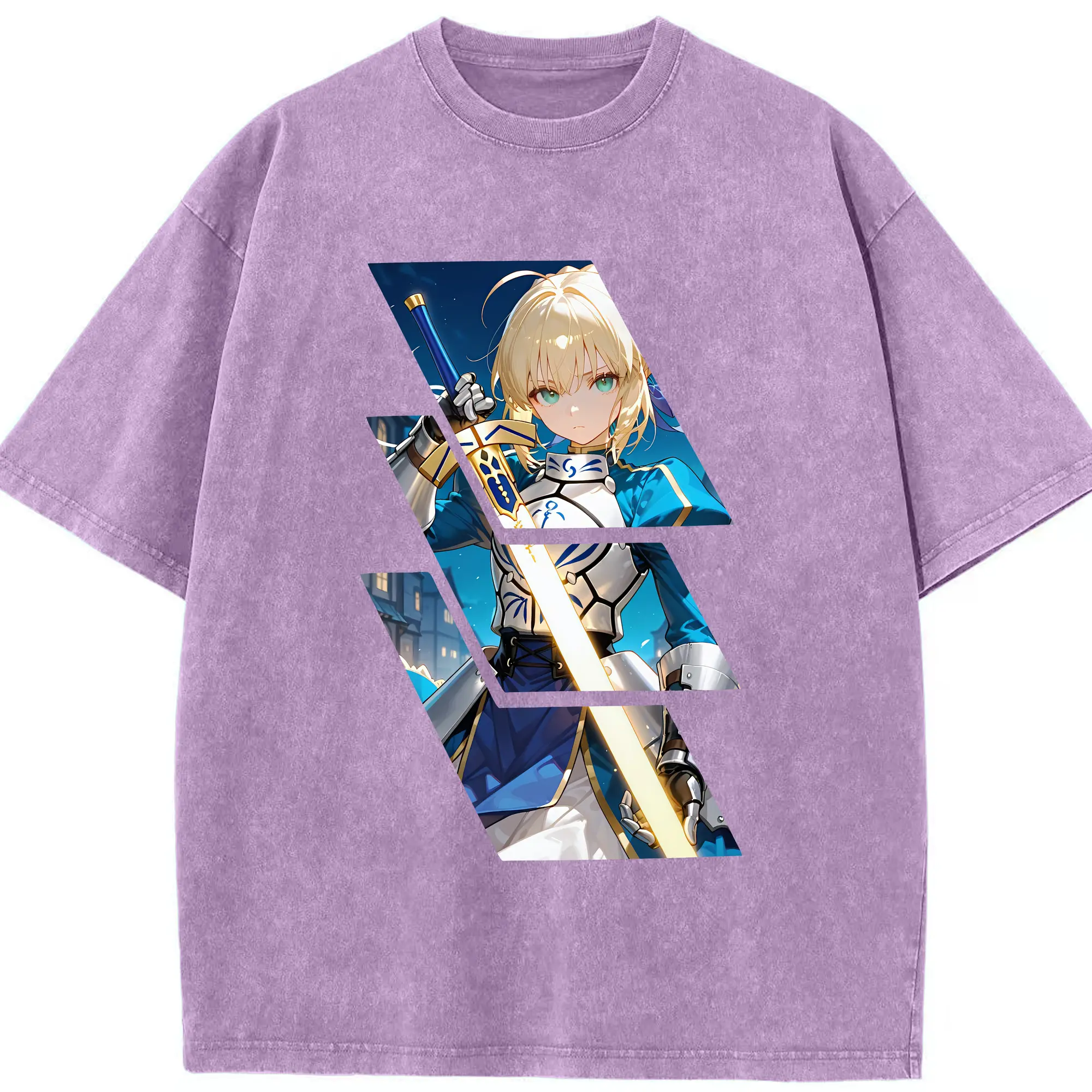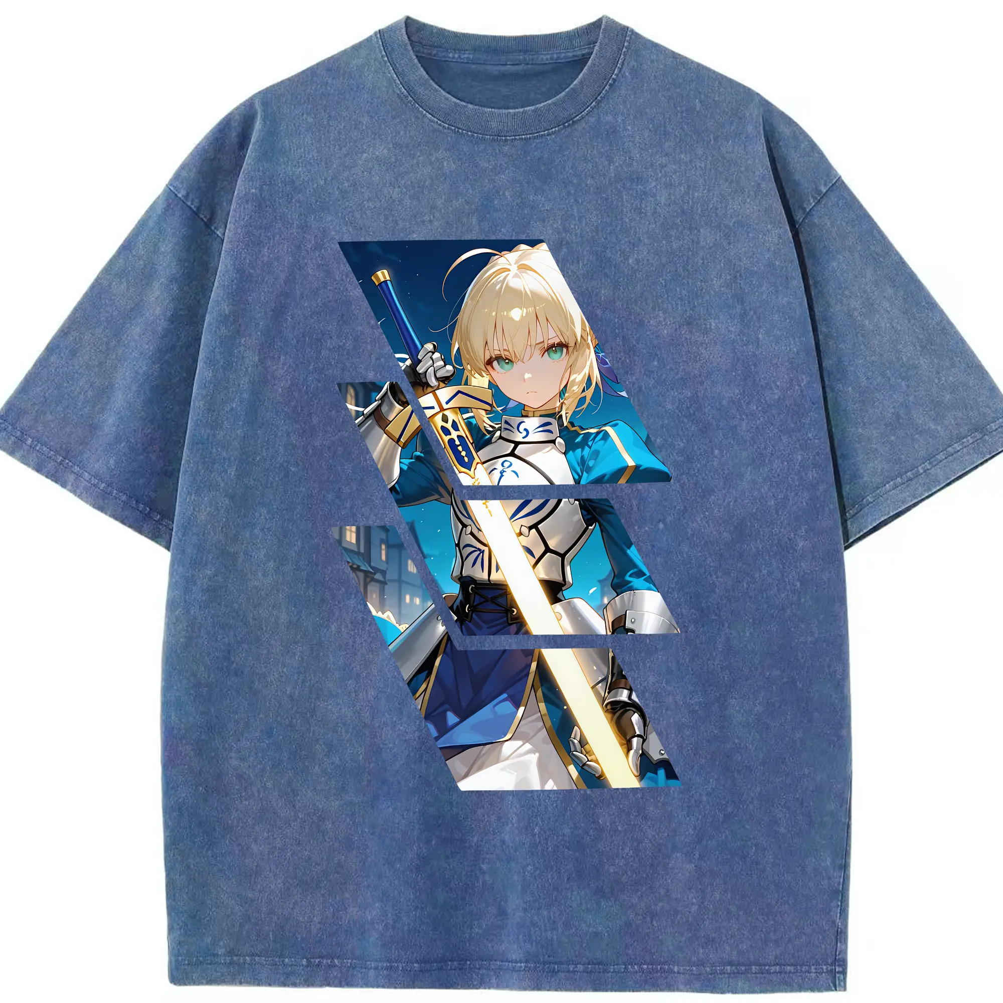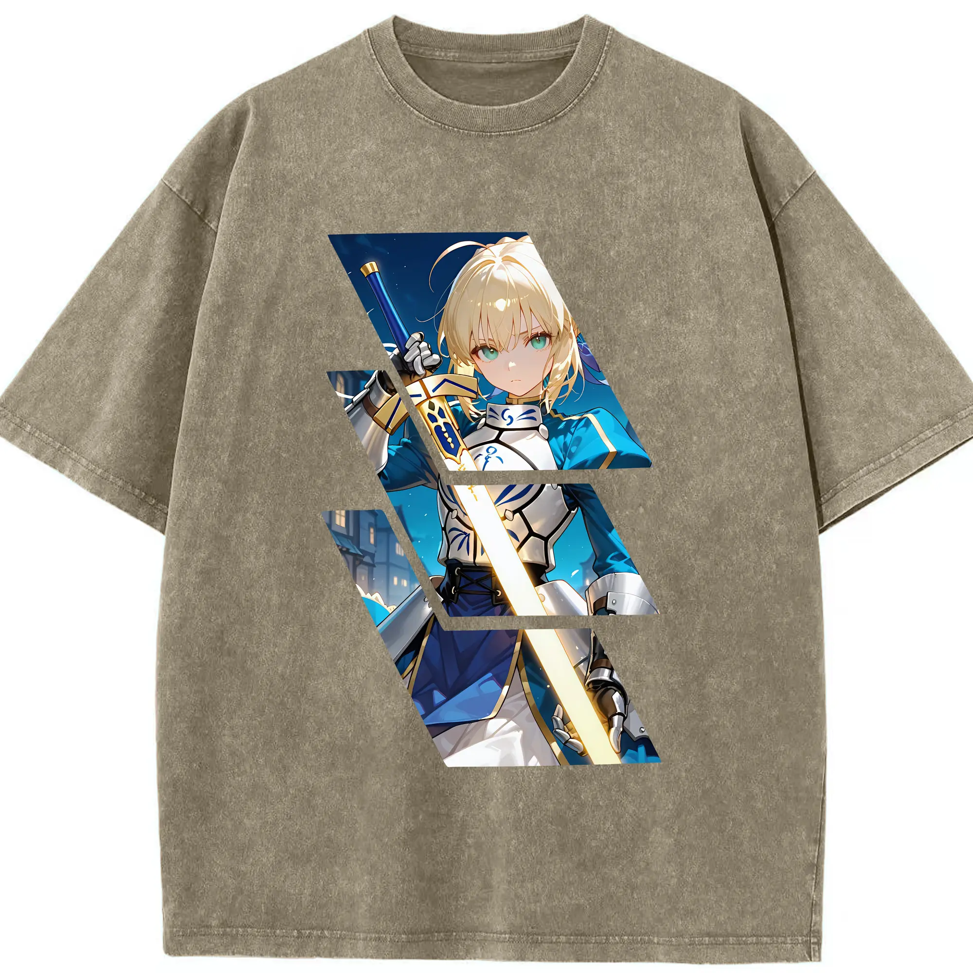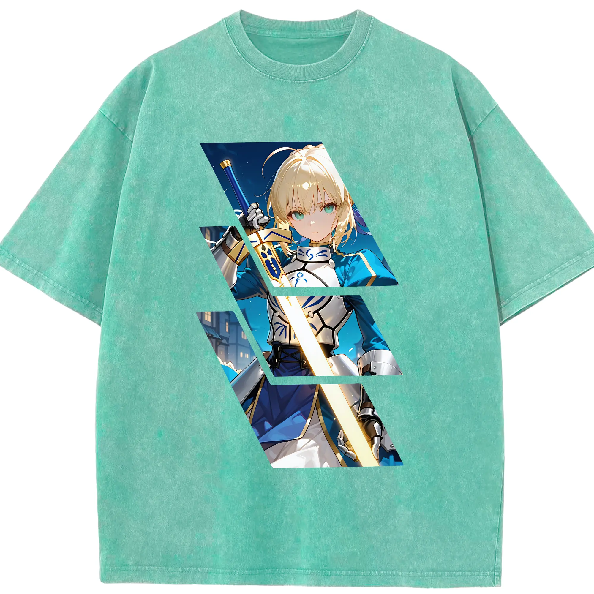 FGO グッズ,アルトリア - 綿100% ヴィンテージ風 半袖Tシャツ ・ 背面プリント ・ 柔らか肌触り ・ 通気性 快適 ・ スポーツ カジュアル 外出用