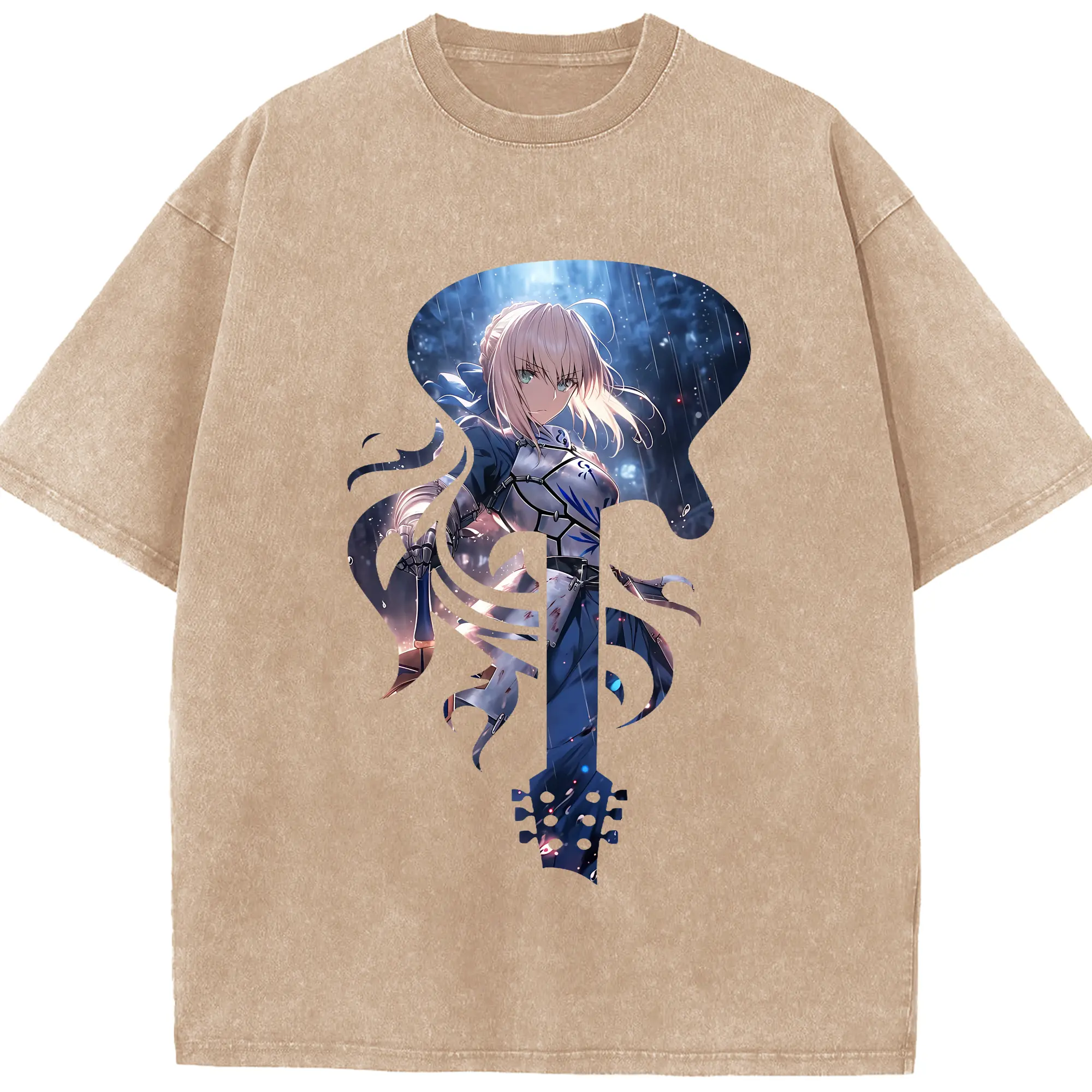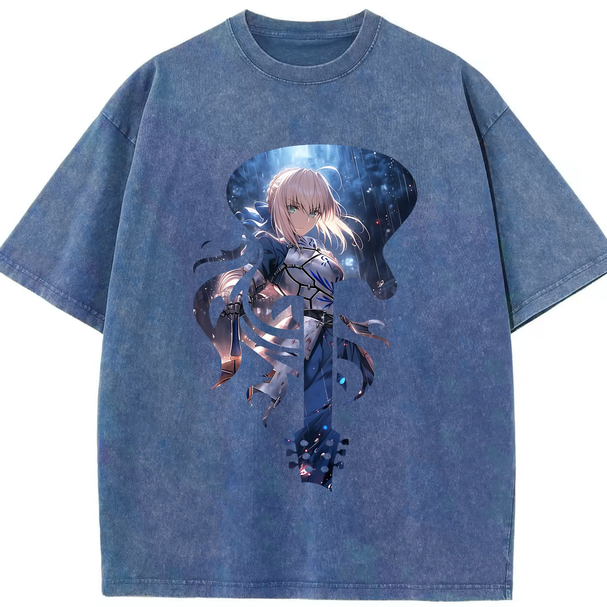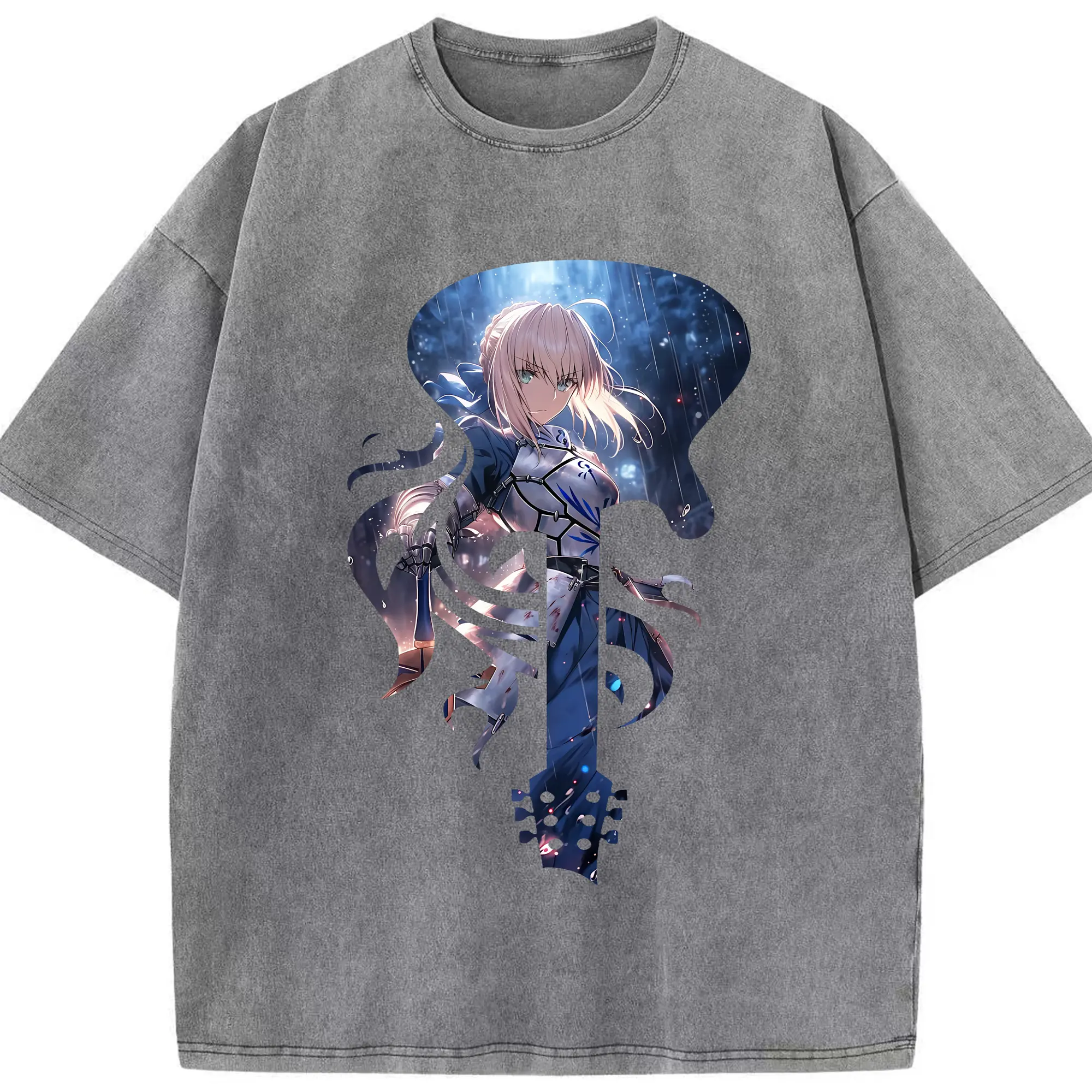 FGO グッズ,アルトリア - 綿100% ヴィンテージ風 半袖Tシャツ ・ 背面プリント ・ 柔らか肌触り ・ 通気性 快適 ・ スポーツ カジュアル 外出用