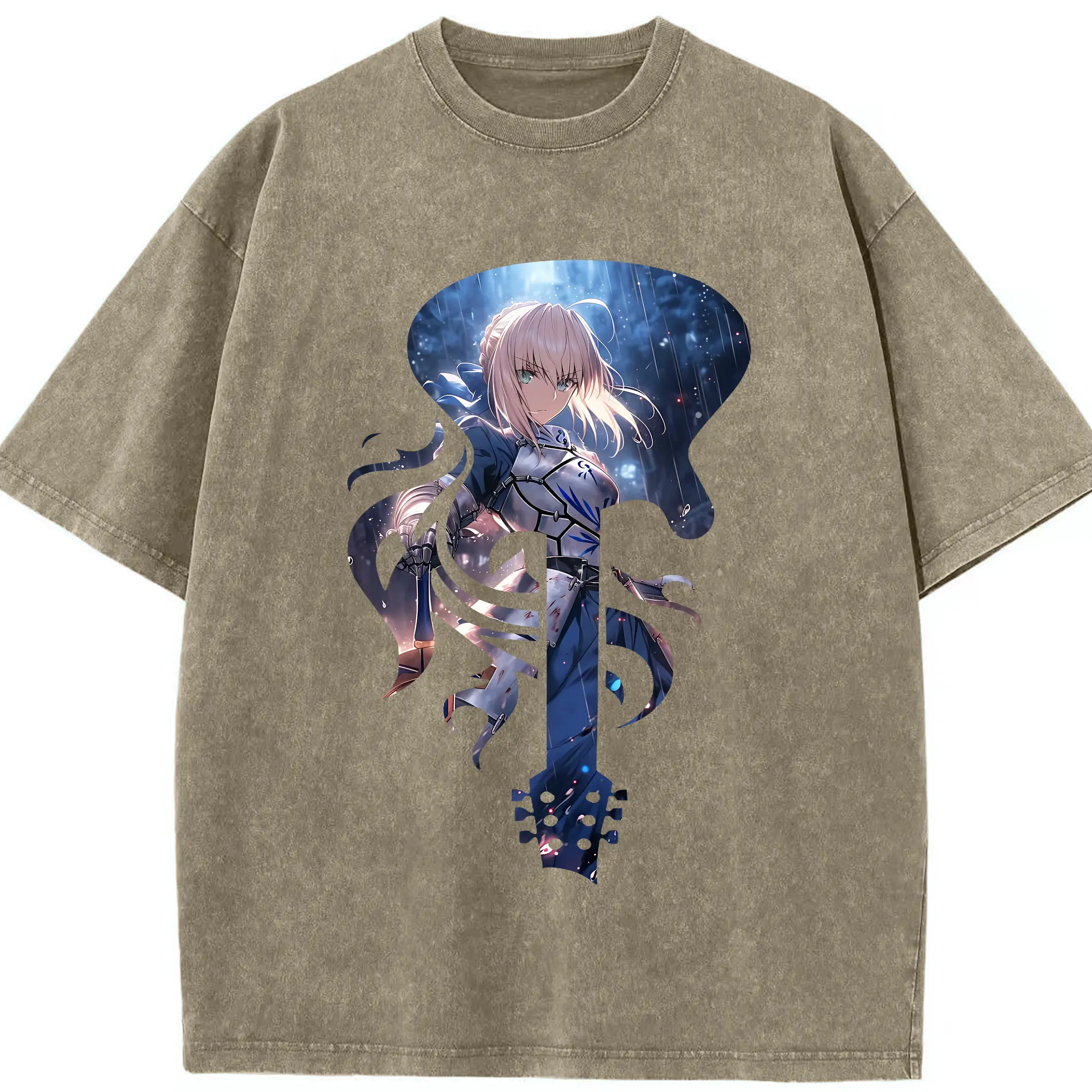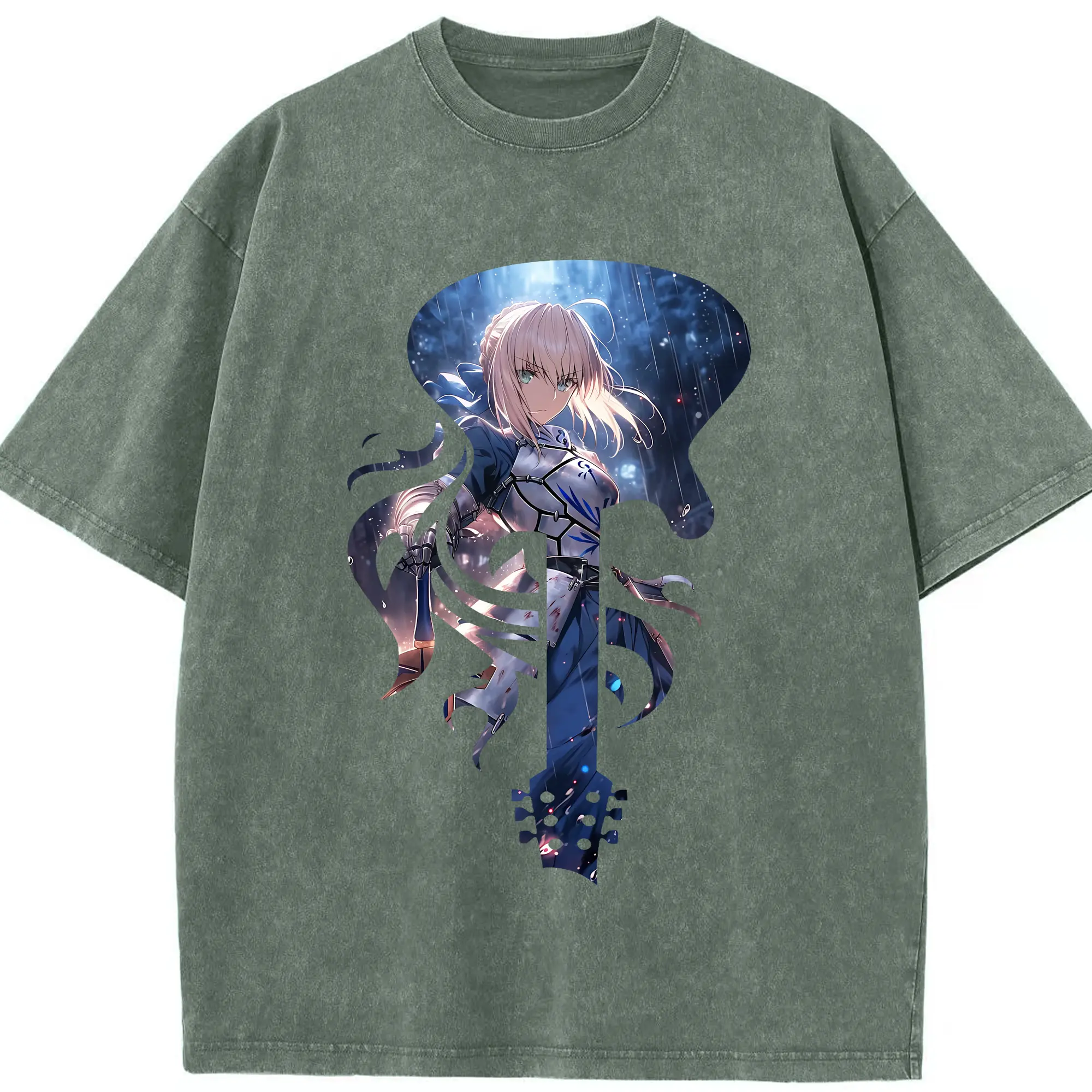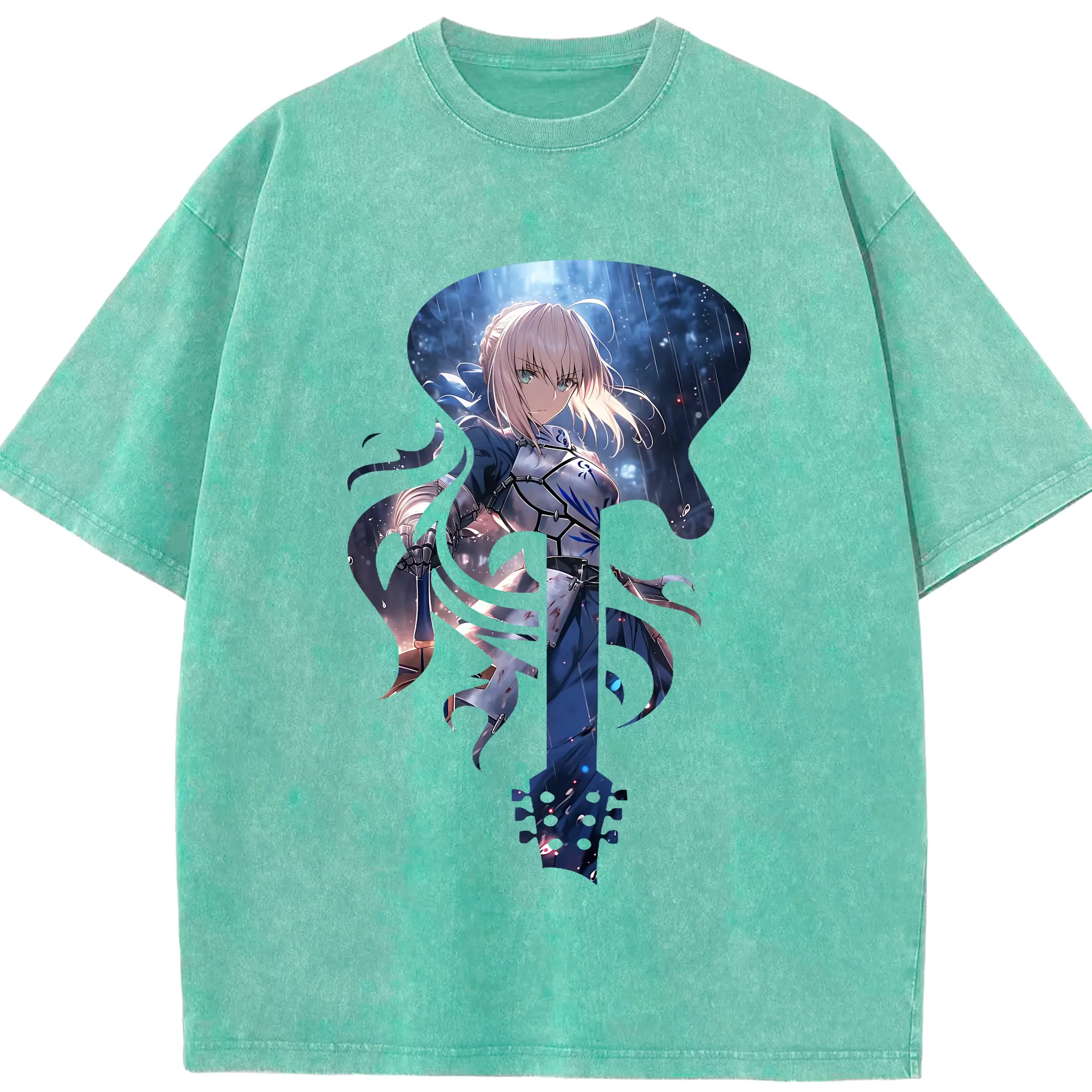 FGO グッズ,アルトリア - 綿100% ヴィンテージ風 半袖Tシャツ ・ 背面プリント ・ 柔らか肌触り ・ 通気性 快適 ・ スポーツ カジュアル 外出用