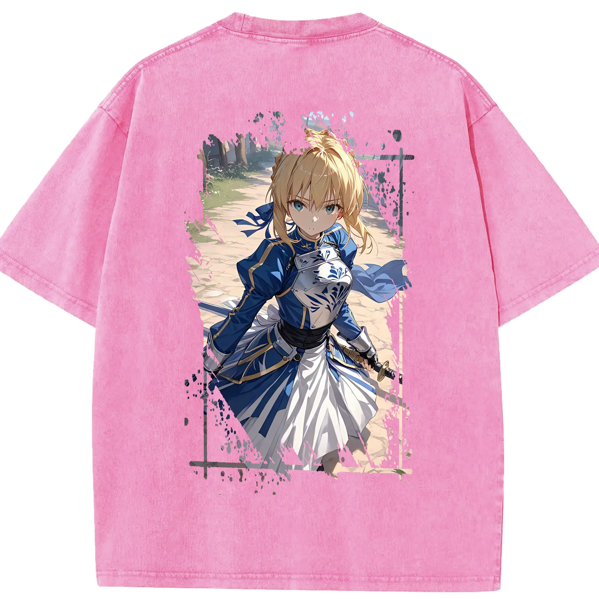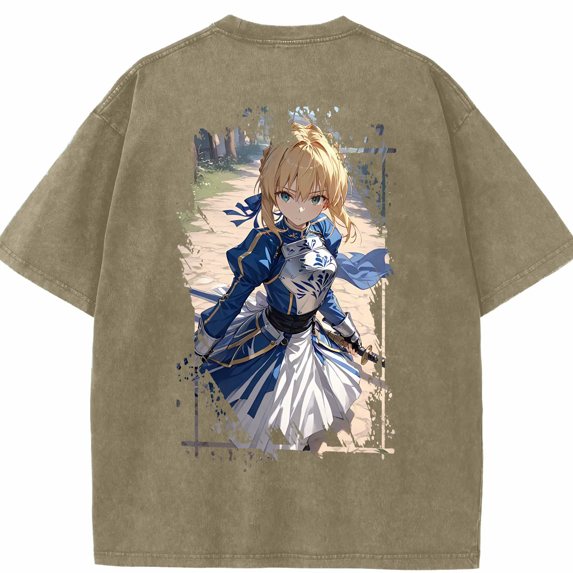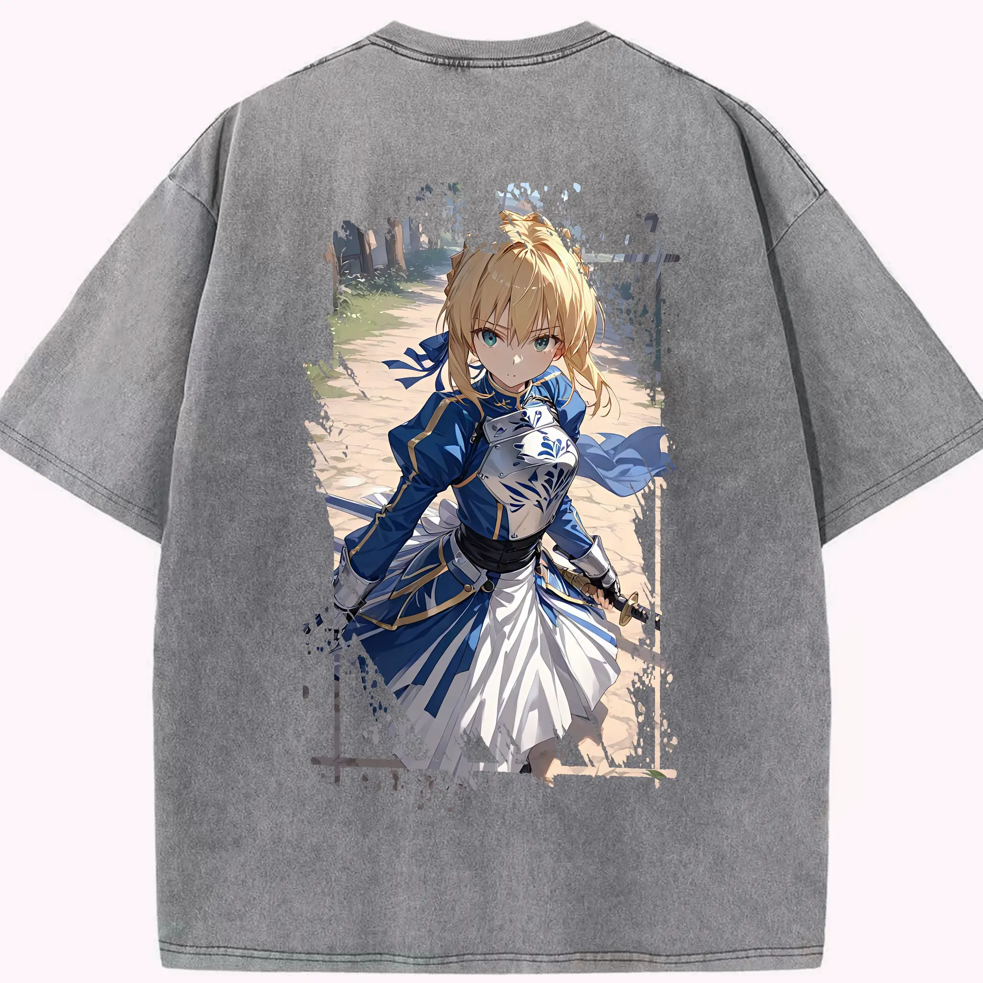 FGO グッズ,アルトリア - 綿100% ヴィンテージ風 半袖Tシャツ ・ フロントプリント ・ 柔らか肌触り ・ 通気性 快適 ・ スポーツ カジュアル 外出用