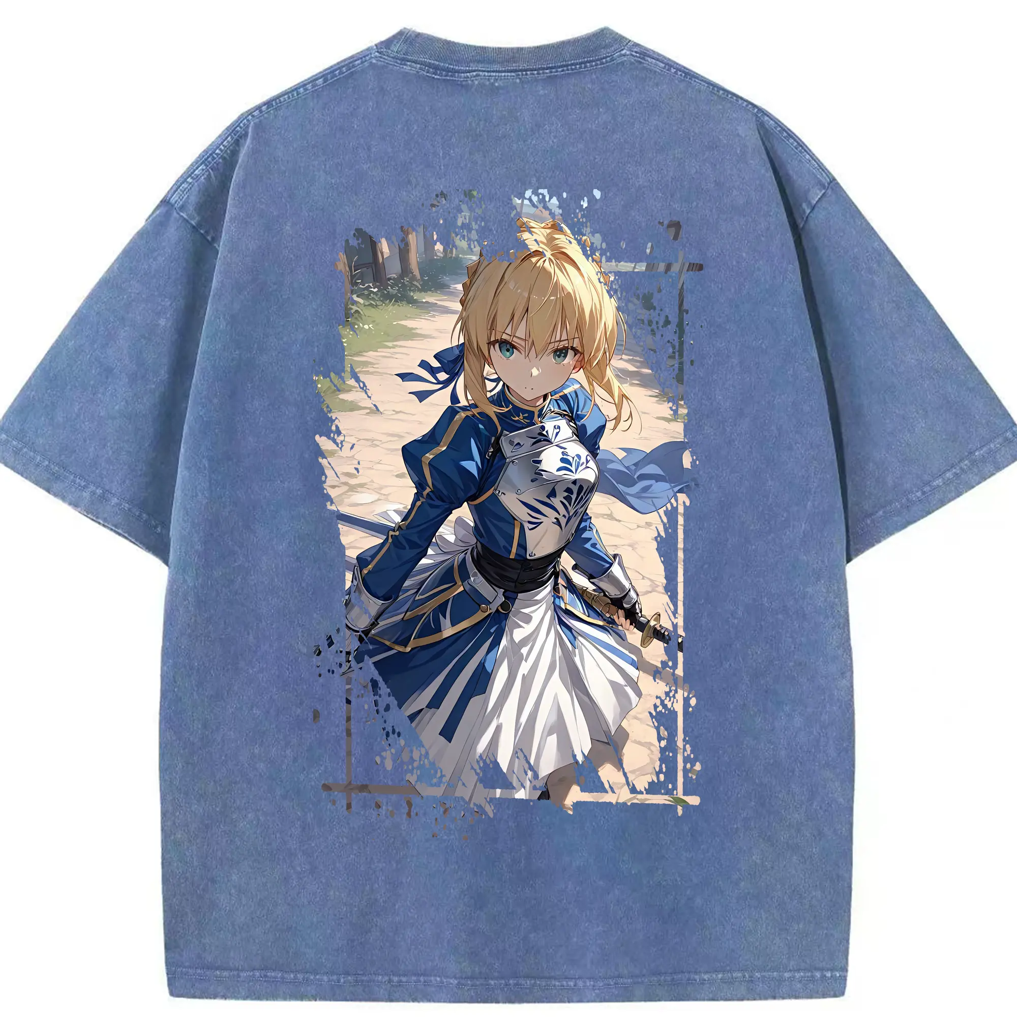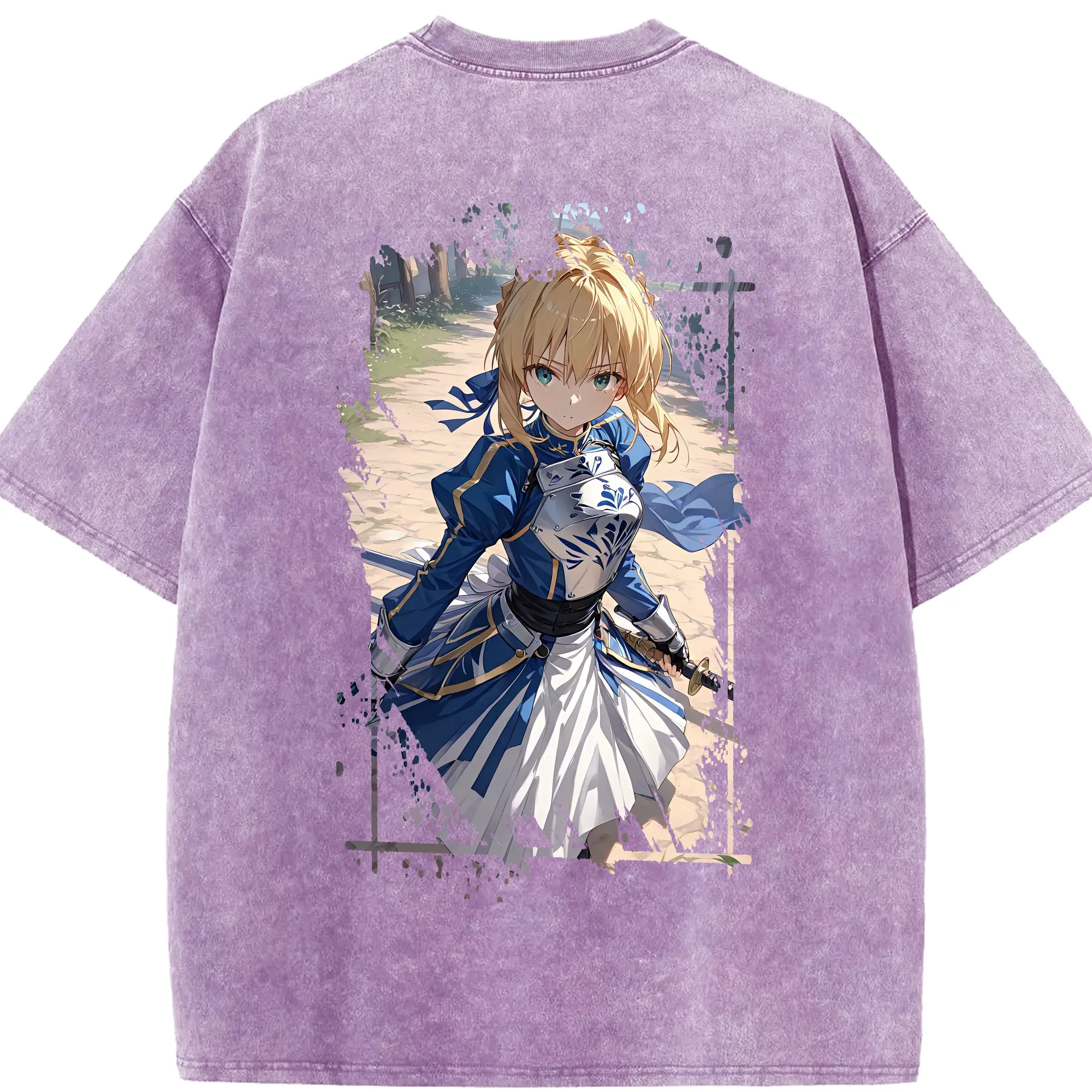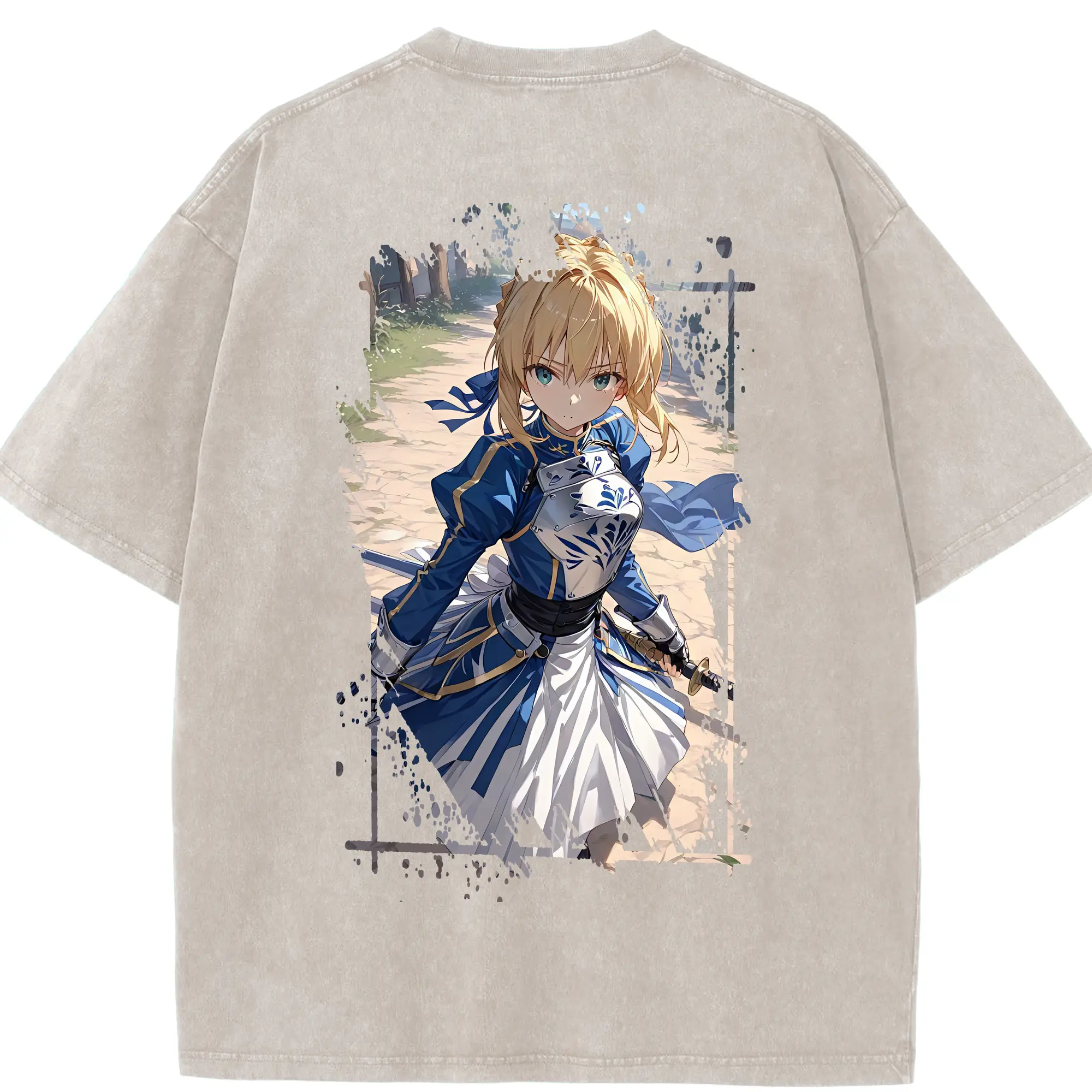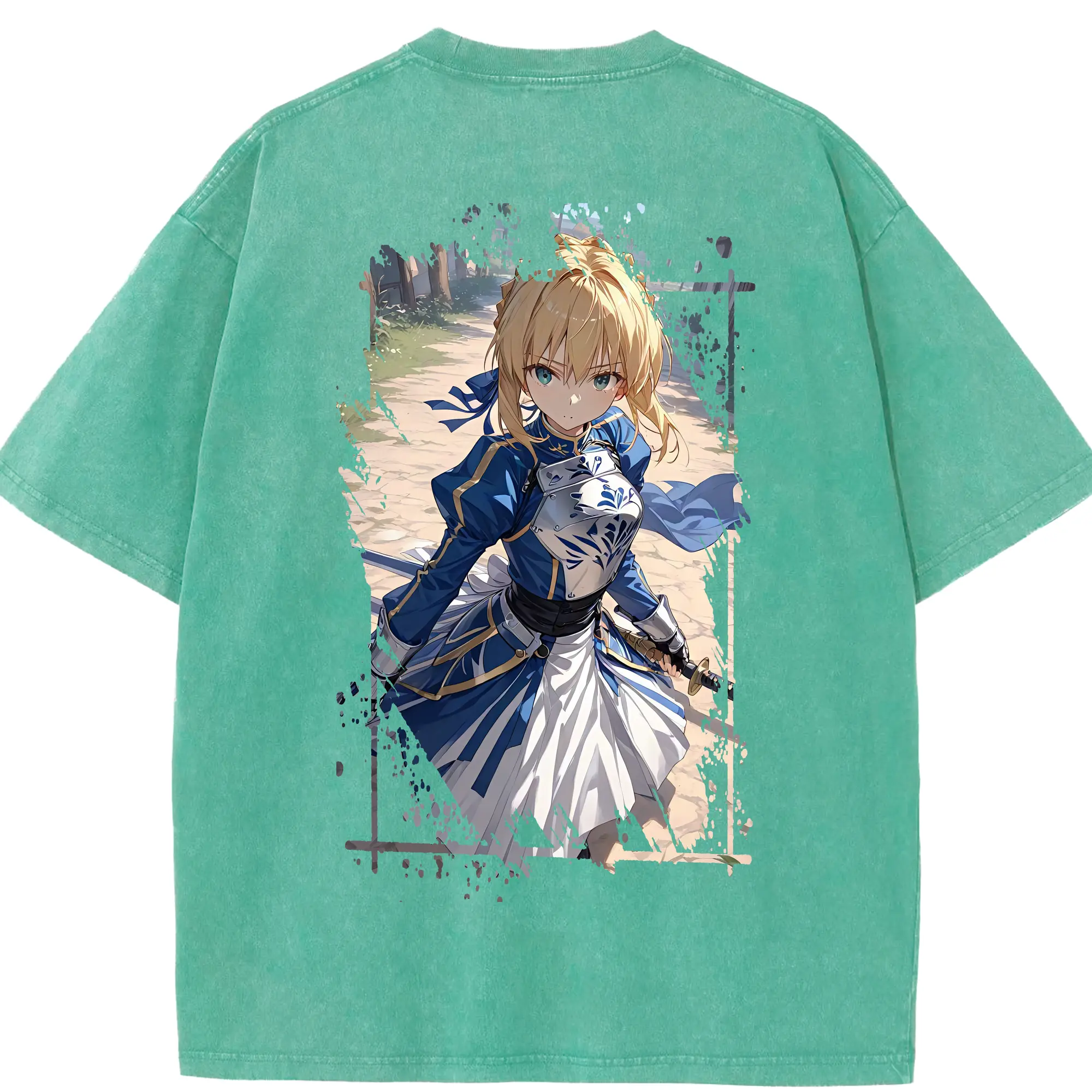 FGO グッズ,アルトリア - 綿100% ヴィンテージ風 半袖Tシャツ ・ フロントプリント ・ 柔らか肌触り ・ 通気性 快適 ・ スポーツ カジュアル 外出用