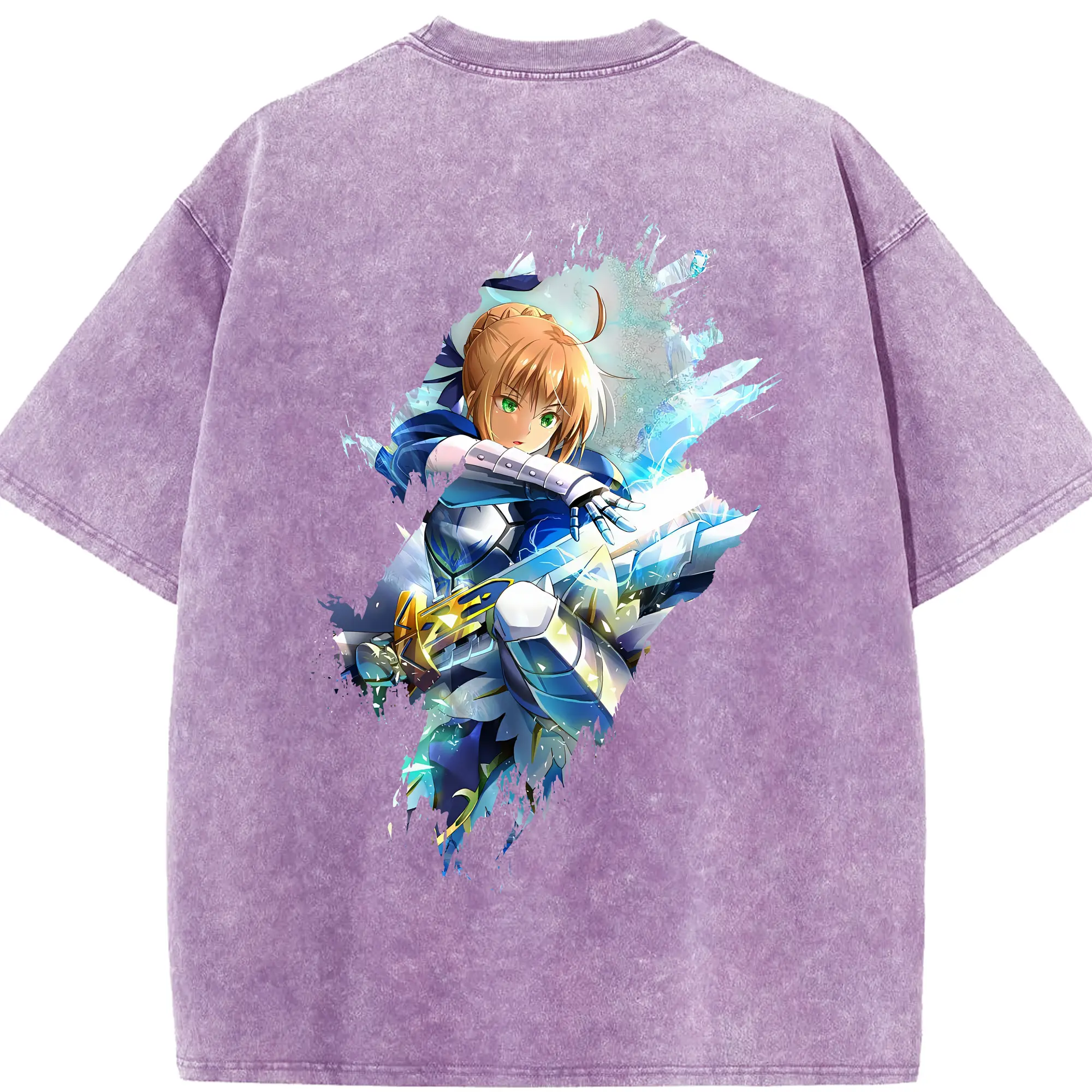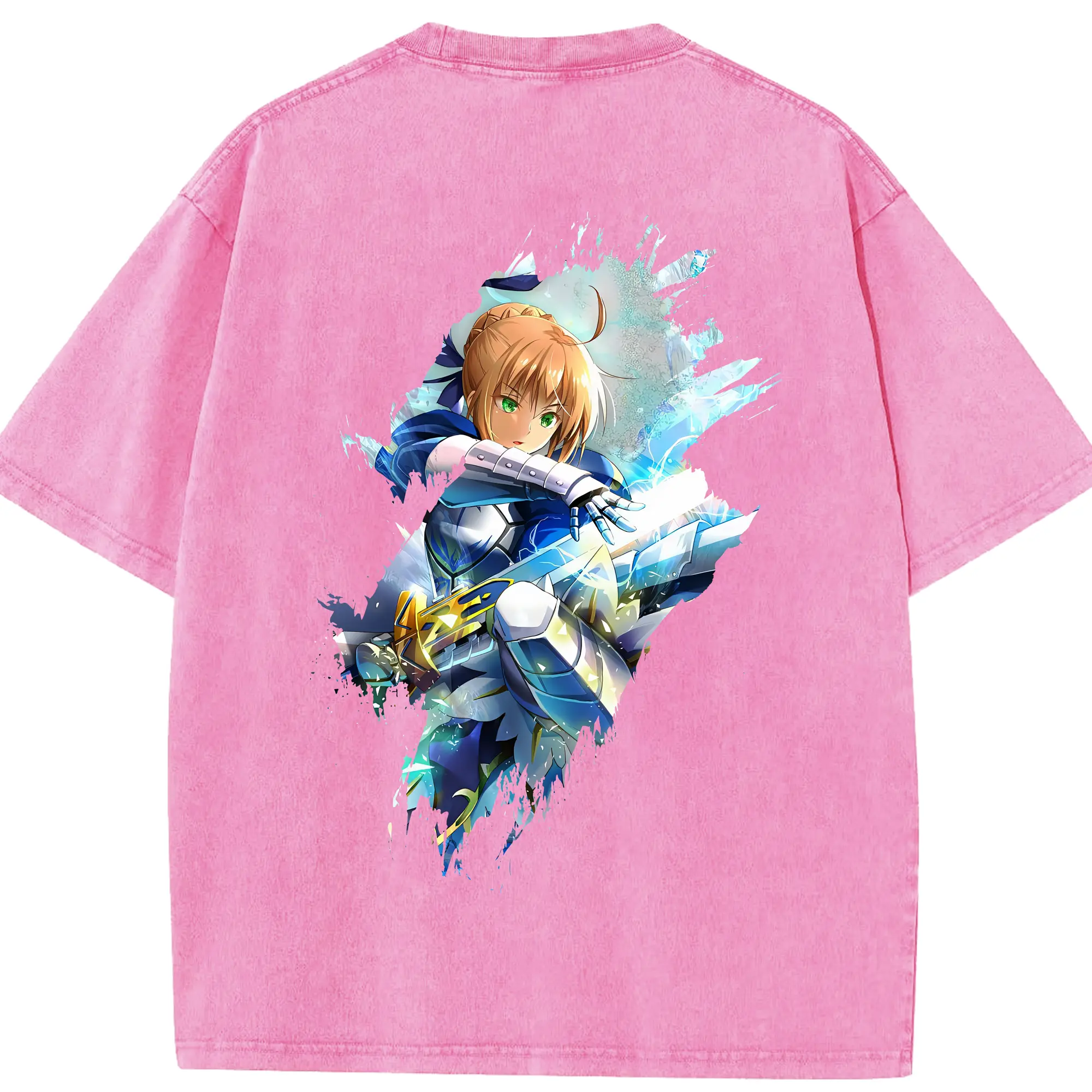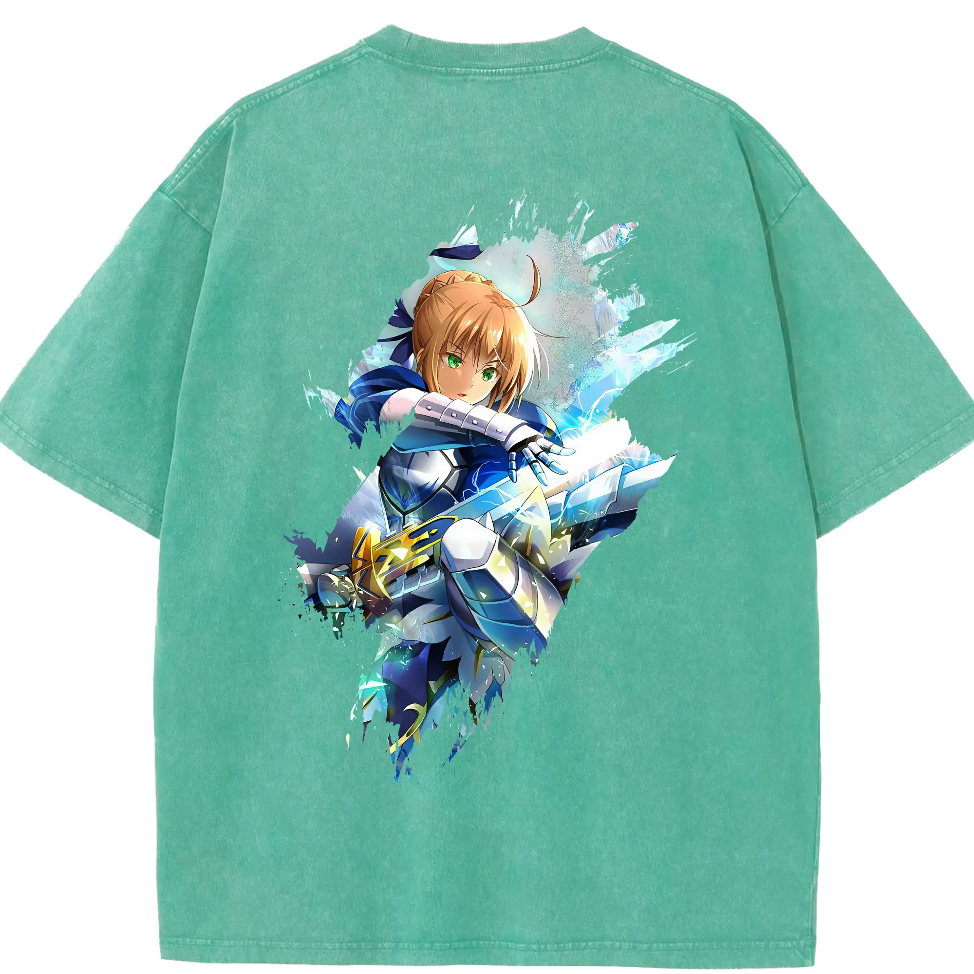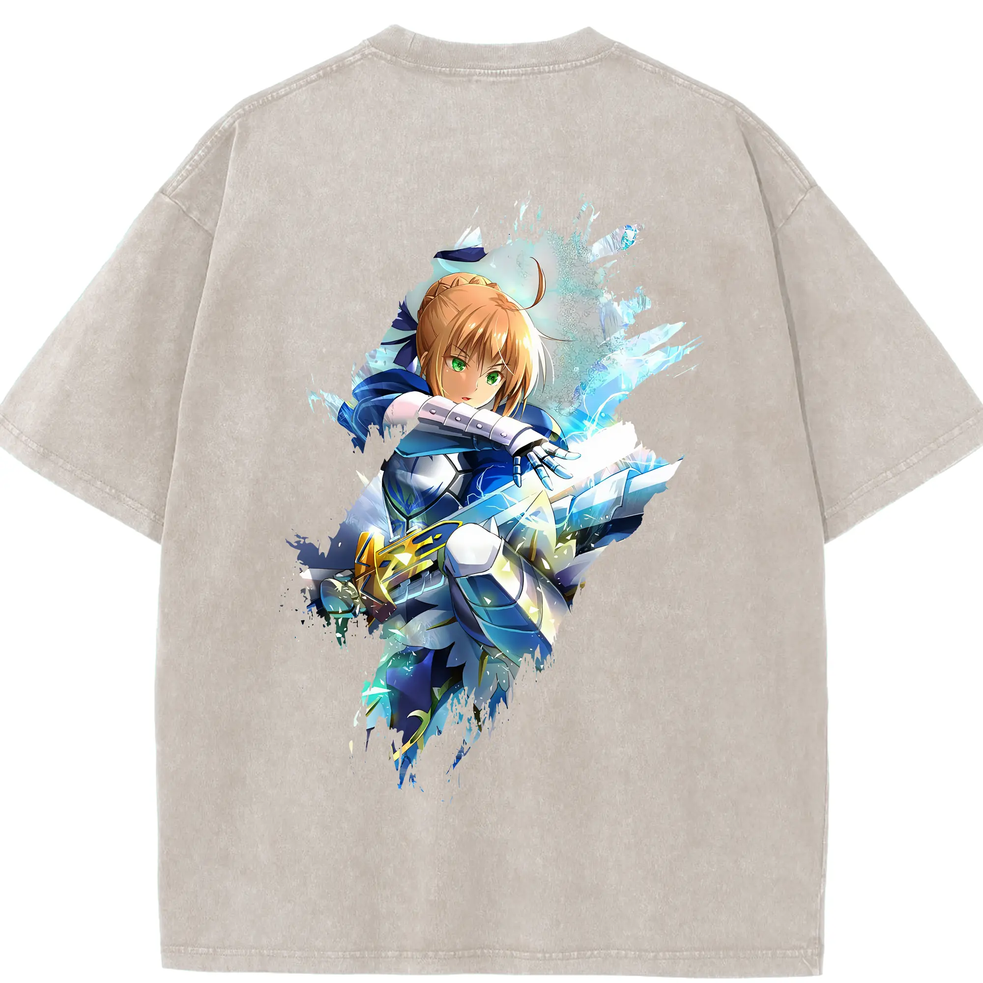 FGO グッズ,アルトリア - 綿100% ヴィンテージ風 半袖Tシャツ ・ フロントプリント ・ 柔らか肌触り ・ 通気性 快適 ・ スポーツ カジュアル 外出用