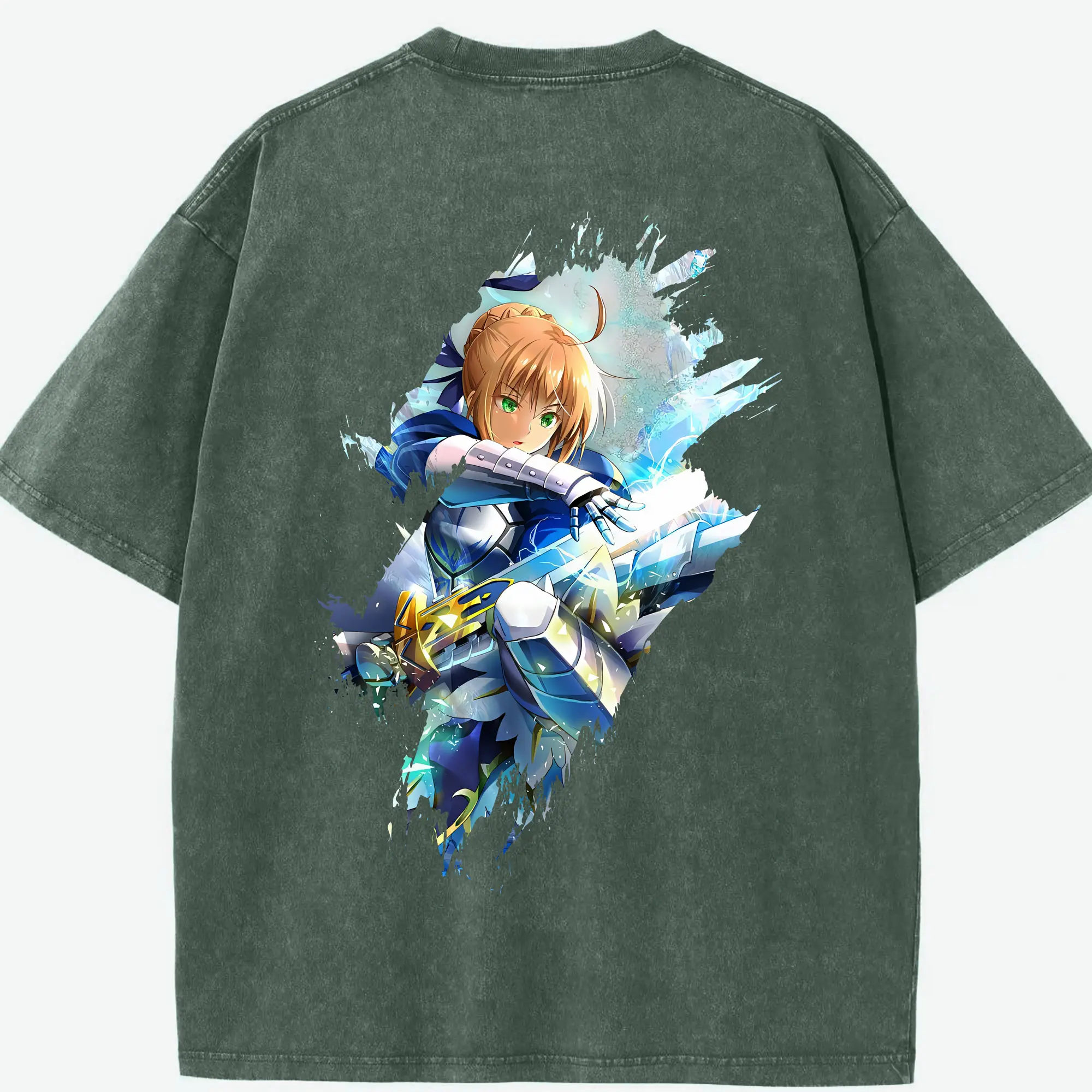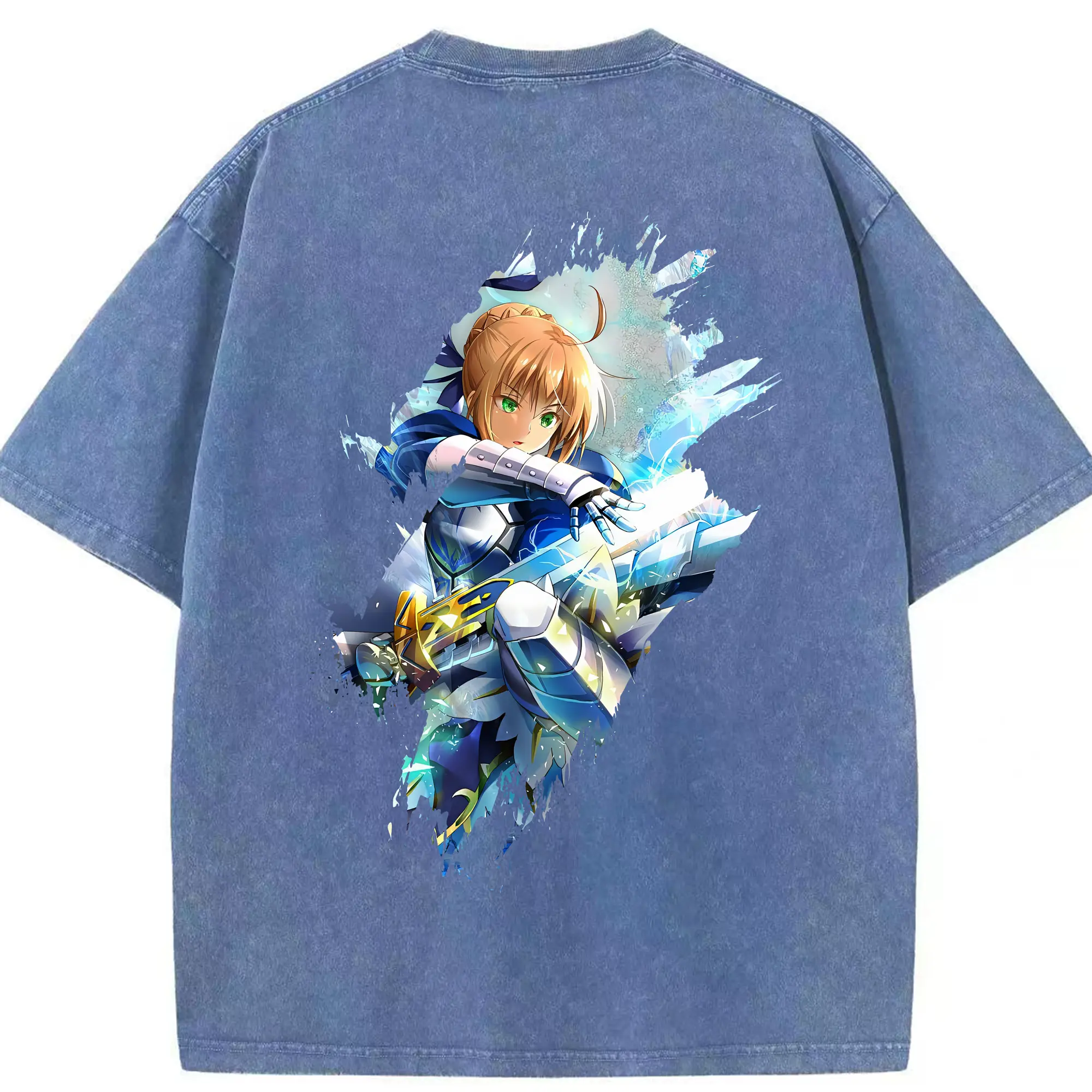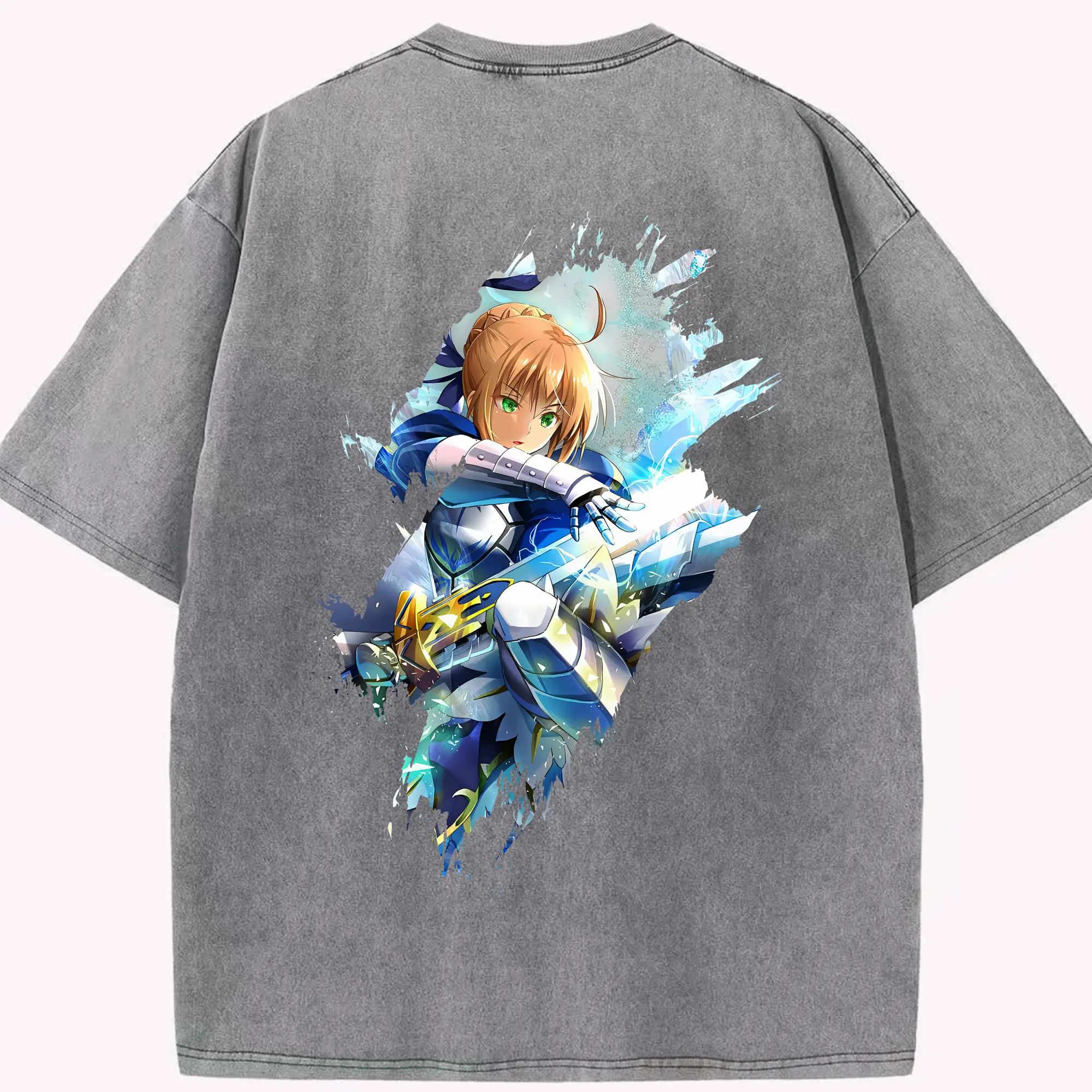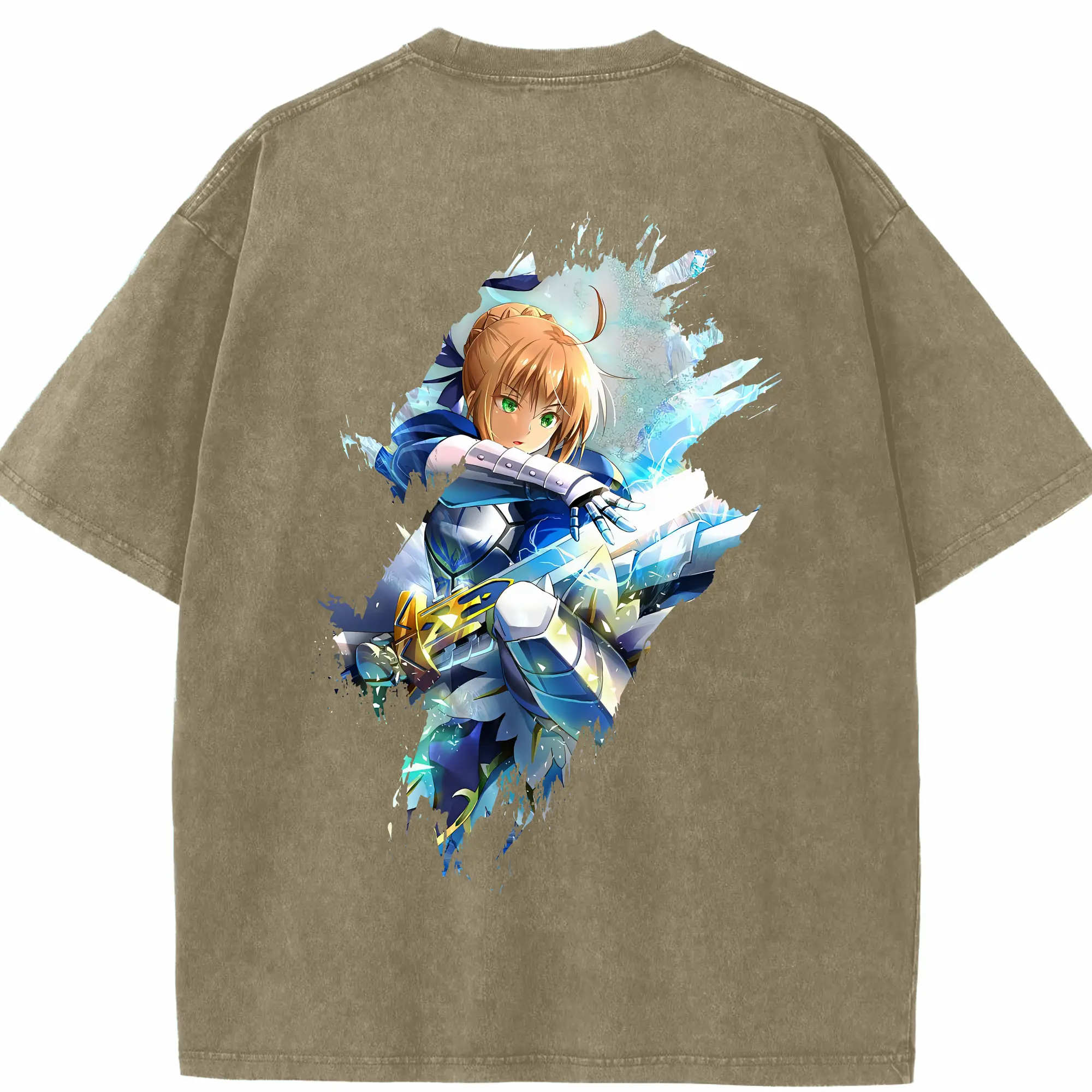 FGO グッズ,アルトリア - 綿100% ヴィンテージ風 半袖Tシャツ ・ フロントプリント ・ 柔らか肌触り ・ 通気性 快適 ・ スポーツ カジュアル 外出用