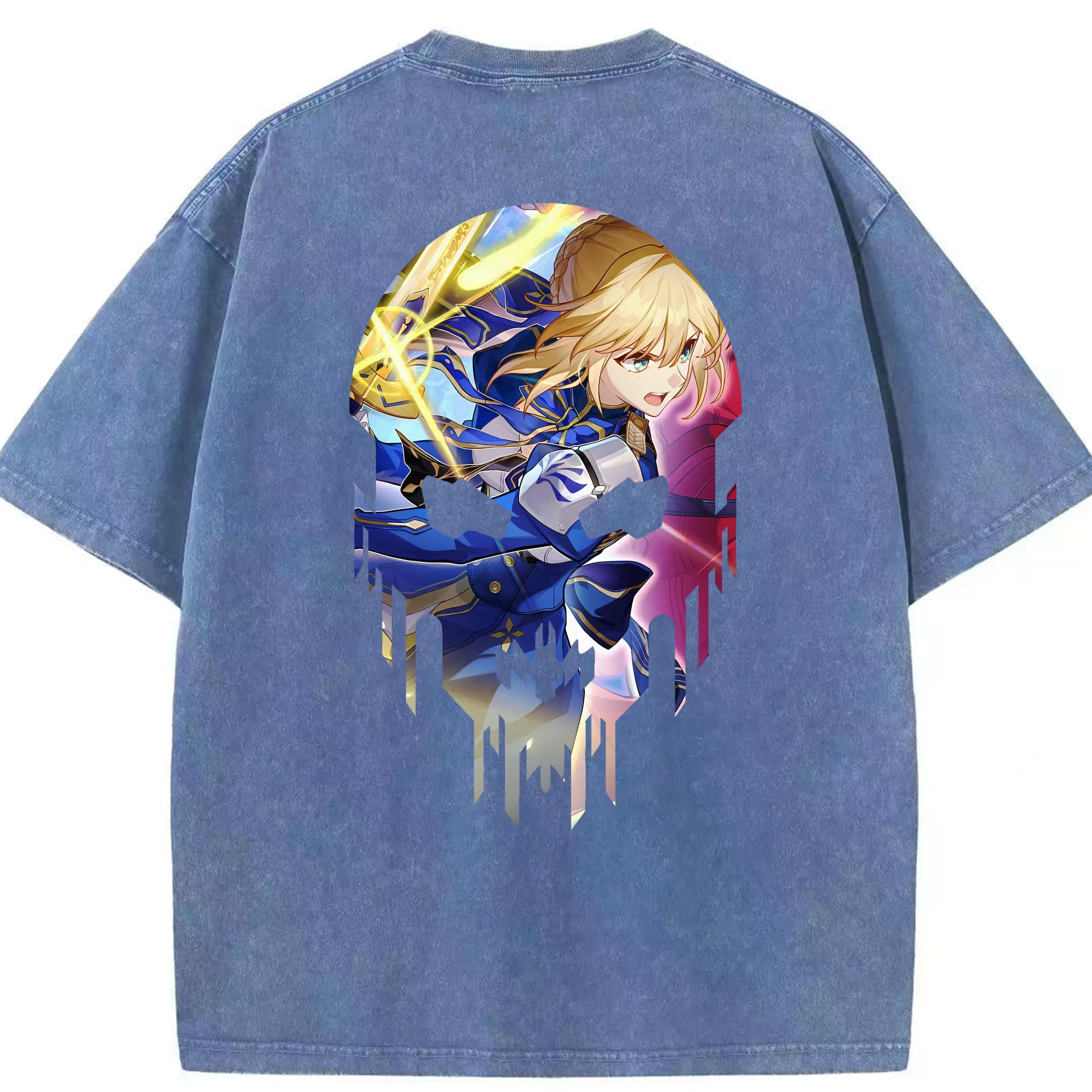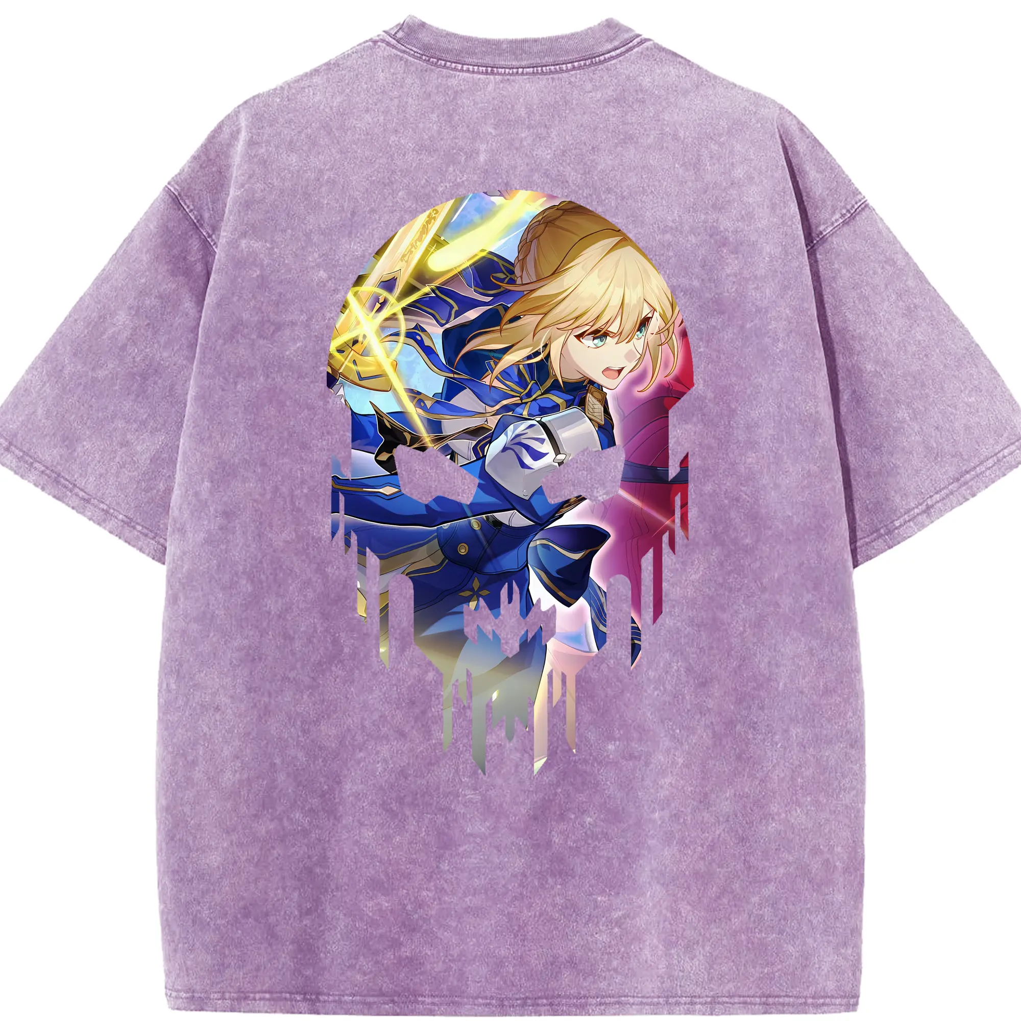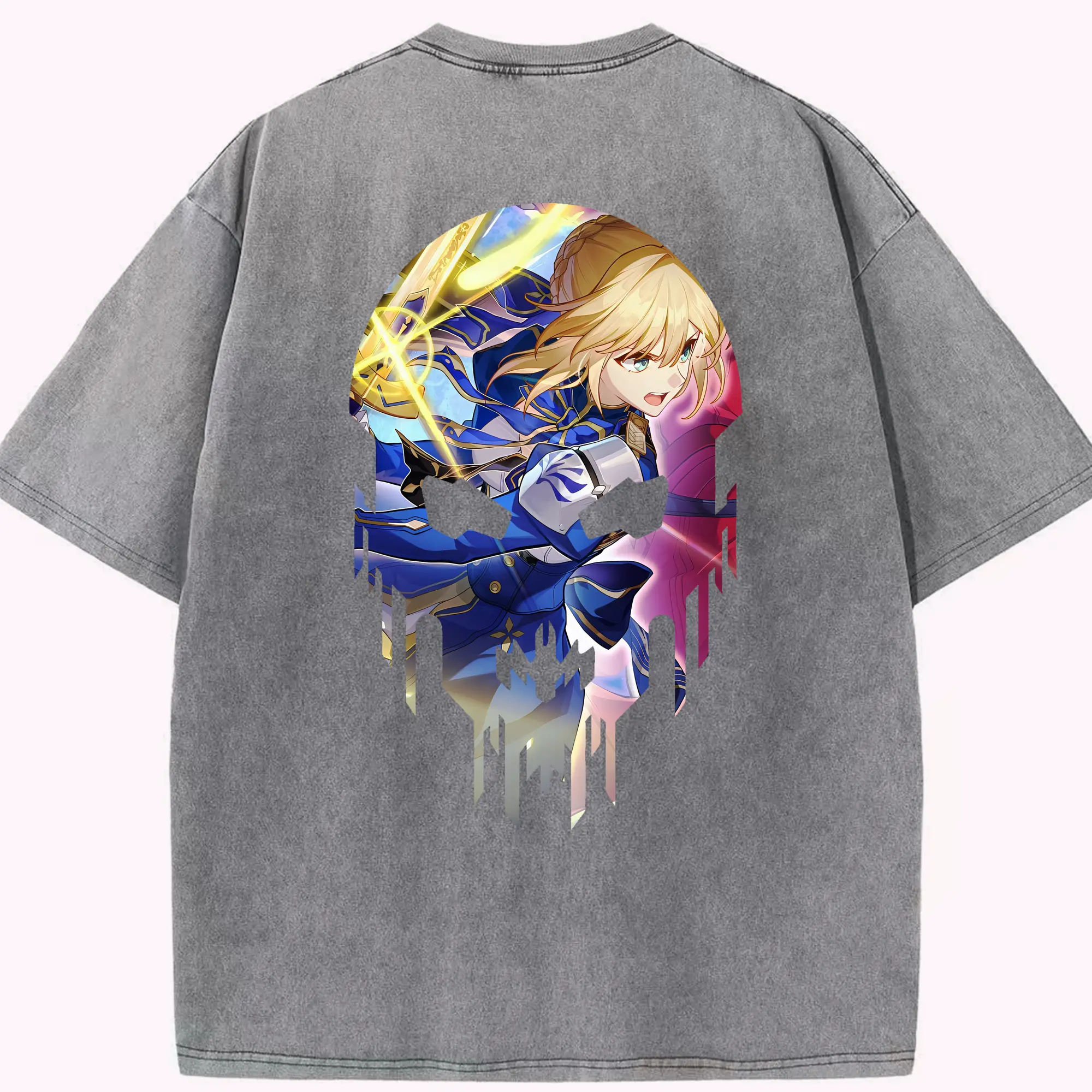 FGO グッズ,アルトリア - 綿100% ヴィンテージ風 半袖Tシャツ ・ フロントプリント ・ 柔らか肌触り ・ 通気性 快適 ・ スポーツ カジュアル 外出用