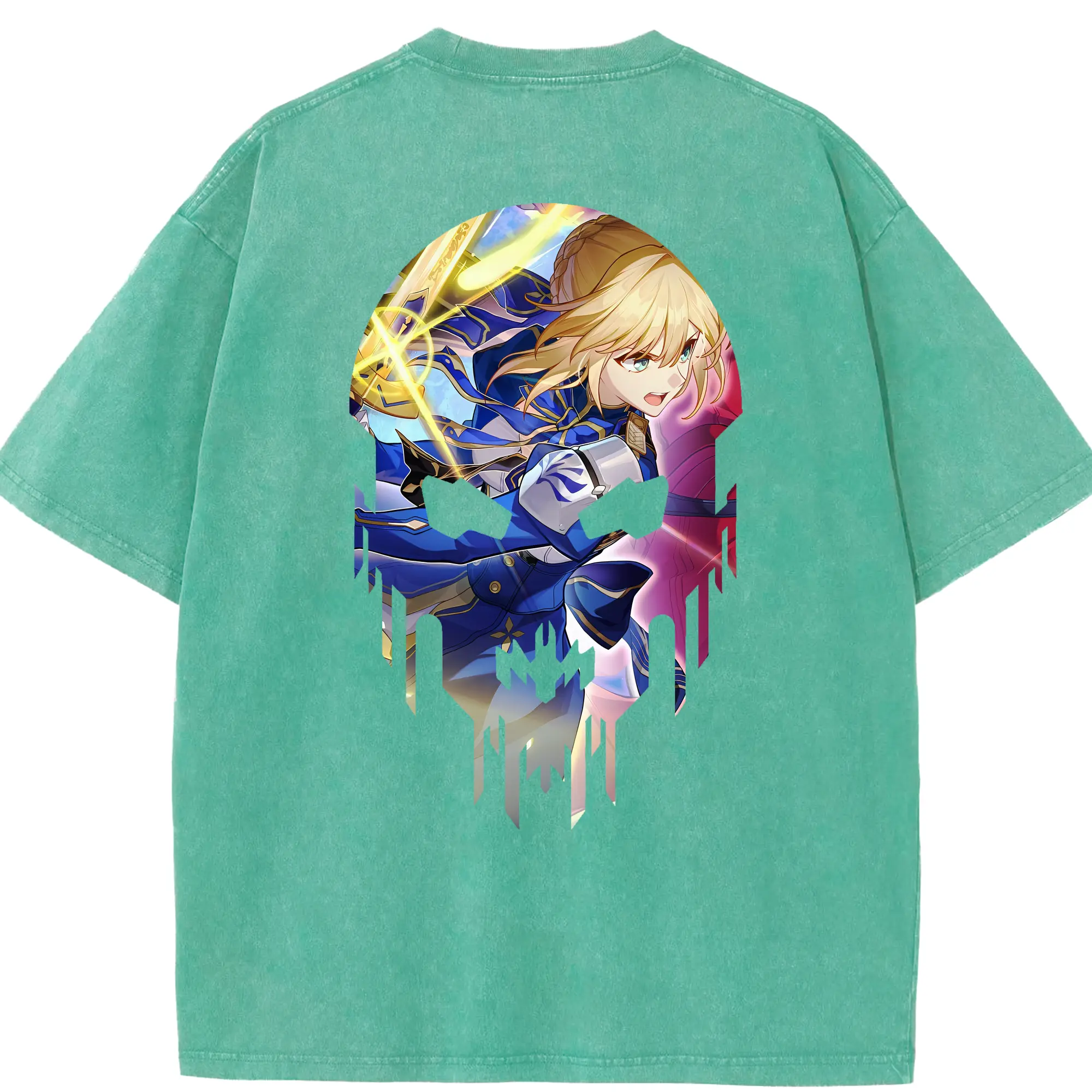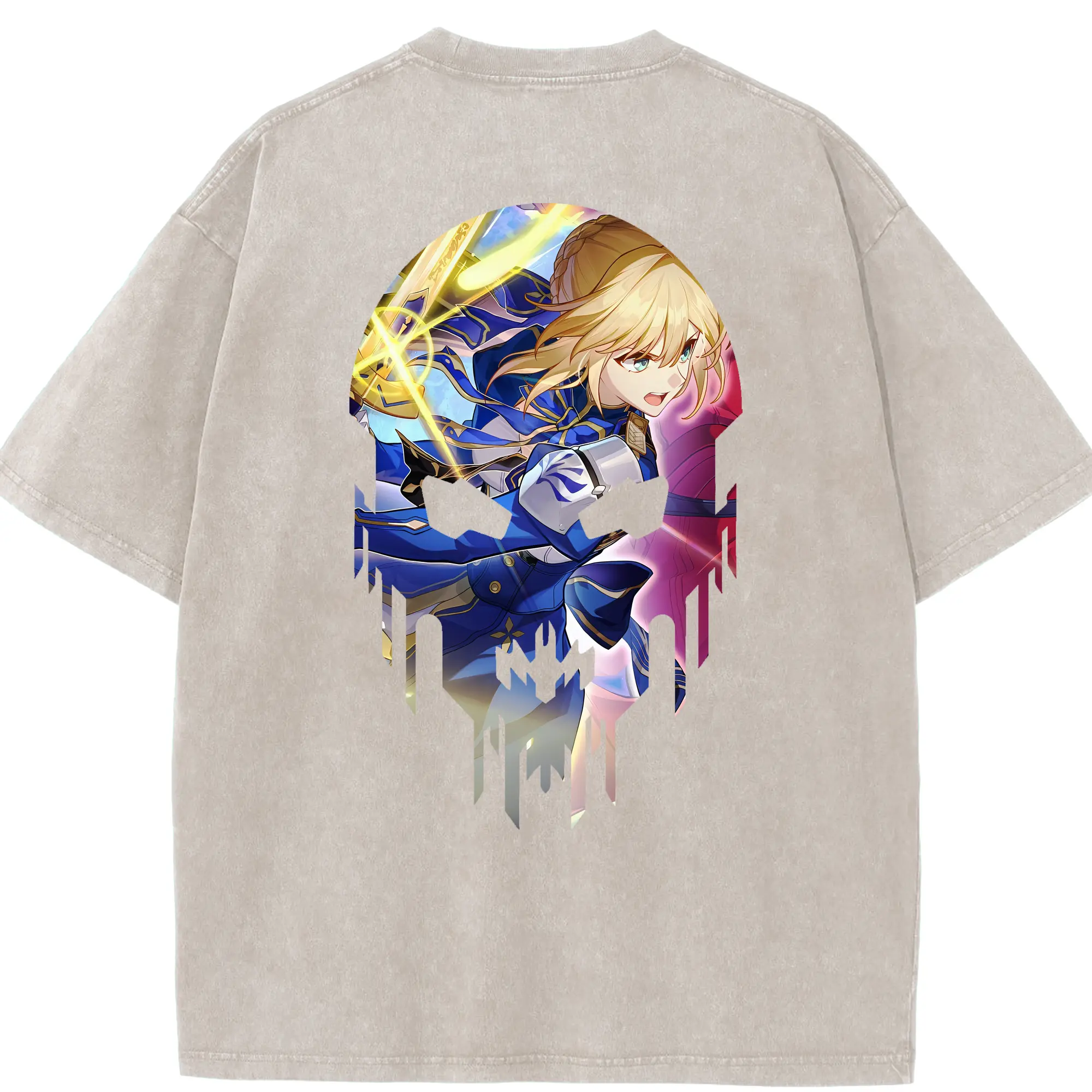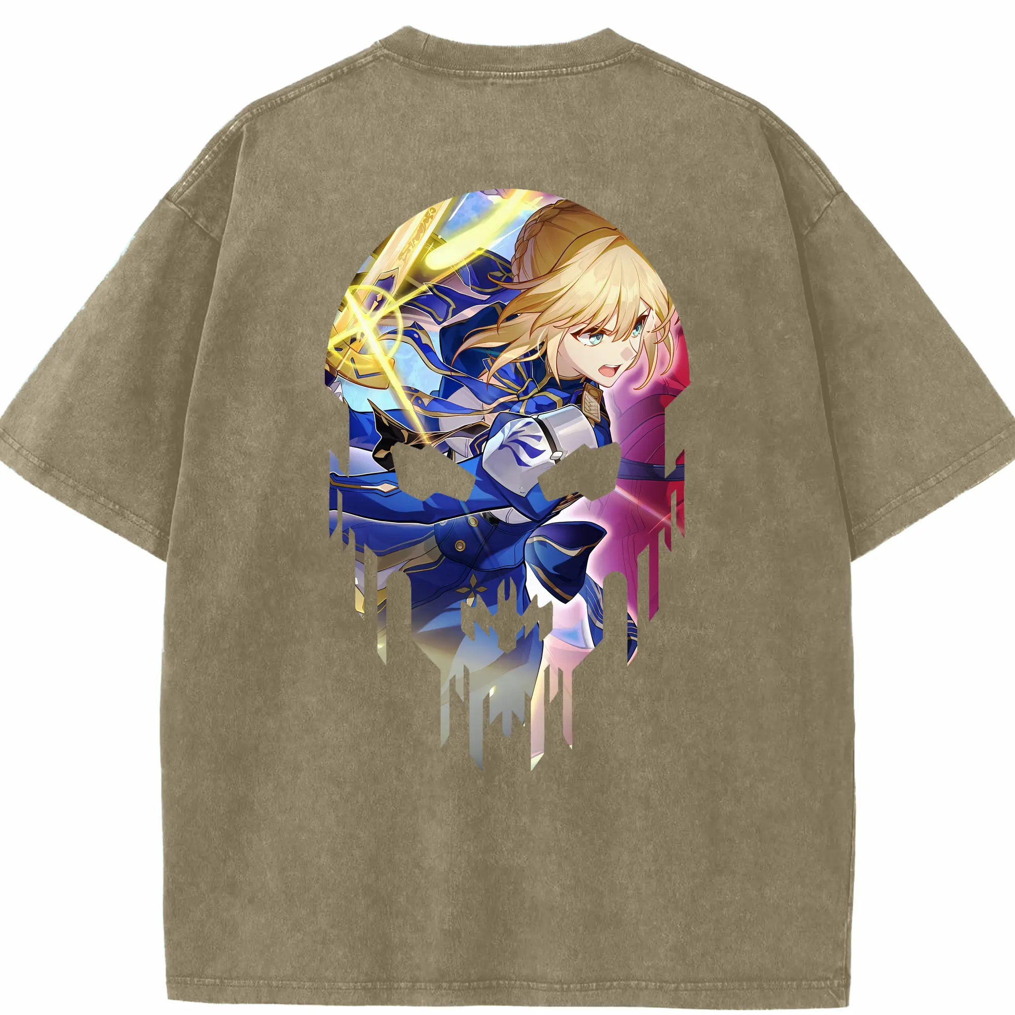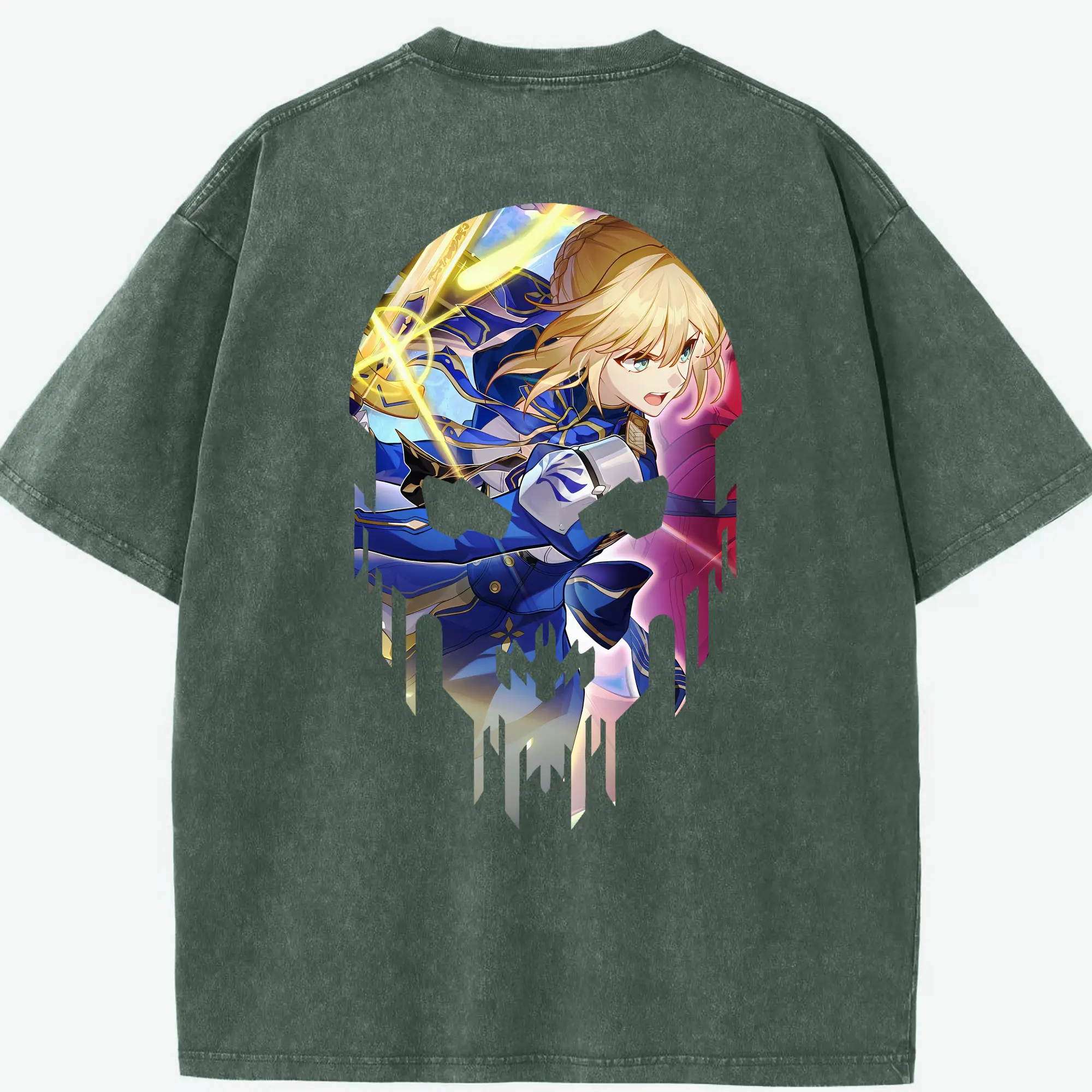 FGO グッズ,アルトリア - 綿100% ヴィンテージ風 半袖Tシャツ ・ フロントプリント ・ 柔らか肌触り ・ 通気性 快適 ・ スポーツ カジュアル 外出用