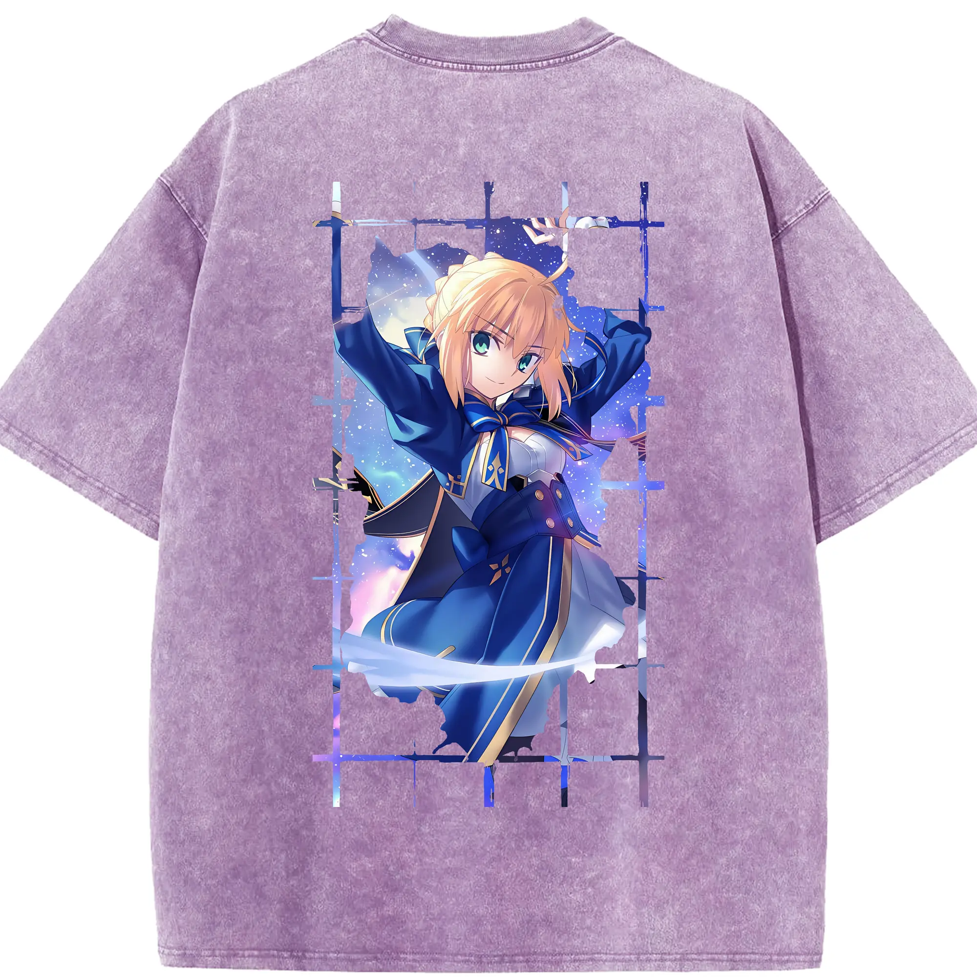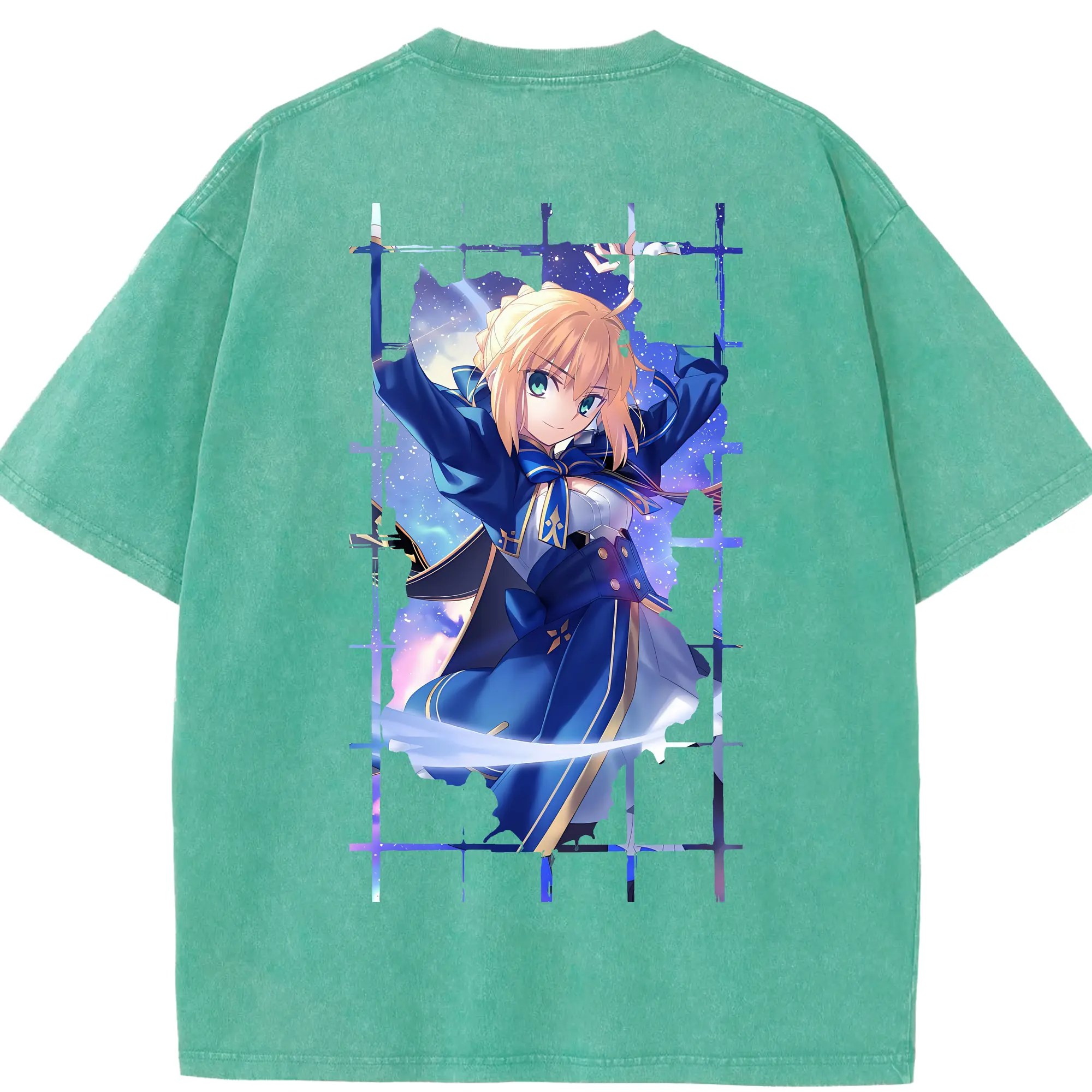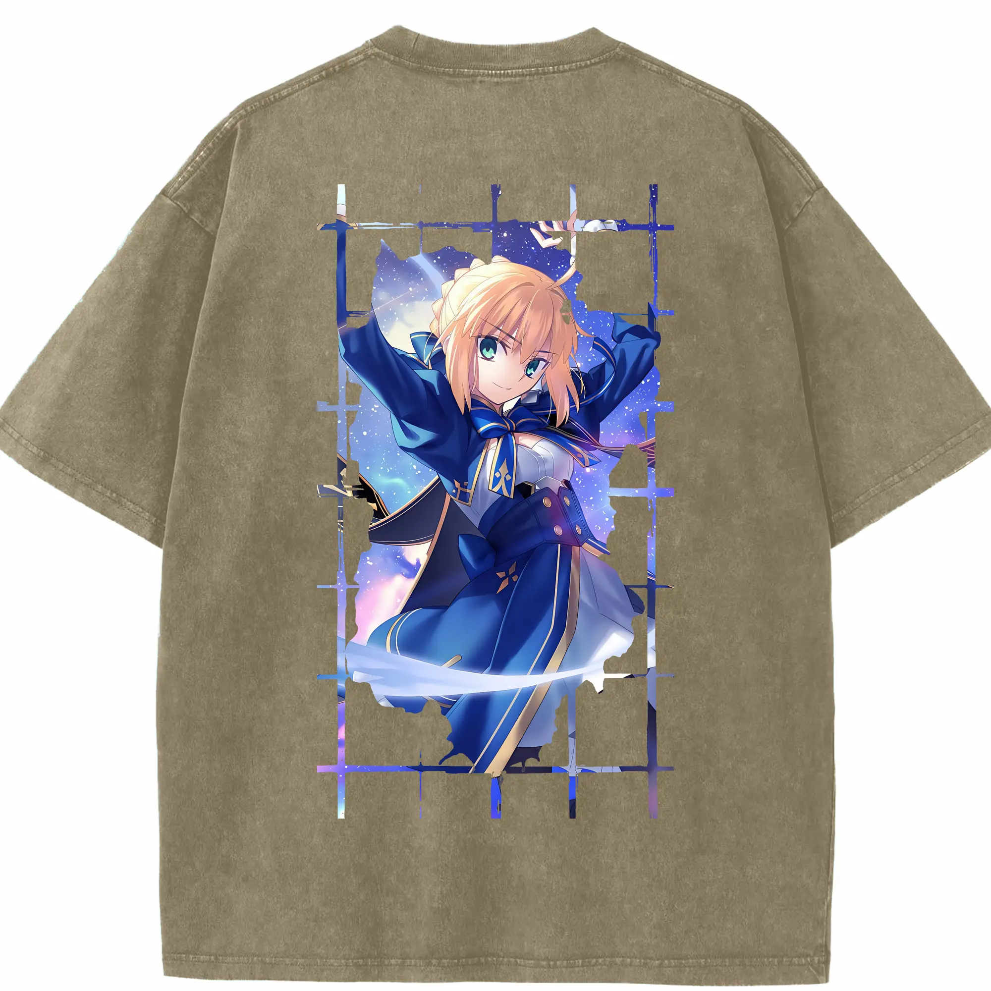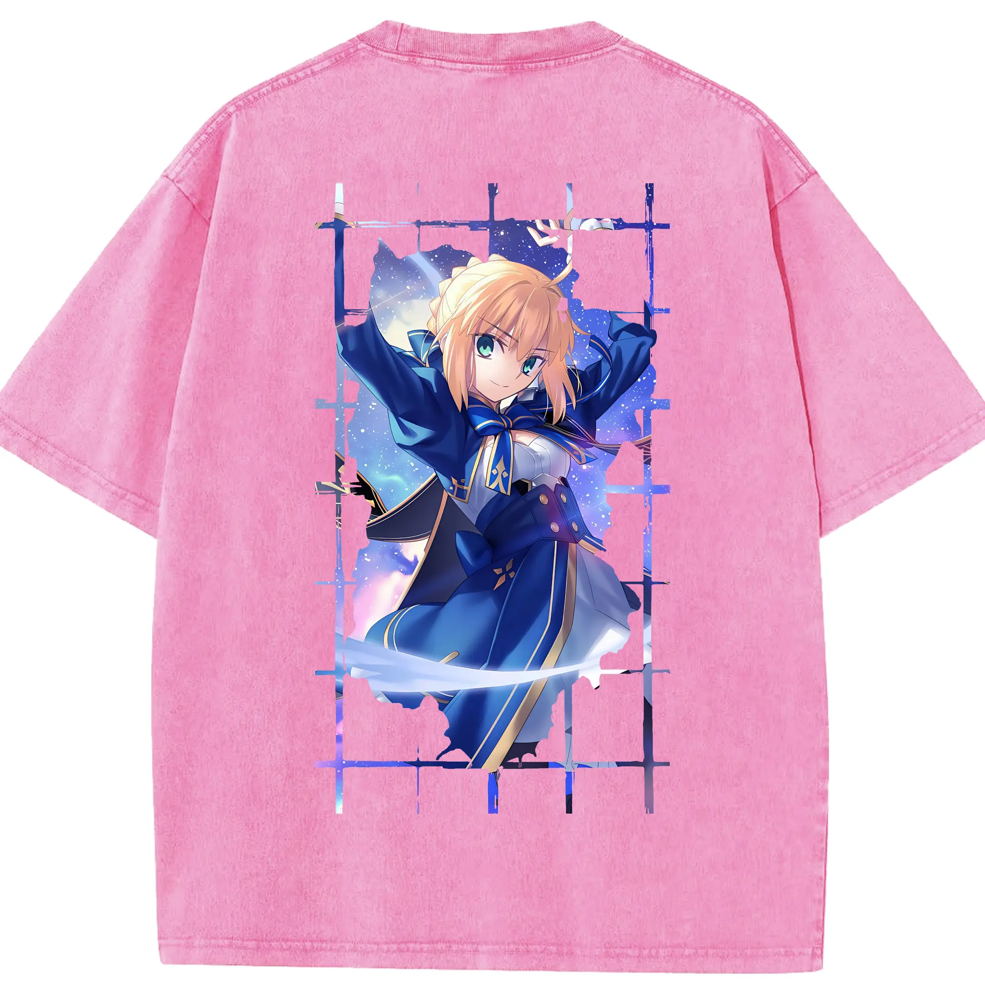 FGO グッズ,アルトリア - 綿100% ヴィンテージ風 半袖Tシャツ ・ フロントプリント ・ 柔らか肌触り ・ 通気性 快適 ・ スポーツ カジュアル 外出用