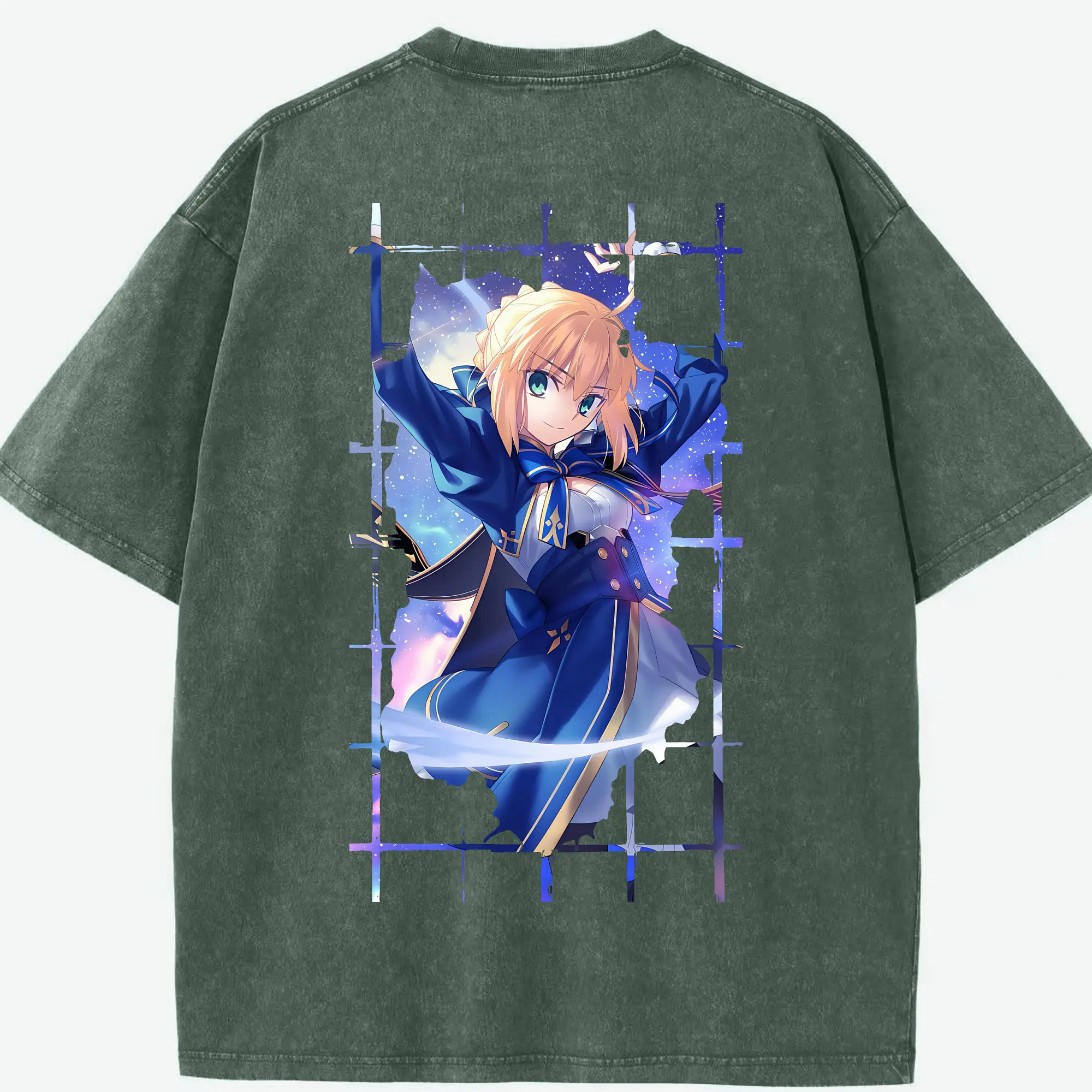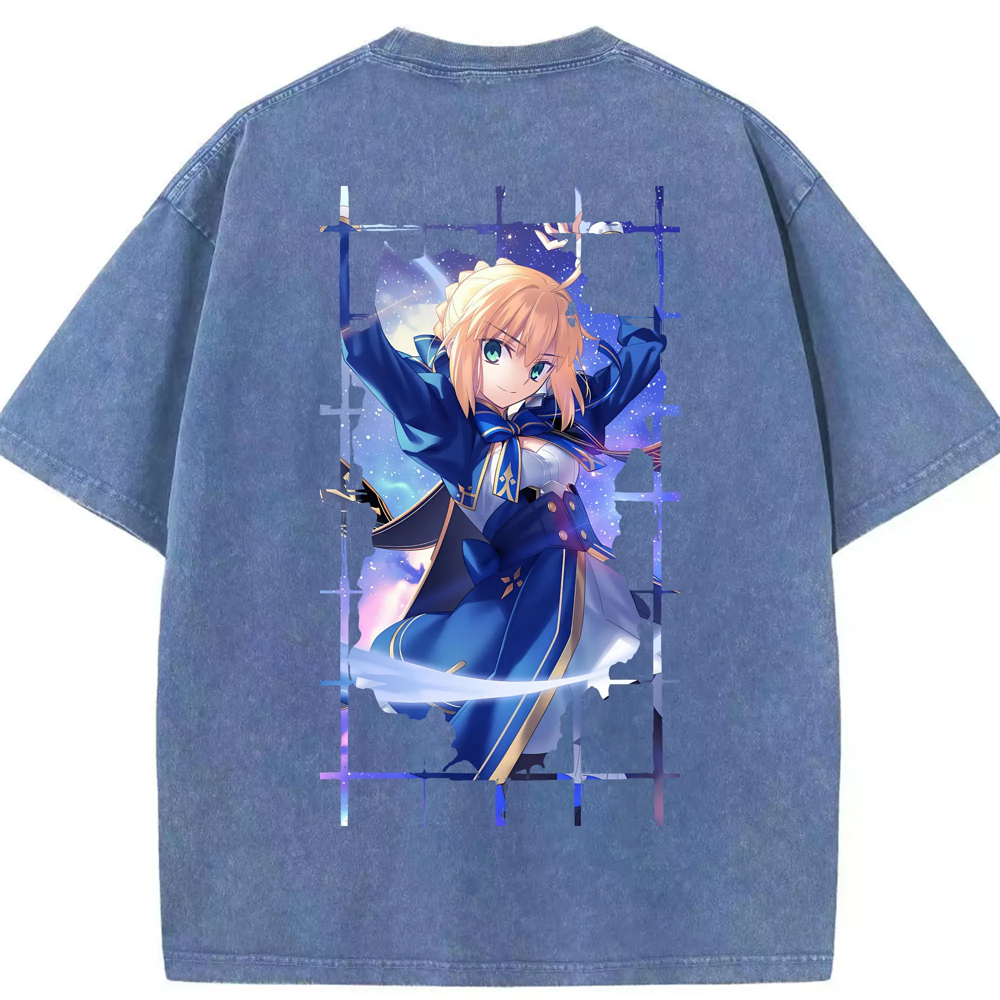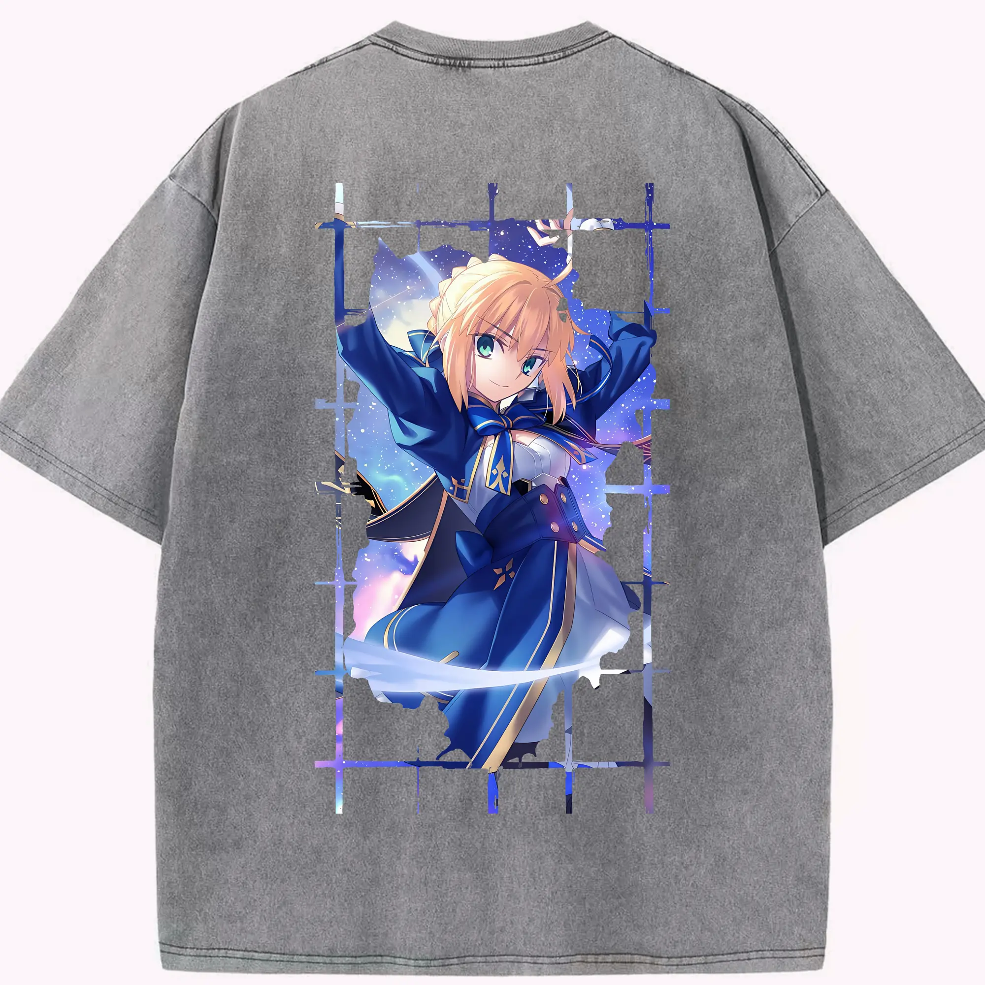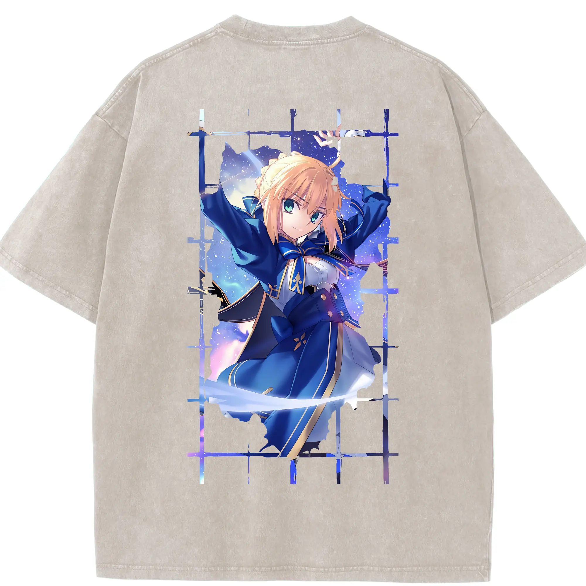 FGO グッズ,アルトリア - 綿100% ヴィンテージ風 半袖Tシャツ ・ フロントプリント ・ 柔らか肌触り ・ 通気性 快適 ・ スポーツ カジュアル 外出用