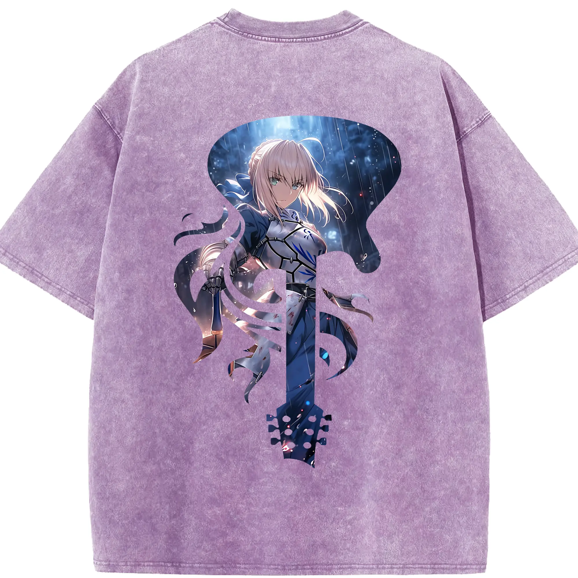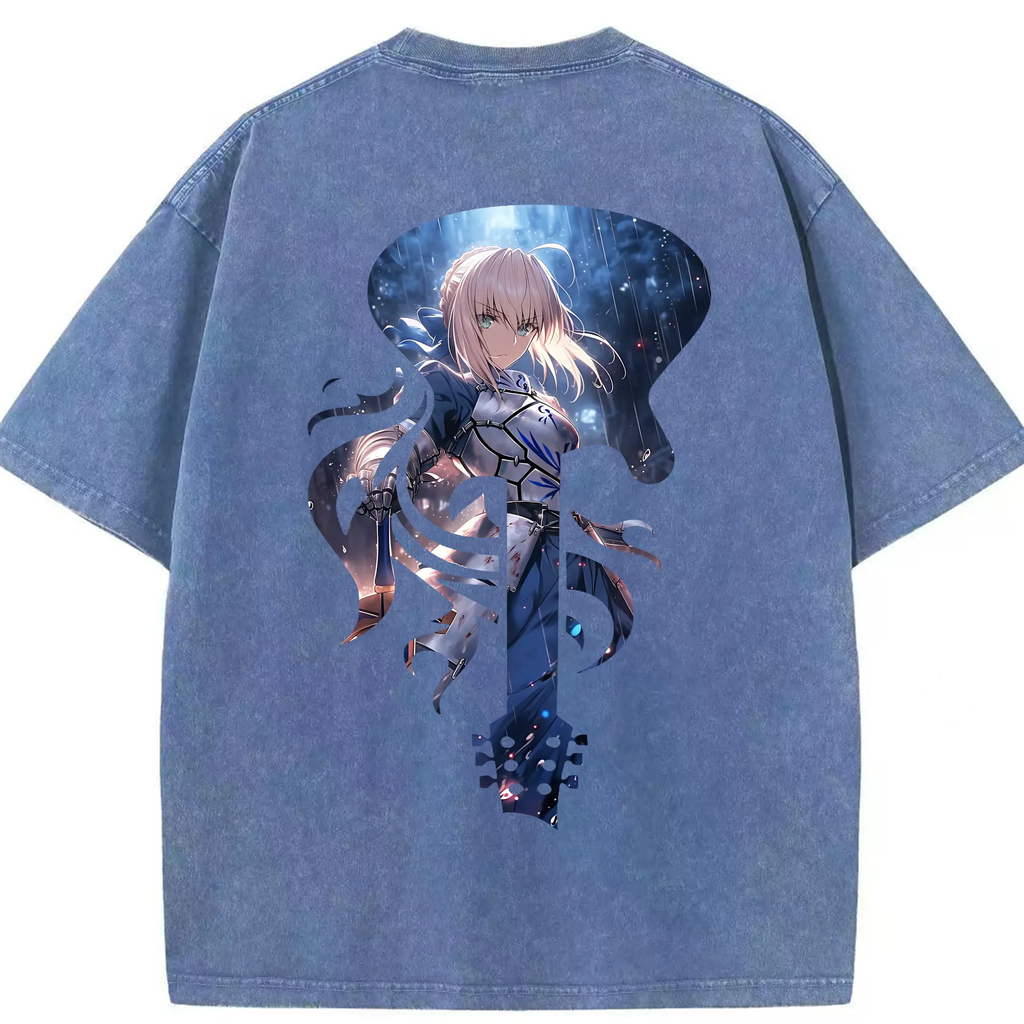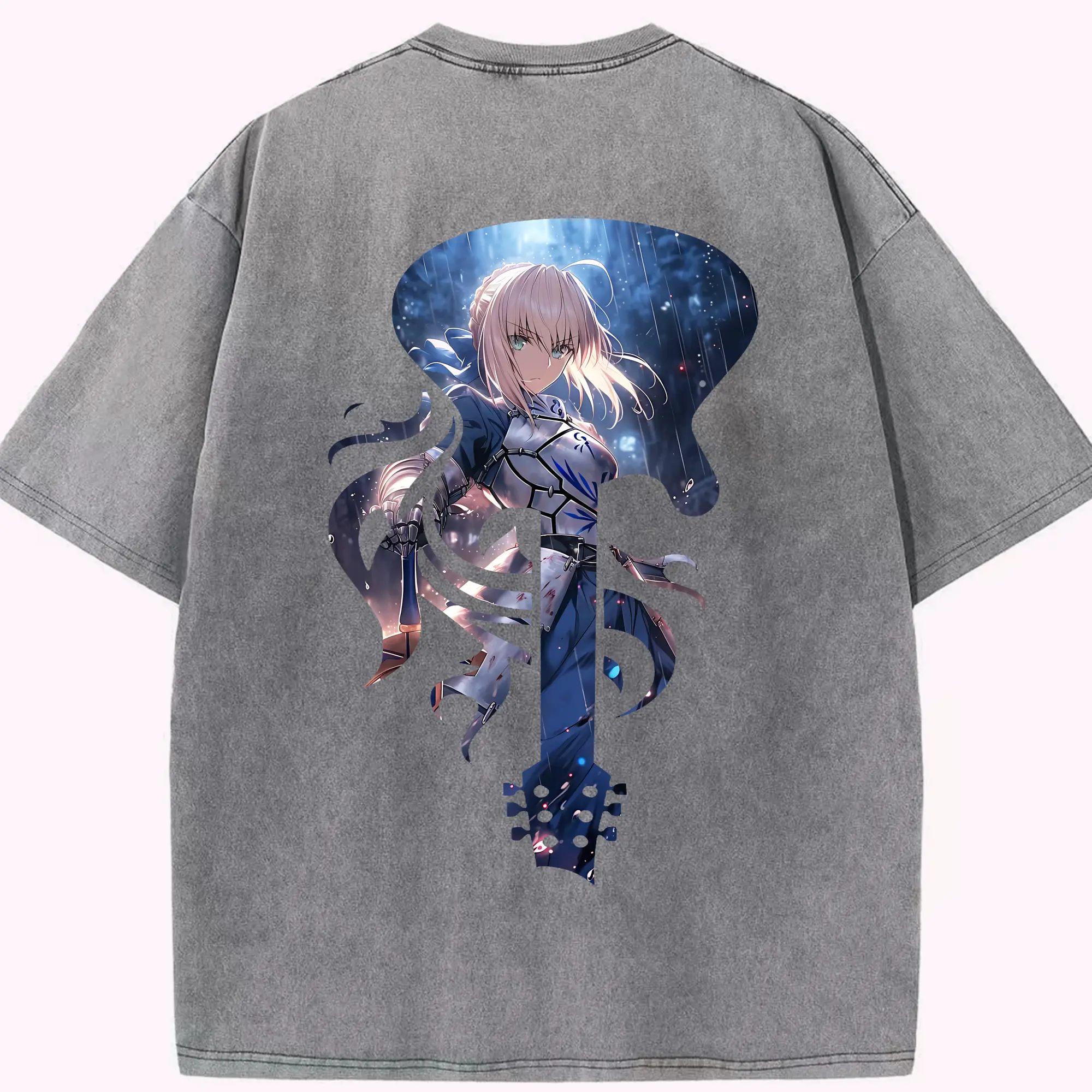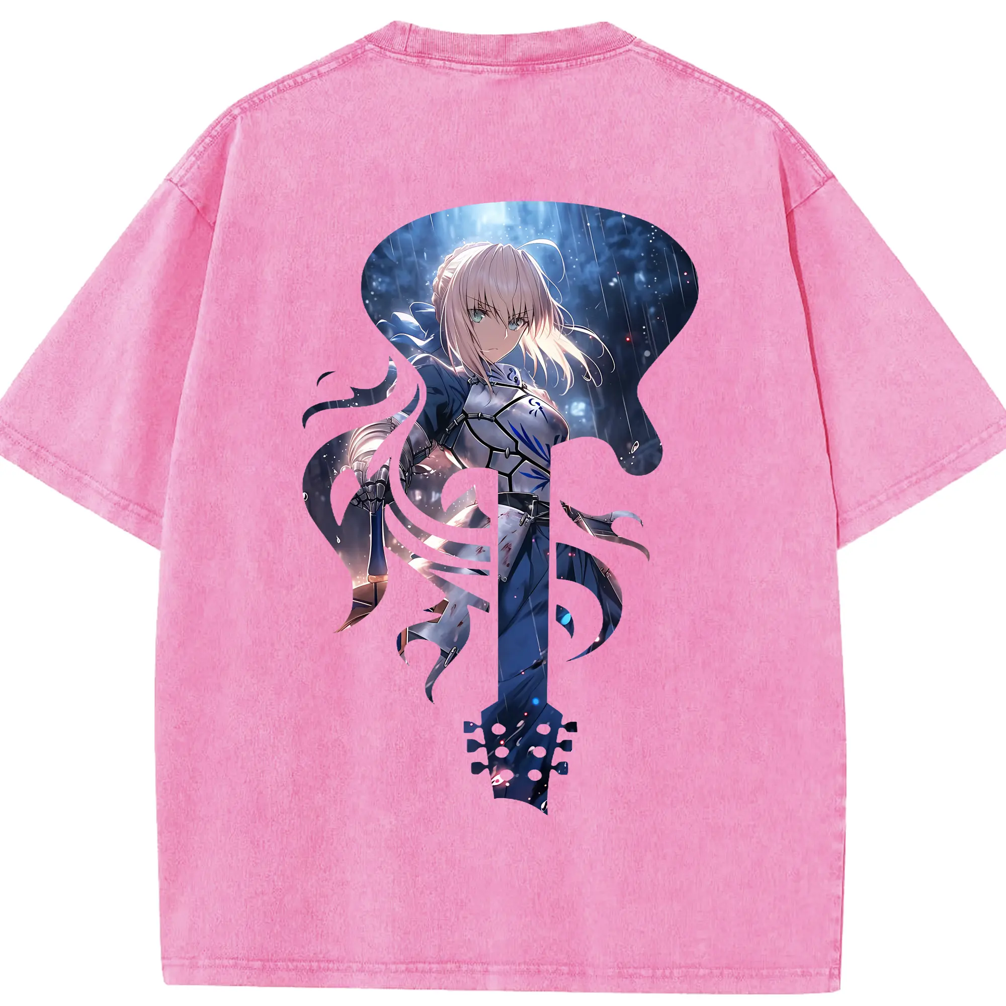 FGO グッズ,アルトリア - 綿100% ヴィンテージ風 半袖Tシャツ ・ フロントプリント ・ 柔らか肌触り ・ 通気性 快適 ・ スポーツ カジュアル 外出用
