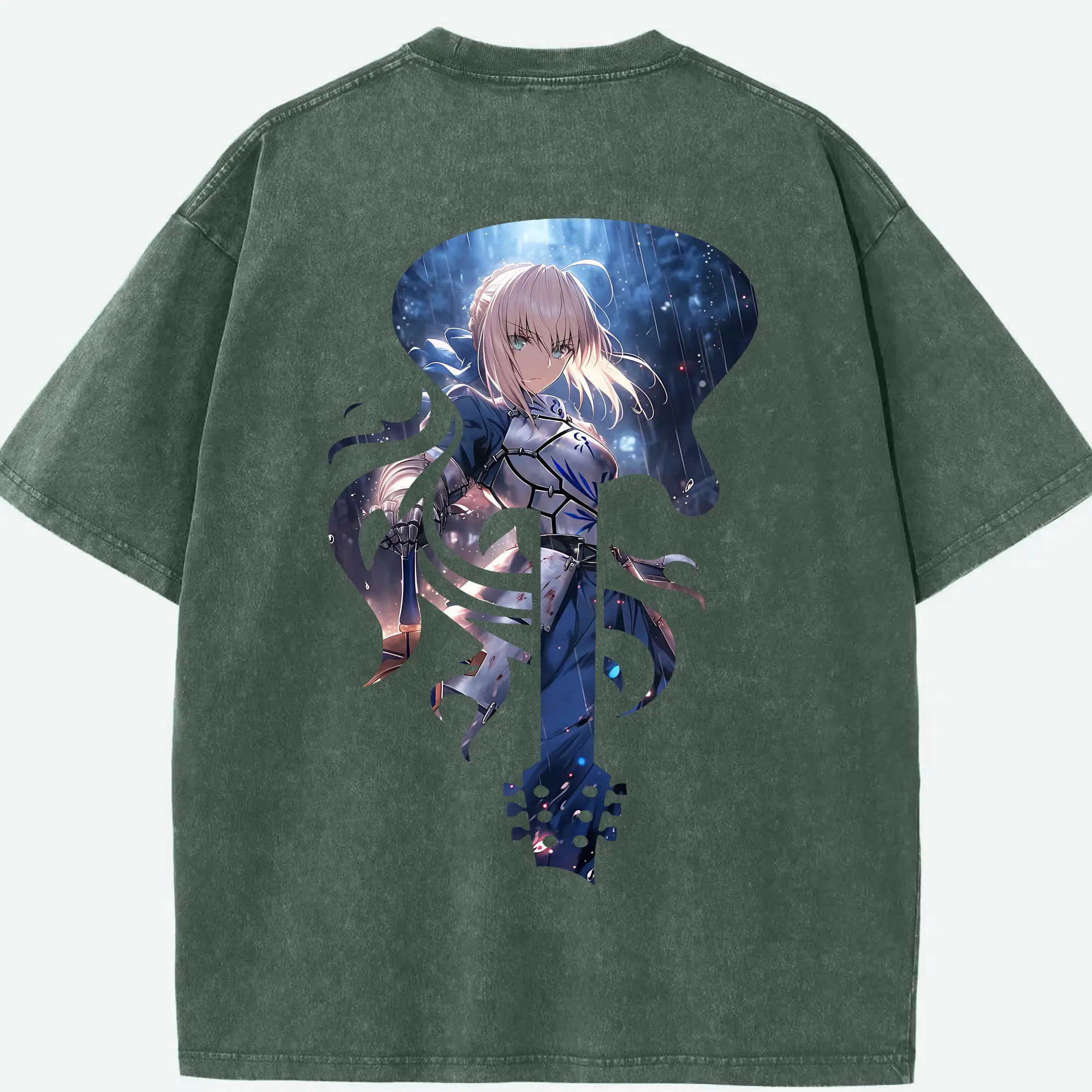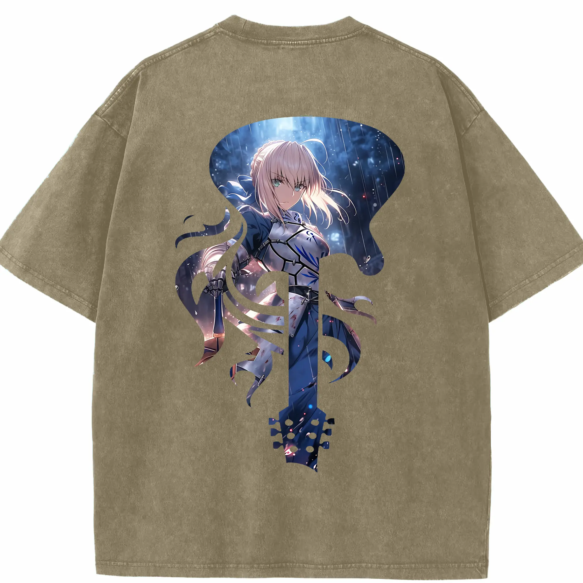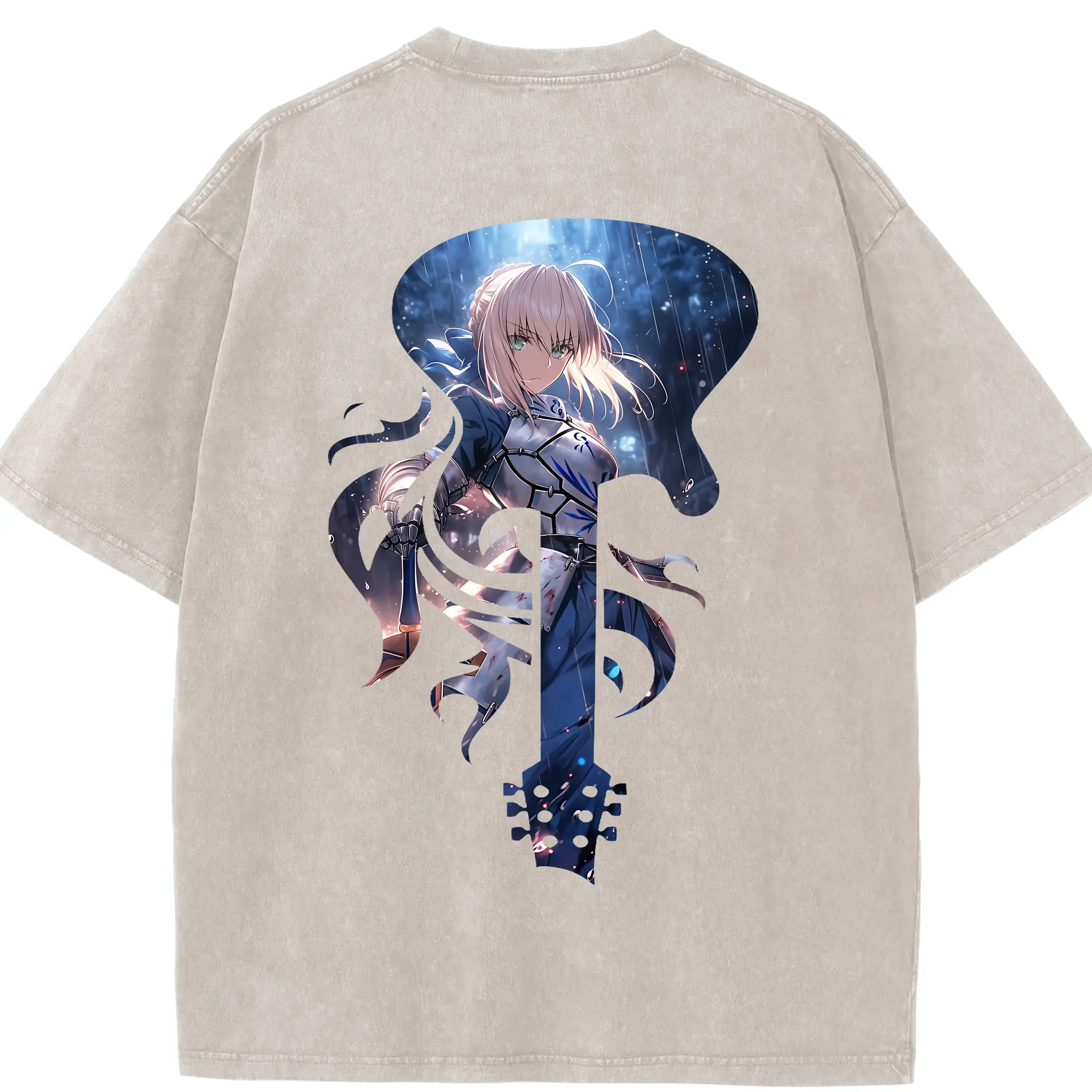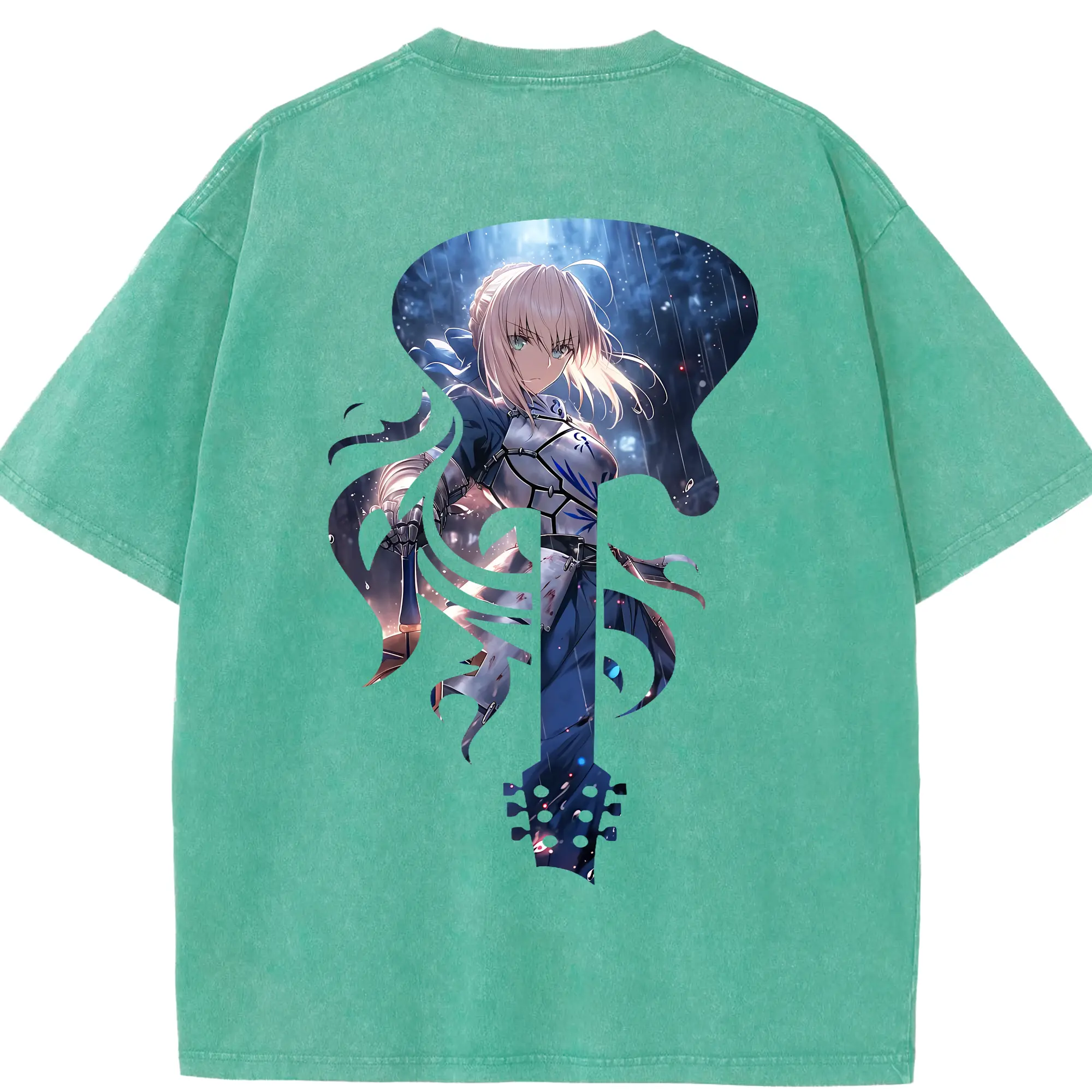 FGO グッズ,アルトリア - 綿100% ヴィンテージ風 半袖Tシャツ ・ フロントプリント ・ 柔らか肌触り ・ 通気性 快適 ・ スポーツ カジュアル 外出用