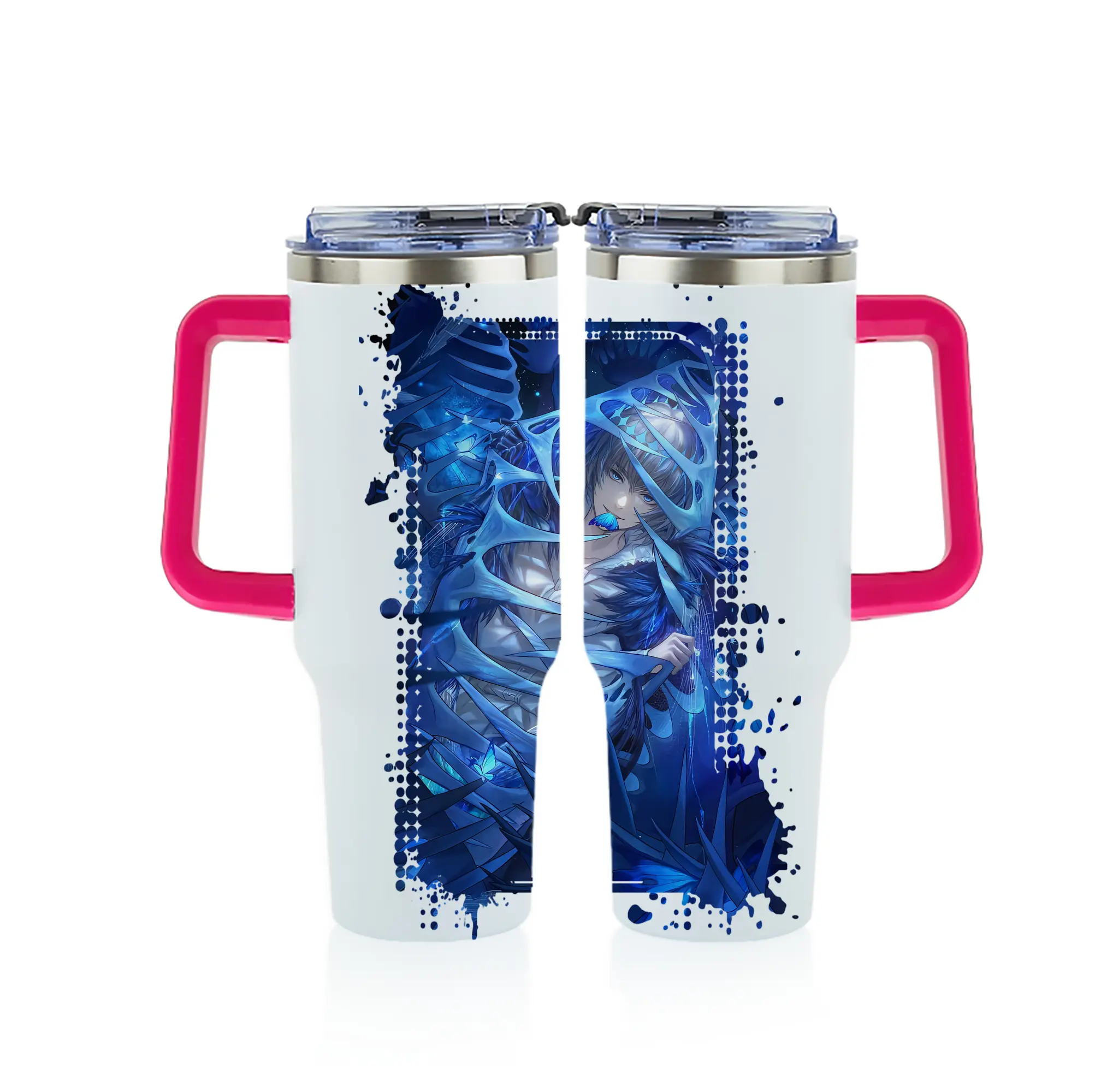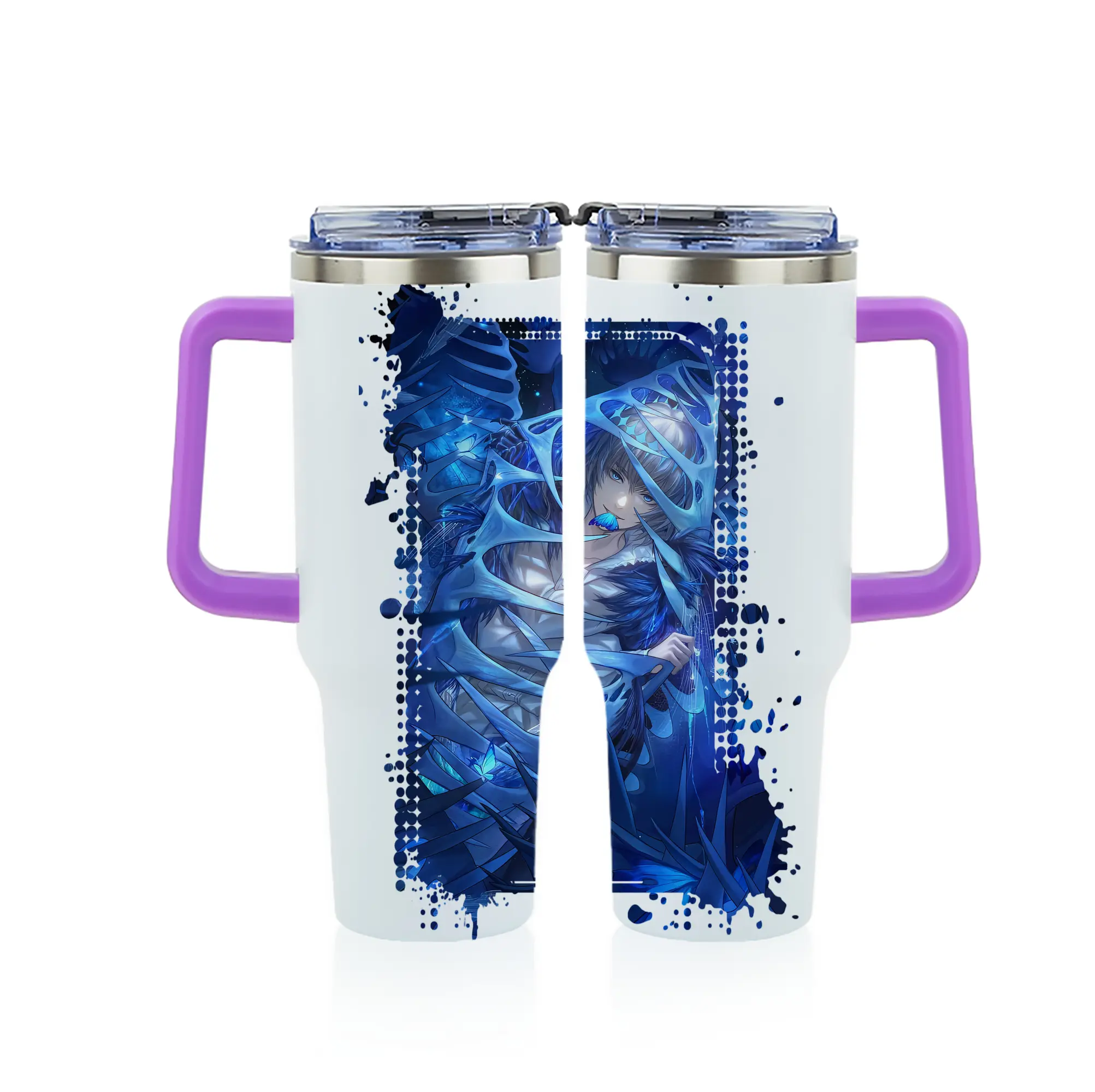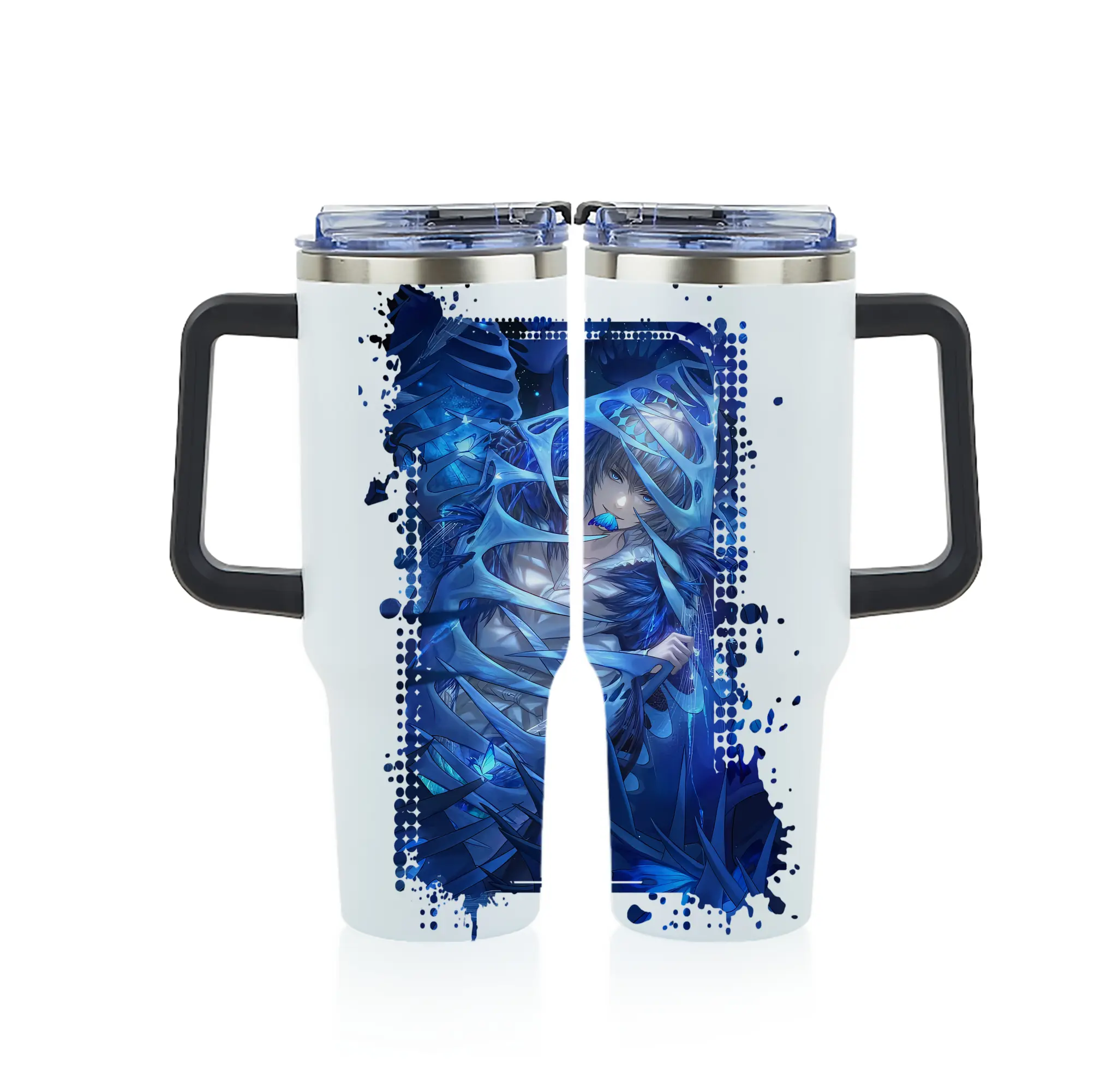 FGO グッズ,オベロン - 1200mL フルプリント車用タンブラー ・ 304ステンレス 内側 ・ 201ステンレス 外側 ・ 保温 保冷 ・ 通勤 ドライブ アウトドア用