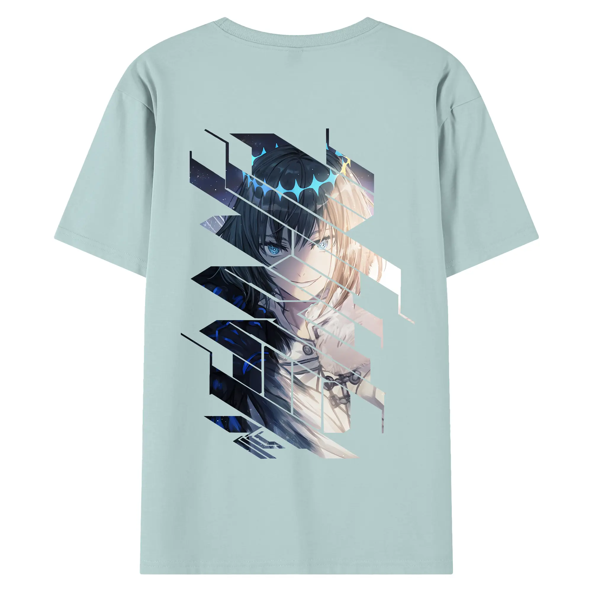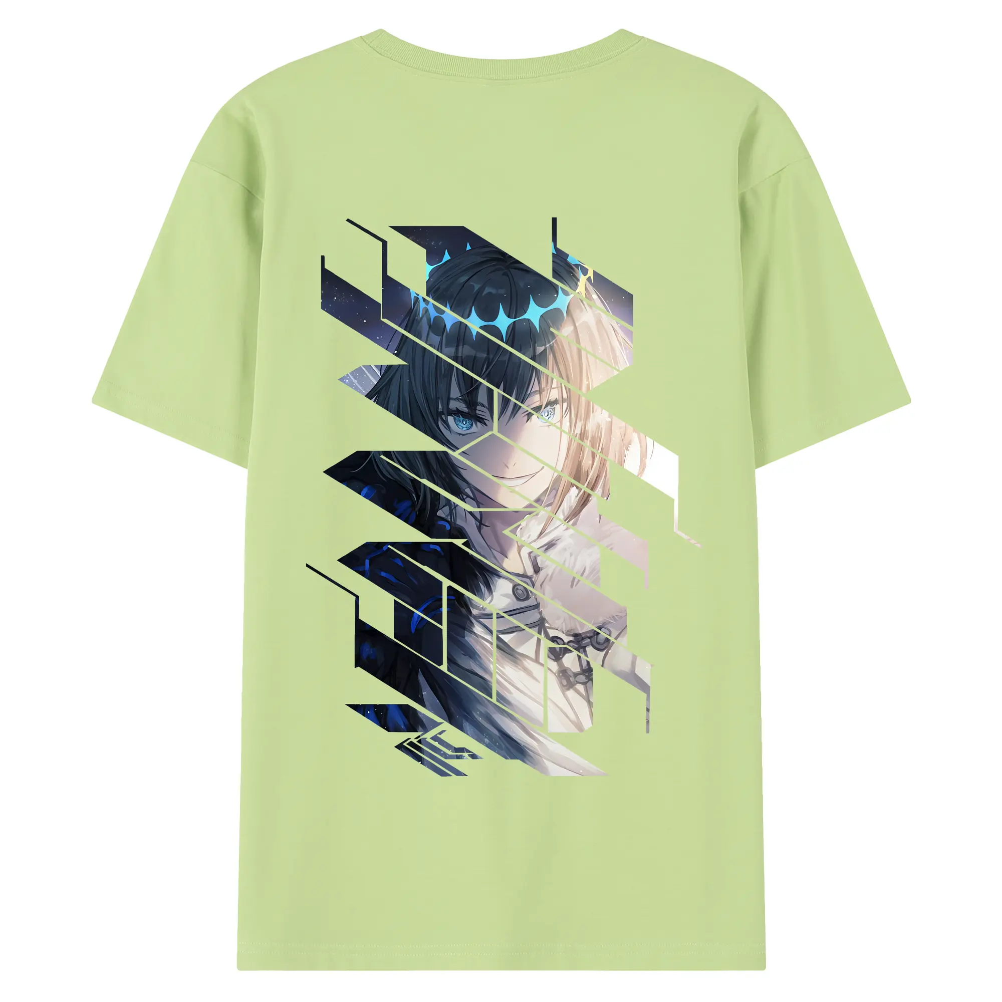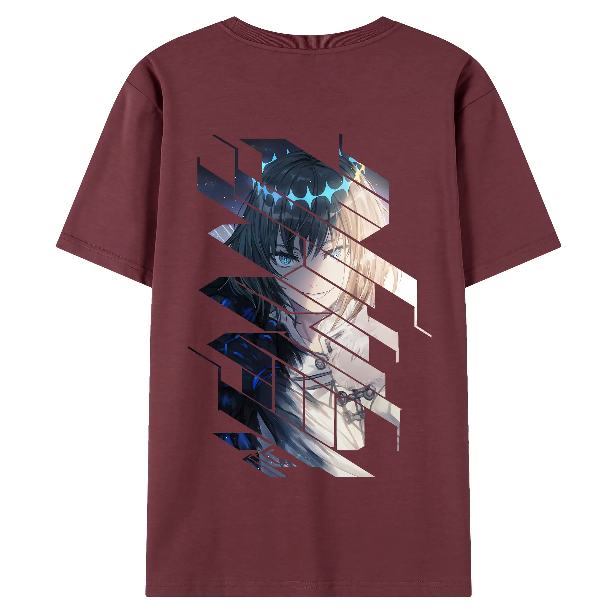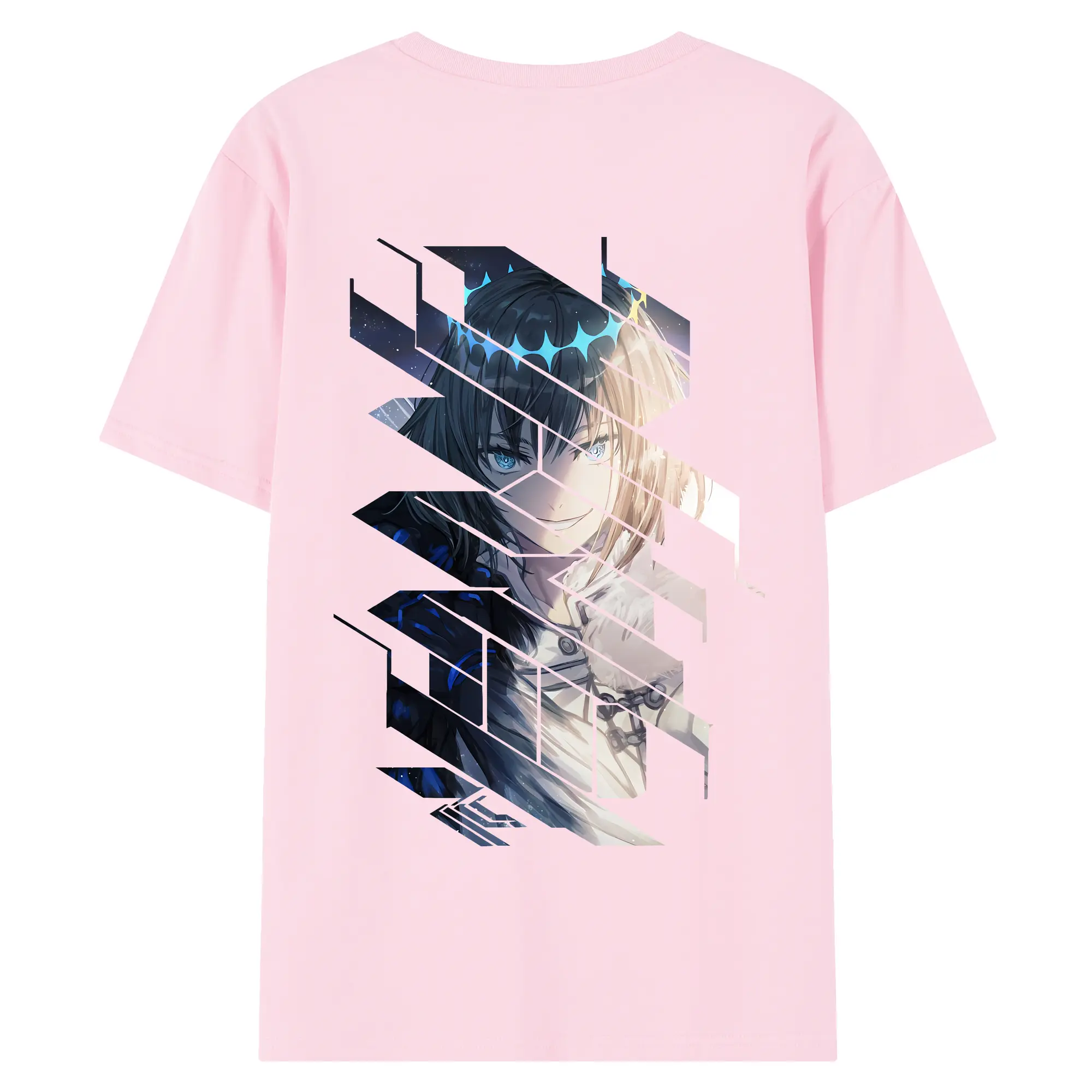 FGO グッズ,オベロン - 綿100% ヴィンテージ風 半袖Tシャツ ・ 背面プリント ・ 柔らか肌触り ・ 通気性 快適 ・ スポーツ カジュアル 外出用
