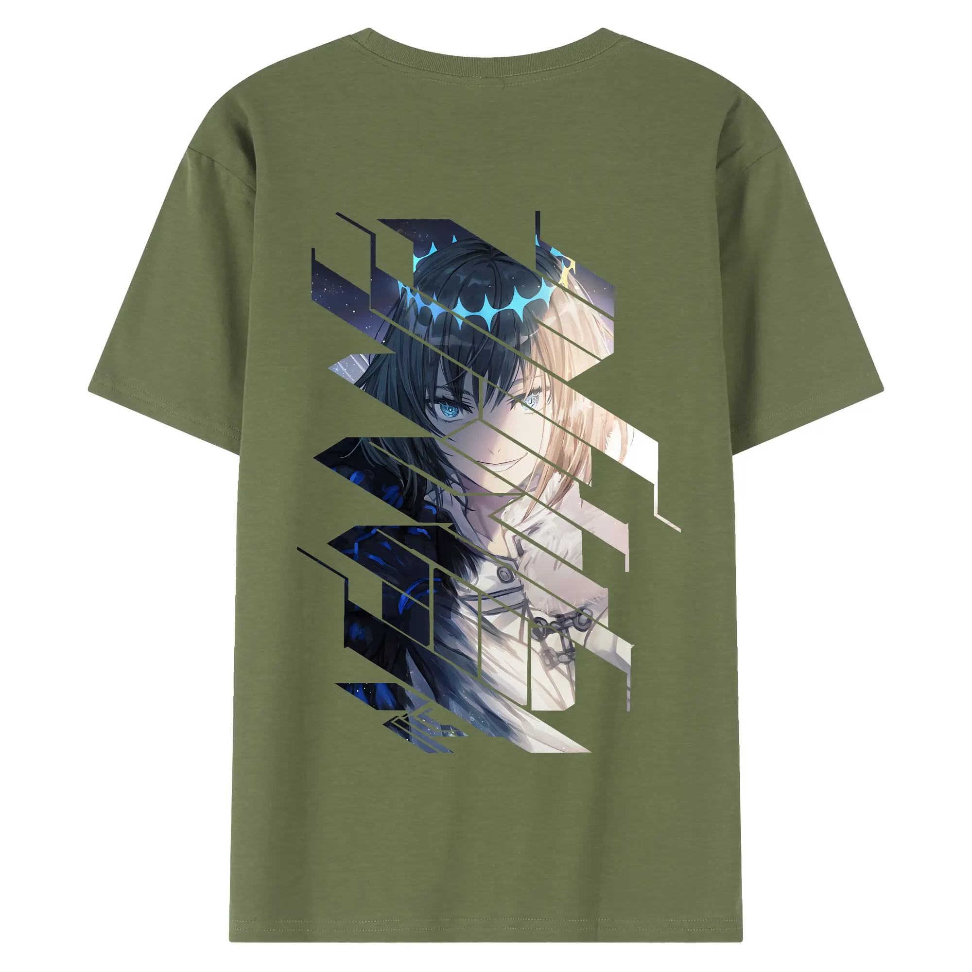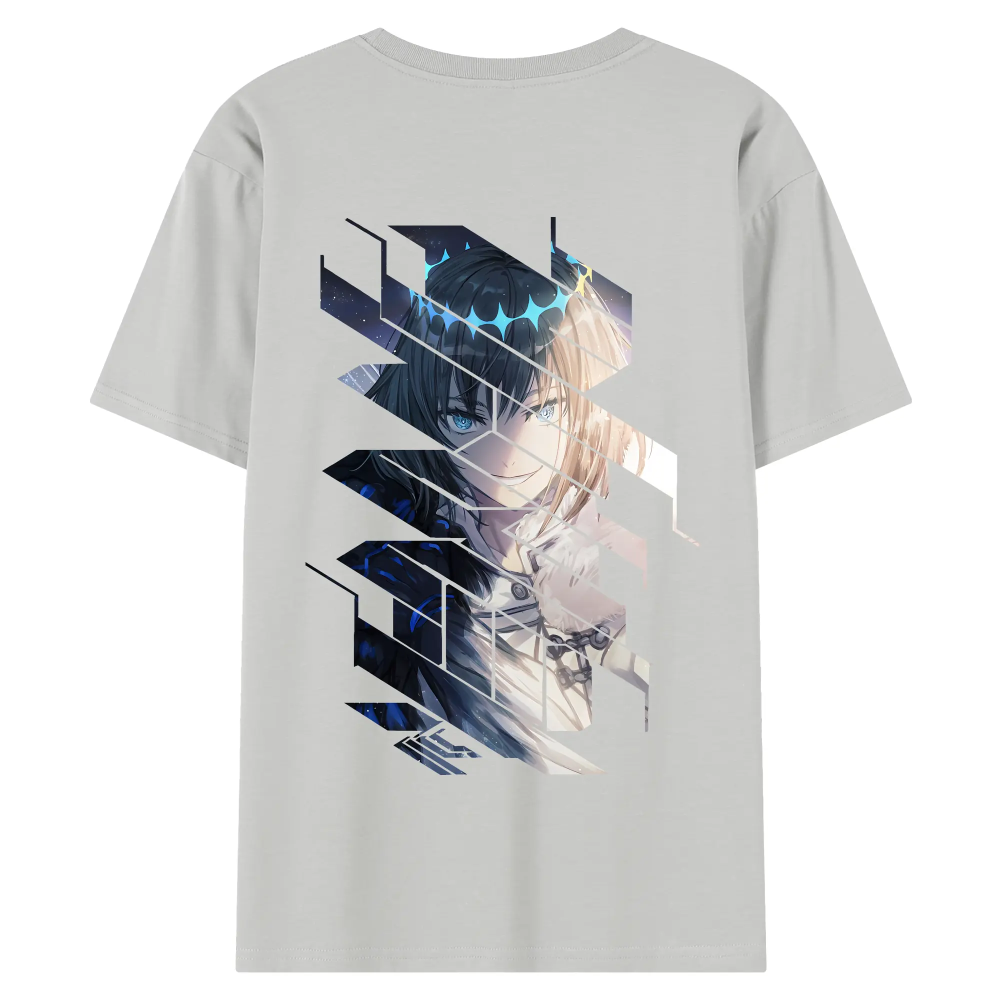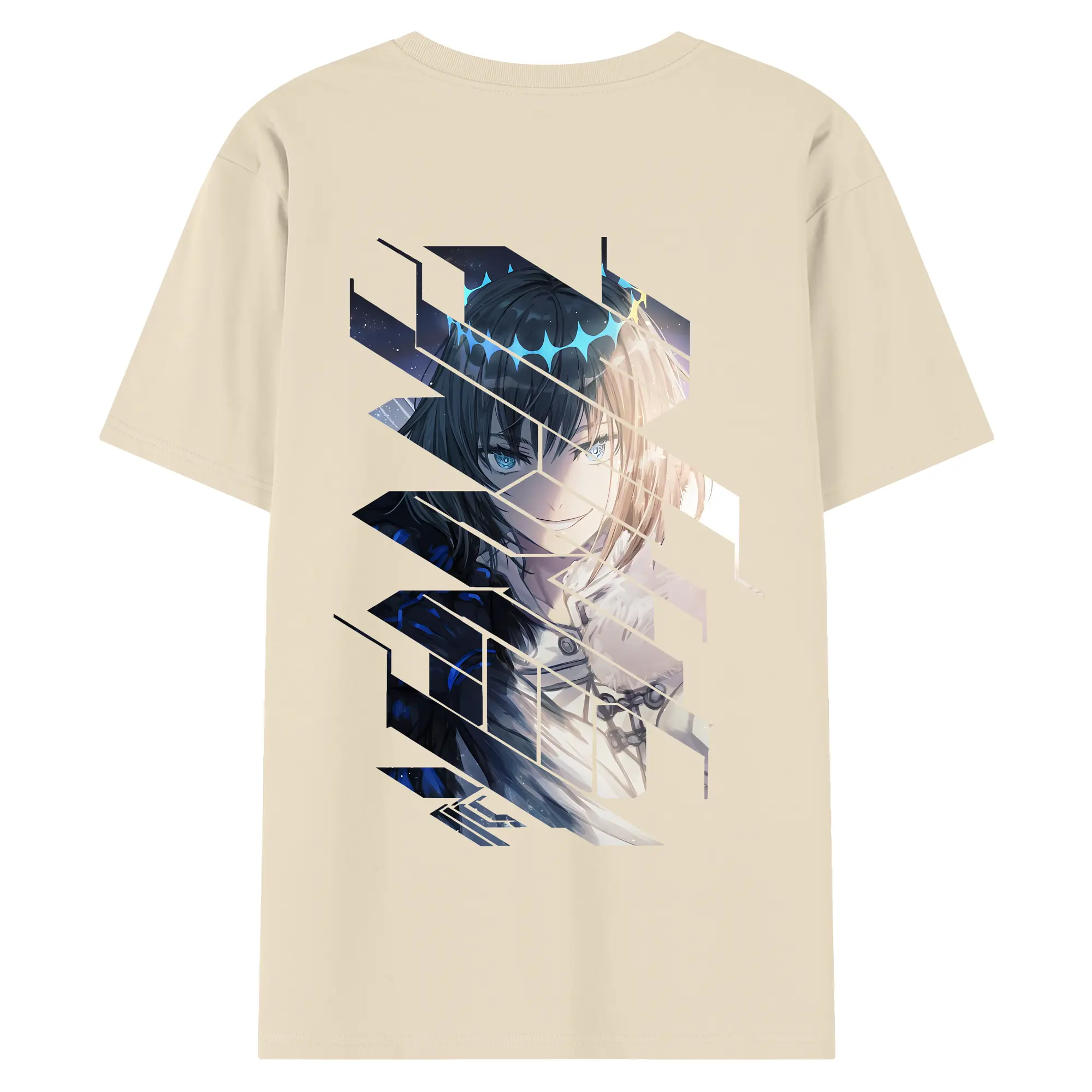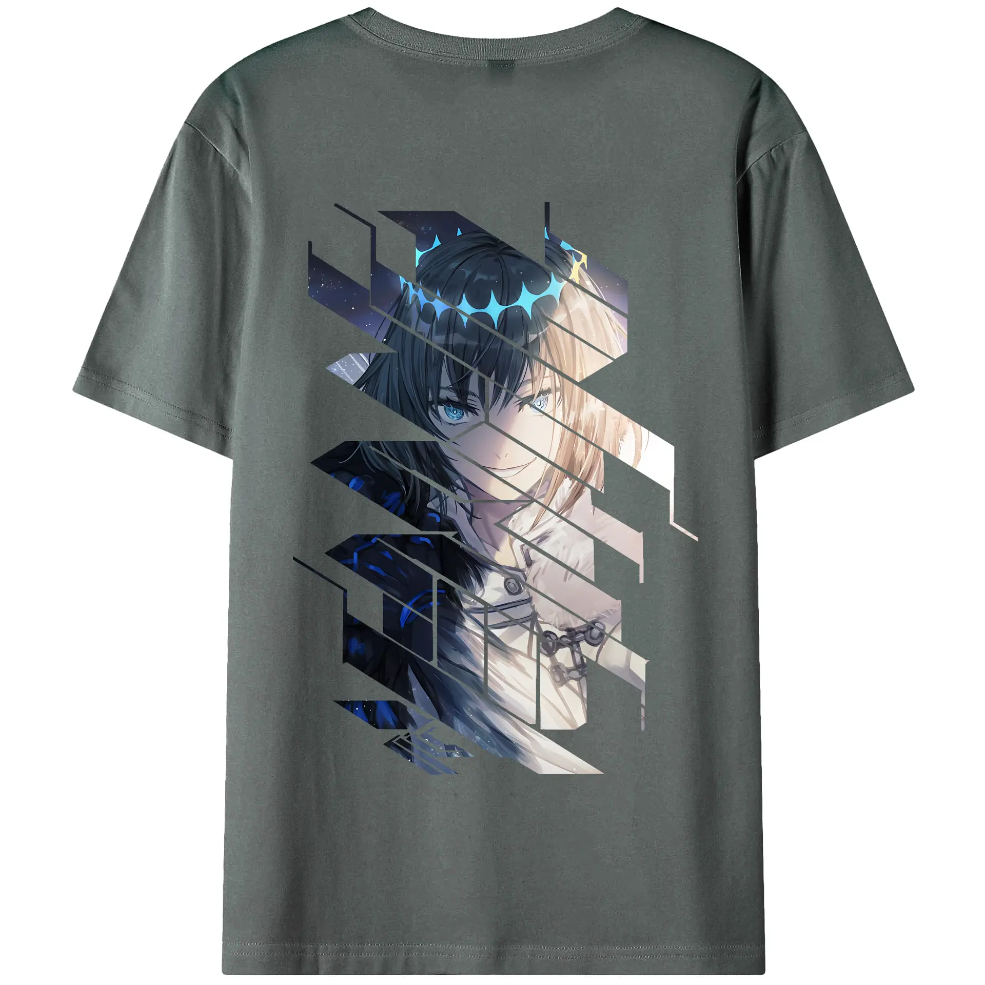 FGO グッズ,オベロン - 綿100% ヴィンテージ風 半袖Tシャツ ・ 背面プリント ・ 柔らか肌触り ・ 通気性 快適 ・ スポーツ カジュアル 外出用