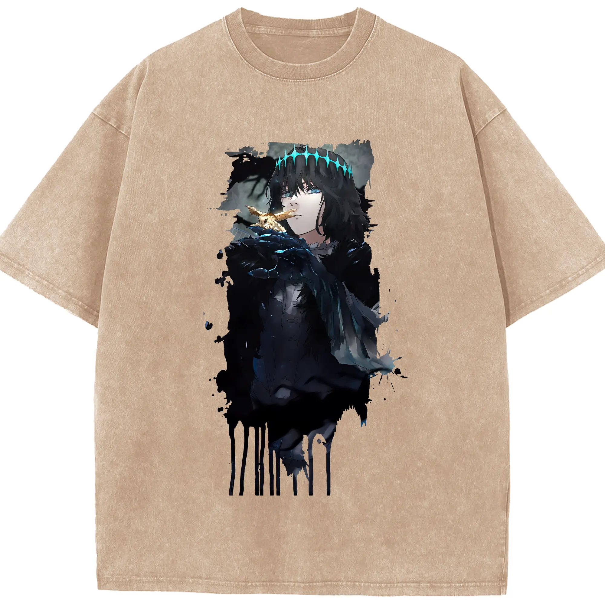 FGO グッズ,オベロン - 綿100% ヴィンテージ風 半袖Tシャツ ・ 背面プリント ・ 柔らか肌触り ・ 通気性 快適 ・ スポーツ カジュアル 外出用