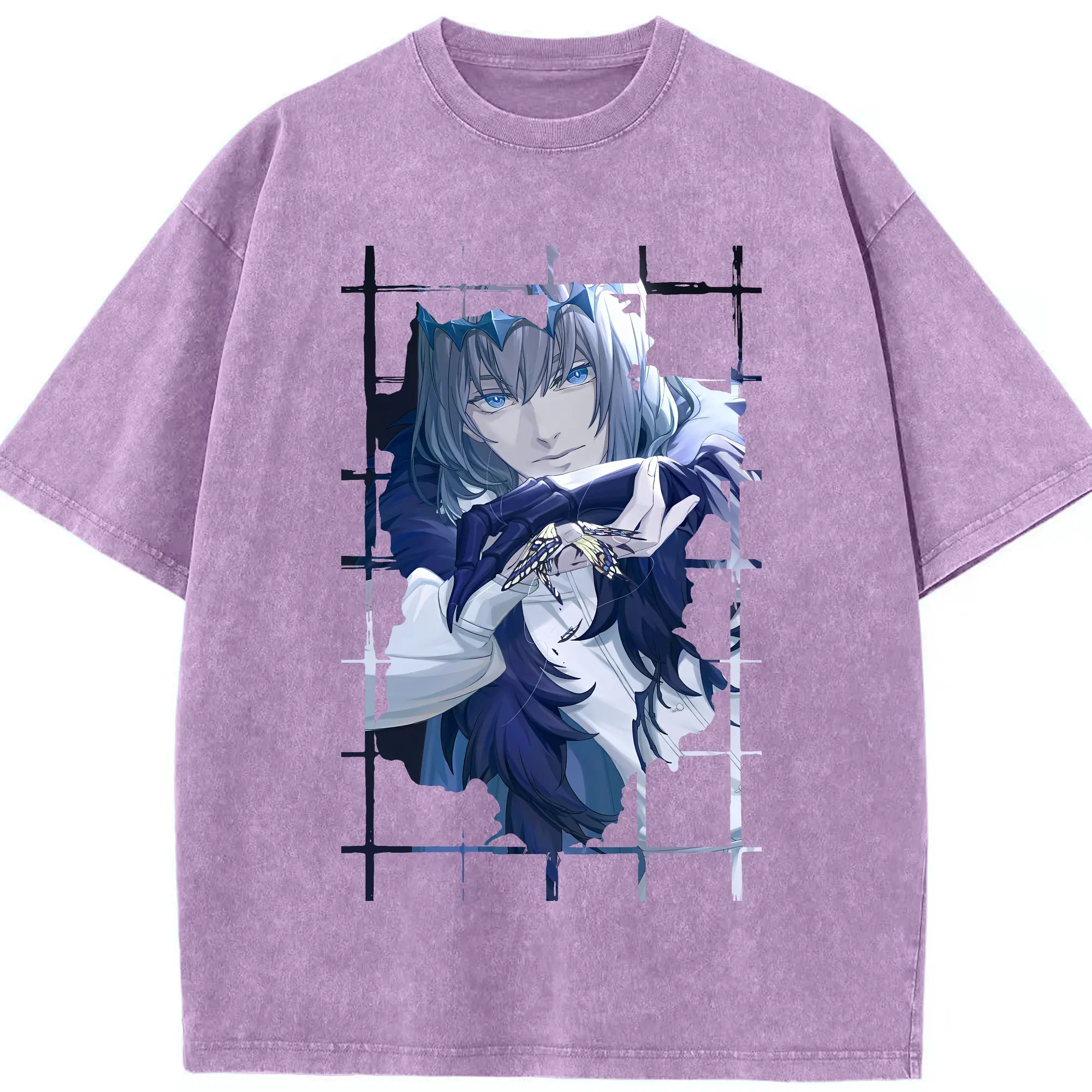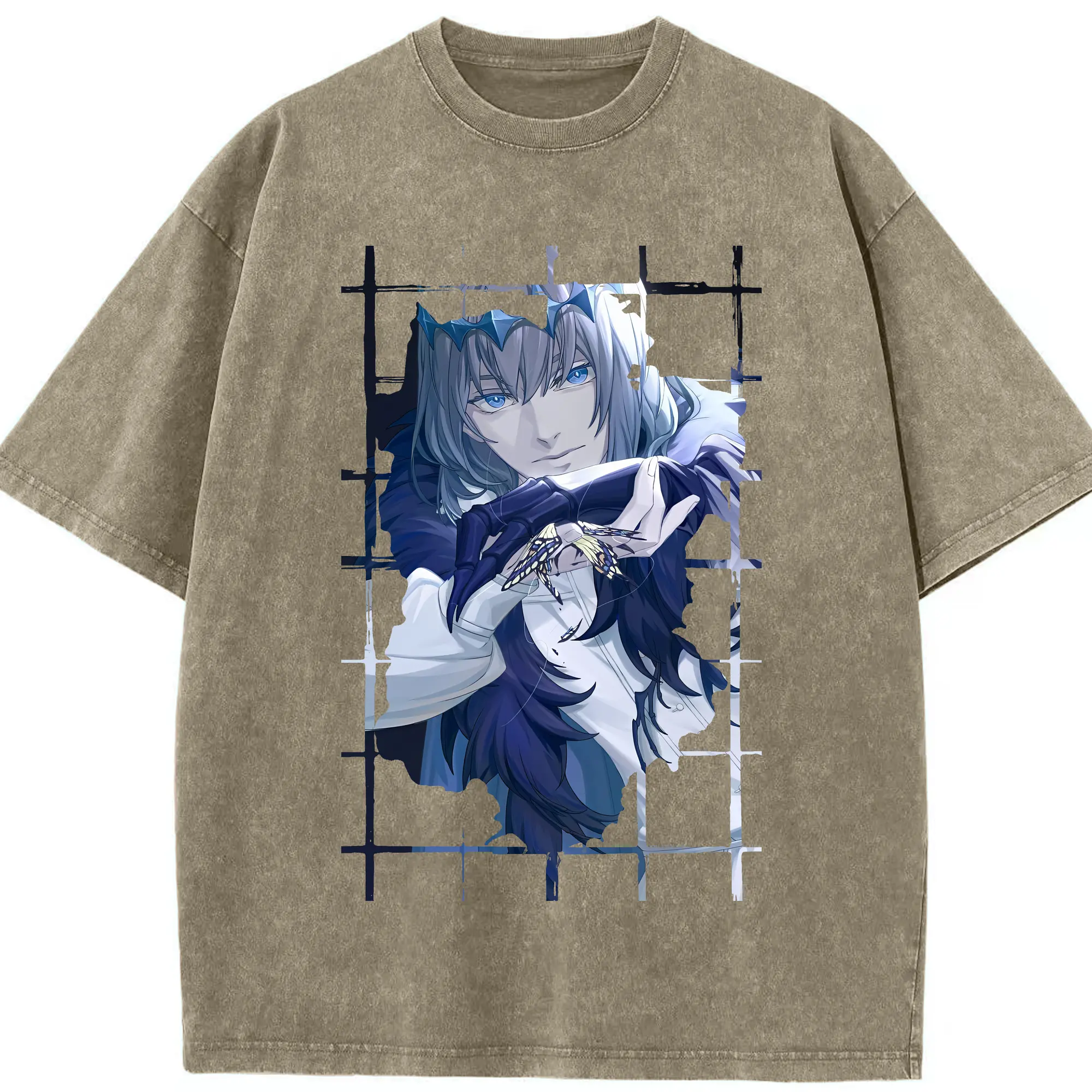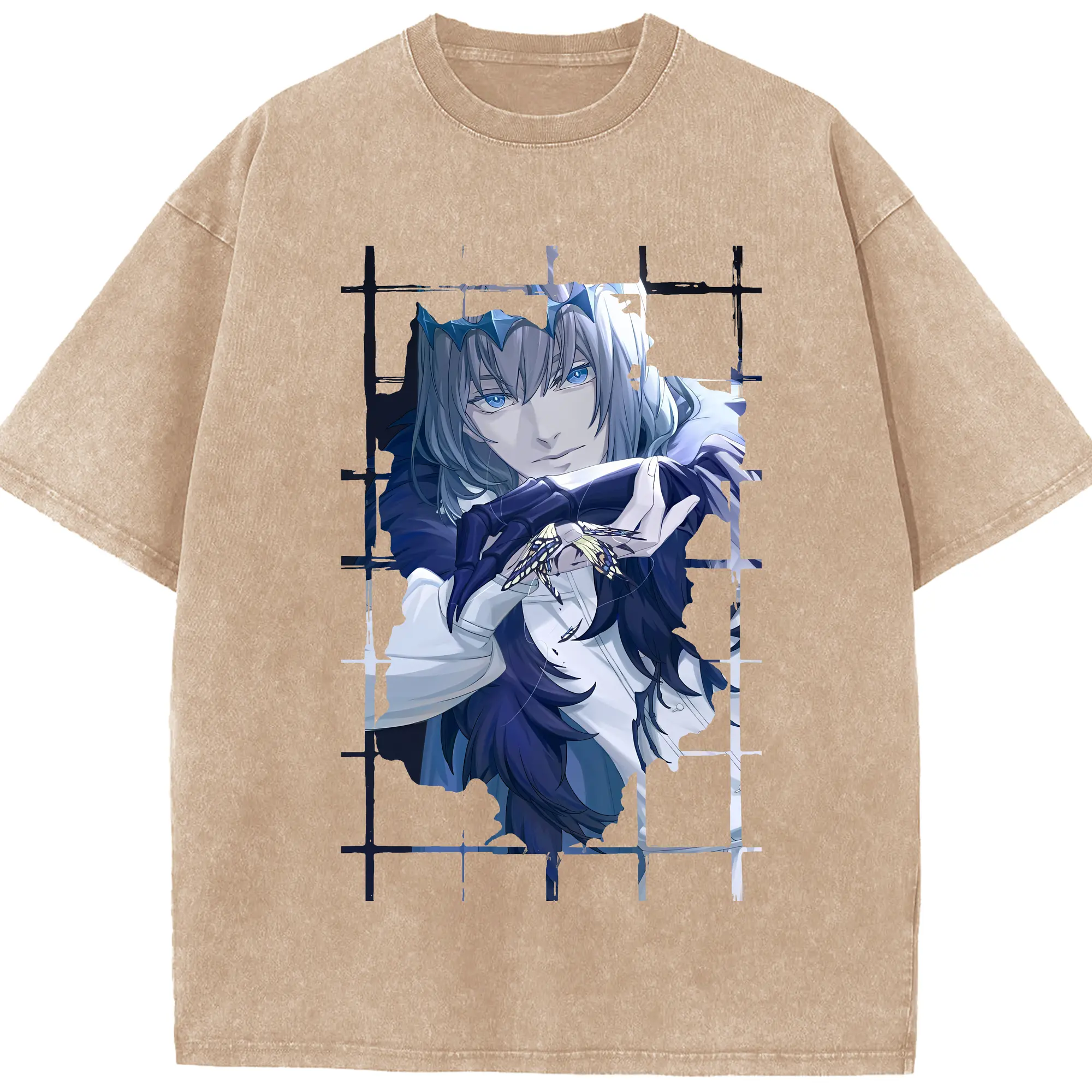 FGO グッズ,オベロン - 綿100% ヴィンテージ風 半袖Tシャツ ・ 背面プリント ・ 柔らか肌触り ・ 通気性 快適 ・ スポーツ カジュアル 外出用