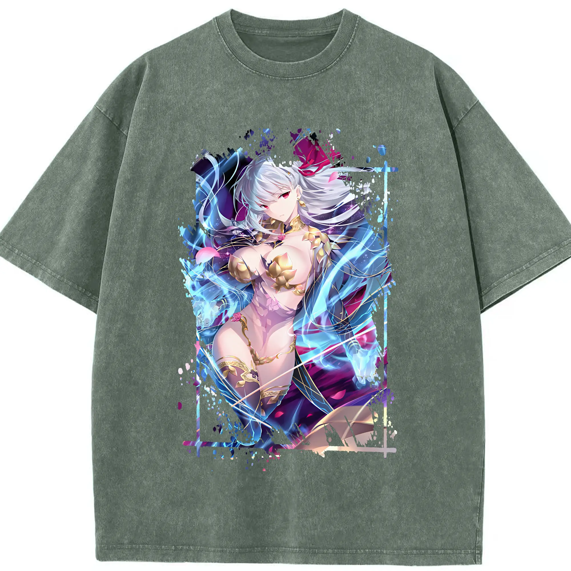 FGO グッズ,カーマ - 綿100% ヴィンテージ風 半袖Tシャツ ・ 背面プリント ・ 柔らか肌触り ・ 通気性 快適 ・ スポーツ カジュアル 外出用