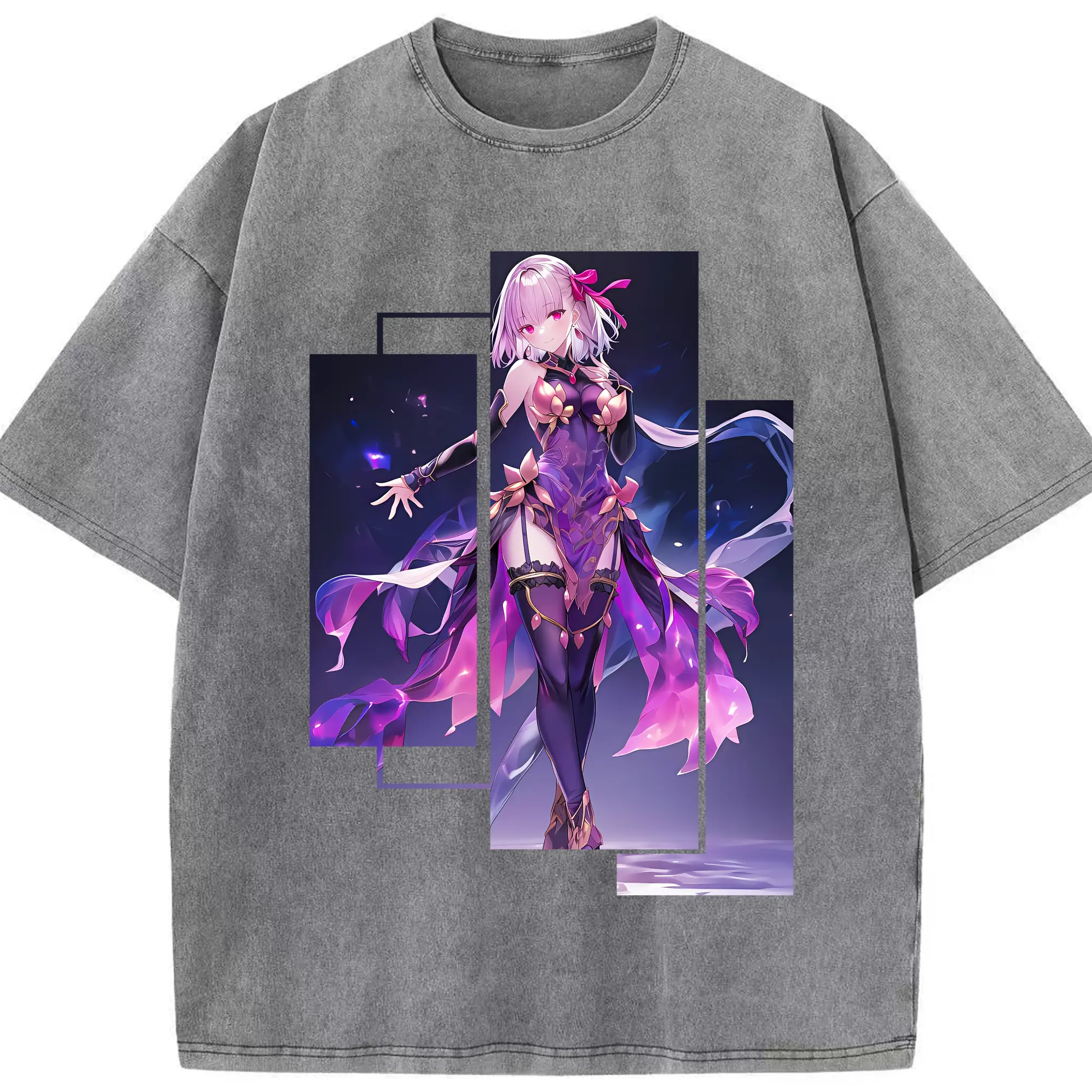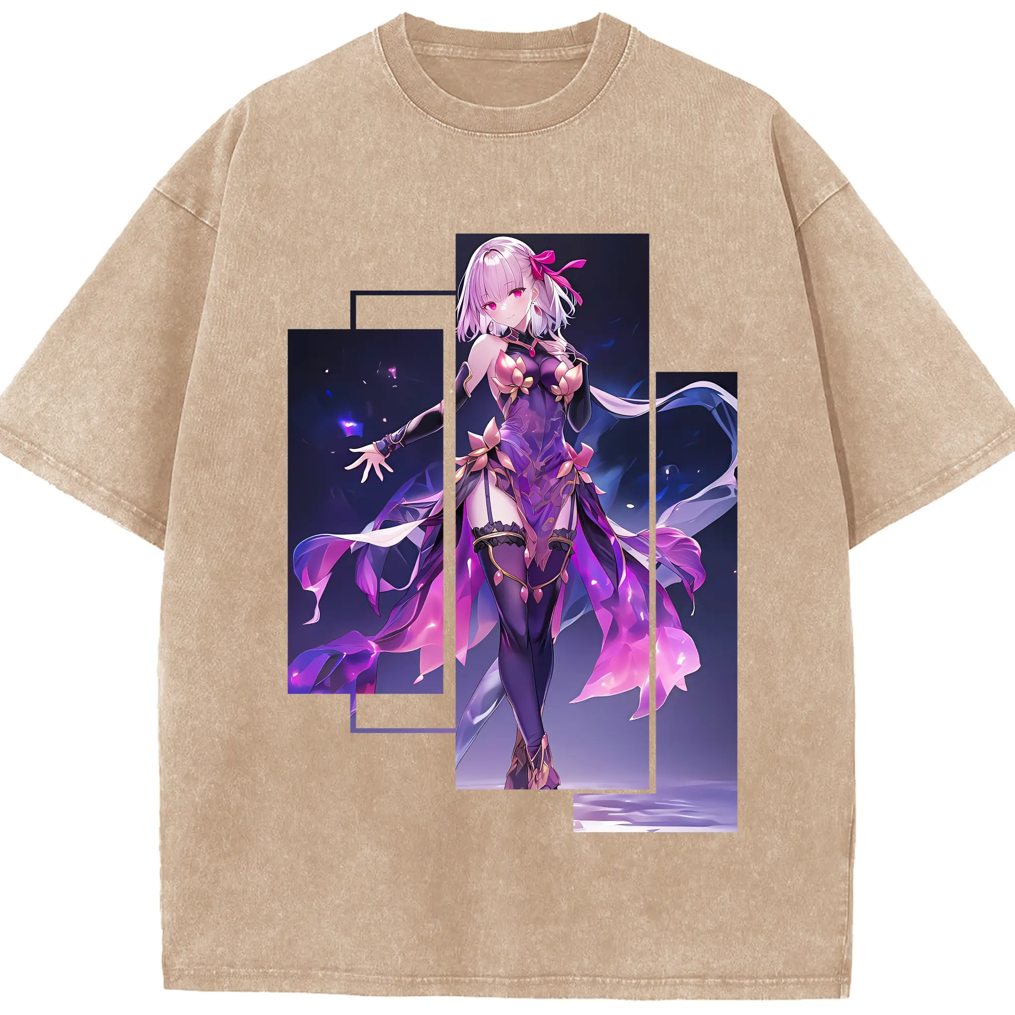 FGO グッズ,カーマ - 綿100% ヴィンテージ風 半袖Tシャツ ・ 背面プリント ・ 柔らか肌触り ・ 通気性 快適 ・ スポーツ カジュアル 外出用