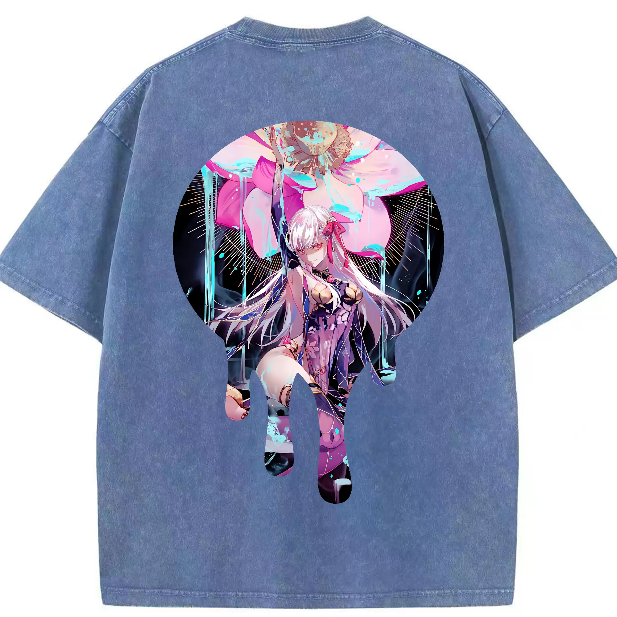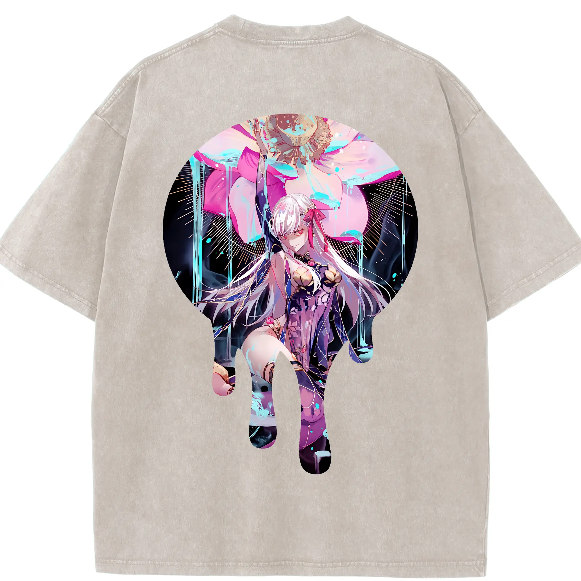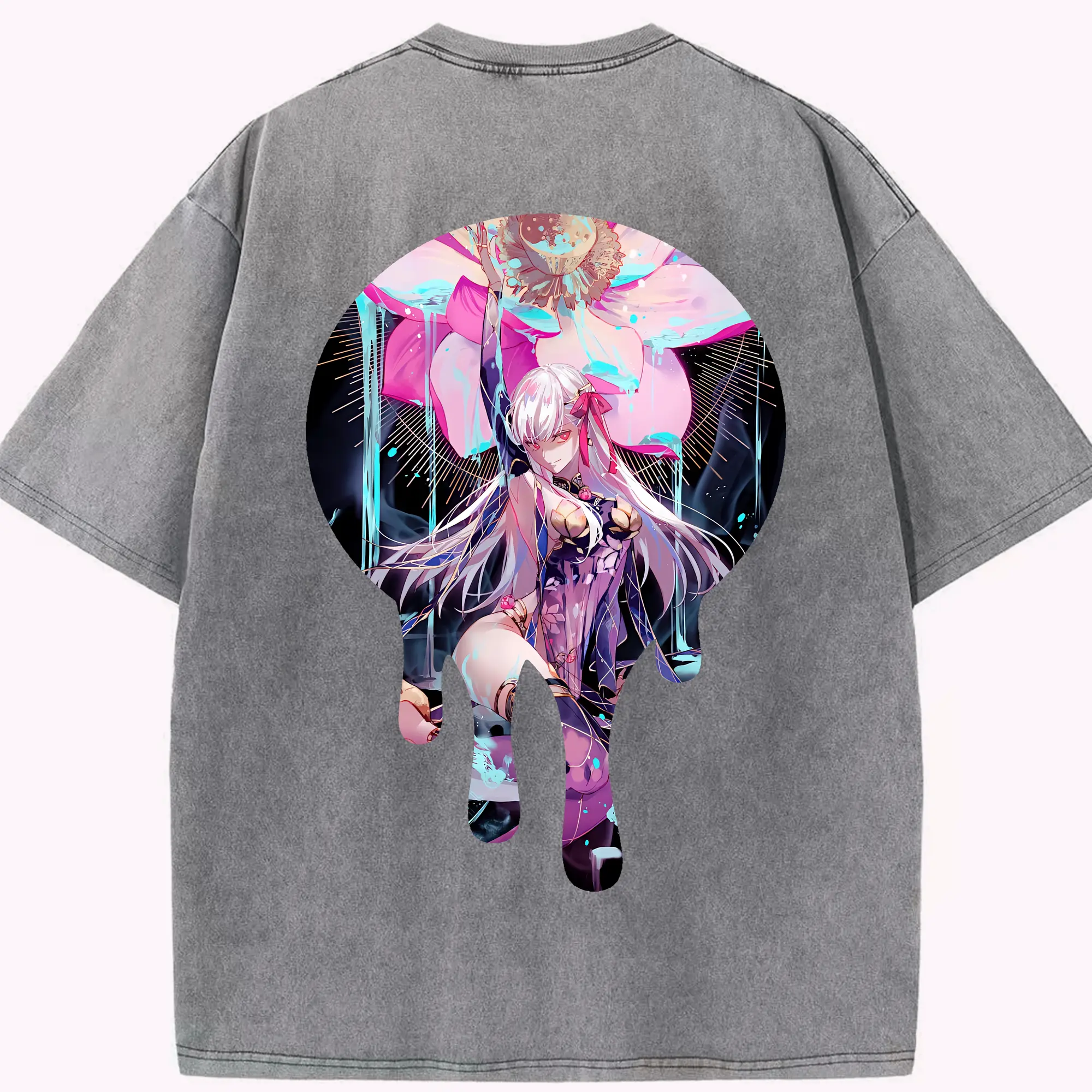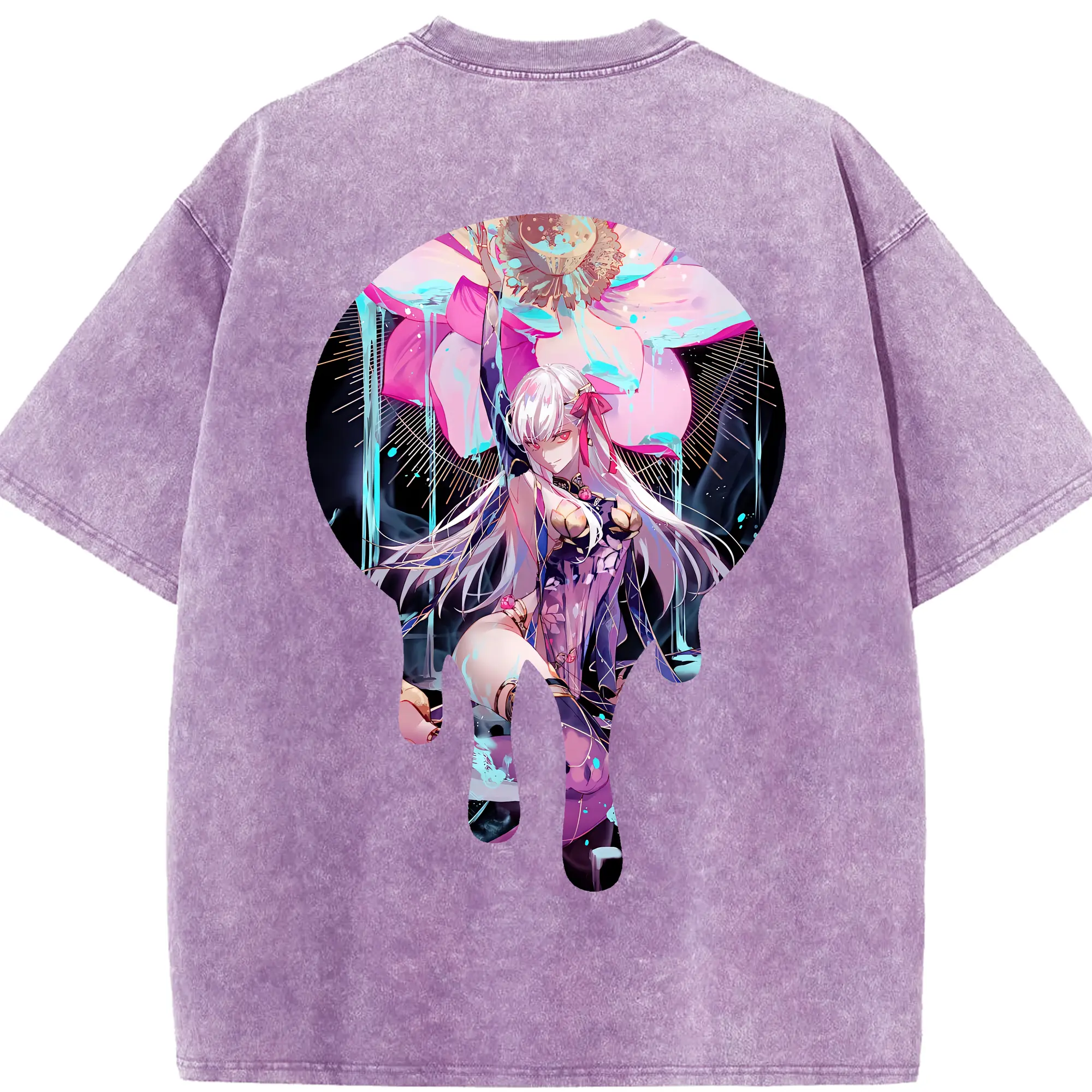 原 神 グッズ 雷電将軍 - 綿100% ヴィンテージ風 半袖Tシャツ ・ 背面プリント ・ 柔らか肌触り ・ 通気性 快適 ・ スポーツ カジュアル 外出用
