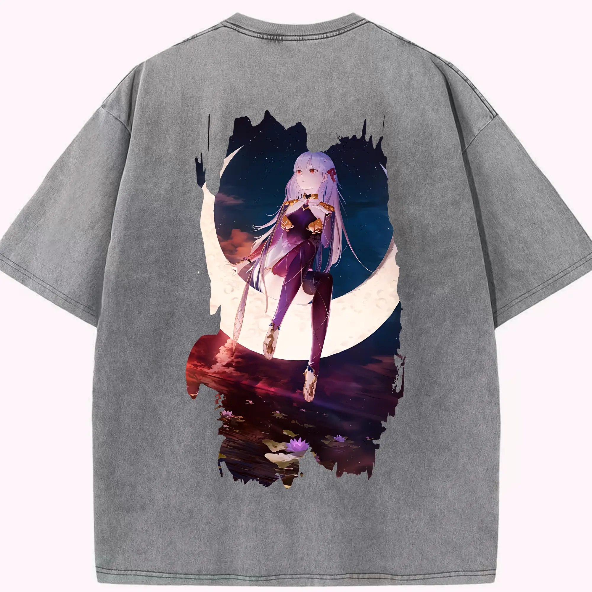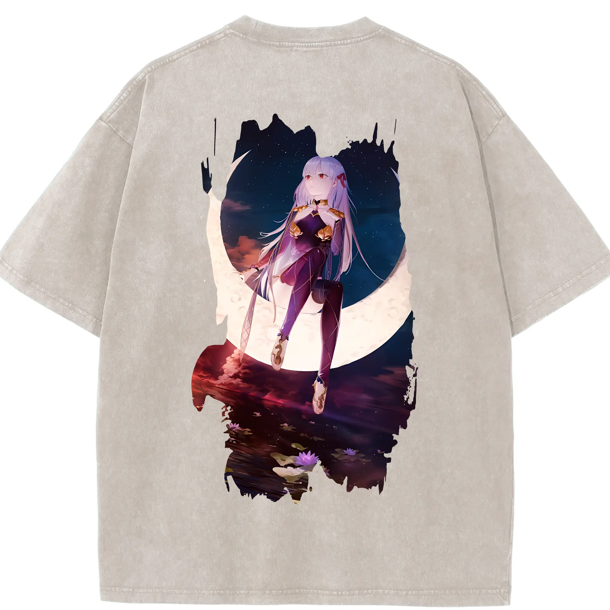 鳴潮 グッズ ザンニー - 綿100% ヴィンテージ風 半袖Tシャツ ・ 背面プリント ・ 柔らか肌触り ・ 通気性 快適 ・ スポーツ カジュアル 外出用