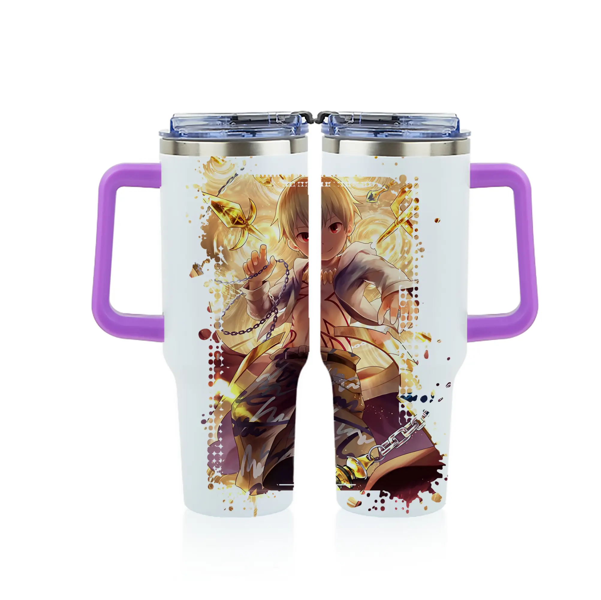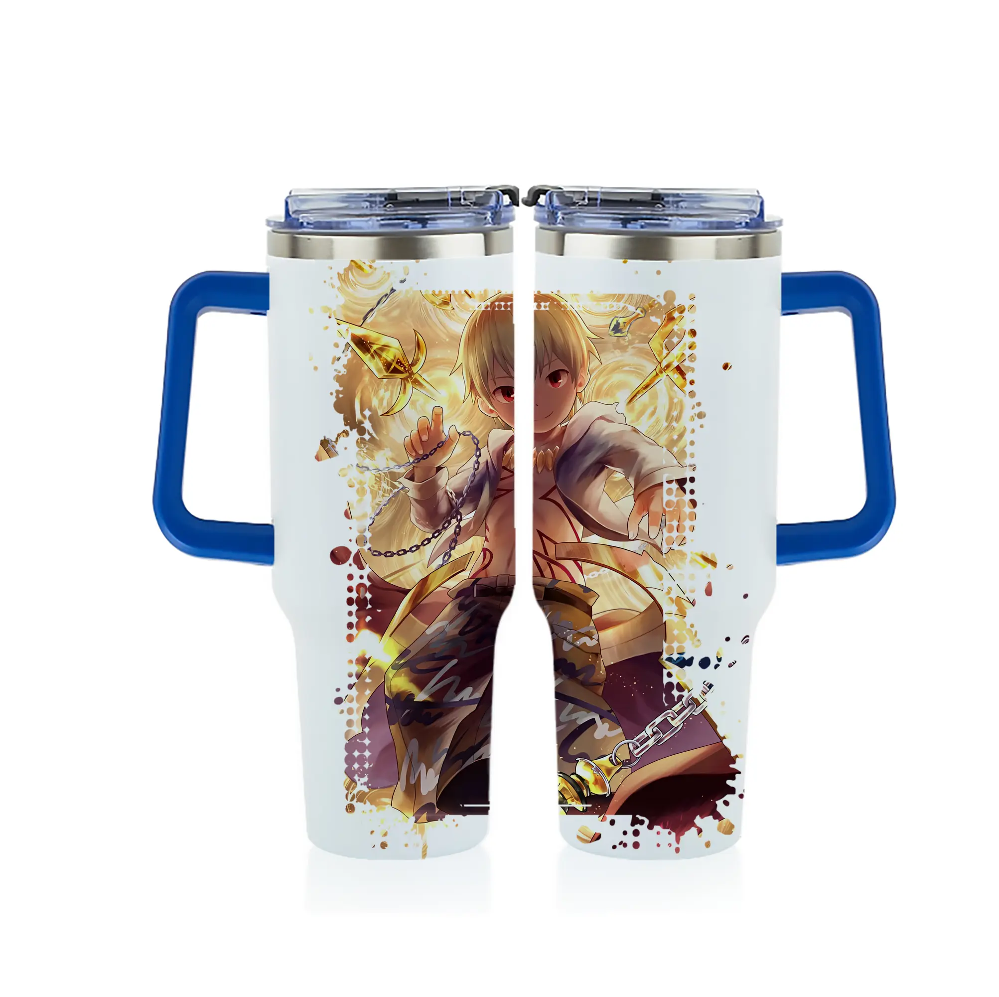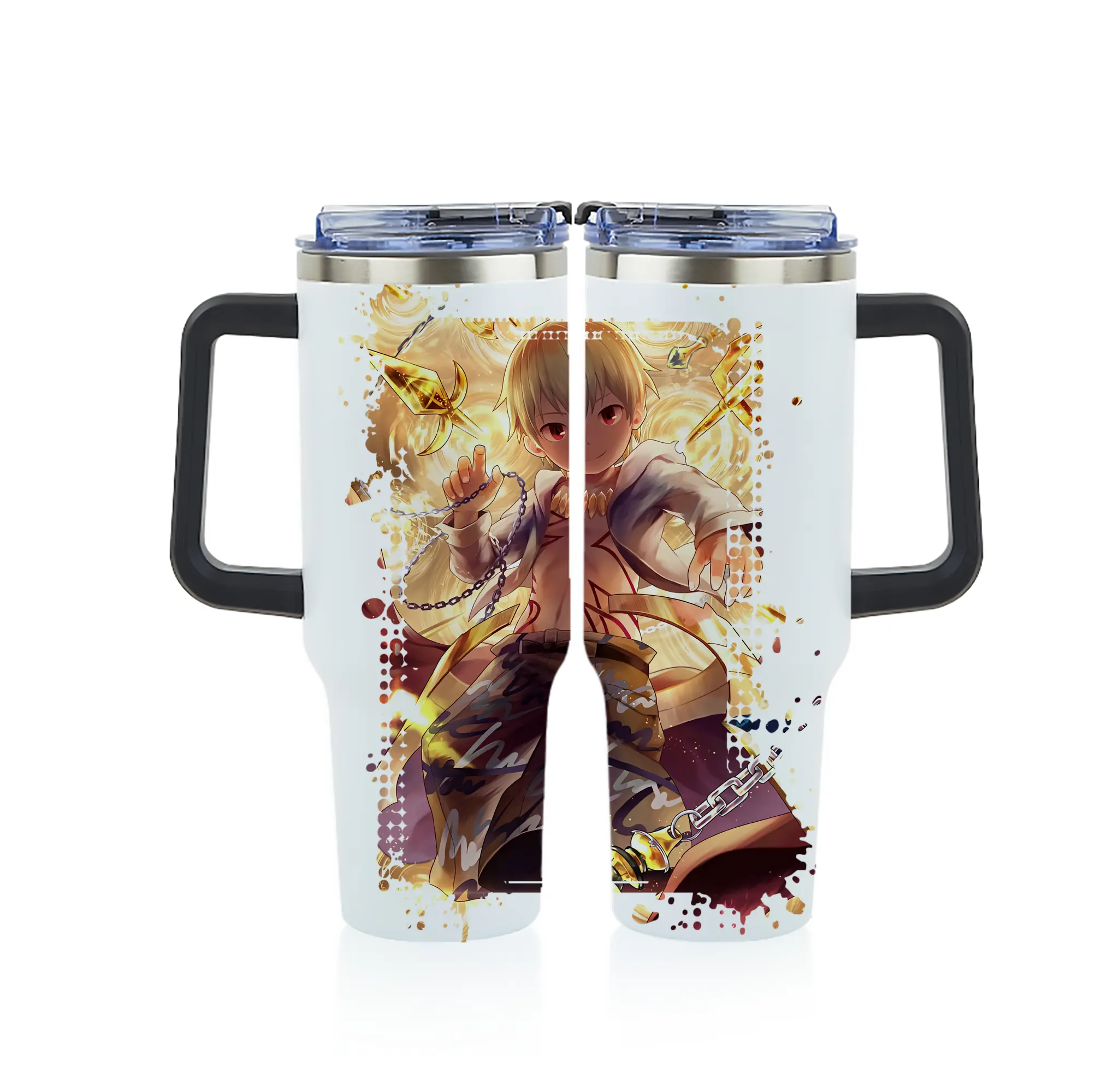 FGO グッズ,ギルガメッシュ - 1200mL フルプリント車用タンブラー ・ 304ステンレス 内側 ・ 201ステンレス 外側 ・ 保温 保冷 ・ 通勤 ドライブ アウトドア用