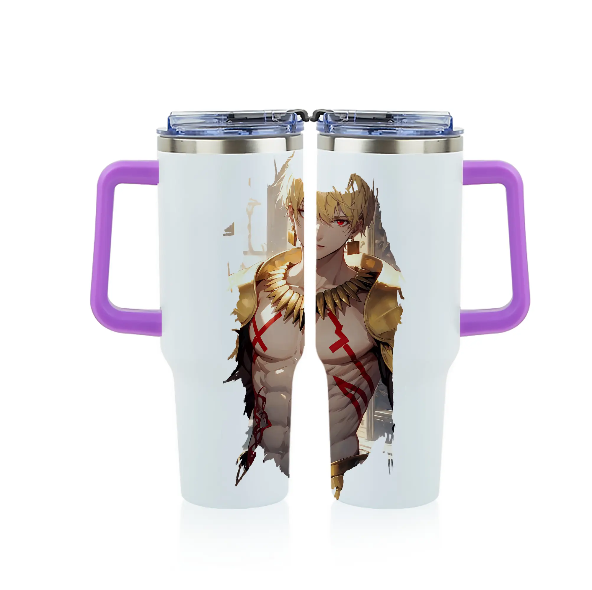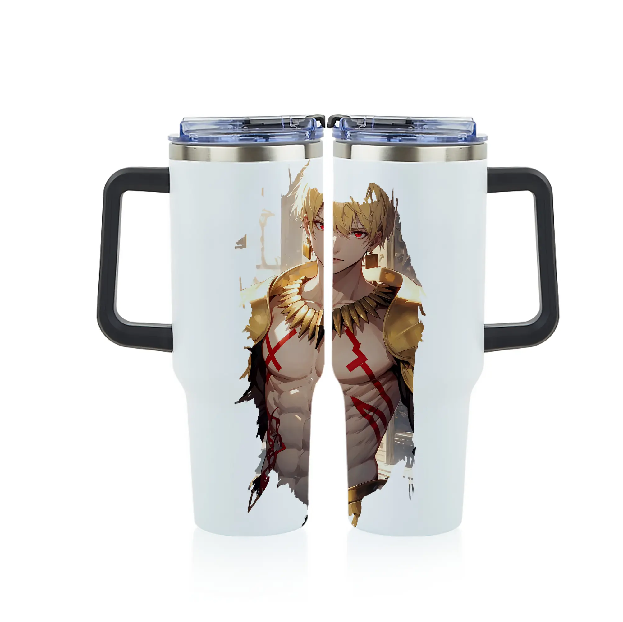 FGO グッズ,ギルガメッシュ - 1200mL フルプリント車用タンブラー ・ 304ステンレス 内側 ・ 201ステンレス 外側 ・ 保温 保冷 ・ 通勤 ドライブ アウトドア用