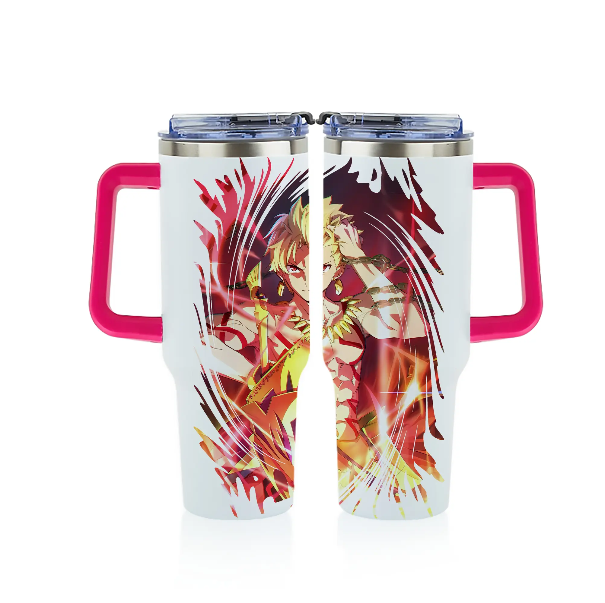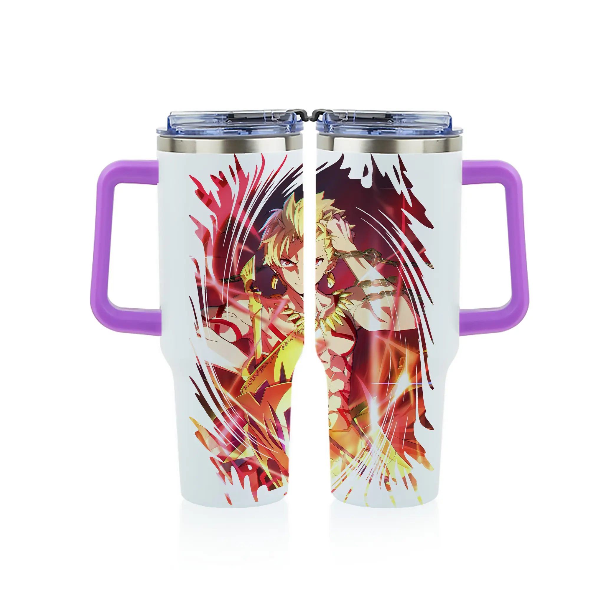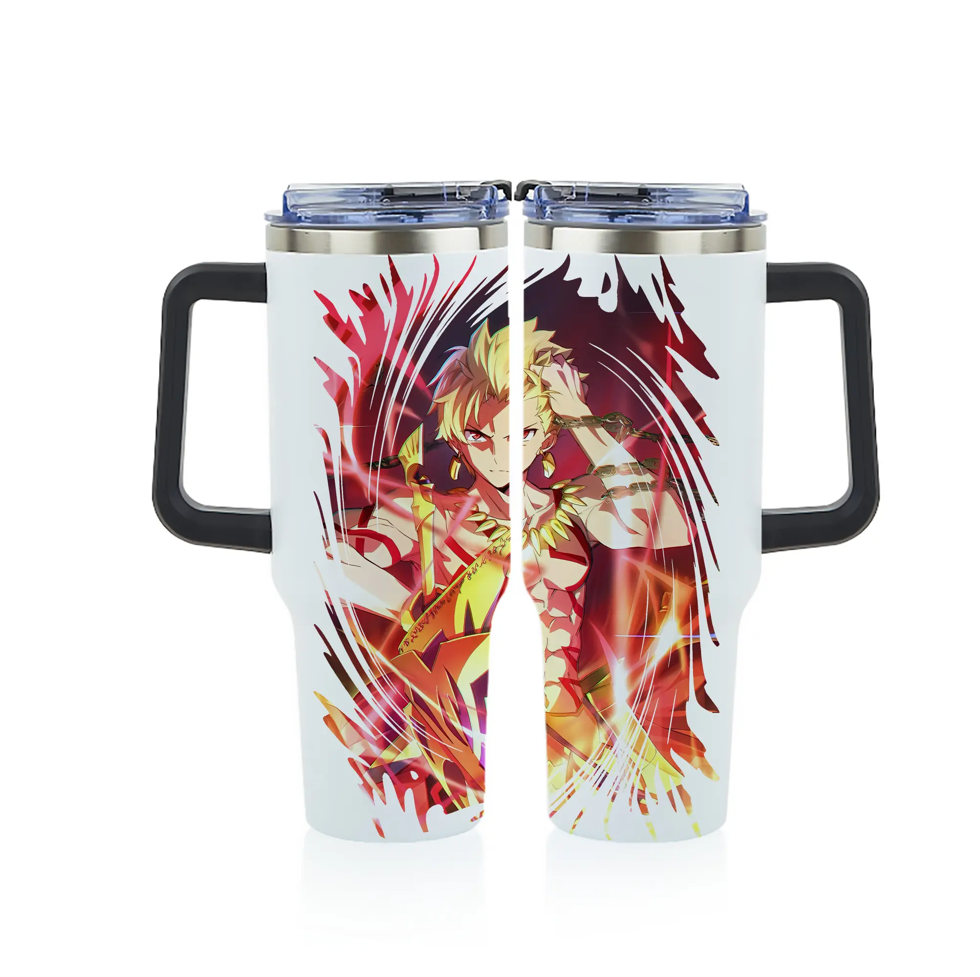 FGO グッズ,ギルガメッシュ - 1200mL フルプリント車用タンブラー ・ 304ステンレス 内側 ・ 201ステンレス 外側 ・ 保温 保冷 ・ 通勤 ドライブ アウトドア用