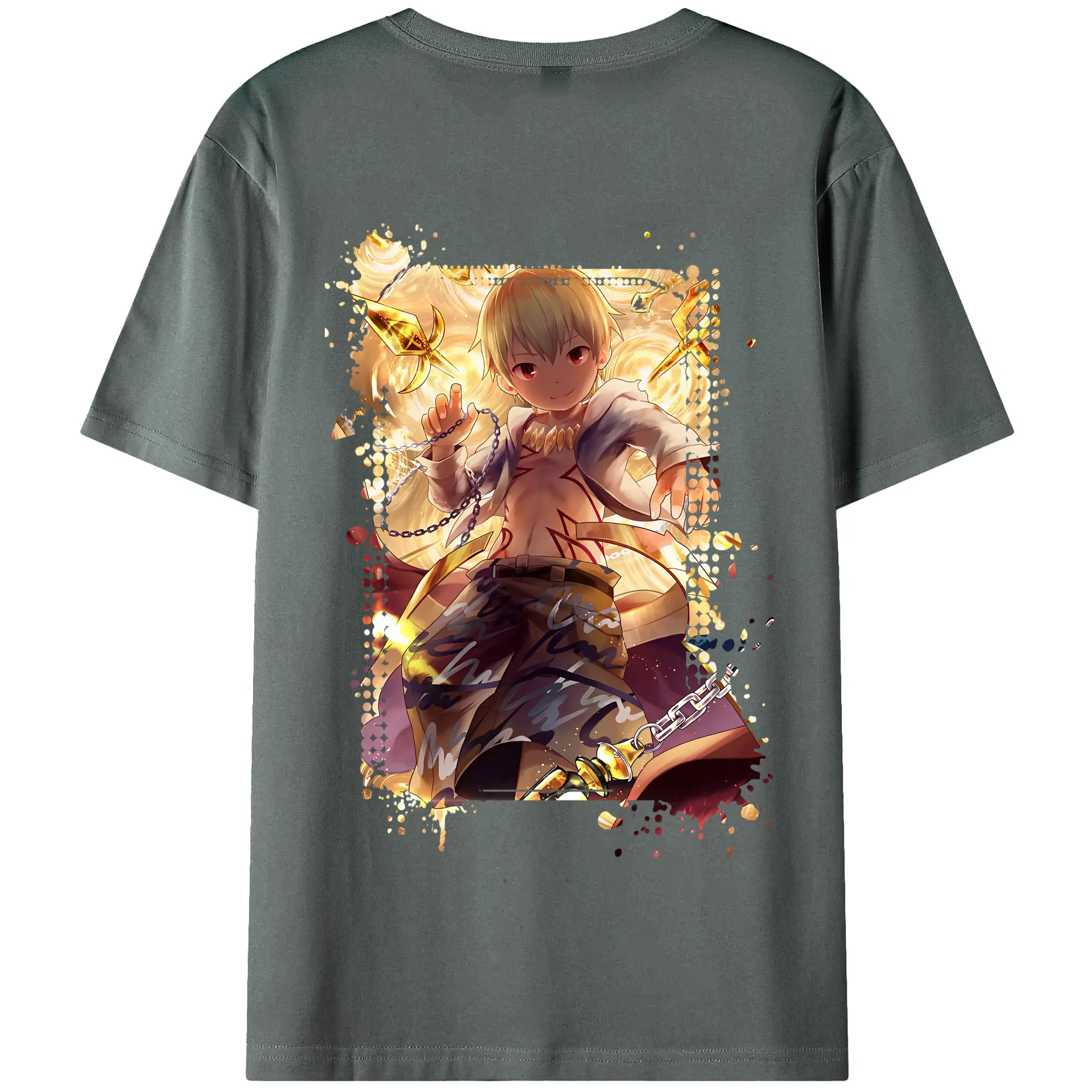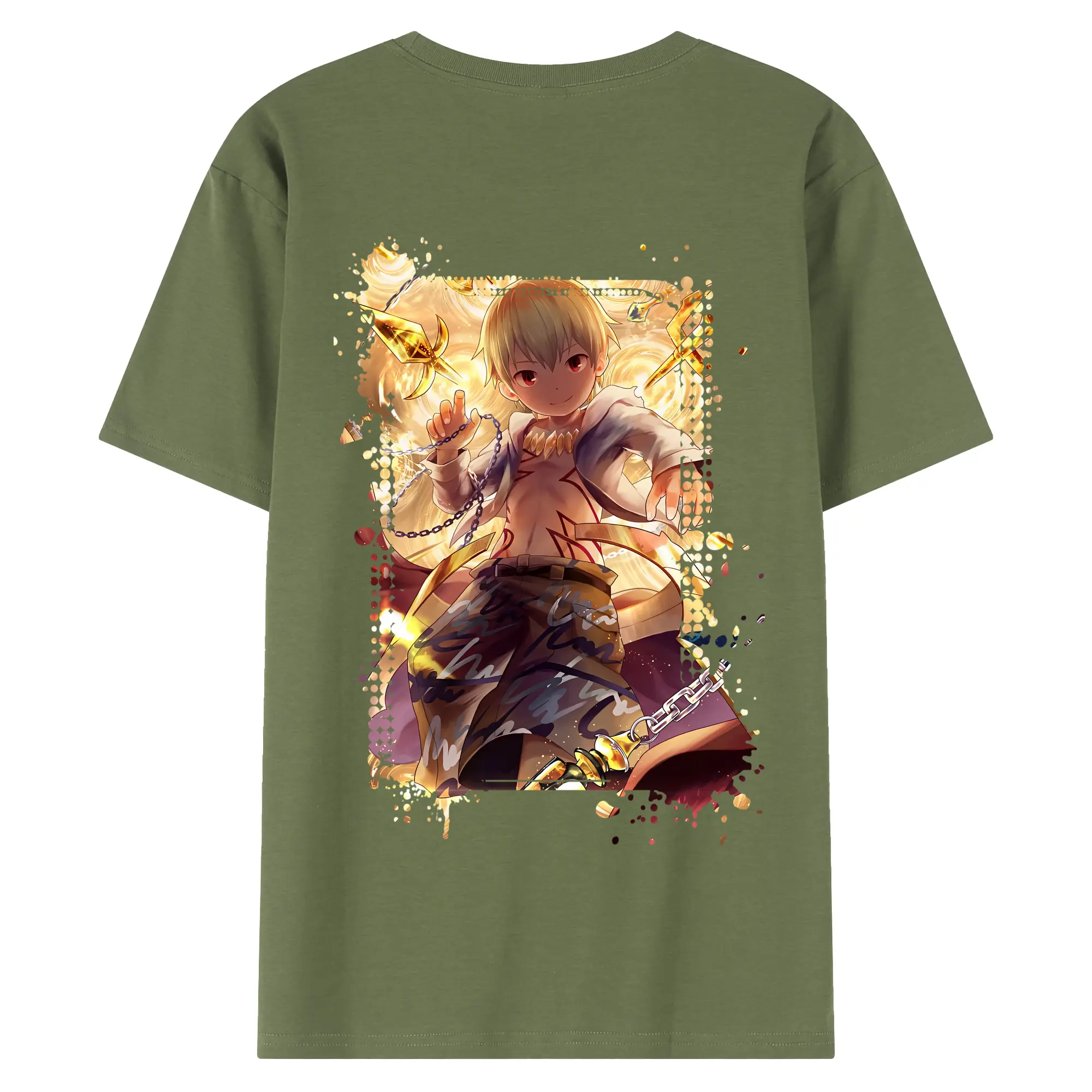 FGO グッズ,ギルガメッシュ - 綿100% 半袖Tシャツ ・ フロントプリント ・ 快適 通気性 ・ 日常使い 散歩 スポーツ用