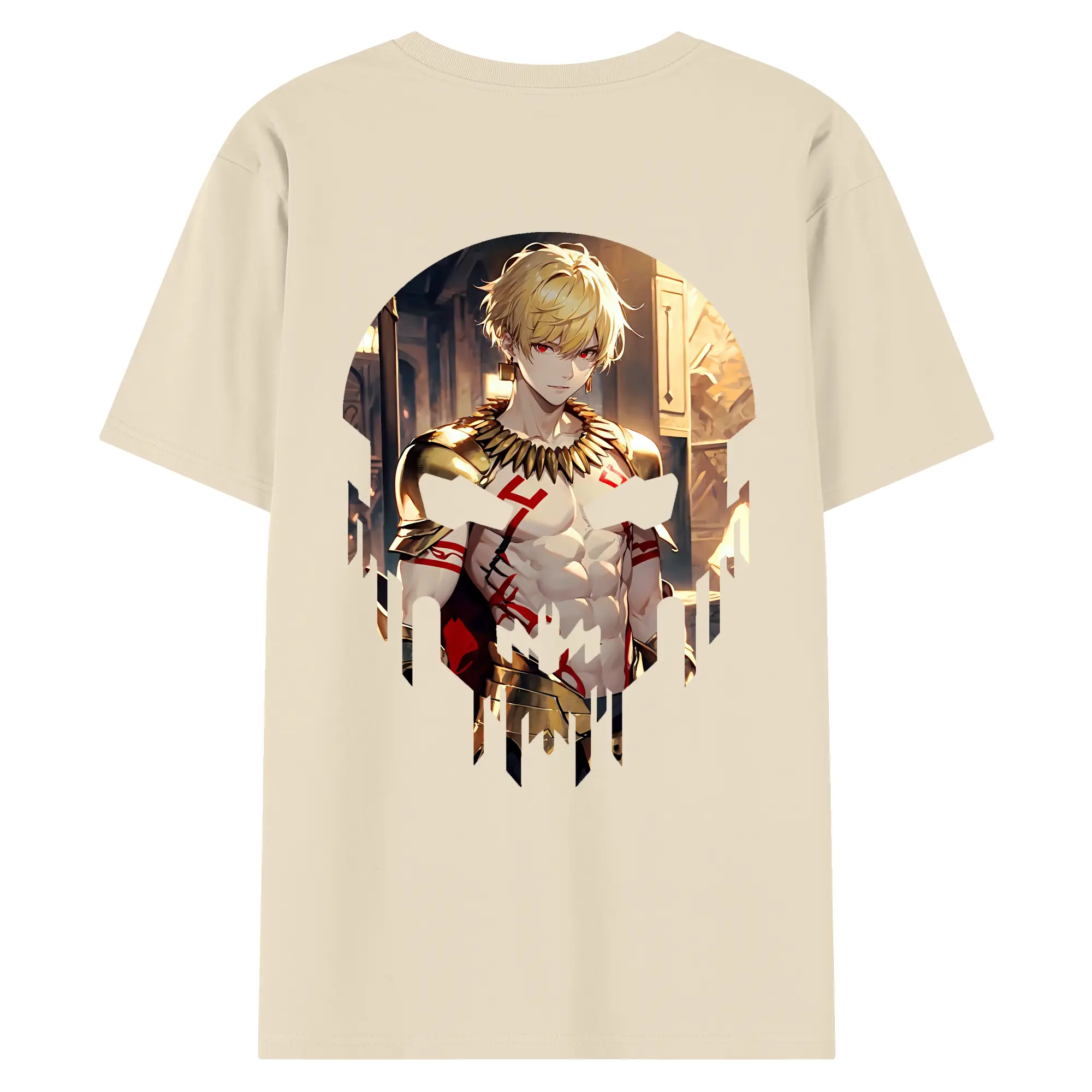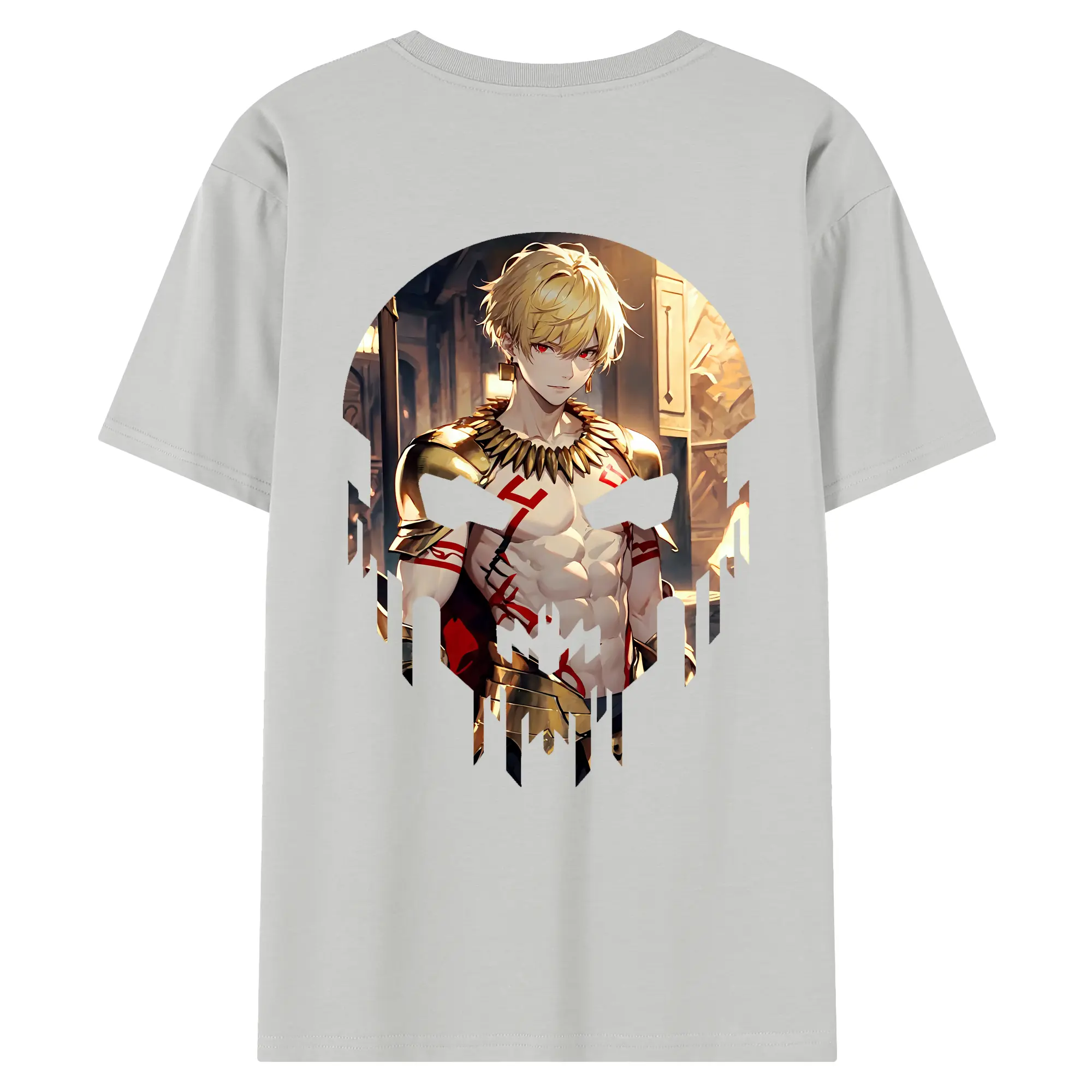 FGO グッズ,ギルガメッシュ - 綿100% ヴィンテージ風 半袖Tシャツ ・ 背面プリント ・ 柔らか肌触り ・ 通気性 快適 ・ スポーツ カジュアル 外出用