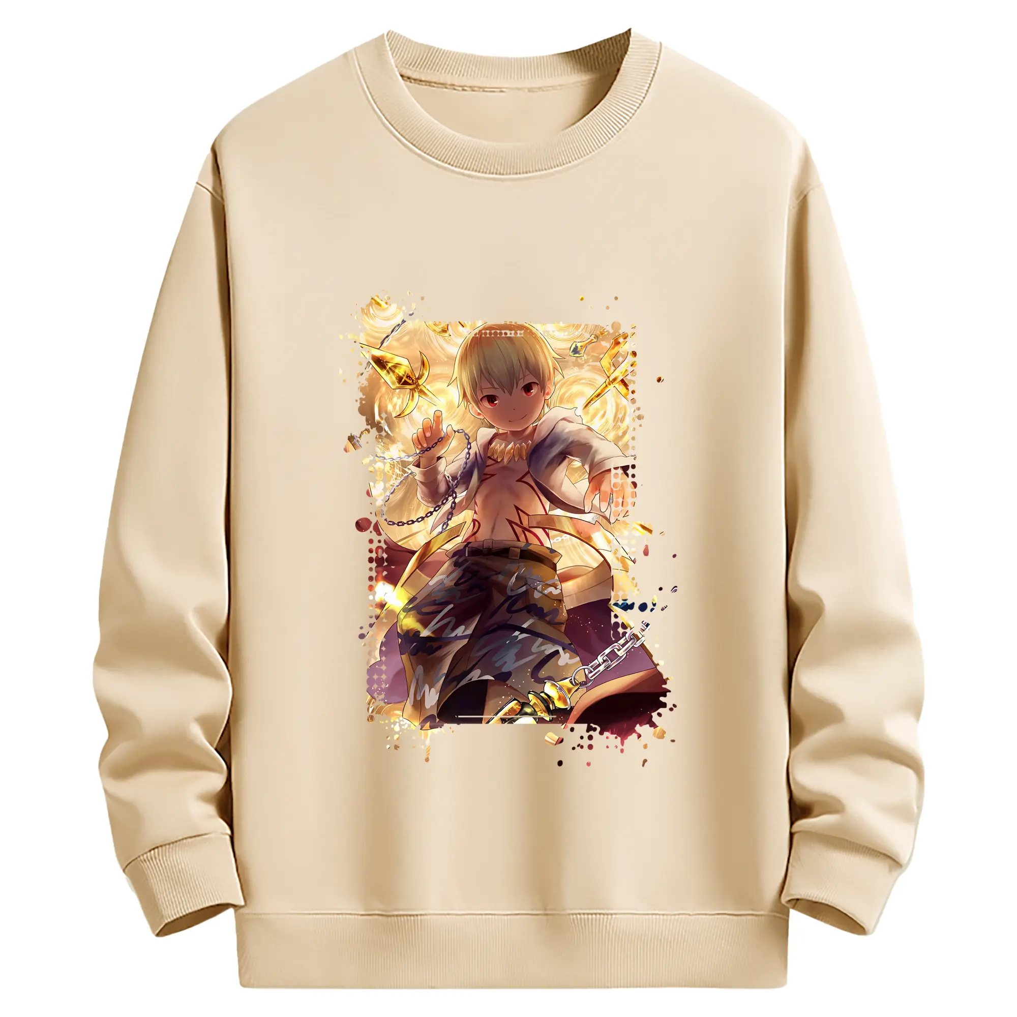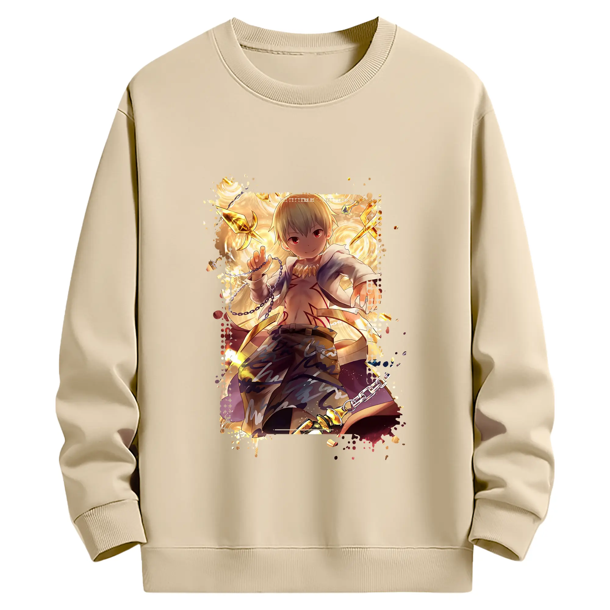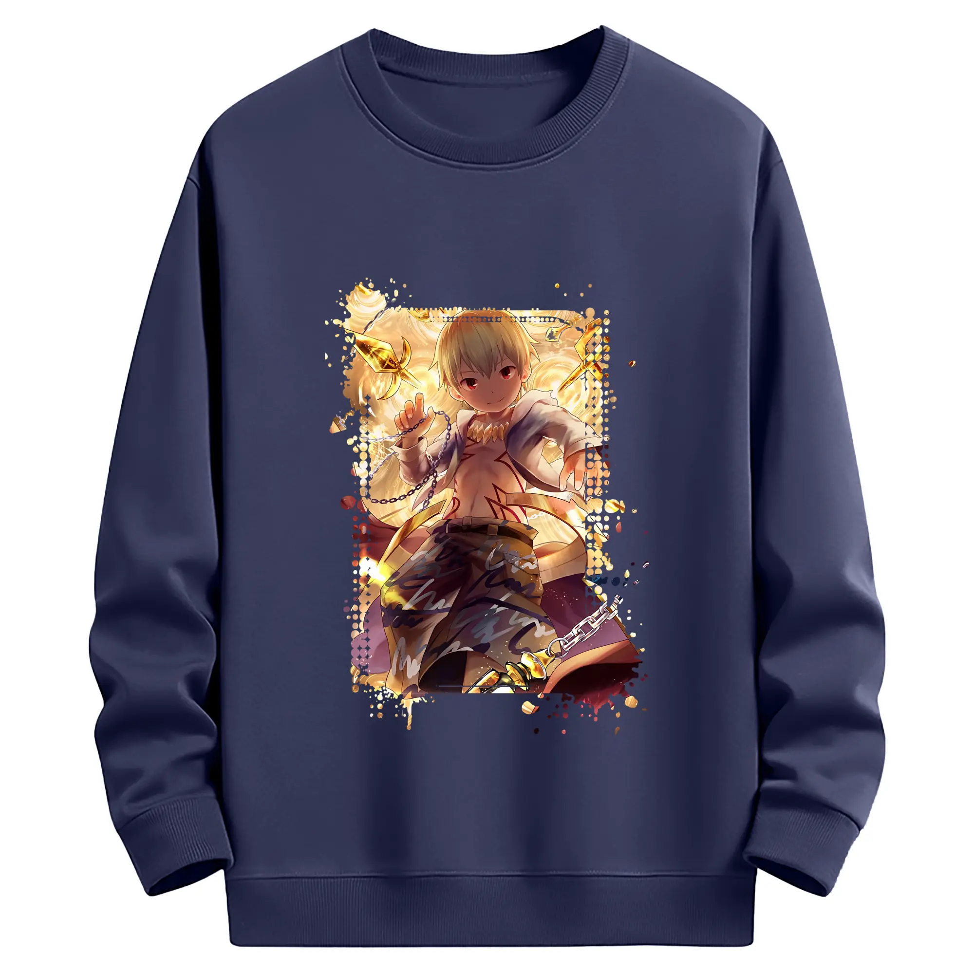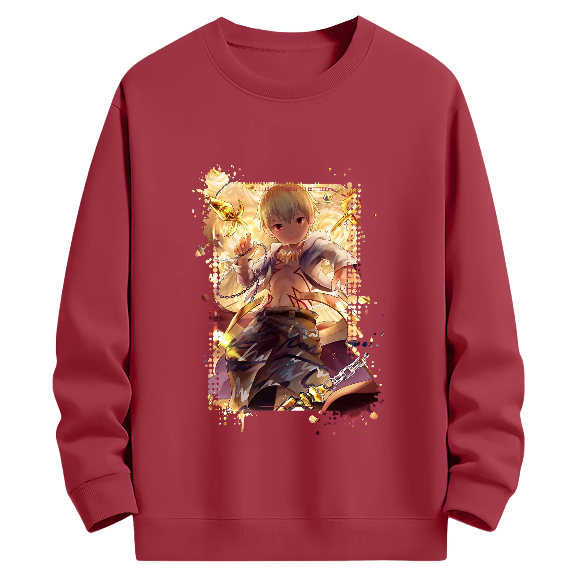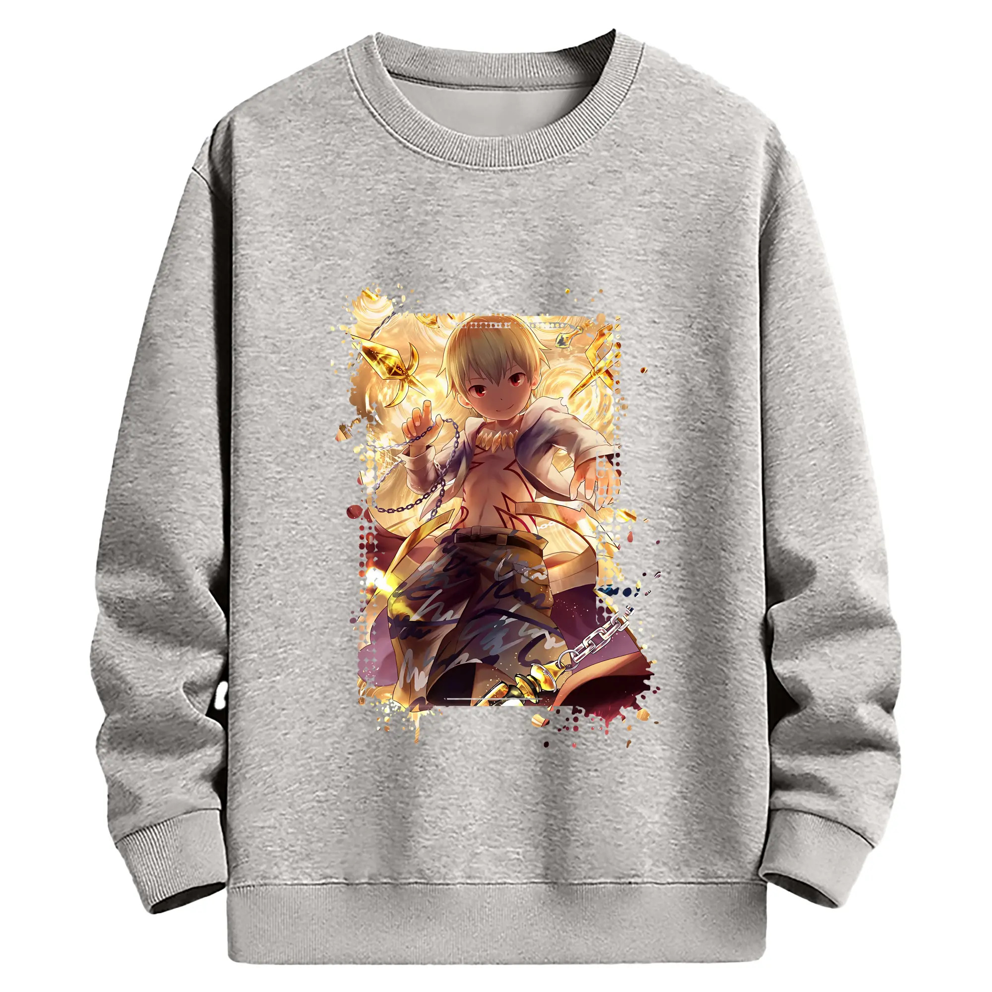 FGO グッズ,ギルガメッシュ - 薄手 クルーネック スウェット 裏毛260g · ポリエステル 春秋向け カジュアル 男女兼用 · トレーナー デイリー スポーツ 散歩に最適