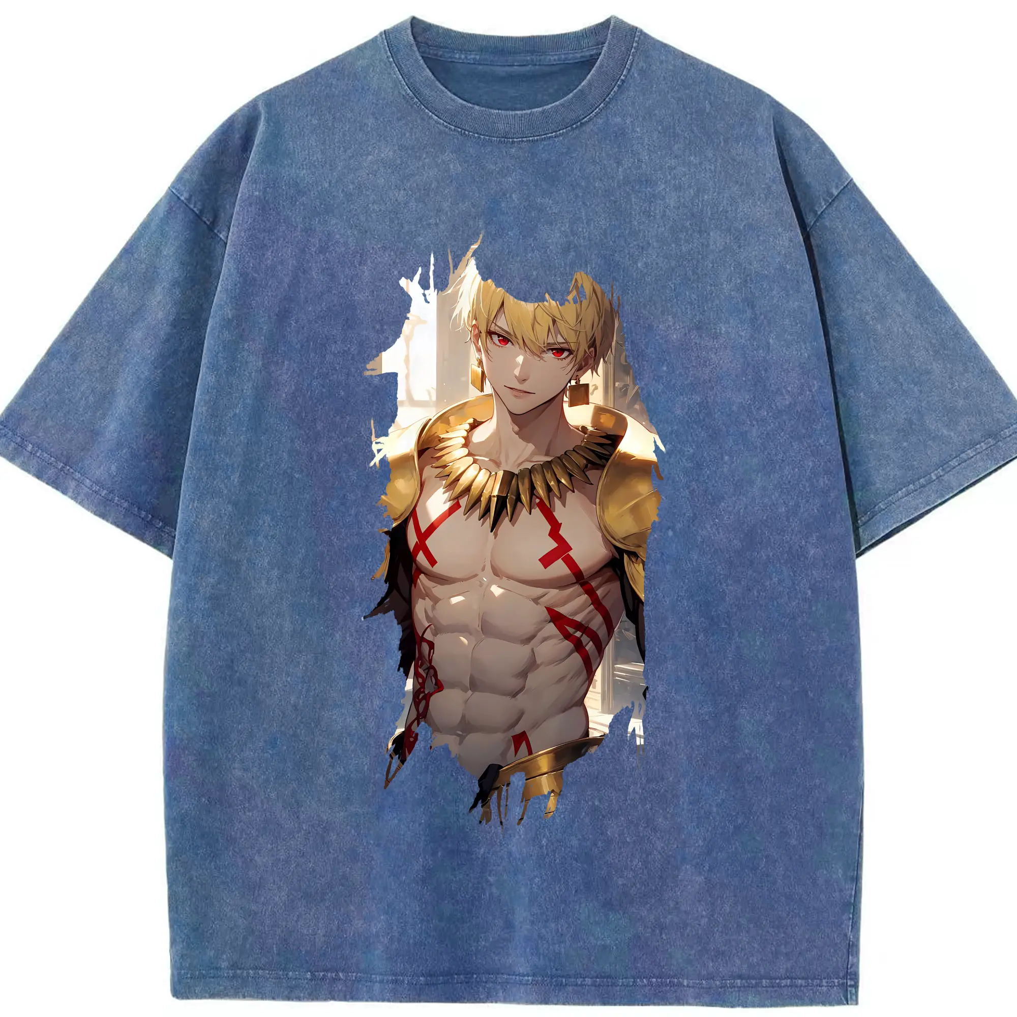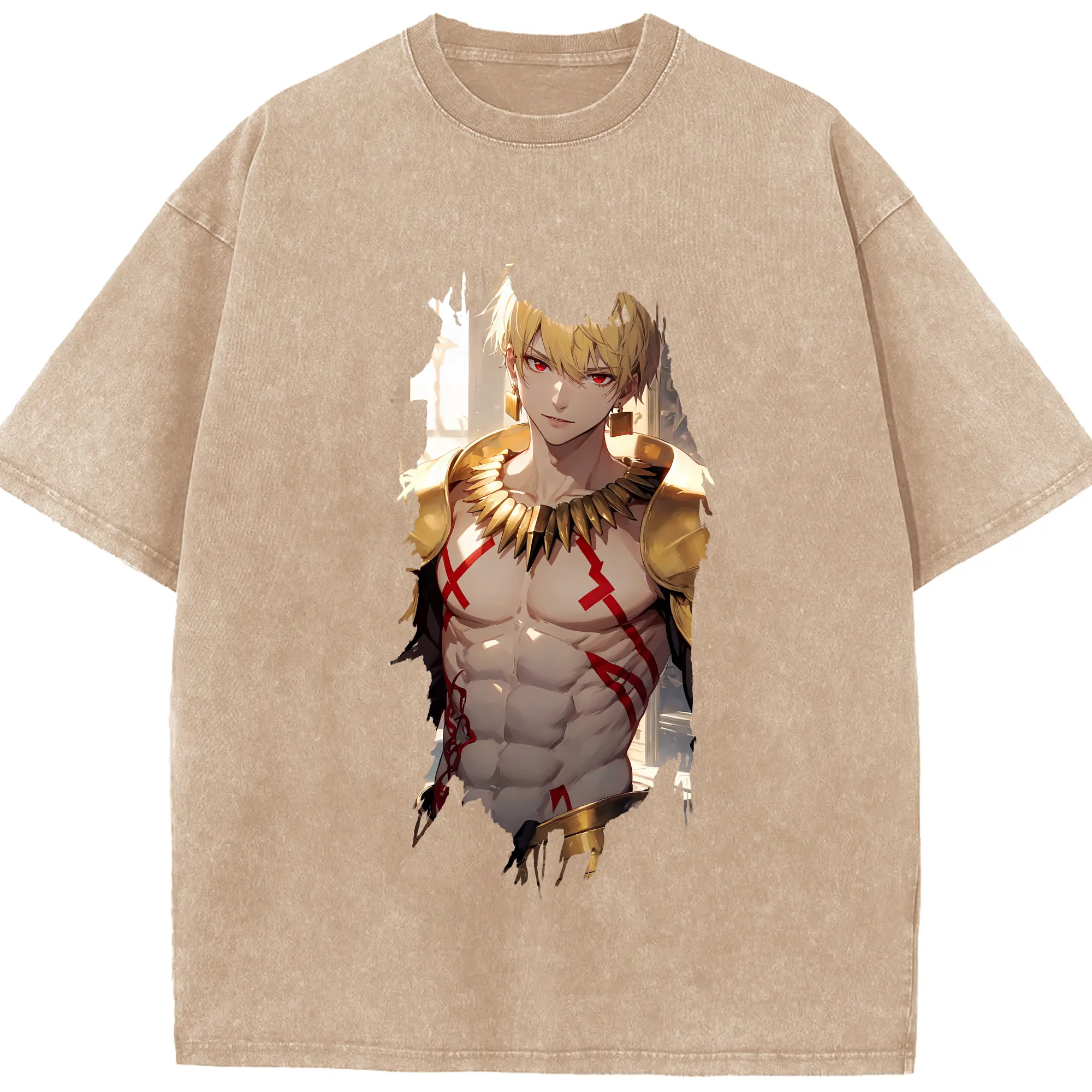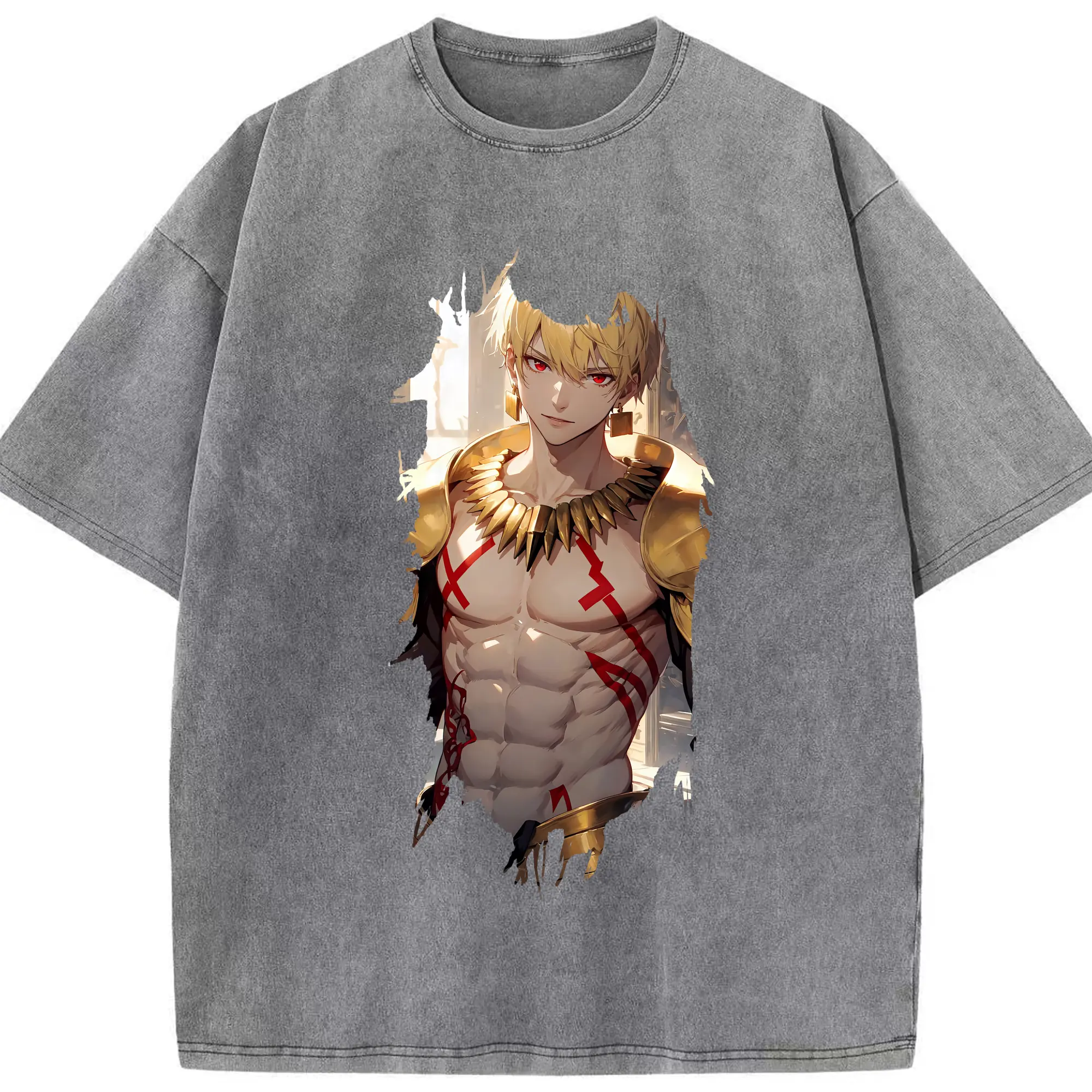 FGO グッズ,ギルガメッシュ - 綿100% ヴィンテージ風 半袖Tシャツ ・ 背面プリント ・ 柔らか肌触り ・ 通気性 快適 ・ スポーツ カジュアル 外出用