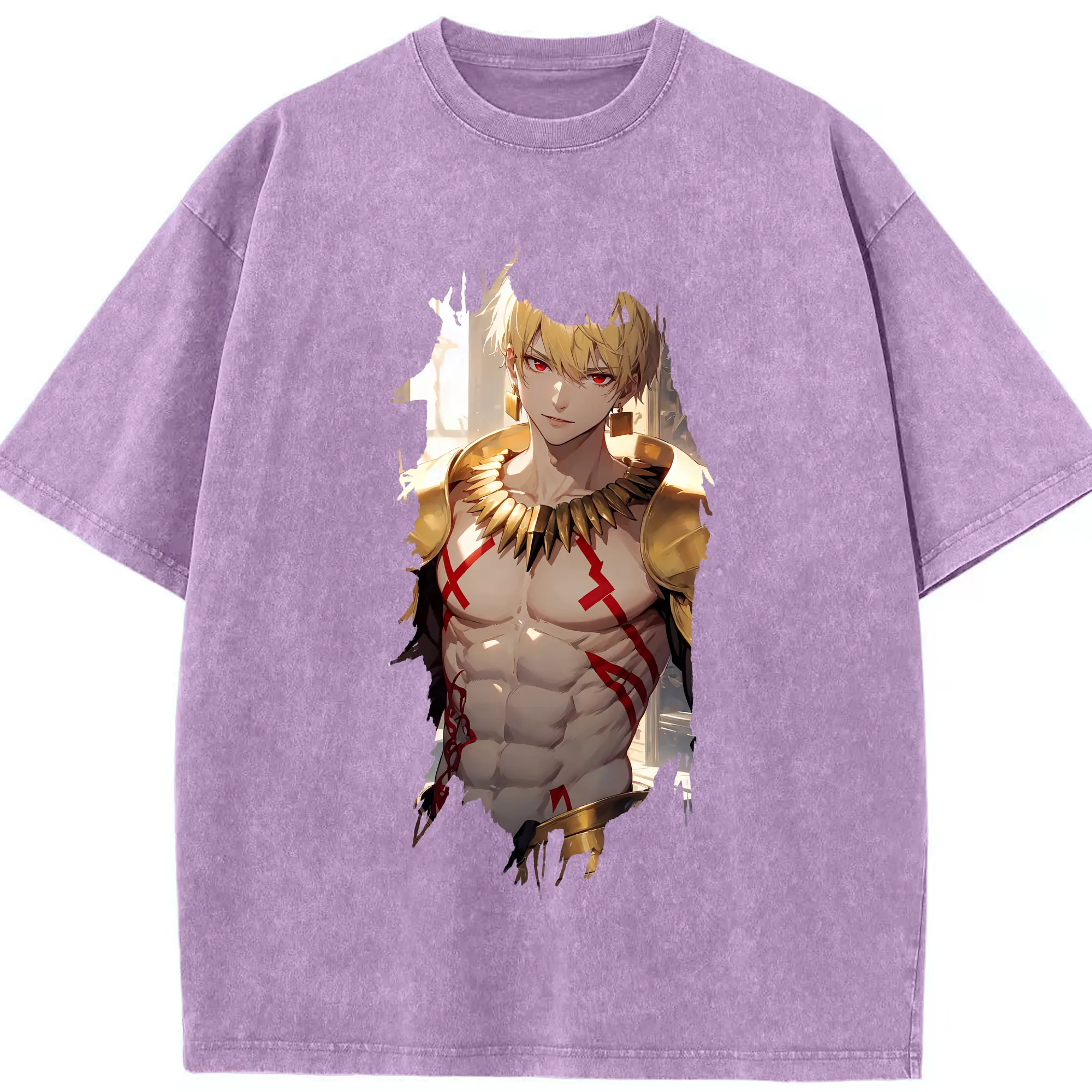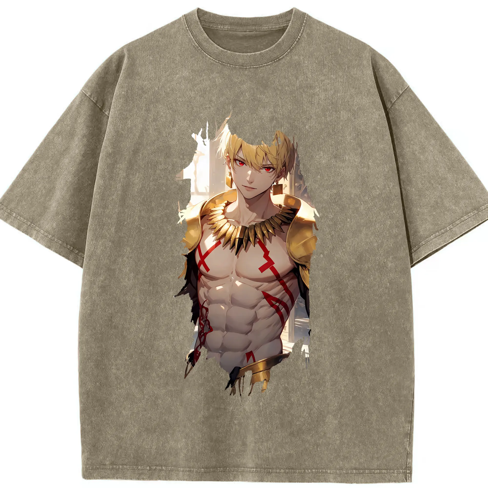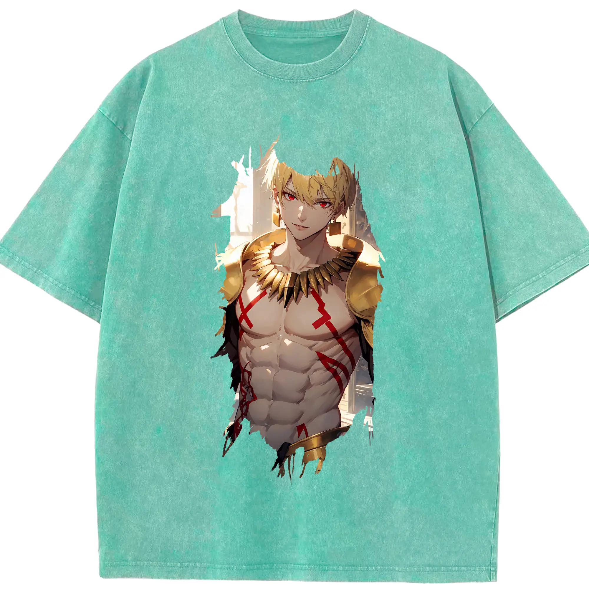 FGO グッズ,ギルガメッシュ - 綿100% ヴィンテージ風 半袖Tシャツ ・ 背面プリント ・ 柔らか肌触り ・ 通気性 快適 ・ スポーツ カジュアル 外出用