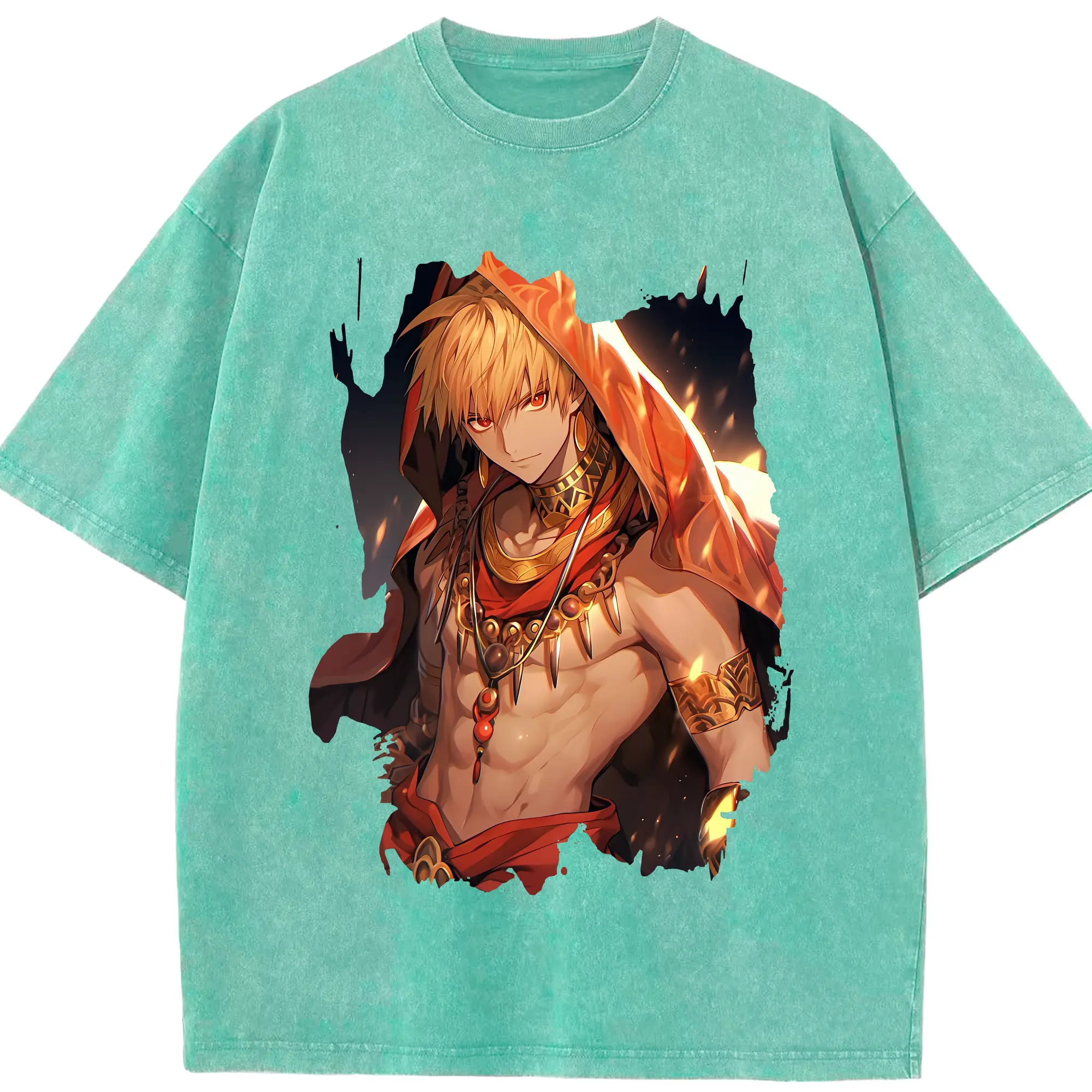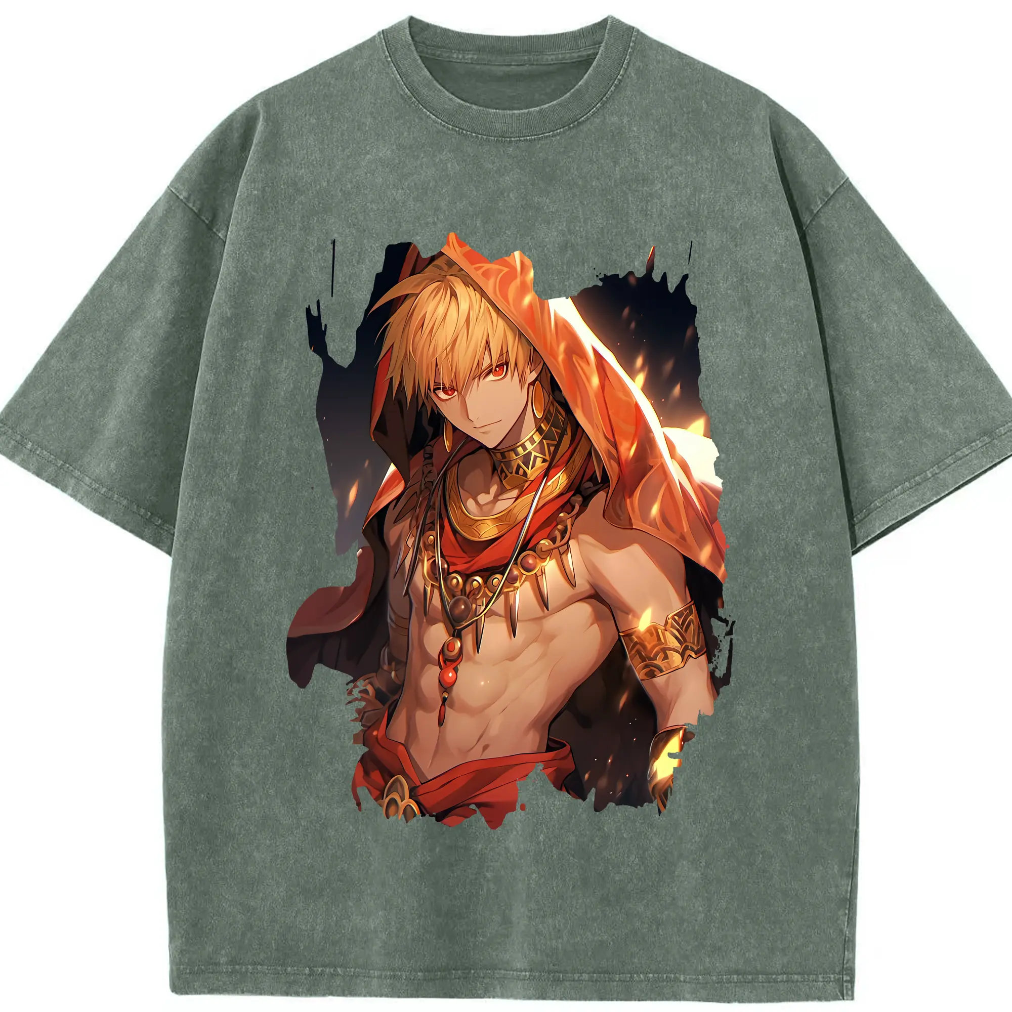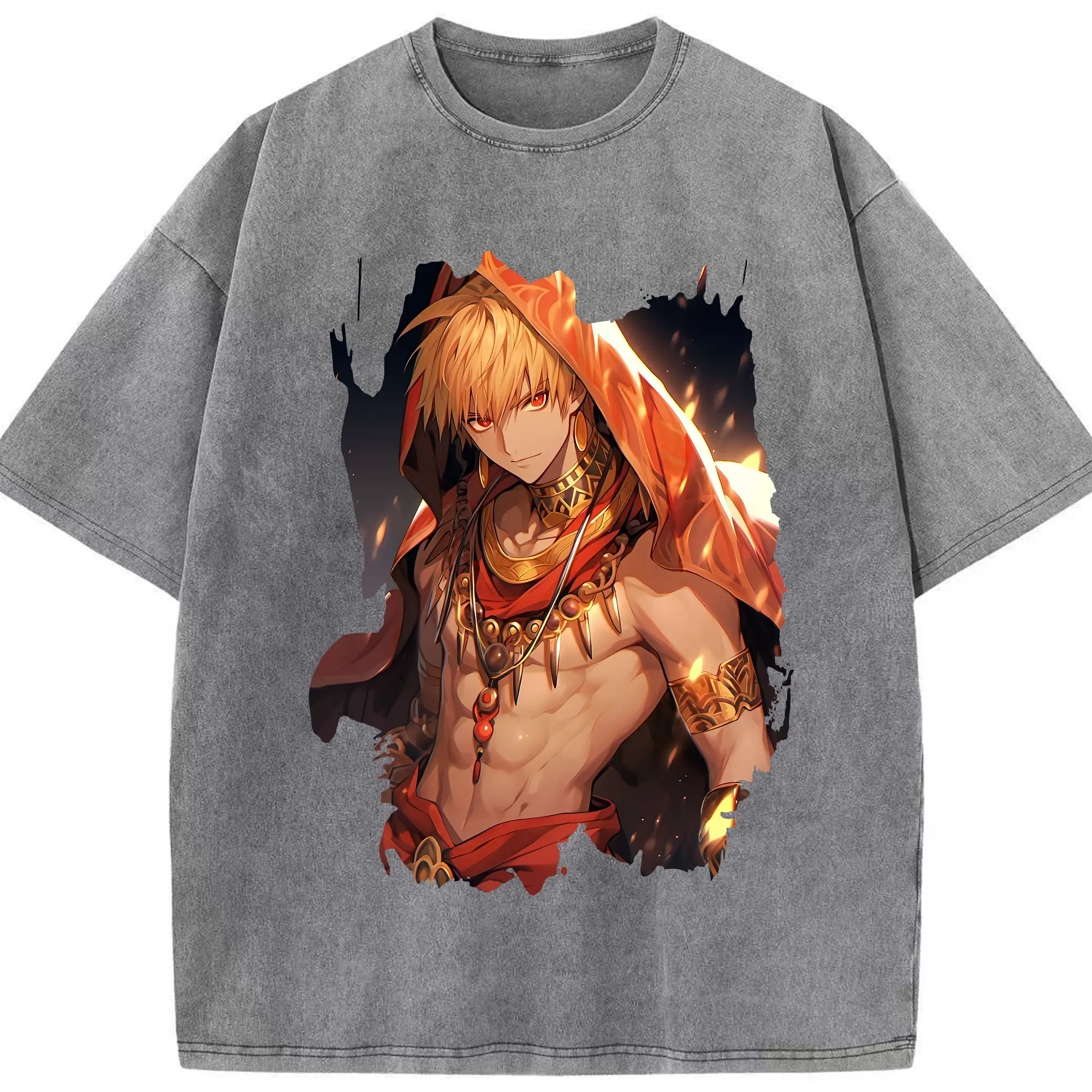 FGO グッズ,ギルガメッシュ - 綿100% ヴィンテージ風 半袖Tシャツ ・ 背面プリント ・ 柔らか肌触り ・ 通気性 快適 ・ スポーツ カジュアル 外出用