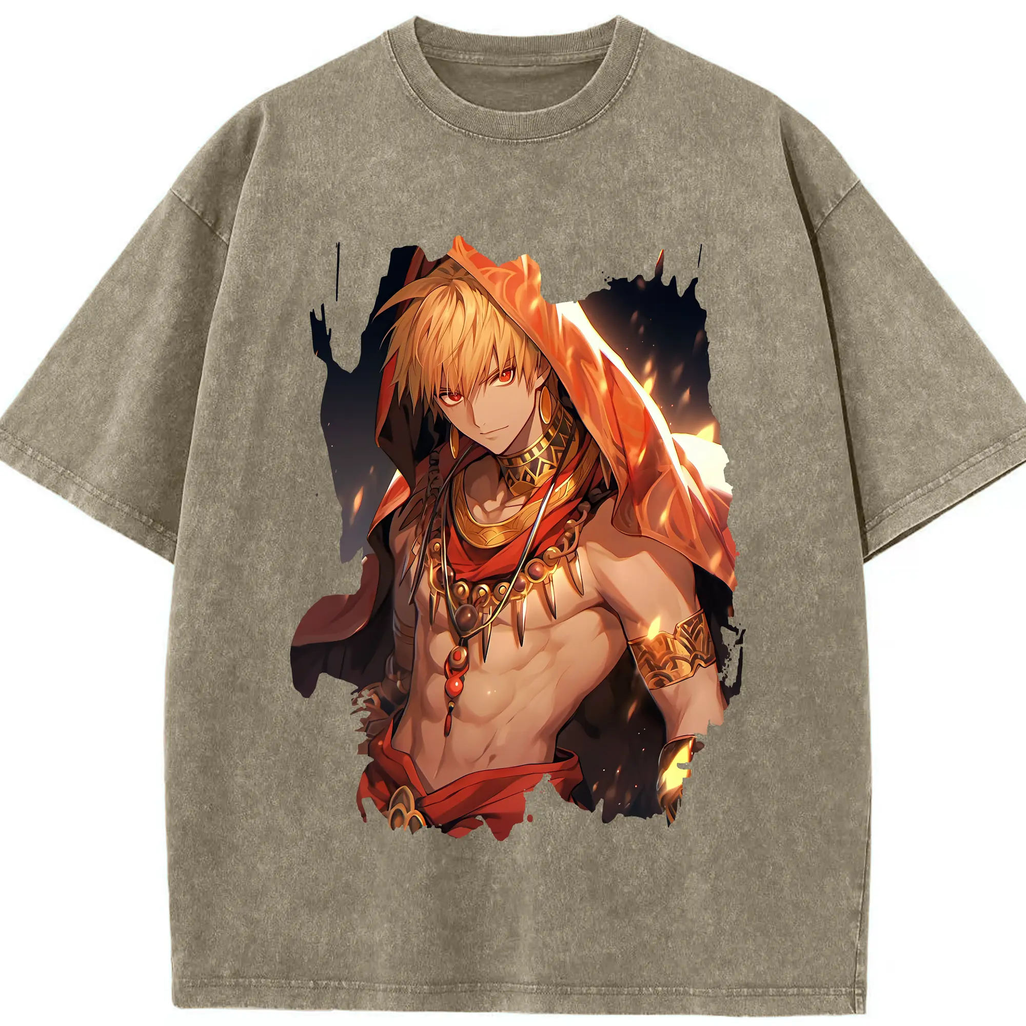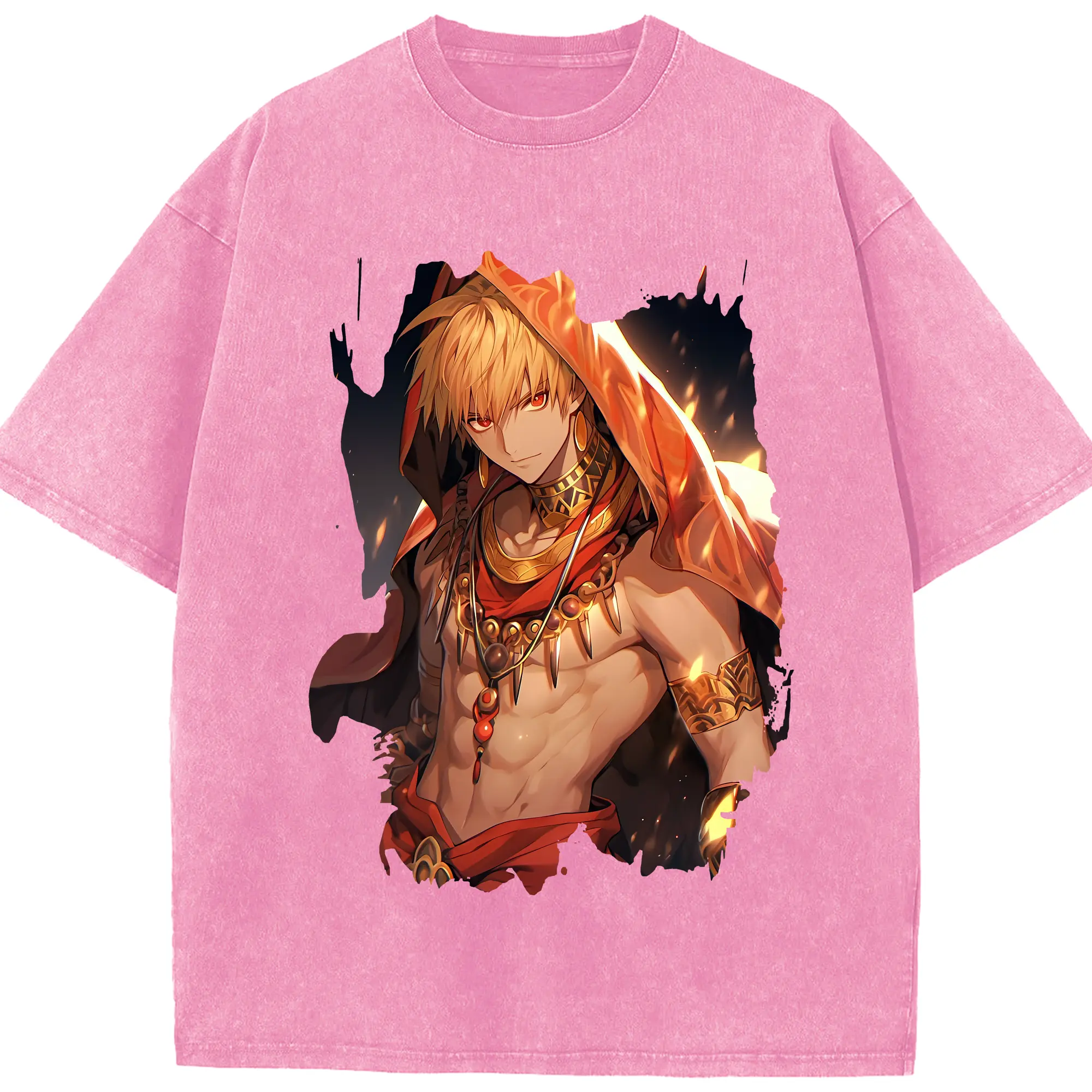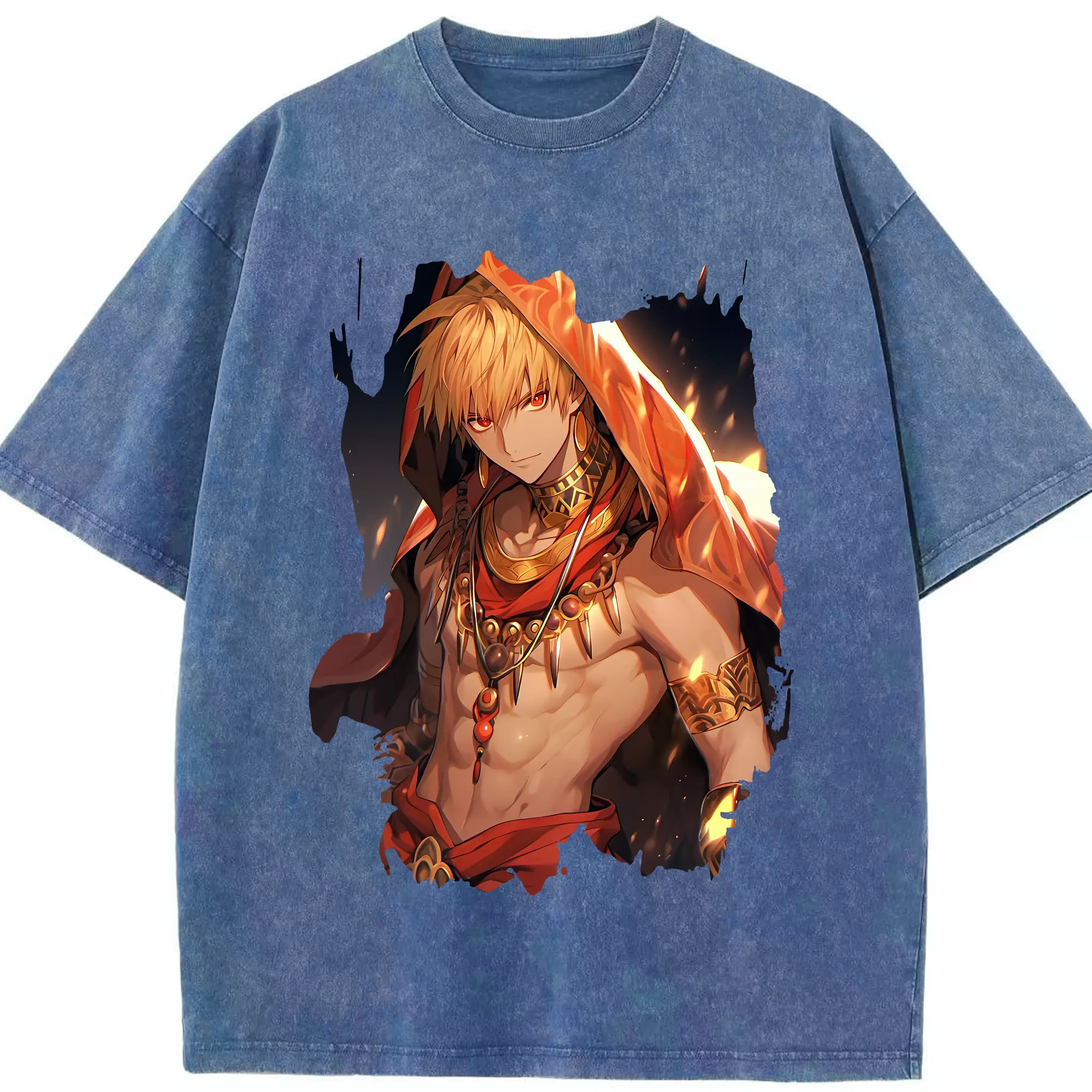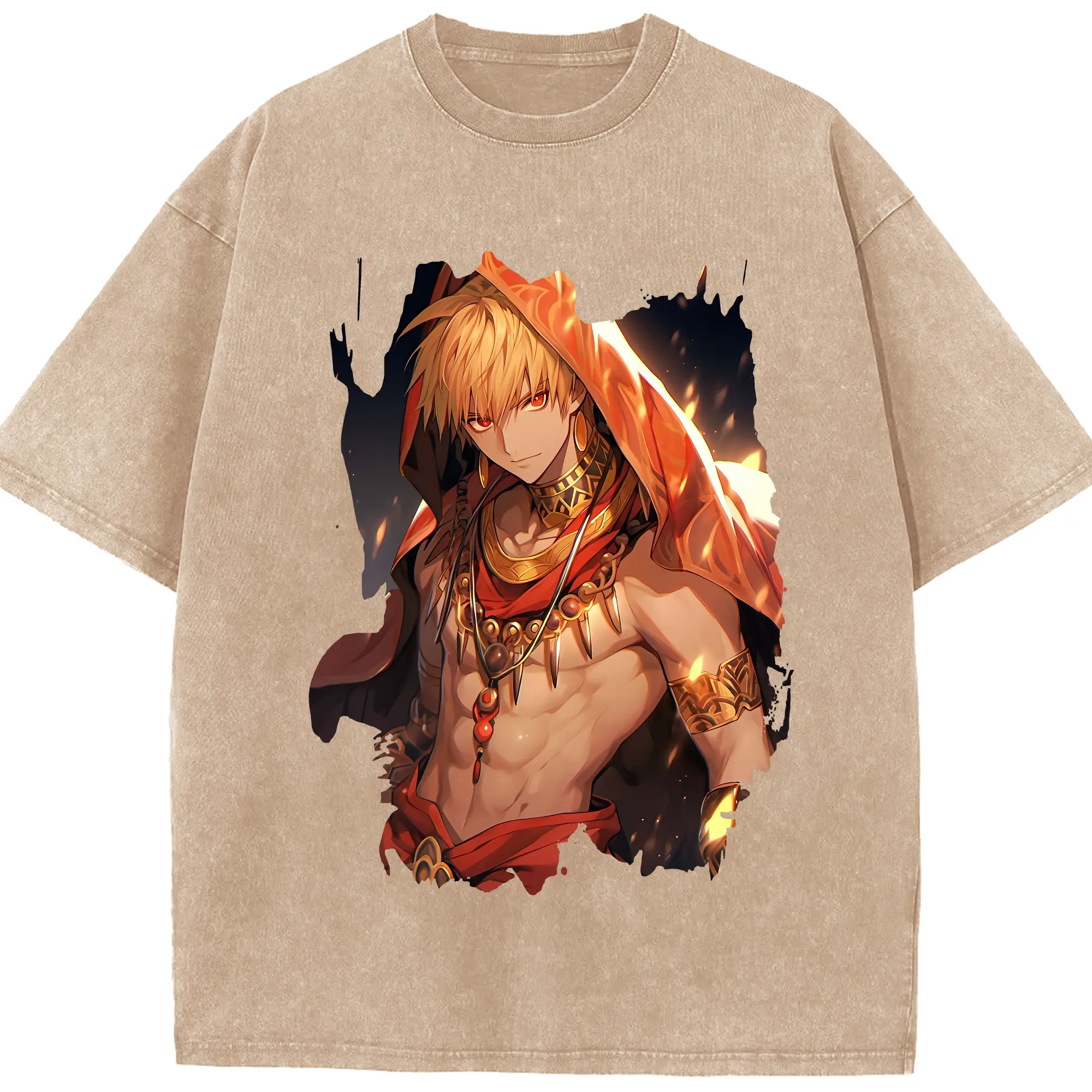 FGO グッズ,ギルガメッシュ - 綿100% ヴィンテージ風 半袖Tシャツ ・ 背面プリント ・ 柔らか肌触り ・ 通気性 快適 ・ スポーツ カジュアル 外出用