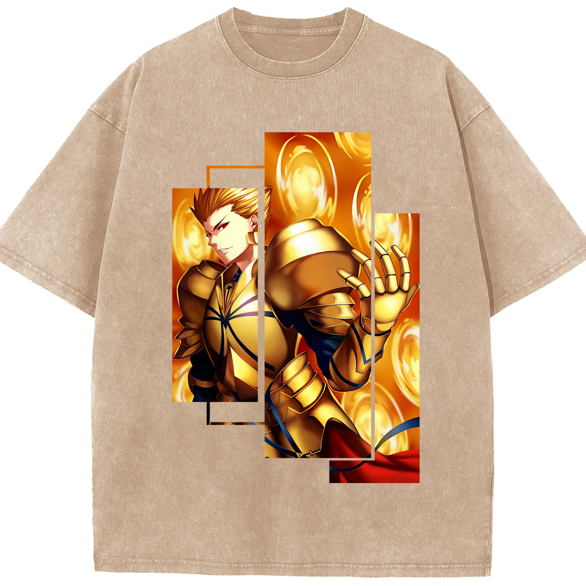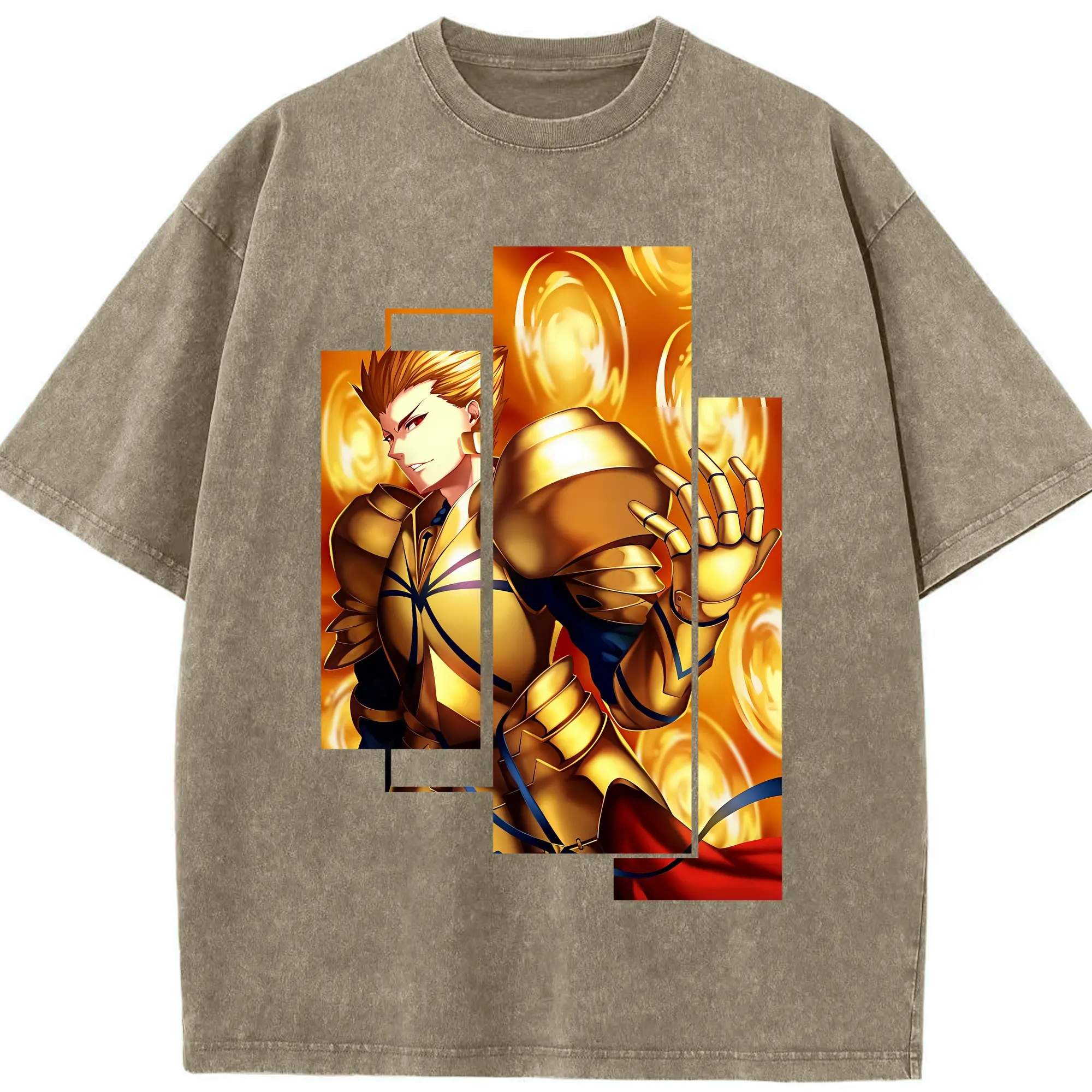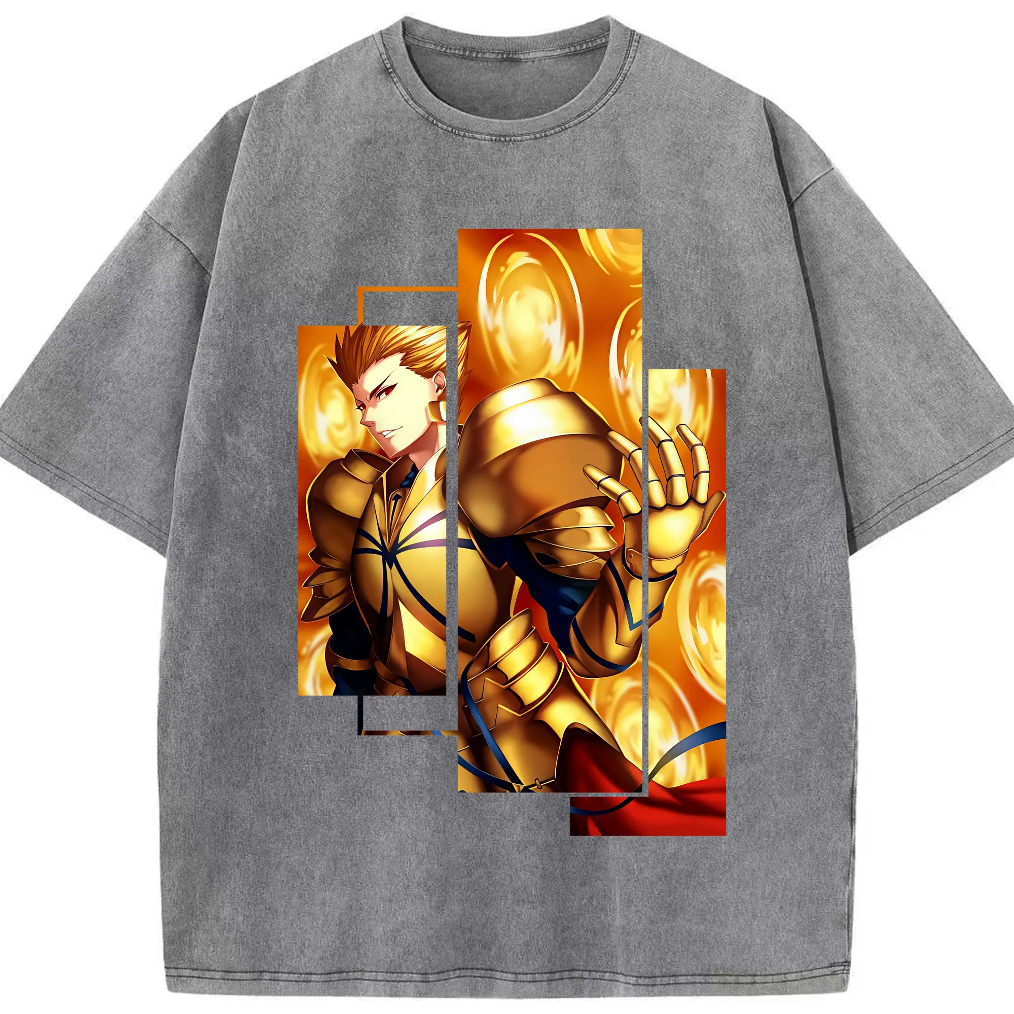 FGO グッズ,ギルガメッシュ - 綿100% ヴィンテージ風 半袖Tシャツ ・ 背面プリント ・ 柔らか肌触り ・ 通気性 快適 ・ スポーツ カジュアル 外出用