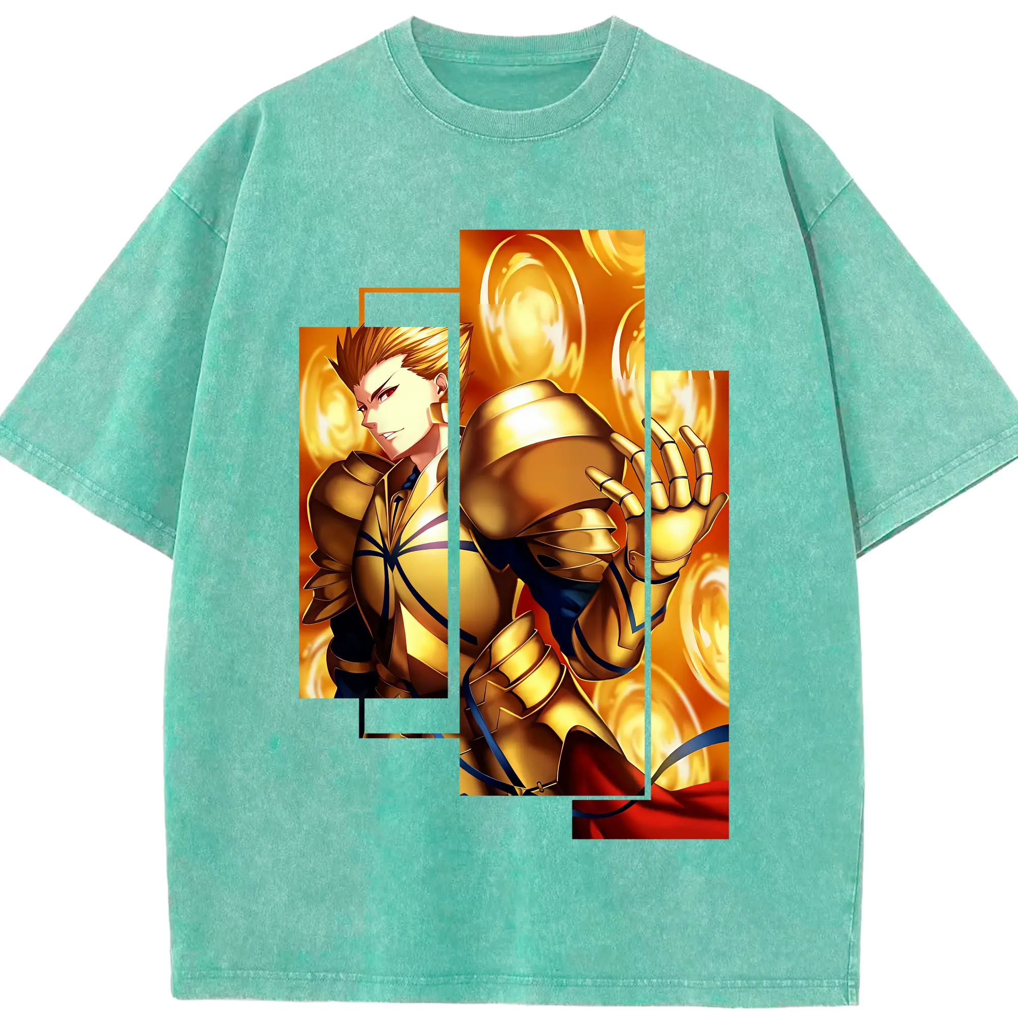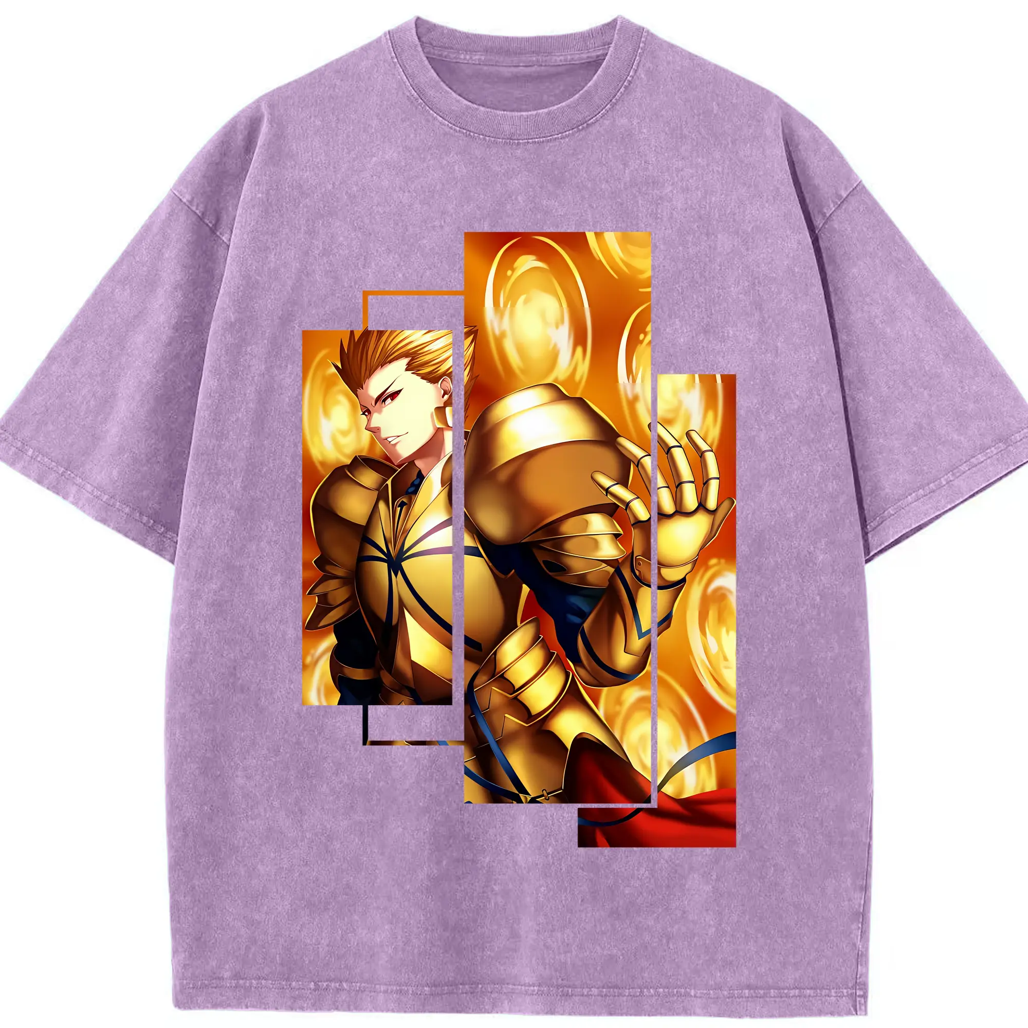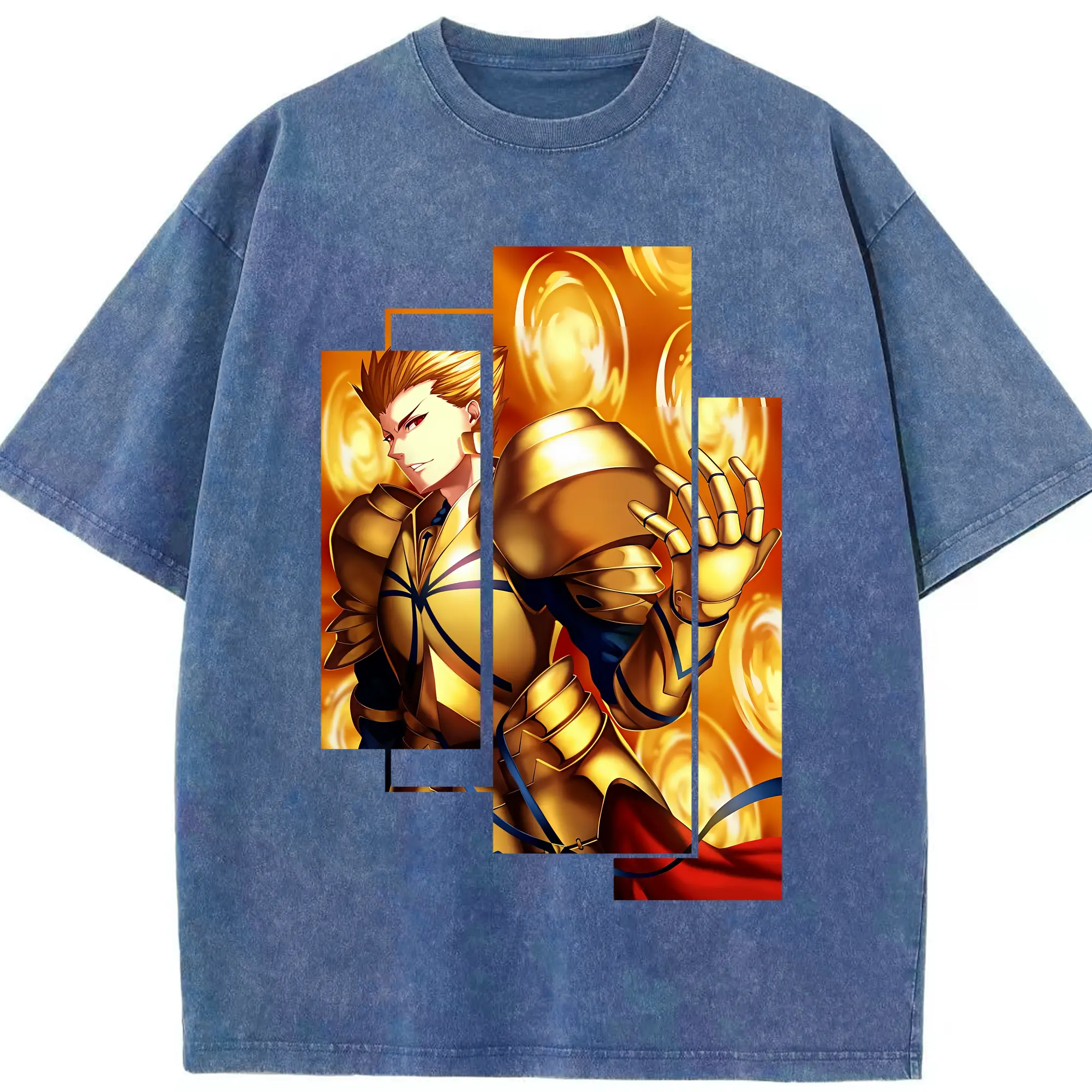FGO グッズ,ギルガメッシュ - 綿100% ヴィンテージ風 半袖Tシャツ ・ 背面プリント ・ 柔らか肌触り ・ 通気性 快適 ・ スポーツ カジュアル 外出用