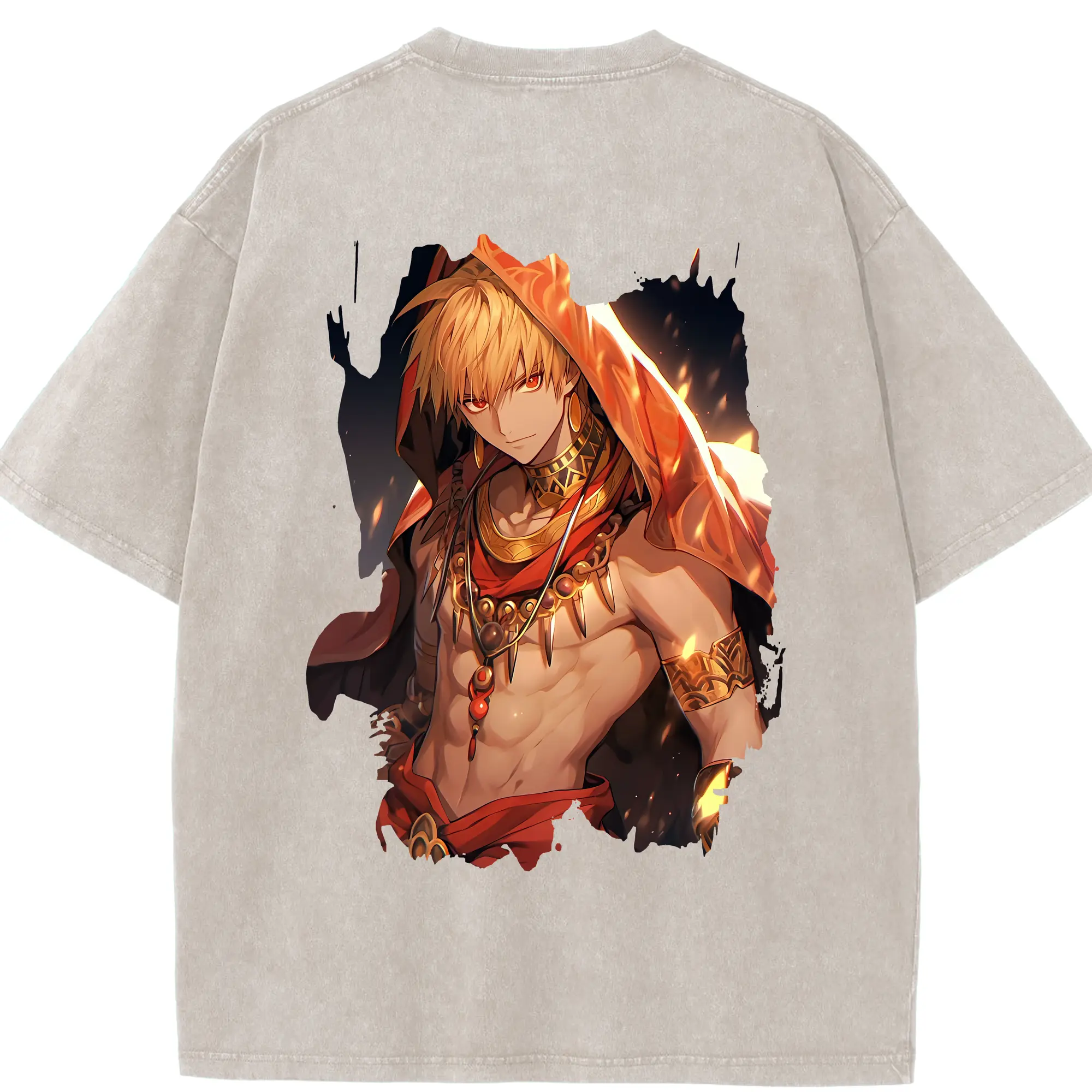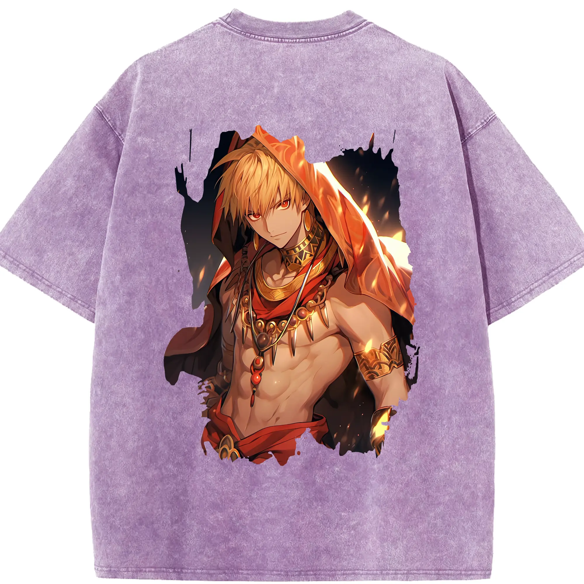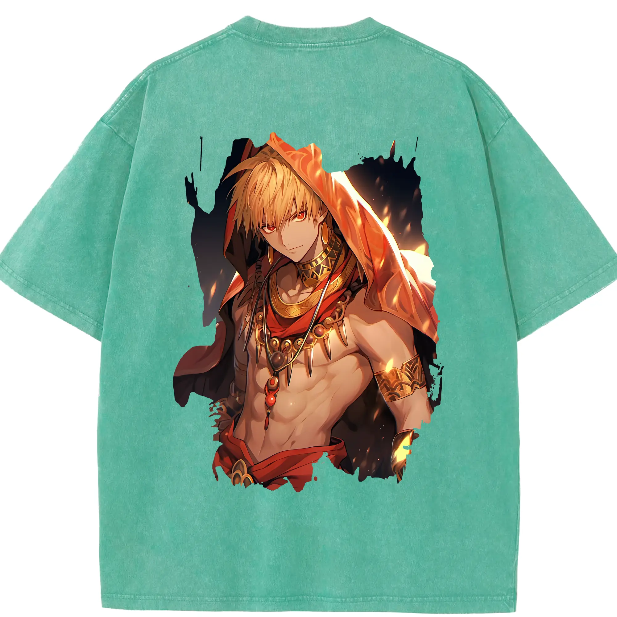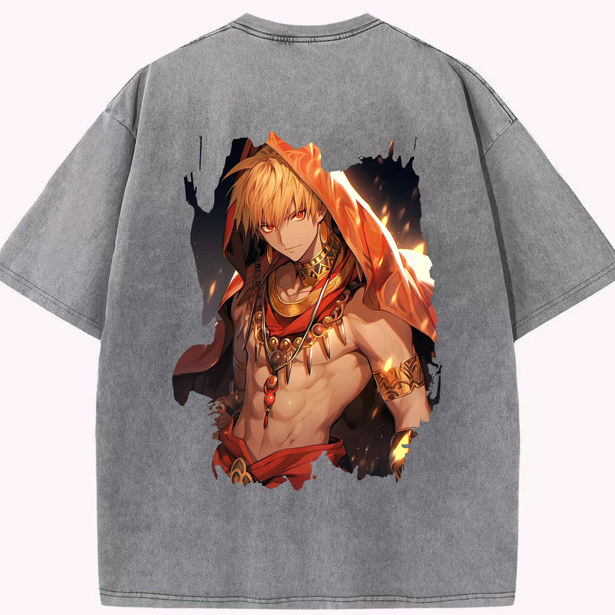 FGO グッズ,ギルガメッシュ - 綿100% ヴィンテージ風 半袖Tシャツ ・ フロントプリント ・ 柔らか肌触り ・ 通気性 快適 ・ スポーツ カジュアル 外出用