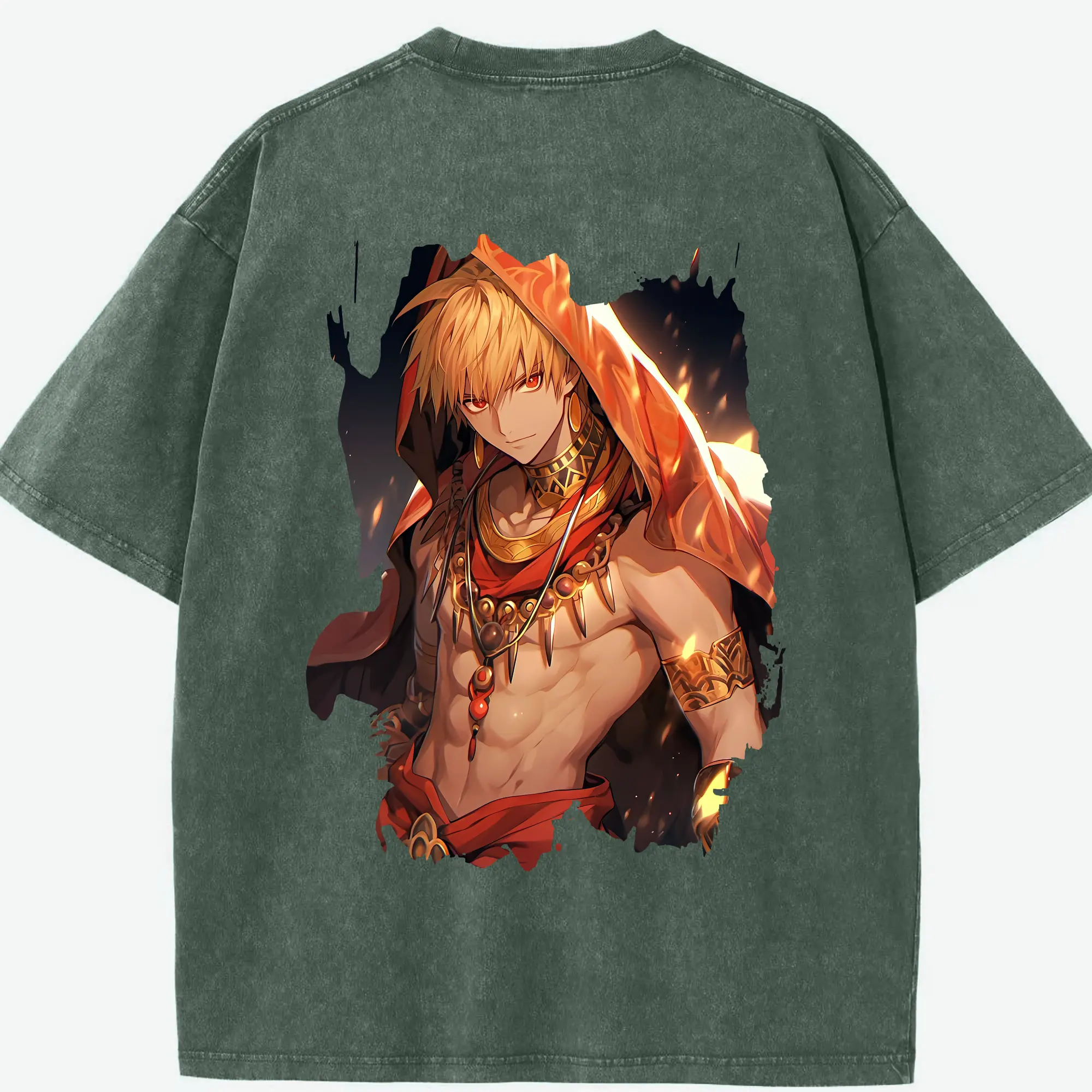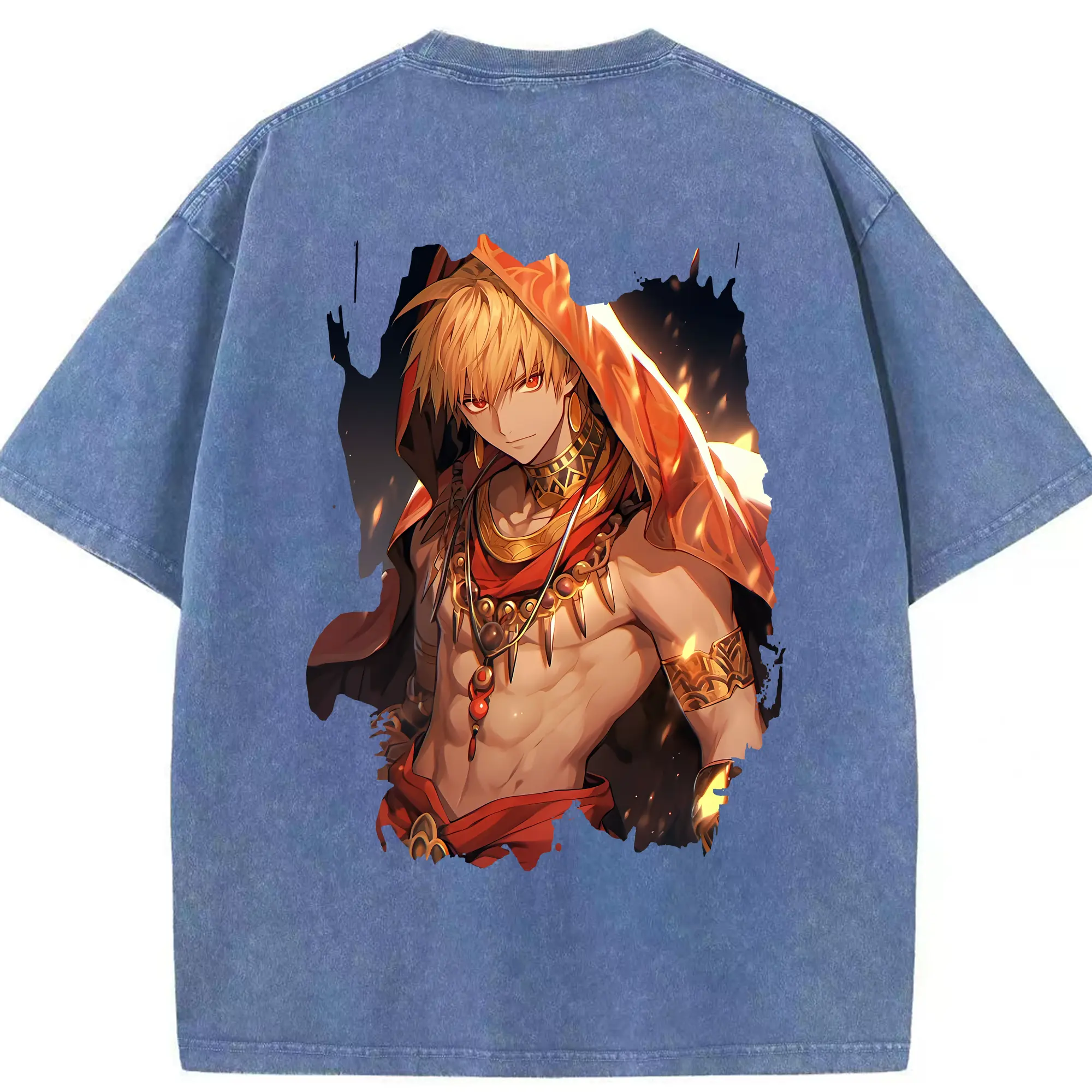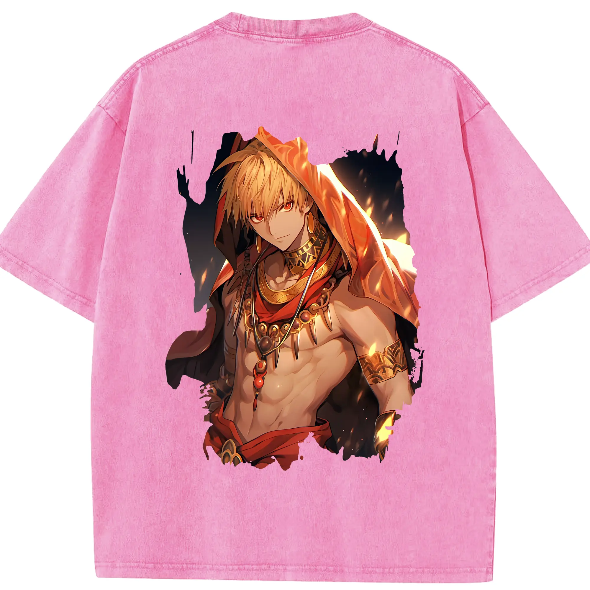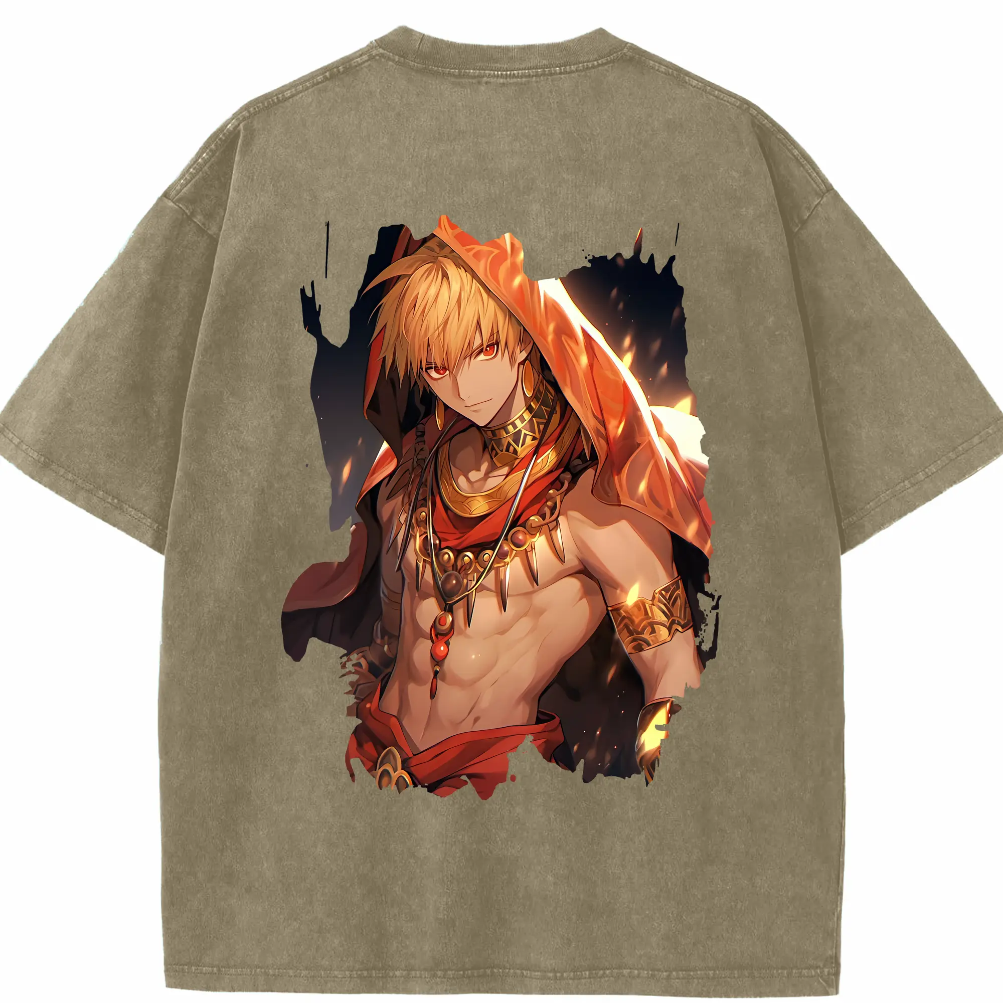 FGO グッズ,ギルガメッシュ - 綿100% ヴィンテージ風 半袖Tシャツ ・ フロントプリント ・ 柔らか肌触り ・ 通気性 快適 ・ スポーツ カジュアル 外出用