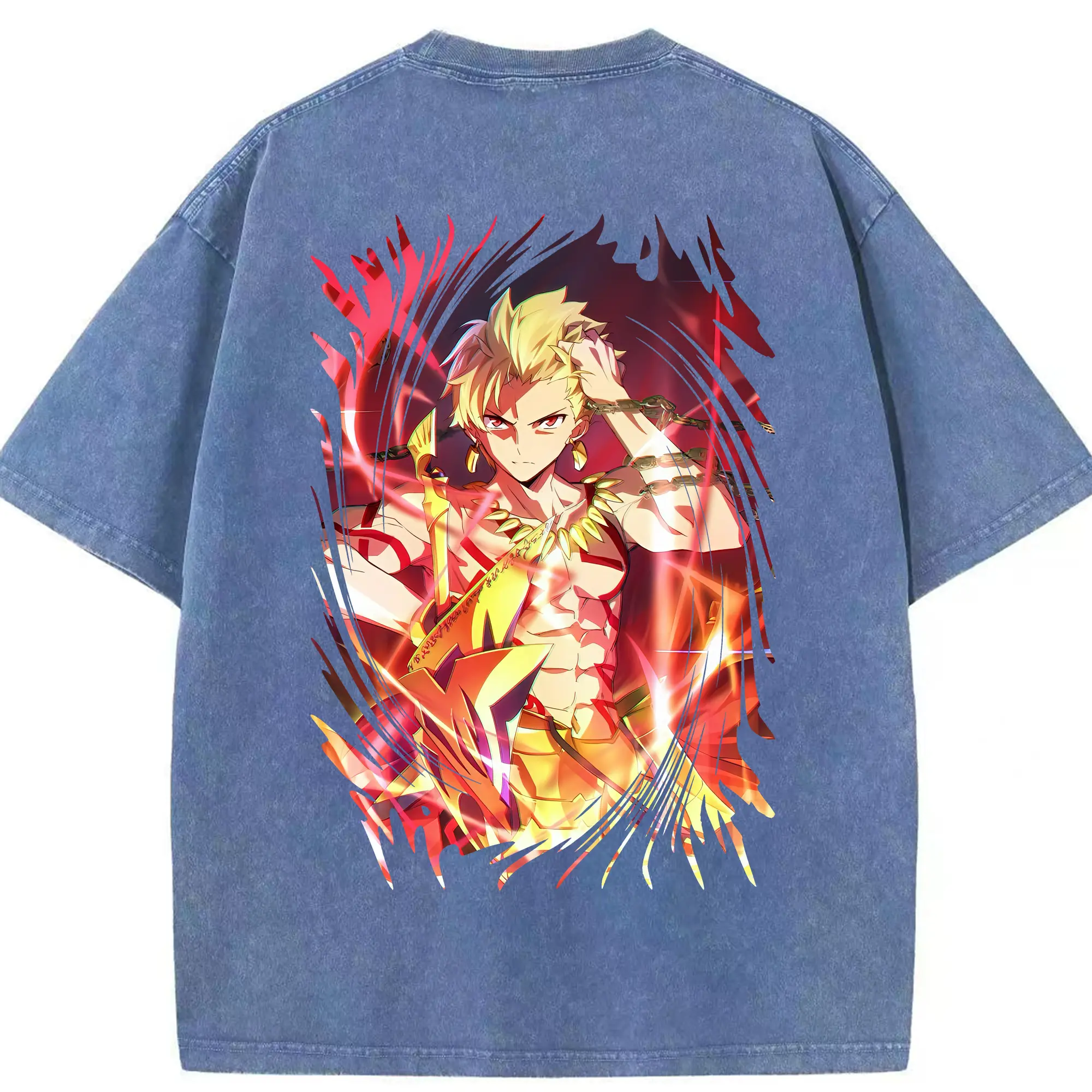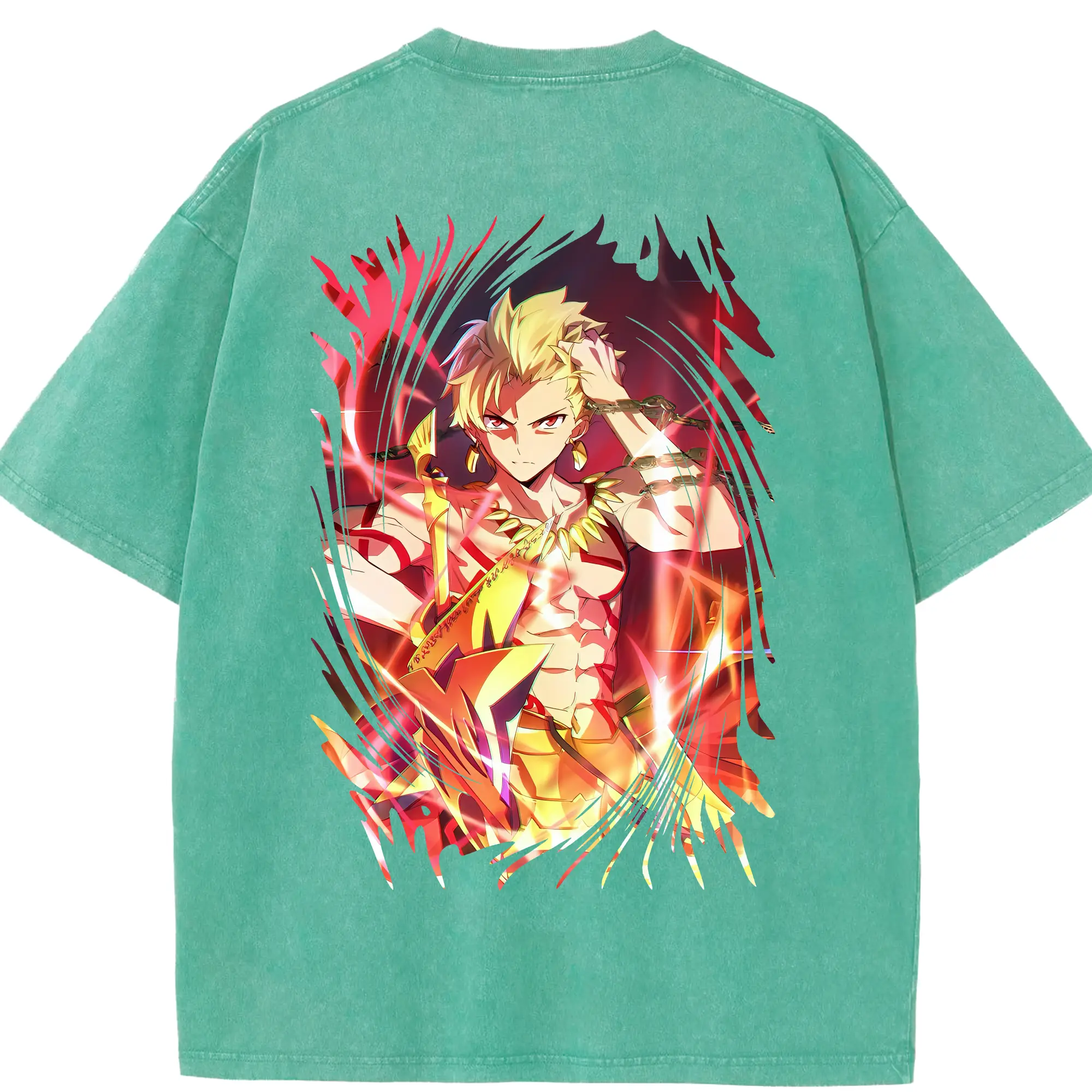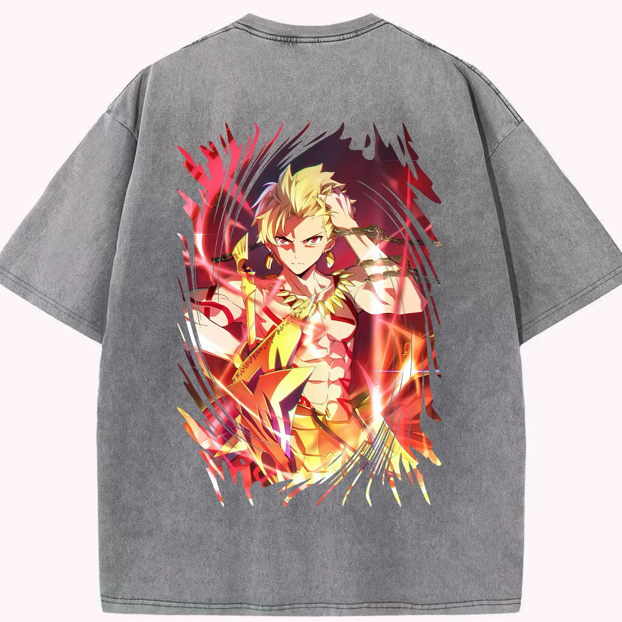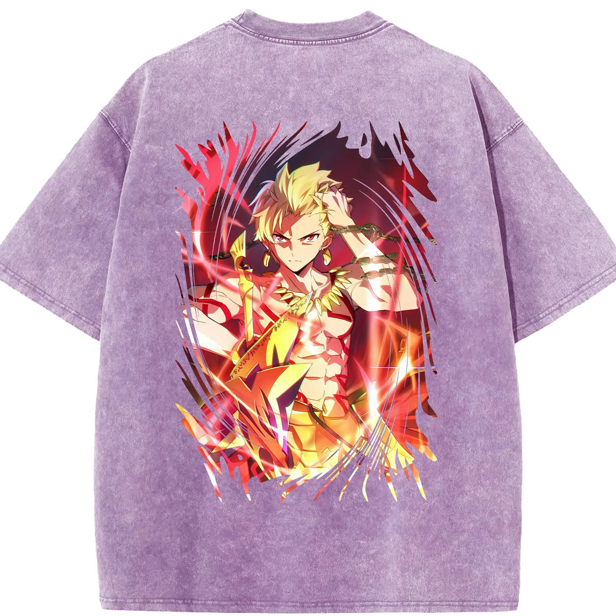 FGO グッズ,ギルガメッシュ - 綿100% ヴィンテージ風 半袖Tシャツ ・ フロントプリント ・ 柔らか肌触り ・ 通気性 快適 ・ スポーツ カジュアル 外出用
