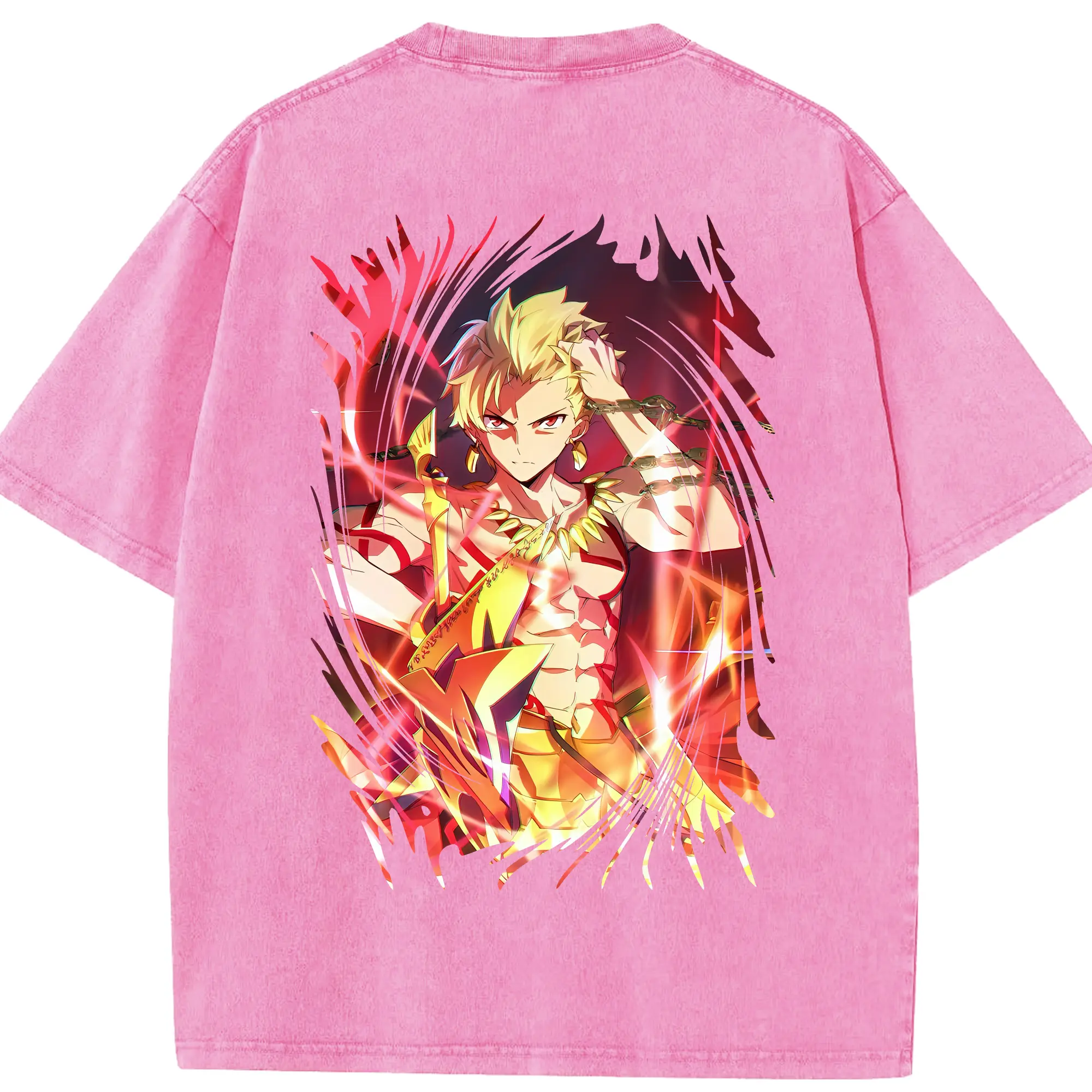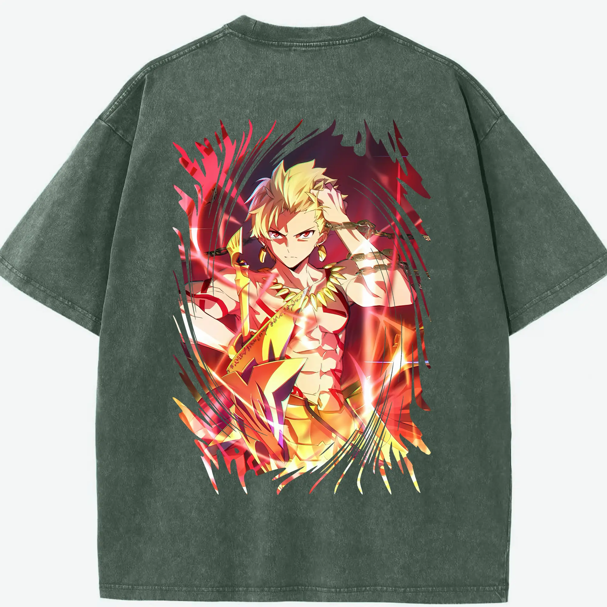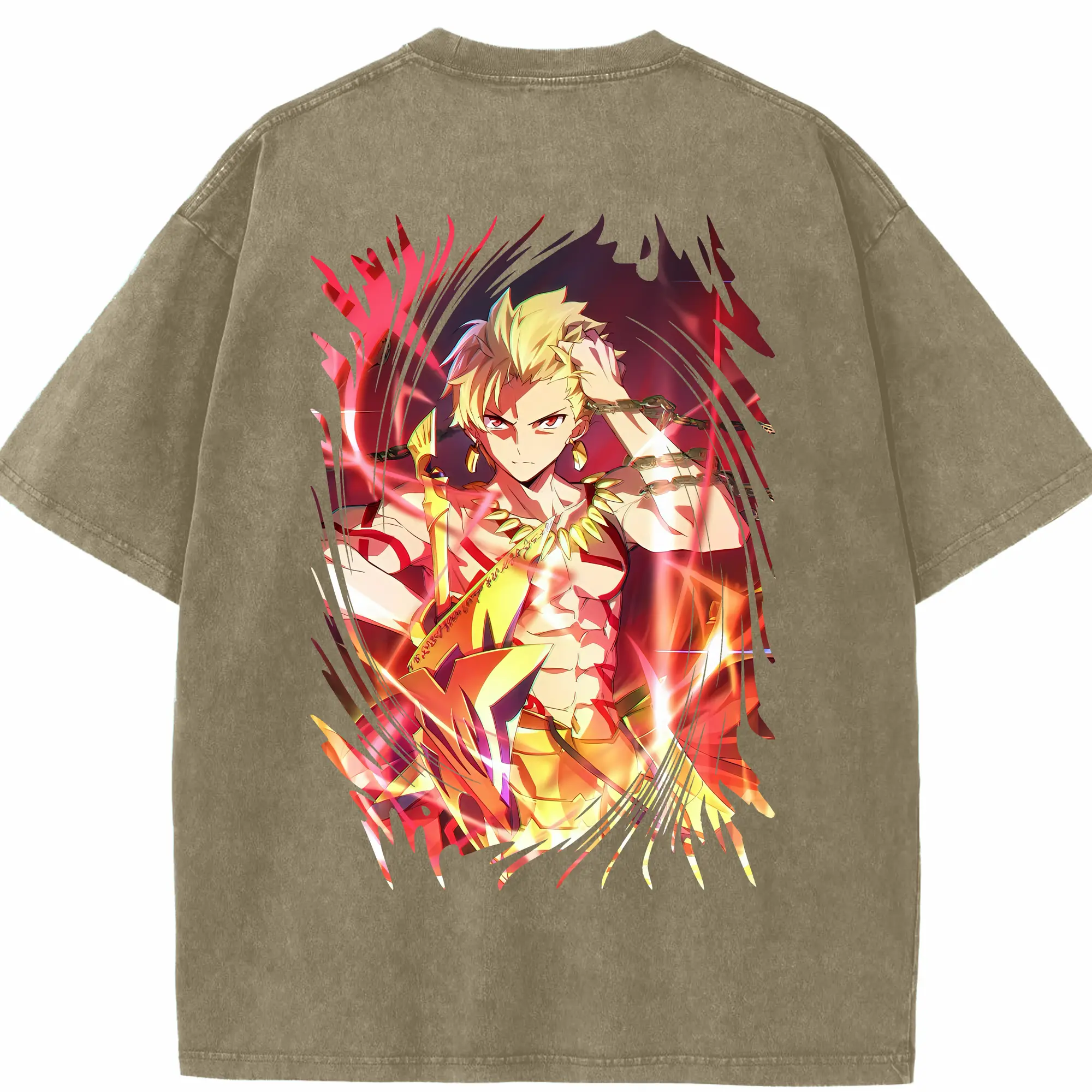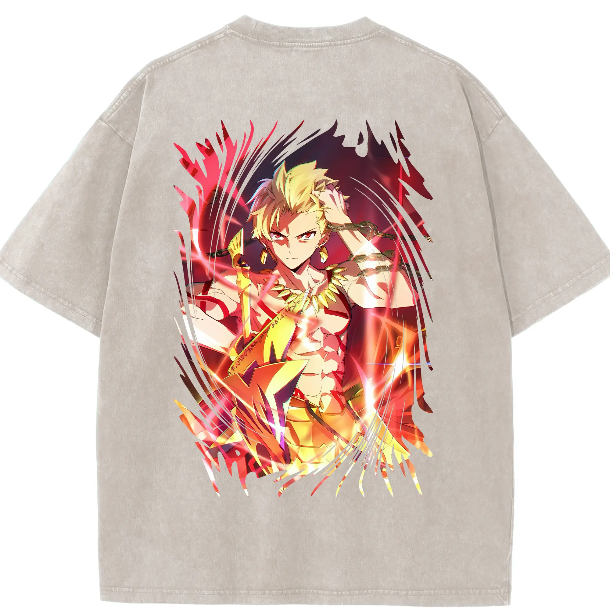 FGO グッズ,ギルガメッシュ - 綿100% ヴィンテージ風 半袖Tシャツ ・ フロントプリント ・ 柔らか肌触り ・ 通気性 快適 ・ スポーツ カジュアル 外出用