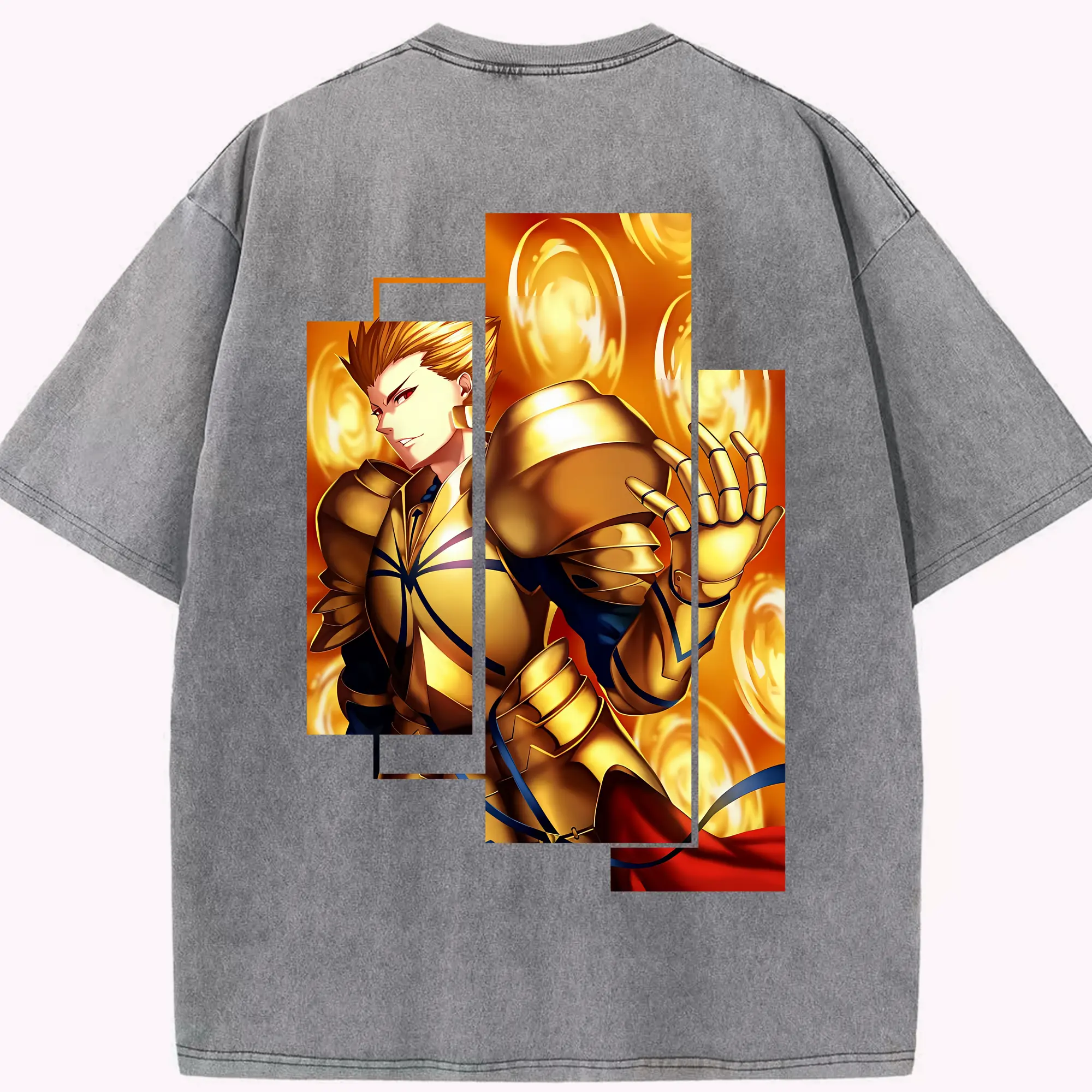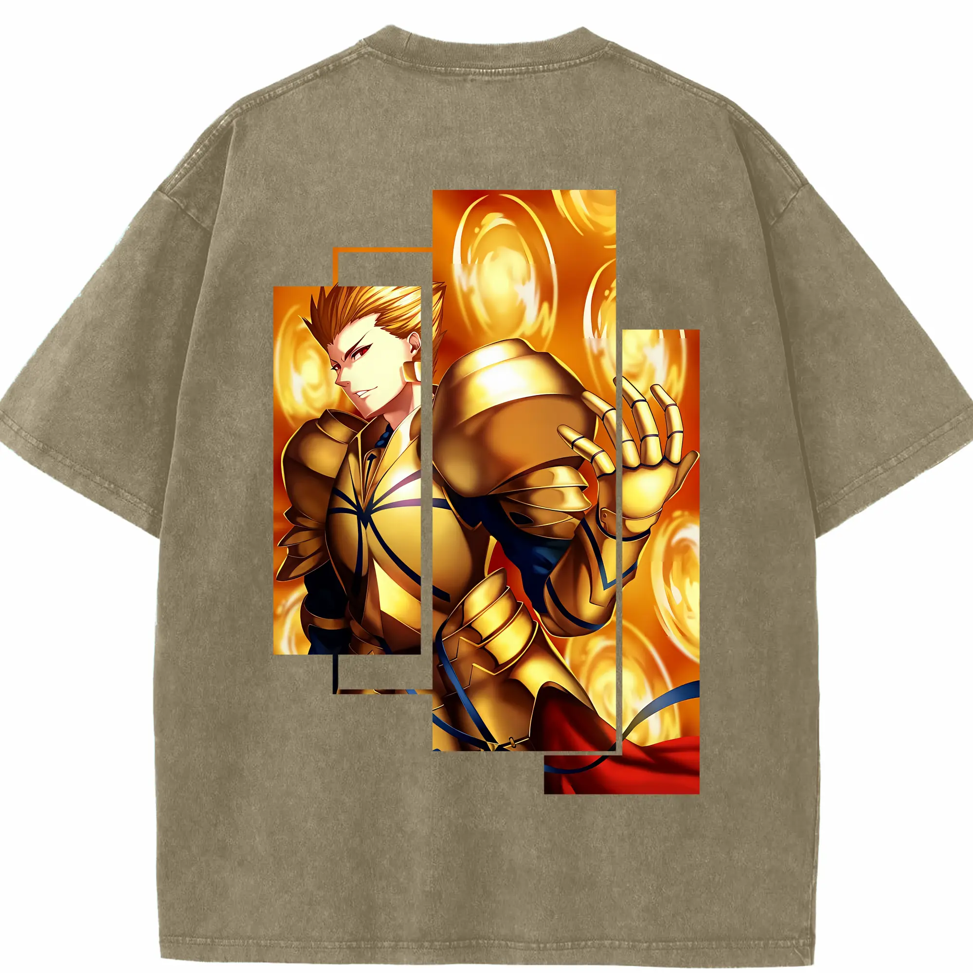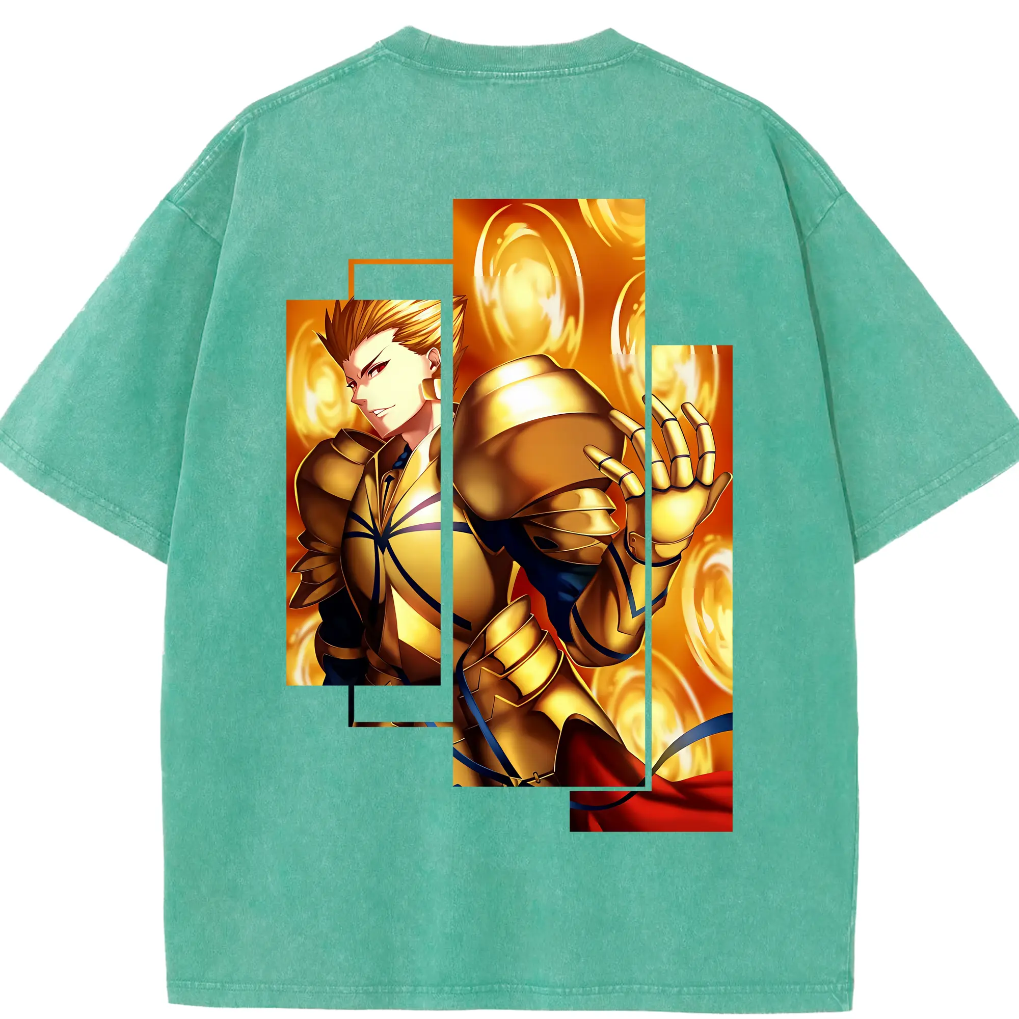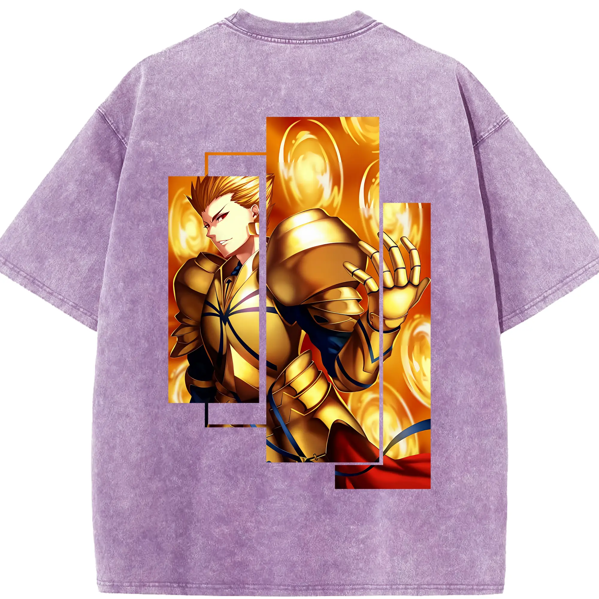 FGO グッズ,ギルガメッシュ - 綿100% ヴィンテージ風 半袖Tシャツ ・ フロントプリント ・ 柔らか肌触り ・ 通気性 快適 ・ スポーツ カジュアル 外出用